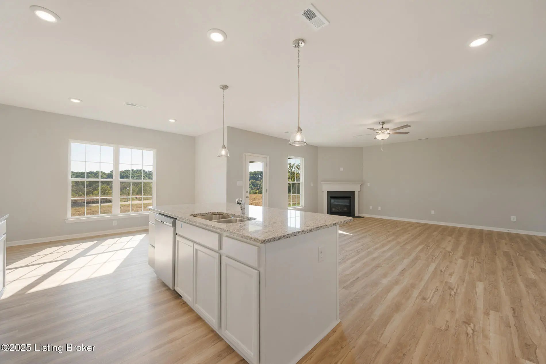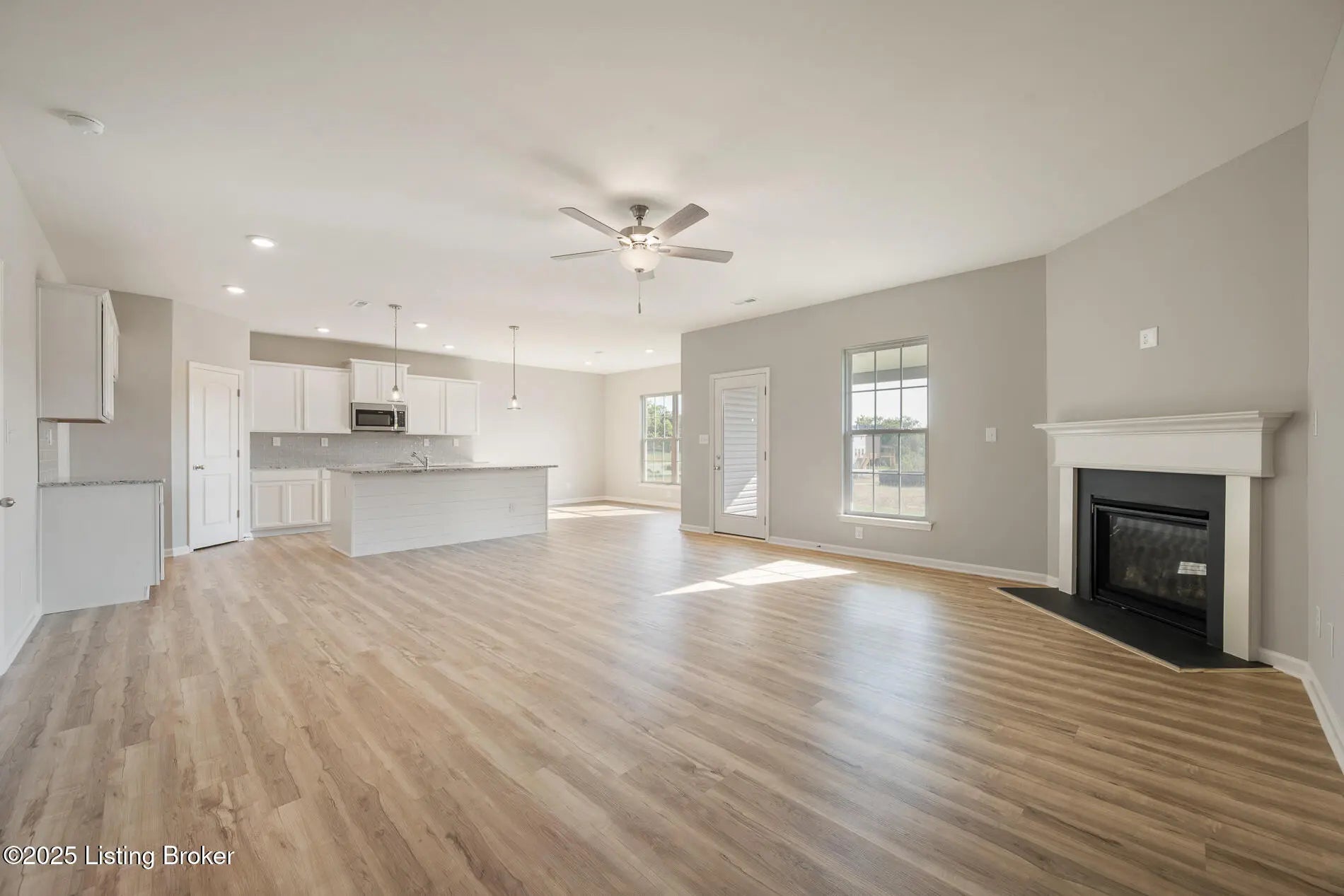 Step into modern comfort with the Balsam Springs floorplan, a beautifully designed 4-bedroom, 2.5-bath home that blends style and functionality. The open-concept layout welcomes you with luxury vinyl plank (LVP) flooring throughout the first floor, creating a seamless flow between the spacious family room, complete with a charming corner fireplace, and the home cooks kitchen. The kitchen is a showstopper, featuring a large island suitable for dining, granite countertops, crisp white cabinetry, a stylish tile backsplash, and a full suite of stainless-steel appliances, including a gas range, side-by-side refrigerator, dishwasher, and microwave vented to the outside. A bright breakfast area provides the perfect space to gather for meals.