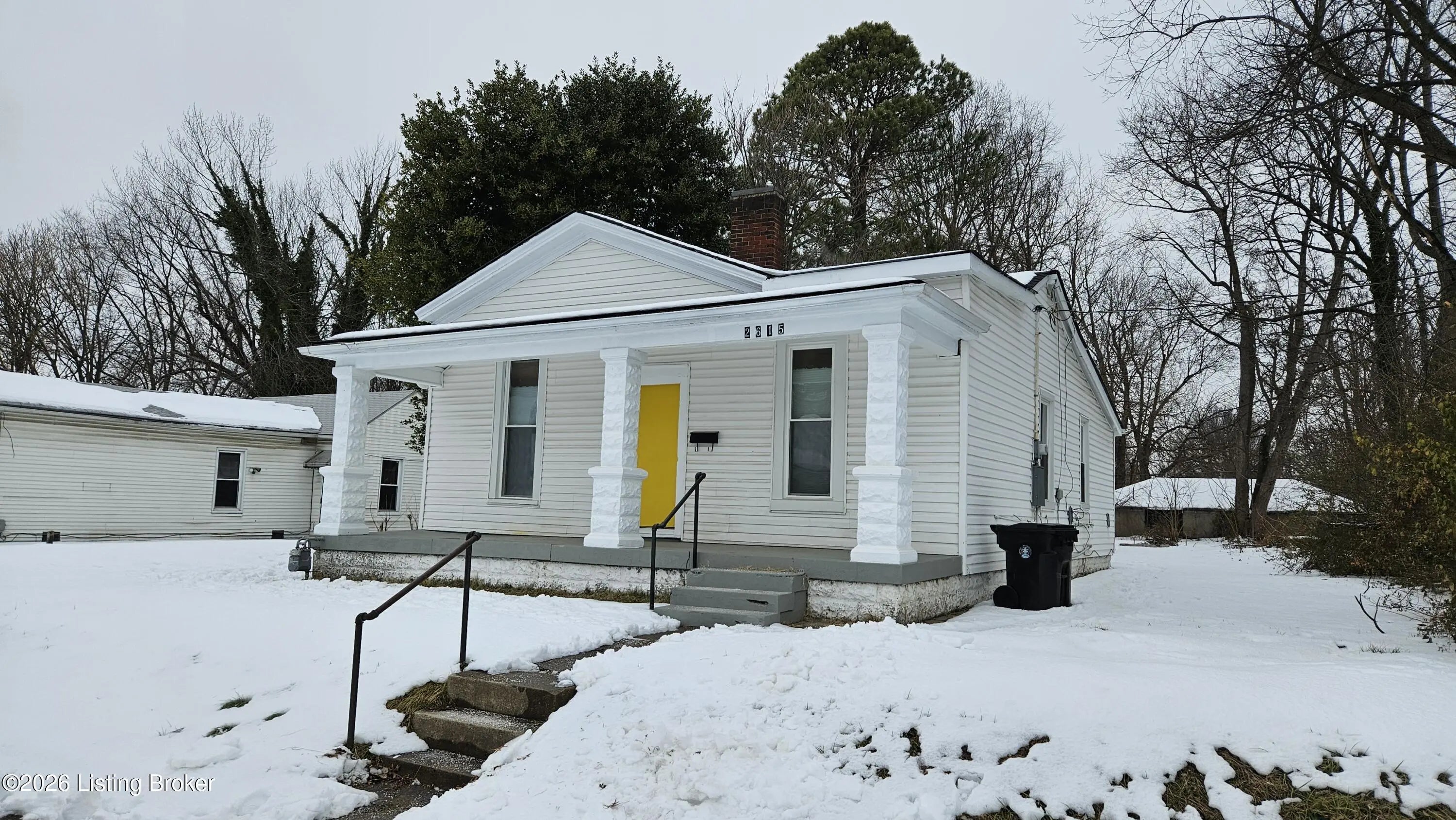 Seller concessions available - up to 6% with an acceptable full-price offer when using seller's preferred lender. This opportunity can significantly reduce upfront costs and make moving into the home easy and seamless. Ask listing agent for details. Welcome to 2615 Greenwood Avenue. This wonderful, renovated ranch is located in West Louisville's Parkland neighborhood. A lovely covered front porch, that spans the width of the home, greets you as you walk up. Heading inside, into the living room, you will immediately notice the beautiful brand new luxury vinyl plank flooring that is throughout most of the home. A decorative brick fireplace highlights the living room. Continuing through the doorway brings you into a huge dining room that could easily seat 6 to 8 people, should you wish to use it in a formal setting. The kitchen will be found off the back of the dining room. This L-shaped kitchen offers olive cabinetry, all white appliances, and the laundry area. The spacious primary bedroom, with large closet, is off the back of the kitchen. There are two more good sized bedrooms and a full bath. A nice storage cellar can be accessed from the backyard. The enormous, partially fenced yard provides ample space for kids or pets to play in. At the end of the yard is an enormous detached 4 car garage that can be accessed from the alley. The garage hasn't been used in many years but could be restored to use. Additional updates include: roof only 2 years old, brand new carpet in all bedrooms, and fresh paint throughout. Don't miss out on this one and schedule a showing today!