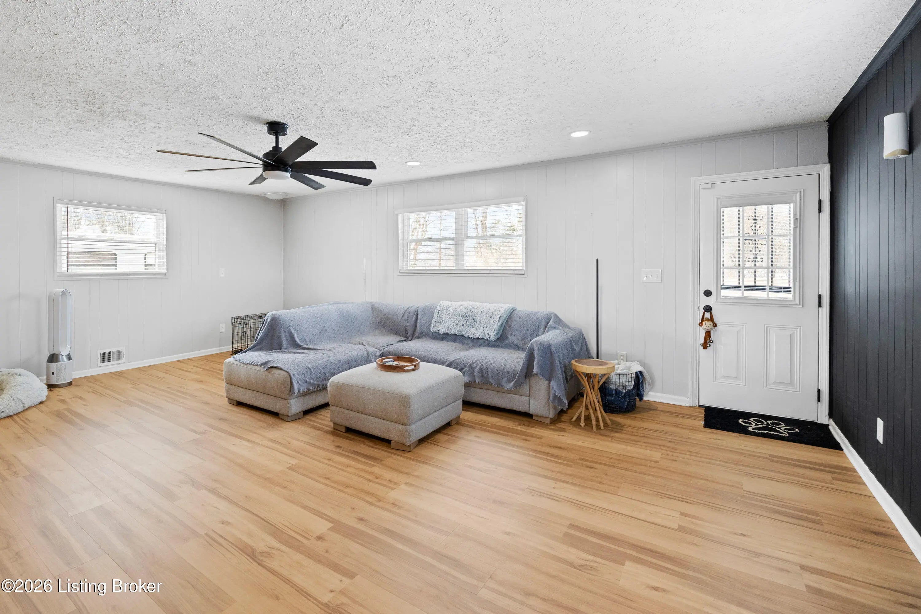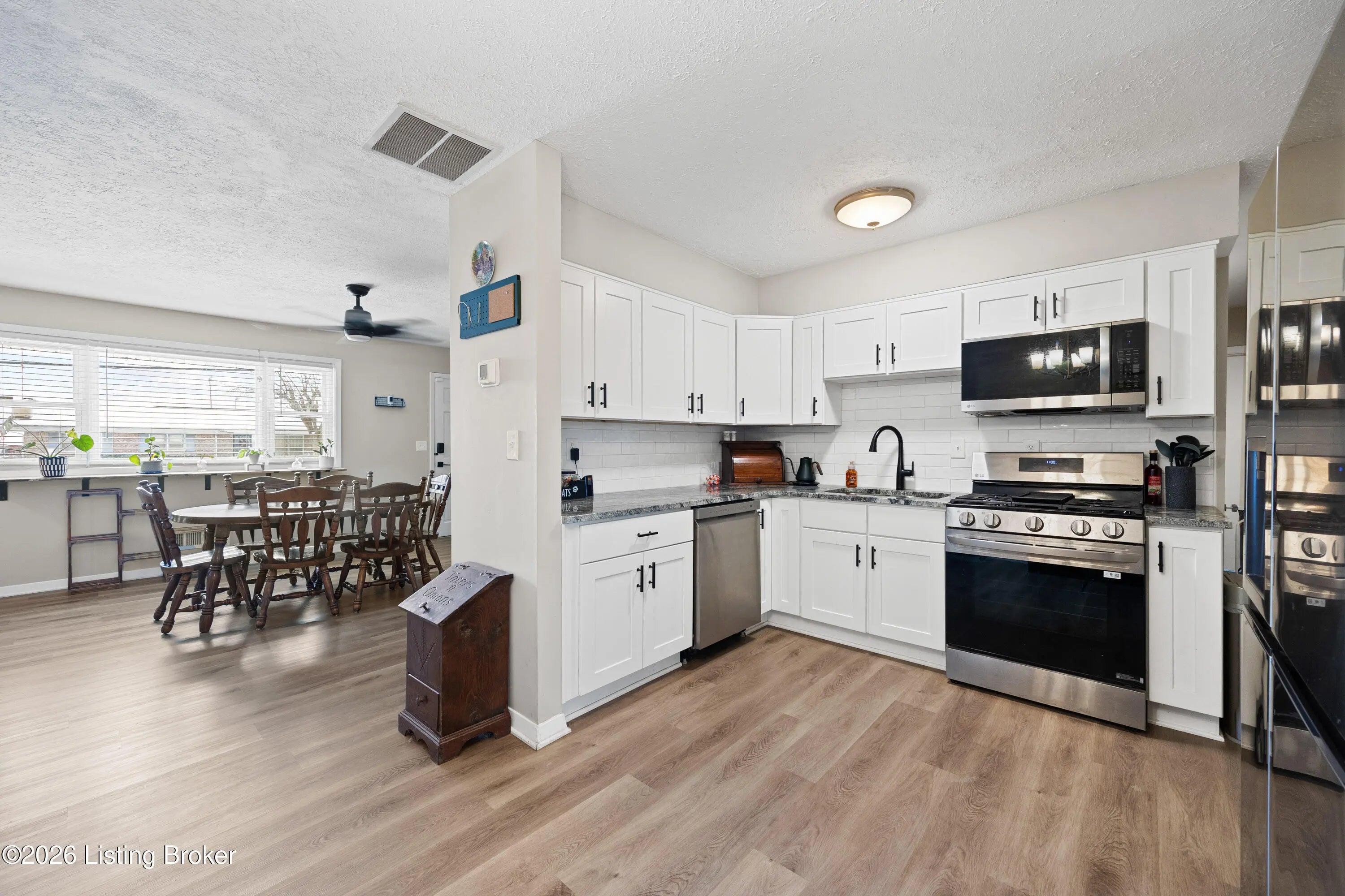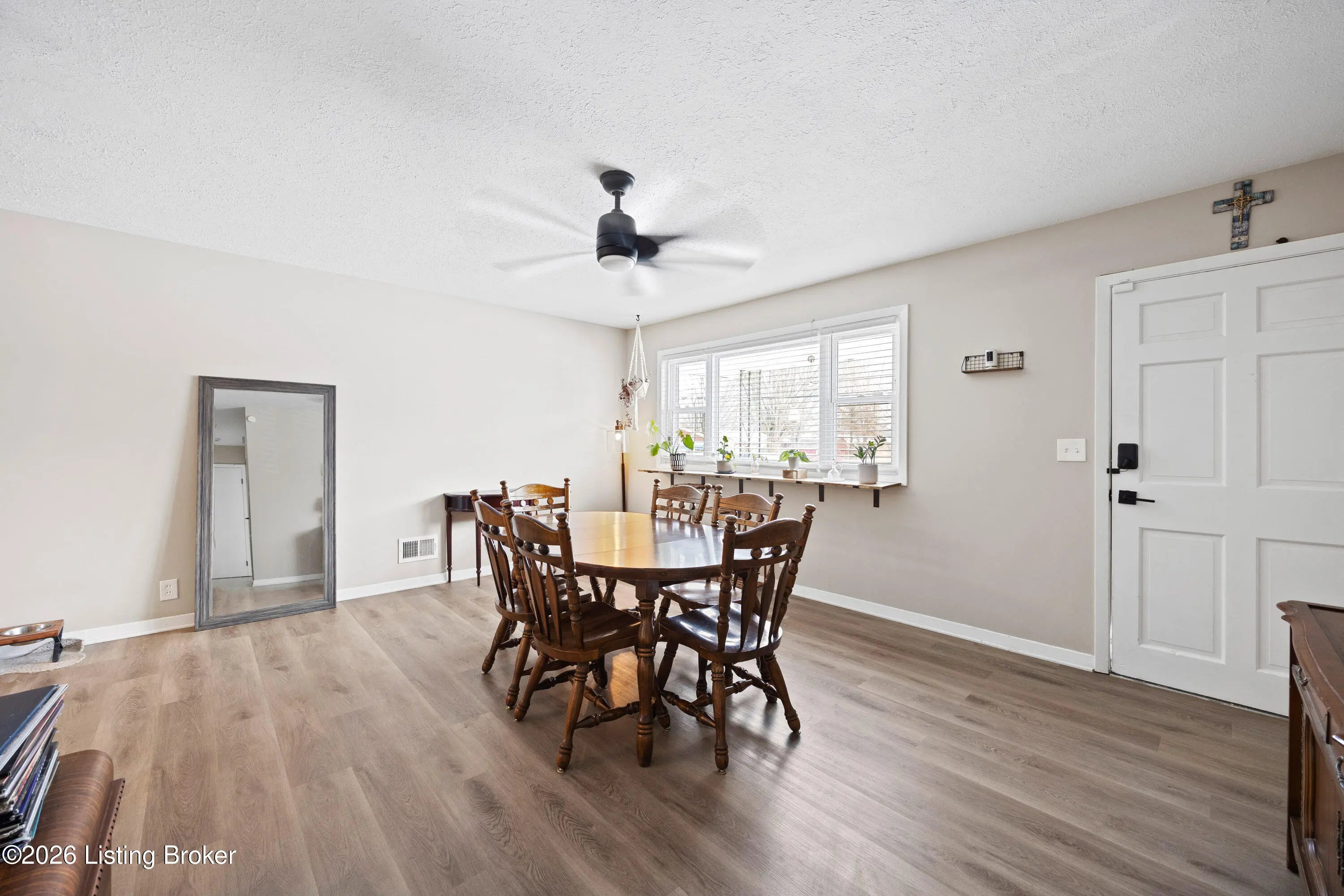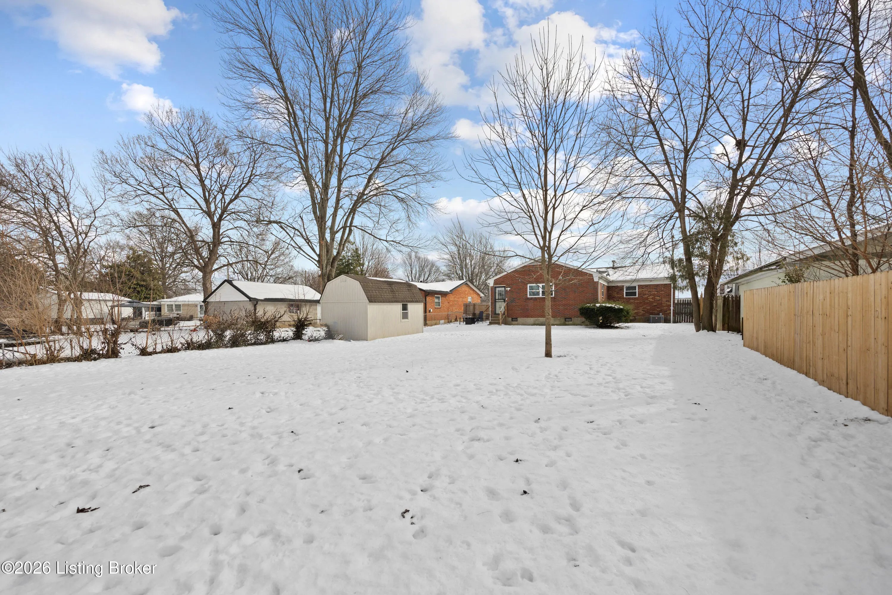 Welcome to this charming and beautifully maintained home located at 9806 Caven Avenue. This residence offers a perfect blend of character and modern updates, situated in a convenient Louisville location that keeps you close to local shopping, dining, and community amenities. As you step inside, you are greeted by an inviting interior featuring two distinct living areas, providing ample space for relaxation and entertainment. The primary living space is highlighted by a stunning brick accent wall that adds warmth and a timeless aesthetic to the room. The heart of the home is the spacious eat-in kitchen, designed for both daily meals and gathering with guests. Practicality meets convenience with a large, dedicated laundry room that offers extra storage potential. Peace of mind comes standard here, as the home features a brand-new air conditioning unit to ensure year-round comfort. The outdoor space is equally impressive, boasting a privacy-fenced backyard that serves as a quiet retreat for outdoor activities or peaceful afternoons. This move-in-ready property combines classic style with functional living in a location that puts the best of the area right at your doorstep.