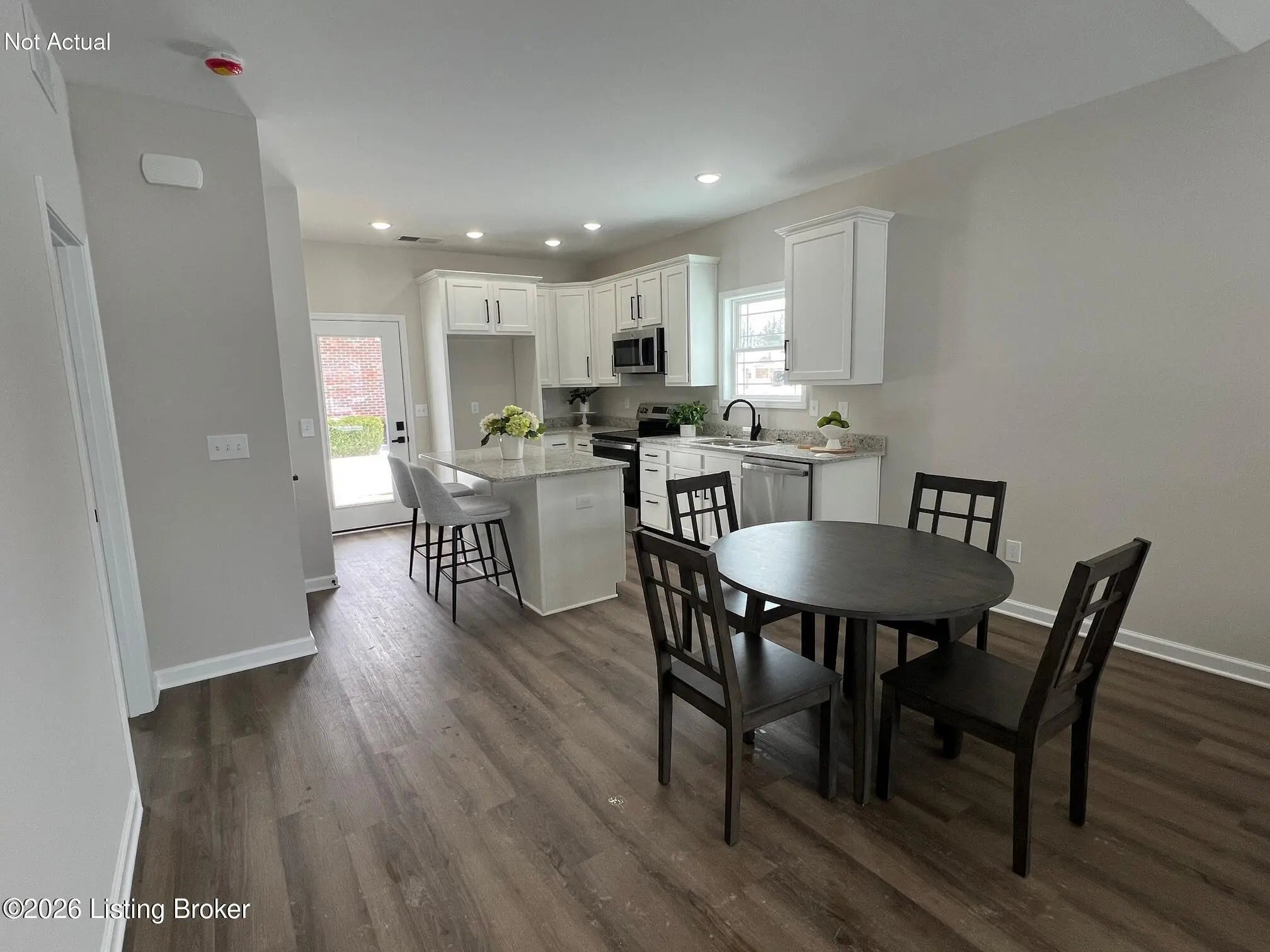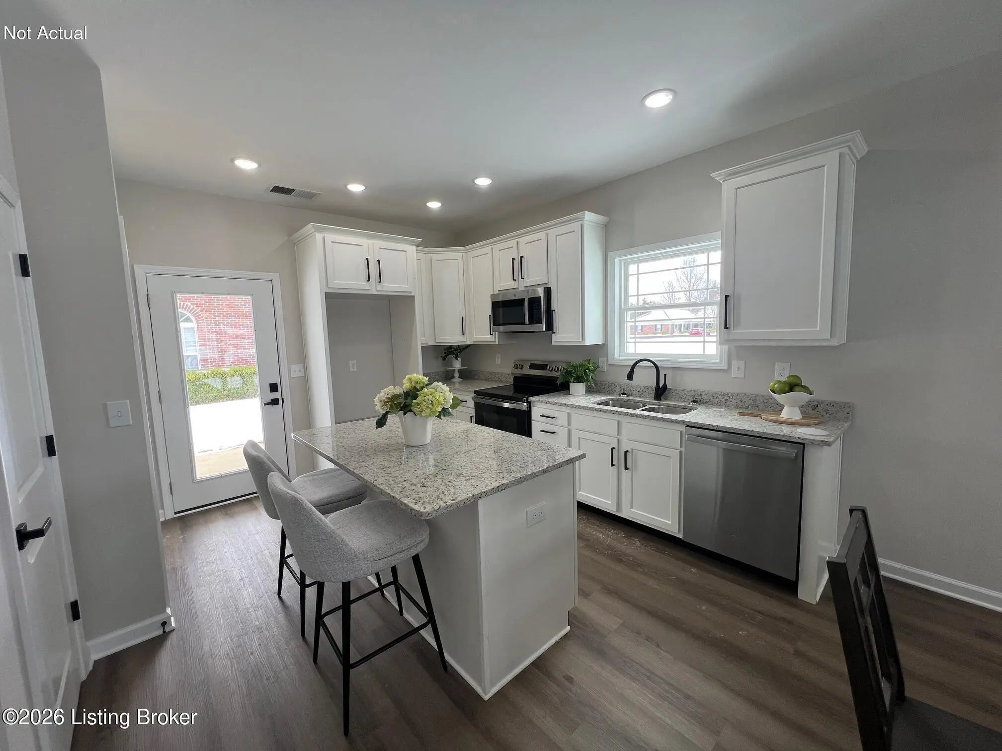 NEW CONSTRUCTION UNDER 210K! Welcome to Brookley Place - Enjoy low-maintenance living in this thoughtfully designed new floor plan offering 1,008 sq. ft. of well-planned space. With 9-ft ceilings and an open layout, the main living area feels bright and connected, featuring a comfortable great room with ceiling fan that flows easily into the eat-in kitchen. The kitchen includes a center island, granite countertops, white cabinetry, and stainless-steel appliances—everything you need for everyday living. The primary bedroom features a private bath and walk-in closet, while the second bedroom is nicely sized with a full bath conveniently located just outside the door, making it ideal for guests, family, or a home office. Relax on the covered back porch and enjoy the benefits of maintenance-free living. This home also includes a 1-year builder's warranty for added peace of mind. Don't miss your opportunity to own new construction in Brookley Place-schedule your showing today! *Not actual: Interior photos are of the adjoining unit.