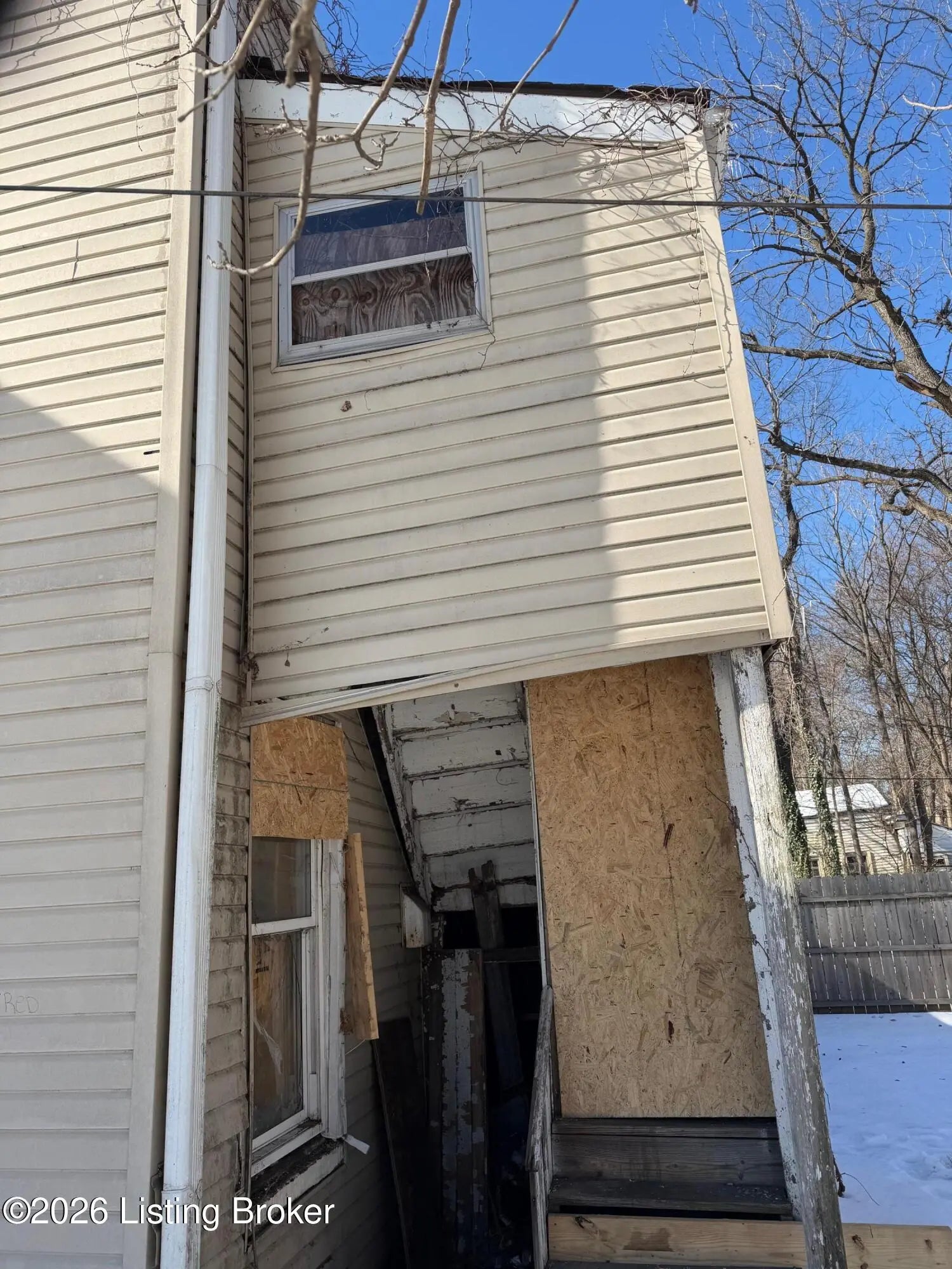 This property offers a solid 3-bedroom, 2 full-bath layout with approximately 1,922 sq. ft. The configuration allows for possible duplex conversion, featuring a separate rear entry to the upper level and a detached 2-car garage. While the property is in need of a complete rehab, it retains a strong structural footprint and offers substantial upside for renovation. A great opportunity to restore and reimagine—ideal for investors, flippers, or buyers seeking a full remodel project.