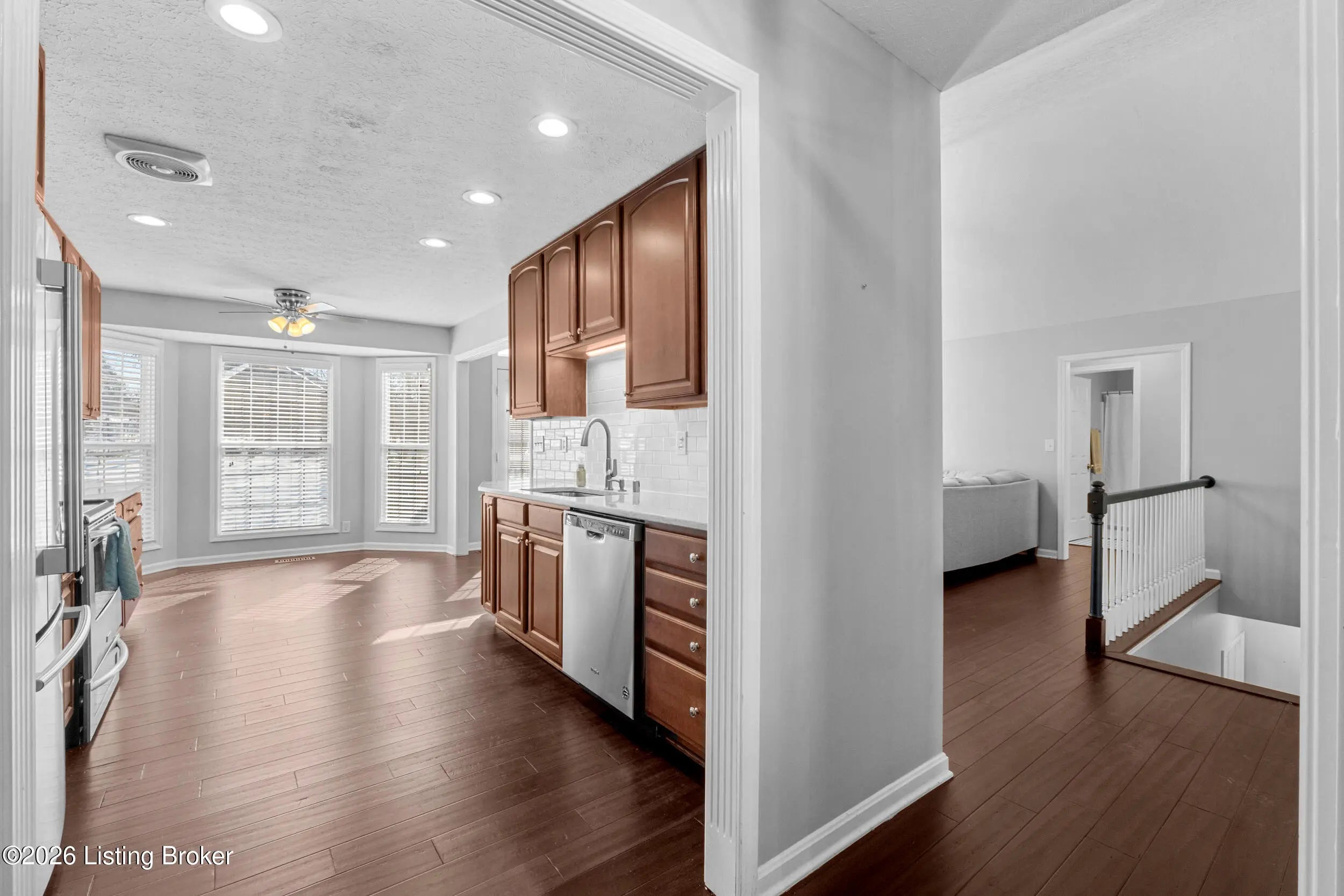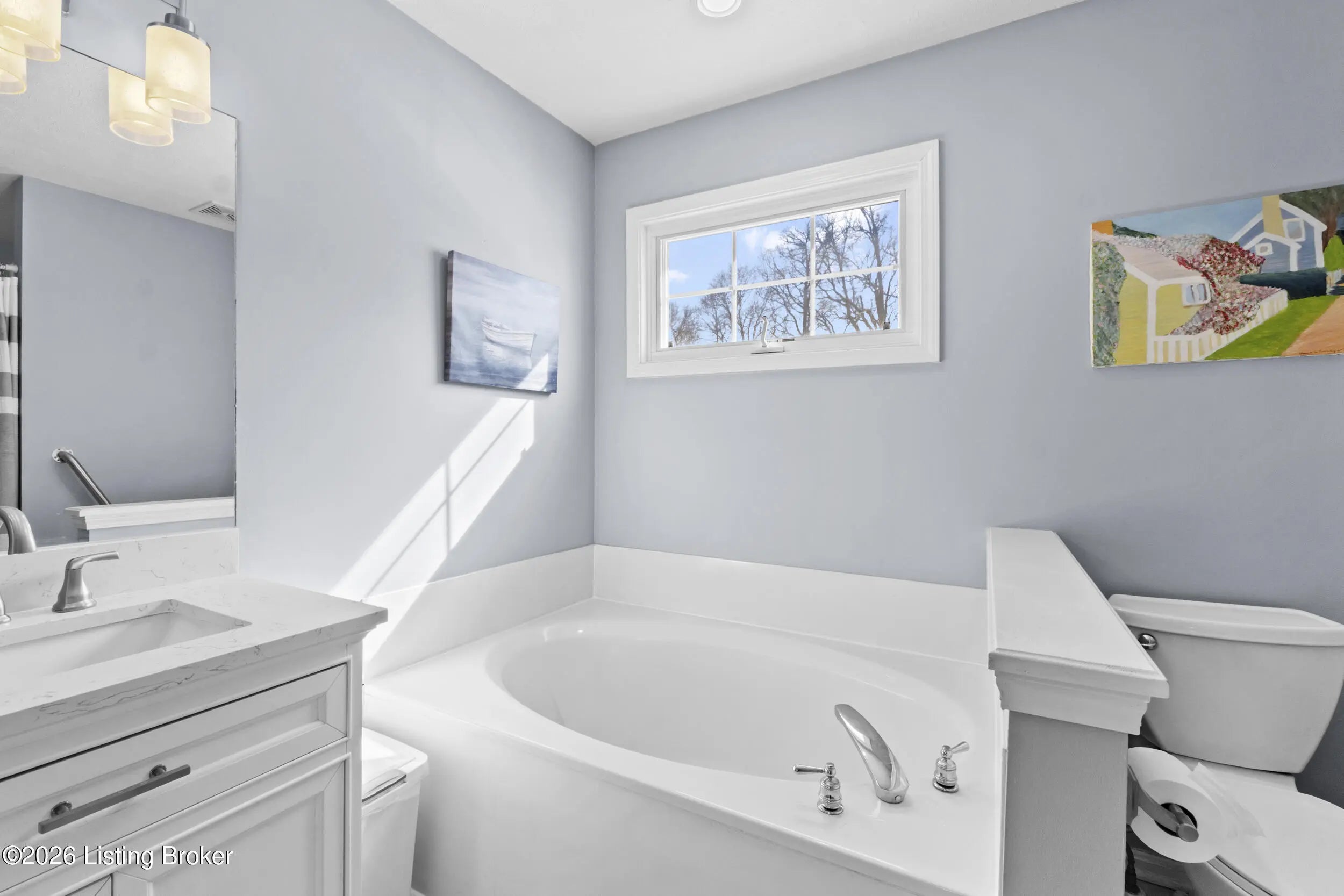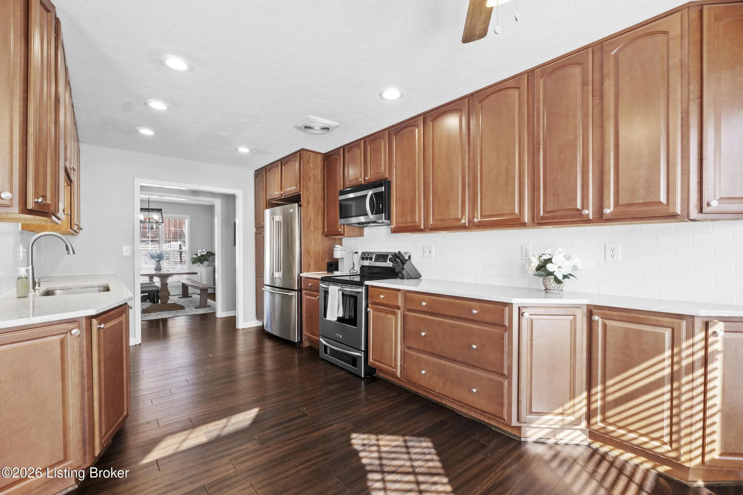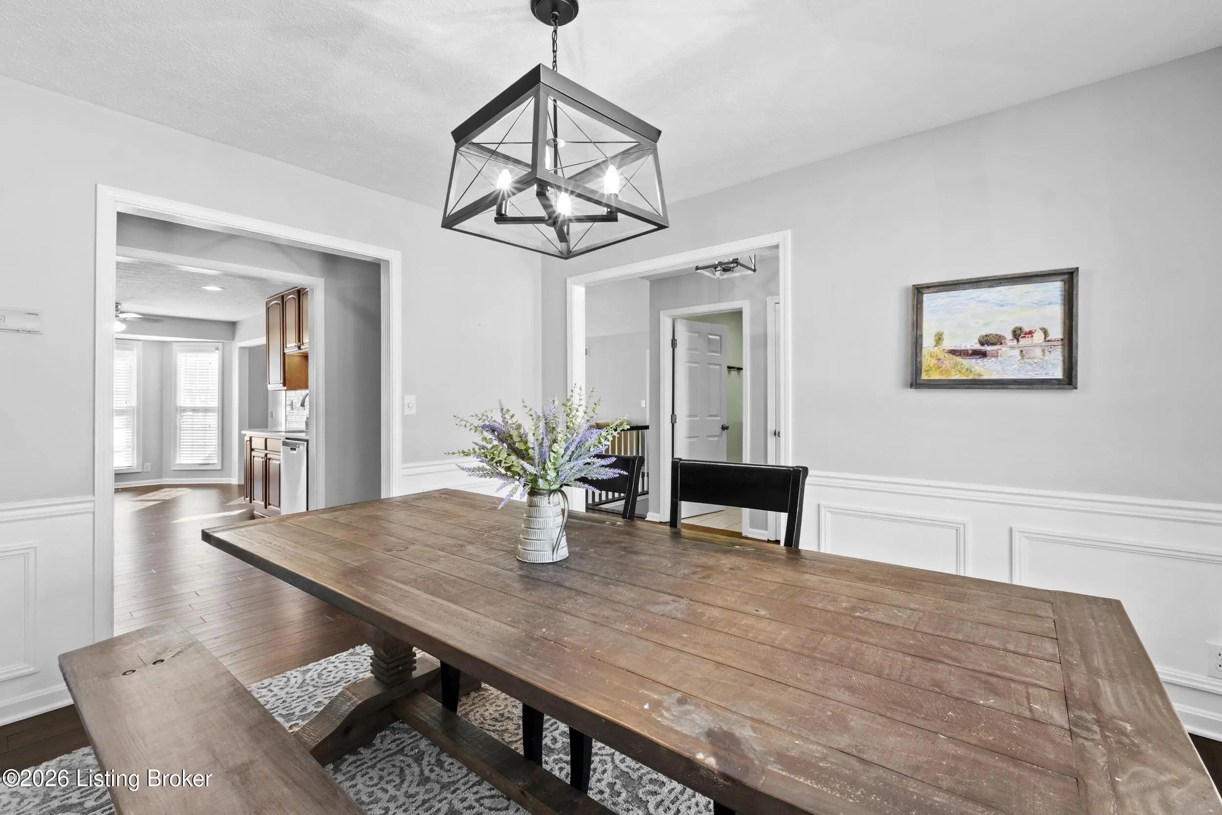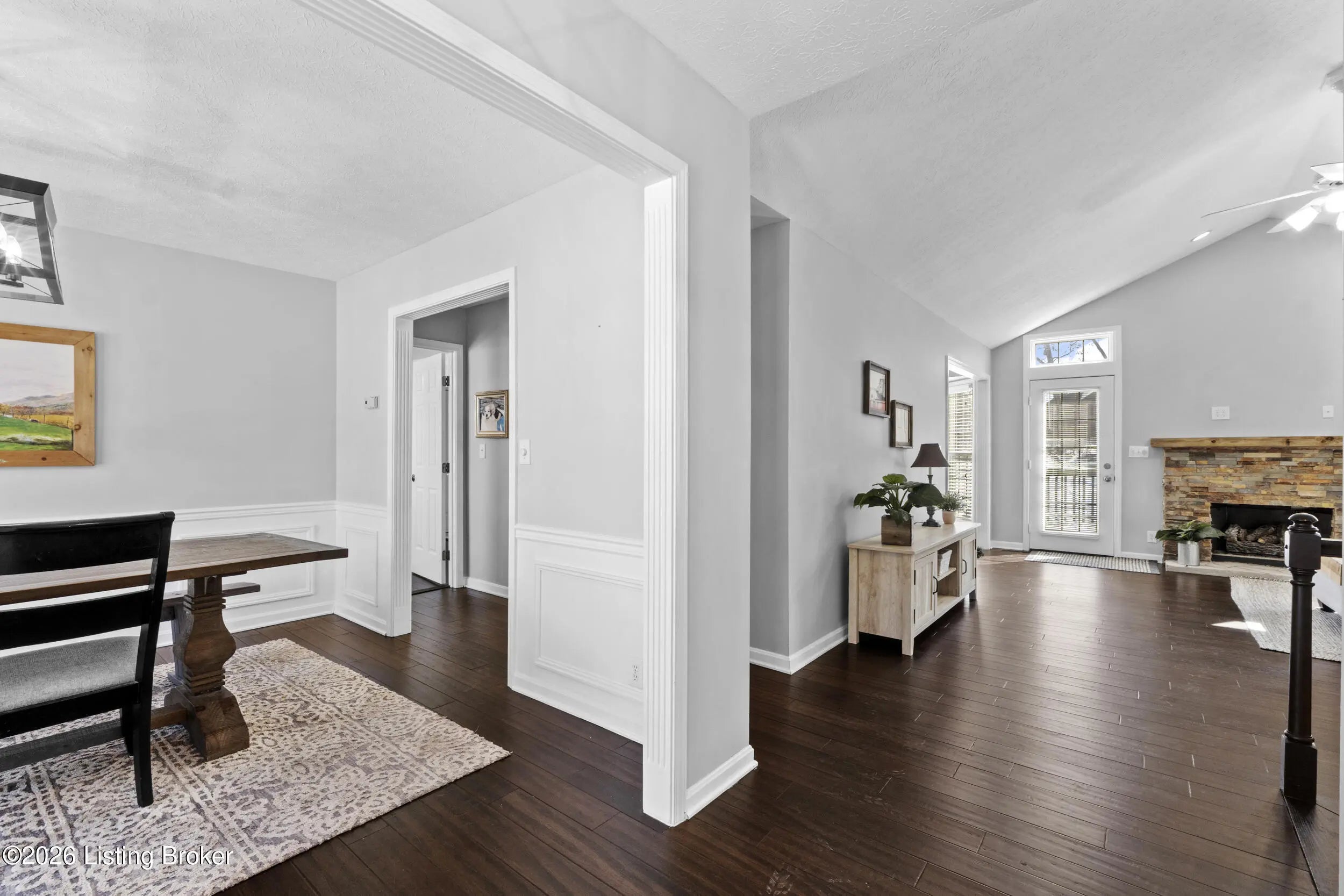 Welcome home to this beautifully maintained 4-bedroom, 3-full-bath ranch with a finished walk-out basement, offering space, comfort, and style throughout. Step inside to a wide, welcoming foyer that opens to a formal dining room accented with elegant picture-frame molding, adding a touch of luxury. The kitchen features custom cabinetry, quartz countertops, and a stylish backsplash, along with a convenient eat-in area perfect for everyday living and entertaining. The vaulted-ceiling living room is warm and inviting with a gas fireplace, ideal for cozy evenings. Just off the living room, step onto the spacious deck and enjoy priceless views year-round. The split bedroom floor plan offers privacy, with two bedrooms and a full bath on one side of the home. The primary suite is a true retreat, featuring an updated bathroom with double vanities, a large tiled walk-in shower, and a relaxing garden tub. A first-floor laundry room adds everyday convenience. The lower level expands your living space with a large family room and second gas fireplace, perfect for a playroom, home theater, or man cave the possibilities are endless. You'll also find an additional bedroom and beautifully updated full bath, ideal for guests or extended living. Throughout the home, you'll appreciate the updated light fixtures, modern door hardware, and newer flooring, all contributing to a fresh, move-in-ready look. This home offers an abundance of storage including the garage with an oversized walk-in storage room, perfect for tools, mowers, extra storage, or even a storm shelter. The neighborhood offers a clubhouse and pool, adding to the lifestyle this home provides. Don't miss your chancethis home truly has it all and won't last long!