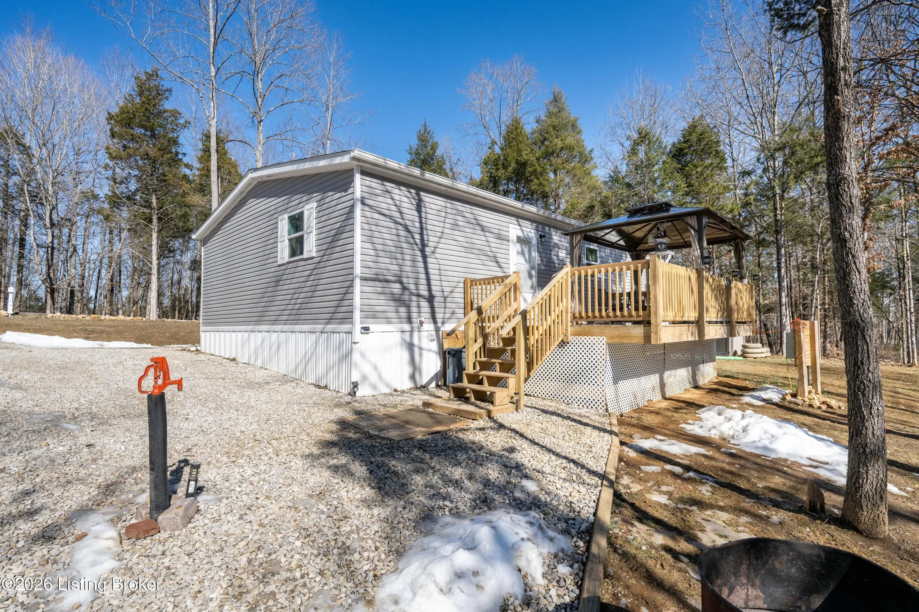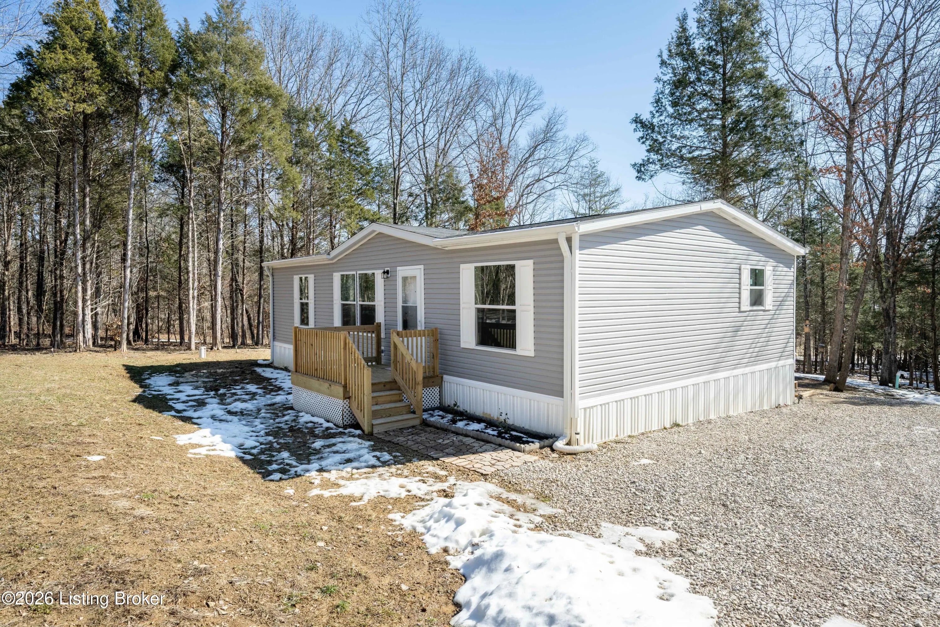 Welcome to peaceful country living in Hardinsburg, Indiana! This well-maintained 1 year old 3 bedroom, 2 full bath manufactured home sits on a beautiful 2.20-total acre property, offering space, privacy, and a quiet rural setting. The sale includes both the lot the home sits on PLUS the additional lot located directly across the street, about .5+- acre, providing added flexibility for recreation, gardening, or future possibilities. Inside, you'll find a comfortable and functional layout featuring a spacious living area, an open kitchen and dining area, and plenty of natural light throughout. The home offers a split-bedroom design with a private primary suite and two additional bedrooms ideal for guests, a home office, or hobbies. Step outside and enjoy the peaceful surroundings from the surroundings from the covered deck  perfect for relaxing mornings or evening gatherings. The property also features a detached outbuilding/garage for extra storage or workshop space, along with a 50-amp electrical RV hookup, making it ideal for travelers, guests, or additional recreational use. If you've been searching for acreage, privacy, and a move-in ready home with room to spread out, this one is a must-see!