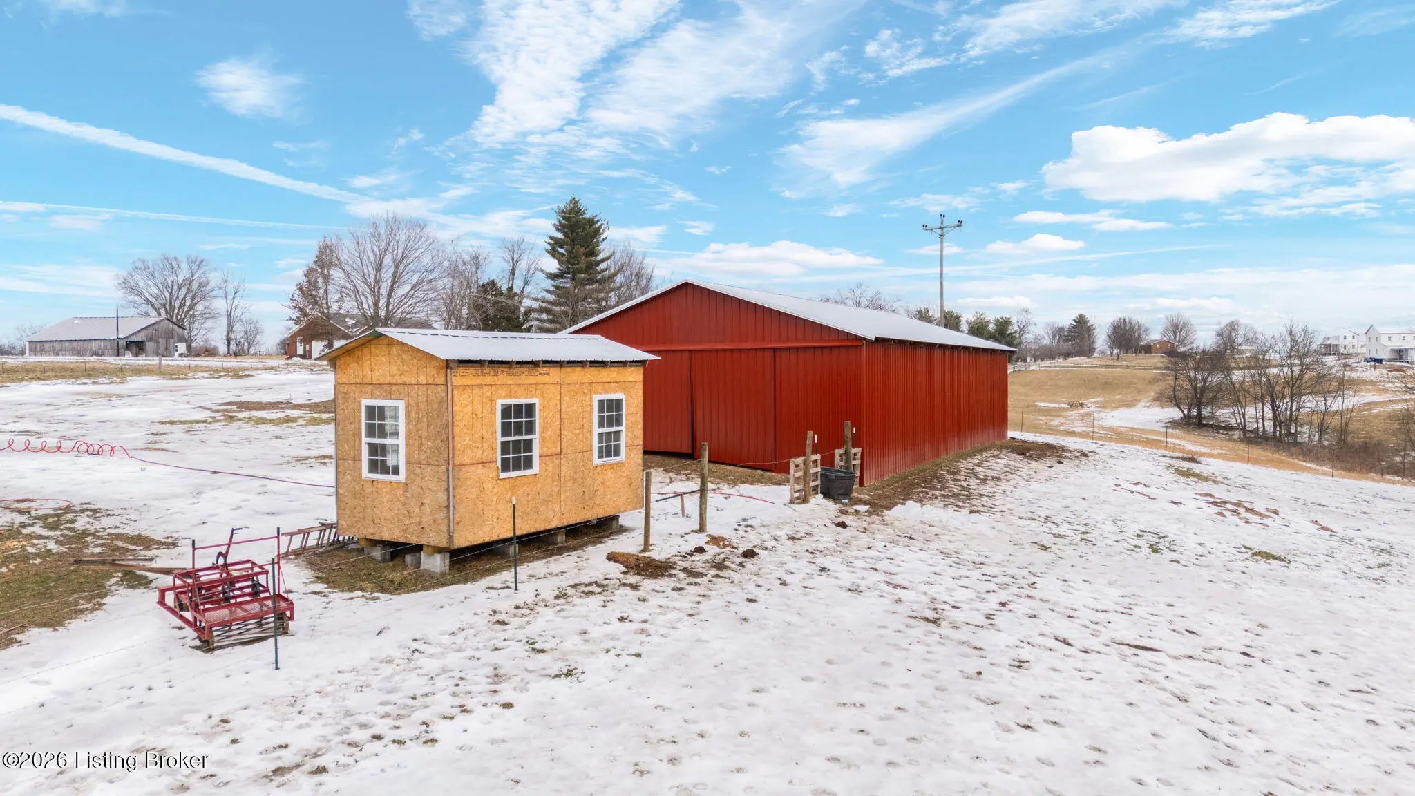 Newly built in 2025 this Amish-style farm sits on 20 fully fenced acres. This farm is designed for traditional, off-grid living, this property has no electricity, water, or sewer. Improvements include an outhouse, a cellar for storage, and a barn with stables. The land offers open pasture and a wet-weather creek, ideal for livestock, farming, or self-sufficient living. Sub flooring. One or more photo(s) was virtually staged.