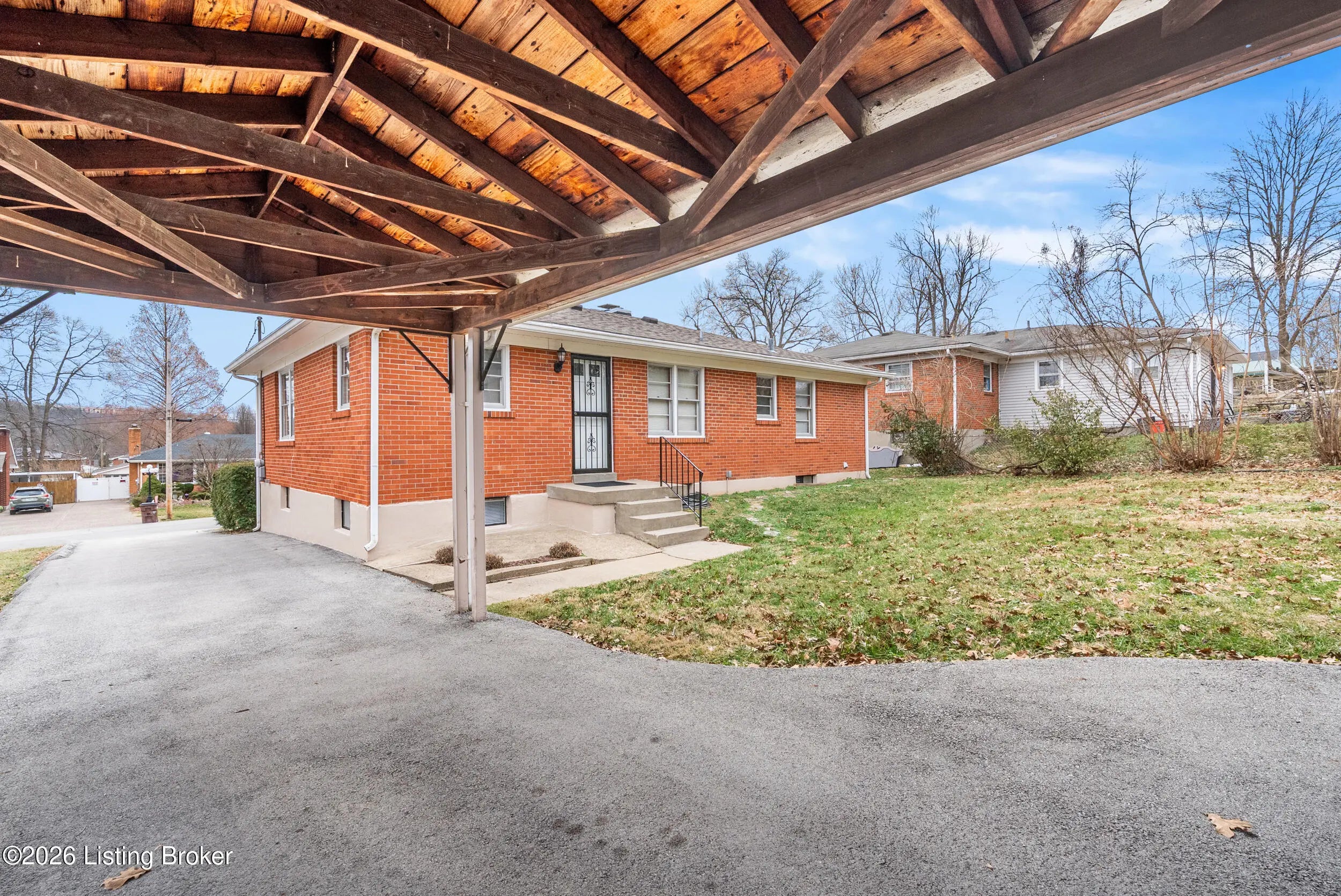 PARK RIDGE AREA PALATKA IROQUOIS PARK AREA Stately Mid-Century Brick Ranch with view, basement, garage, large yard, dead end street, gorgeous hardwood original floors, Full Bath remodeled with tile and soaking tub. First impression is a vast living room / dining combination, partial finished basement 1/2 bath. Perfect layout for entertaining. HIKERS DREAM LOCATION also close to Jefferson Forest and Waverly Park, Walk in back with few steps. Garage/carport has 3 sides closed in. Garden, Fun, and Games in backyard plus large storage shed. Third bedroom can be used as a flex space office, den, or separate dining room. Front driveway has extra parking spot. HSA Home Warranty provided at closing. Fireplace is aesthetic focal point, but seller has never used it--it is non-working Has a gorgeous picture window view of faraway hills. Partly finished basement. Many updates but character of original home is intact. Garage is 3 sided & does not have overhead door. Carport for extra parking and covered space for get-togethers.