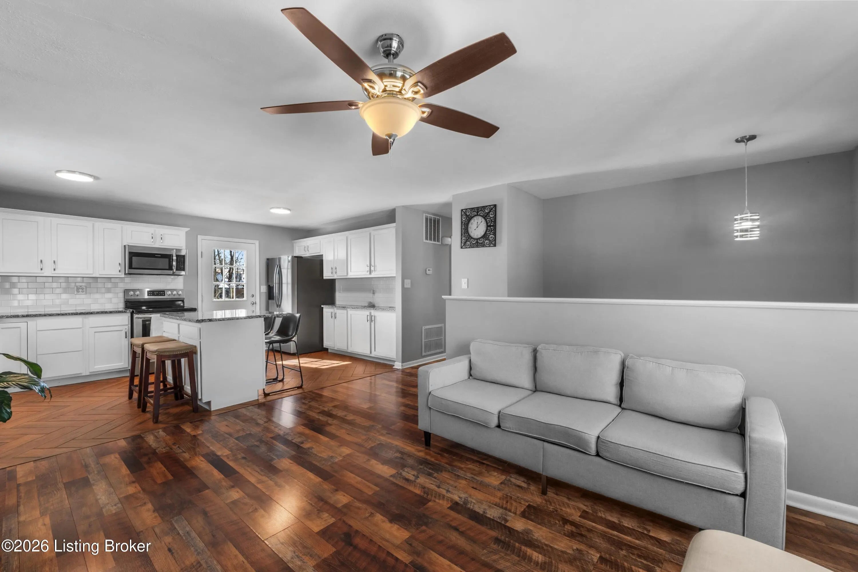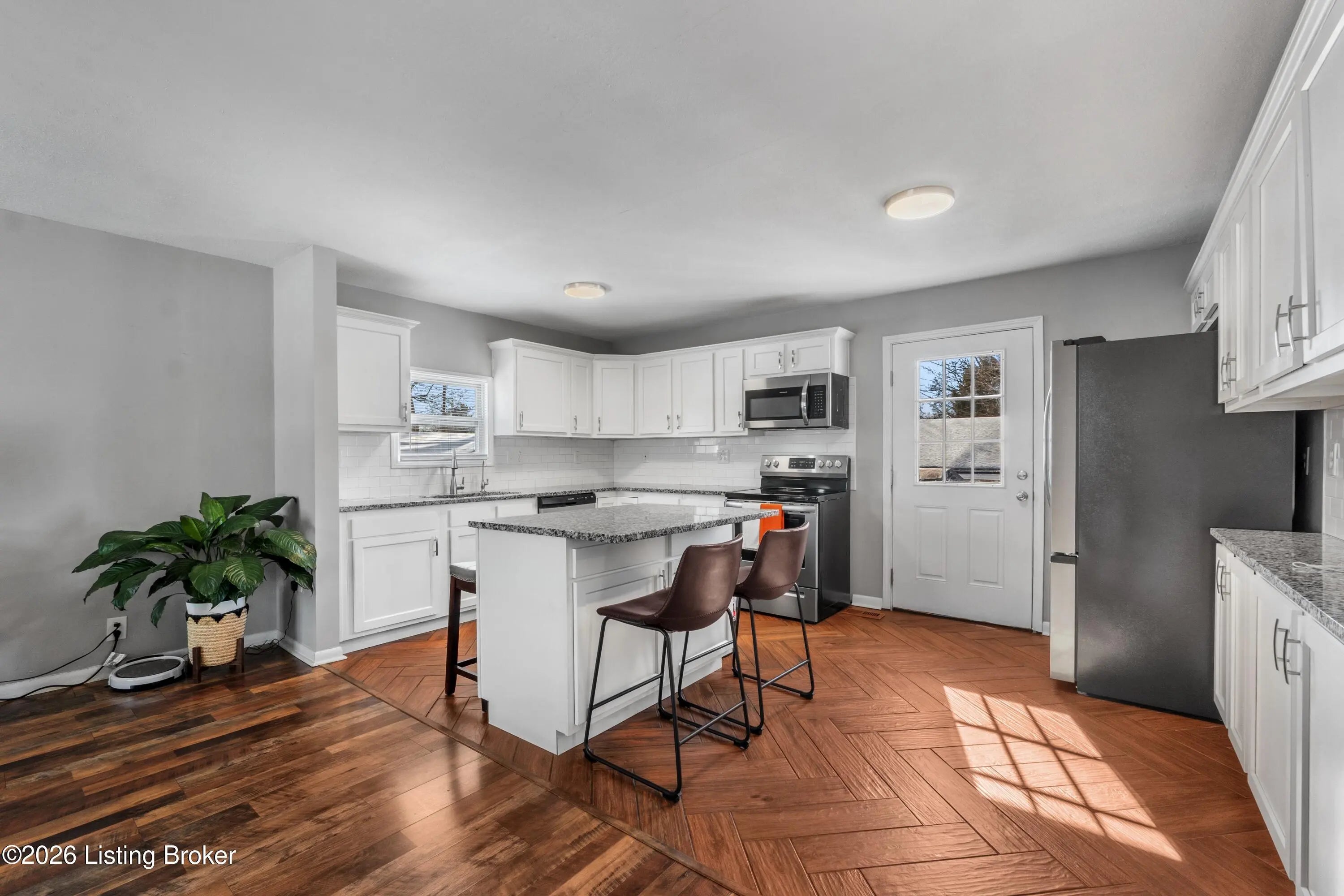 Welcome to 7804 Davhal Drive, a beautifully updated brick bi-level offering space, flexibility, and one of the best garage setups you'll find in this price range. Located in the desirable Broadfern neighborhood, this home delivers the perfect balance of comfort and functionality. The main level features a bright open living area and a fully renovated kitchen with white shaker cabinetry, granite countertops, subway tile backsplash, stainless steel appliances, and a spacious island ideal for everyday living or entertaining. The distinctive herringbone flooring adds warmth and character to the space. Down the hallway are three generously sized bedrooms and a beautifully updated full bath with double vanity and tiled surround. The lower level expands your living space with a massive family room anchored by a wood-burning fireplace, perfect for movie nights, gatherings, or creating a second living zone. This level also includes a fourth bedroom, a second full bath, and additional storage/laundry space making it ideal for guests, multi-generational living, or work-from-home flexibility. Step outside to a large backyard with a two-tier deck and patio area designed for entertaining. An oversized 24' x 32' detached 2-3 car garage offering incredible storage, workshop potential, or space for hobbies and equipment. With 4 bedrooms, 2 full baths, multiple living areas, and exceptional garage space, this home offers versatility that's hard to match. Move-in ready and waiting for its next owner. Schedule your private showing today!!