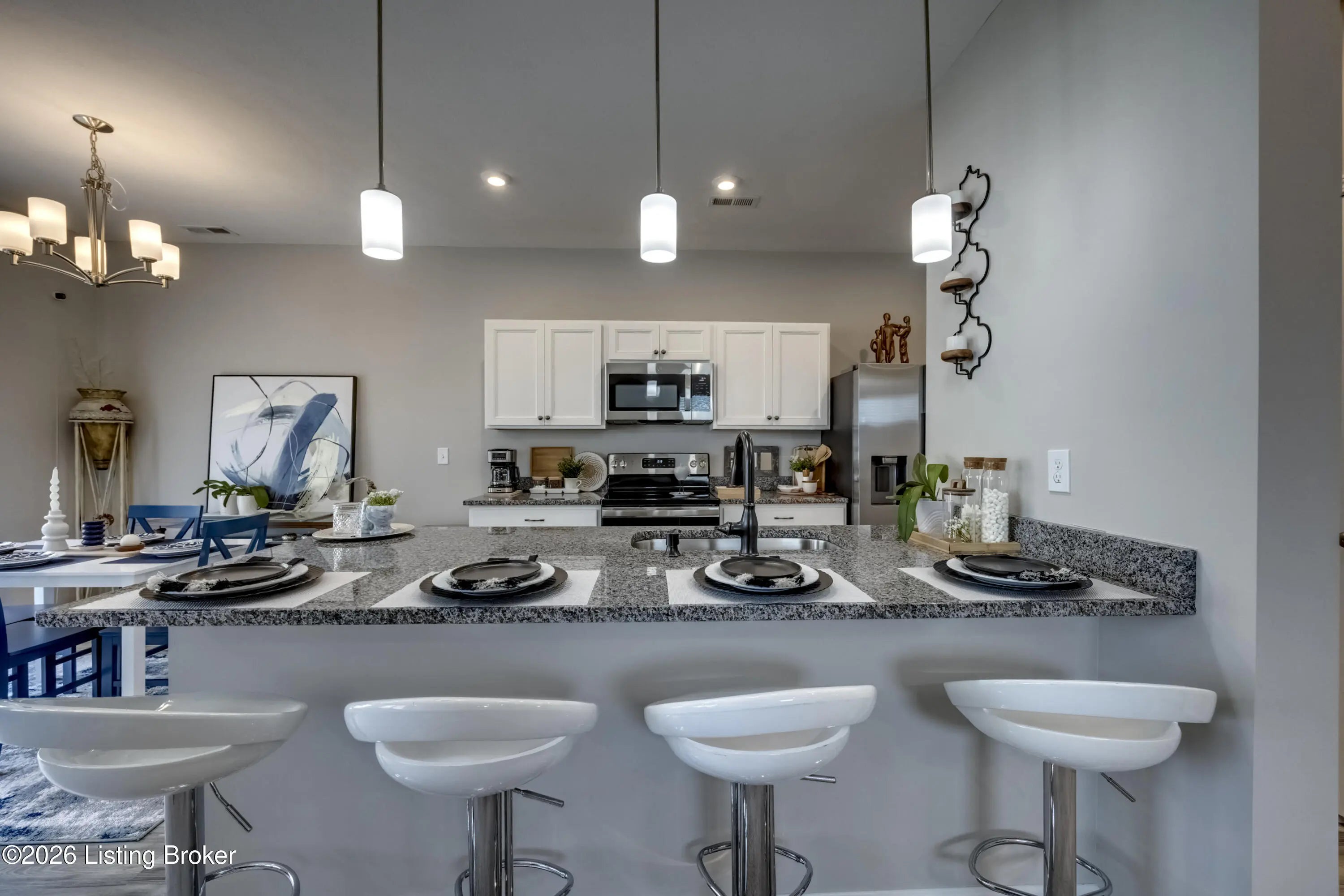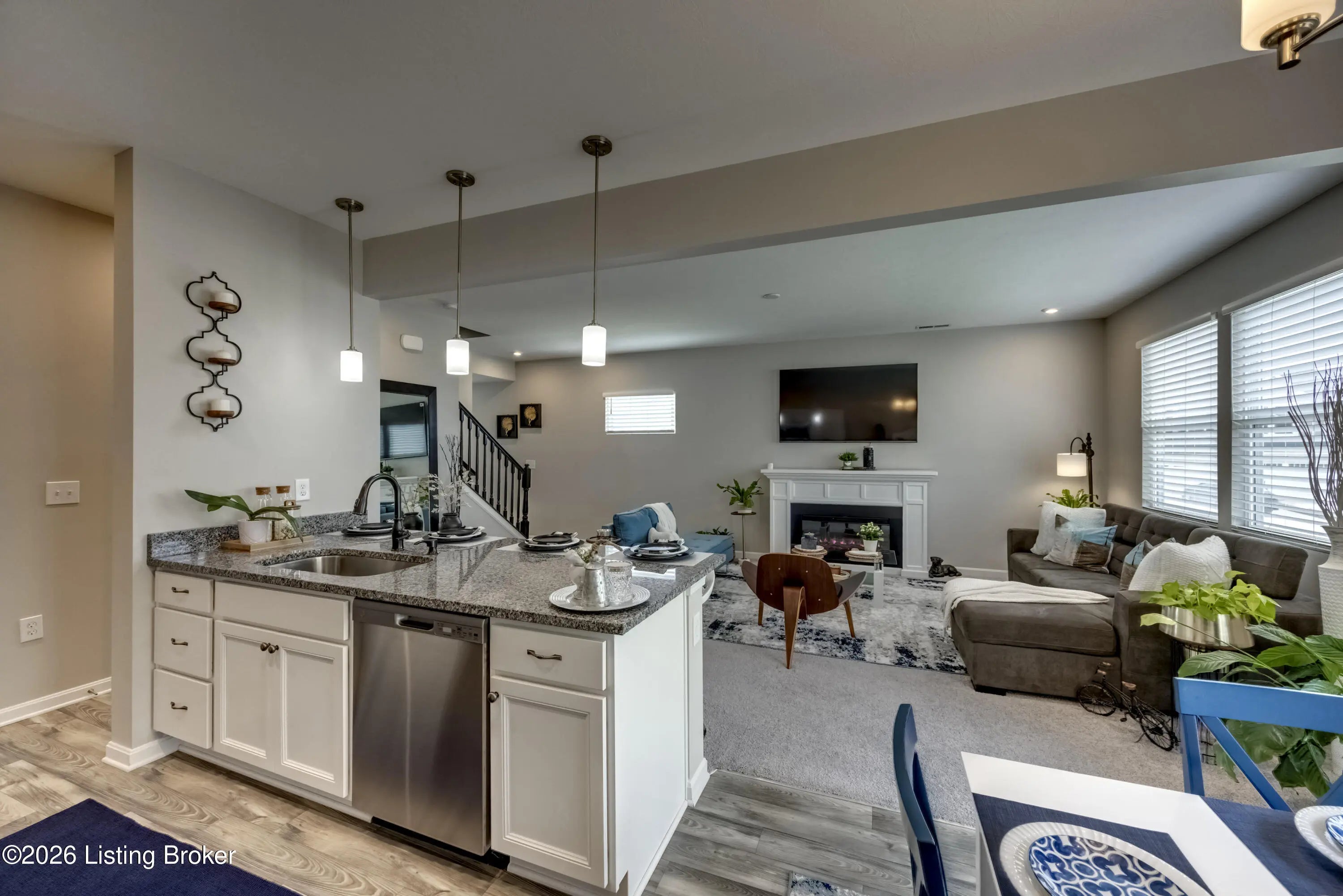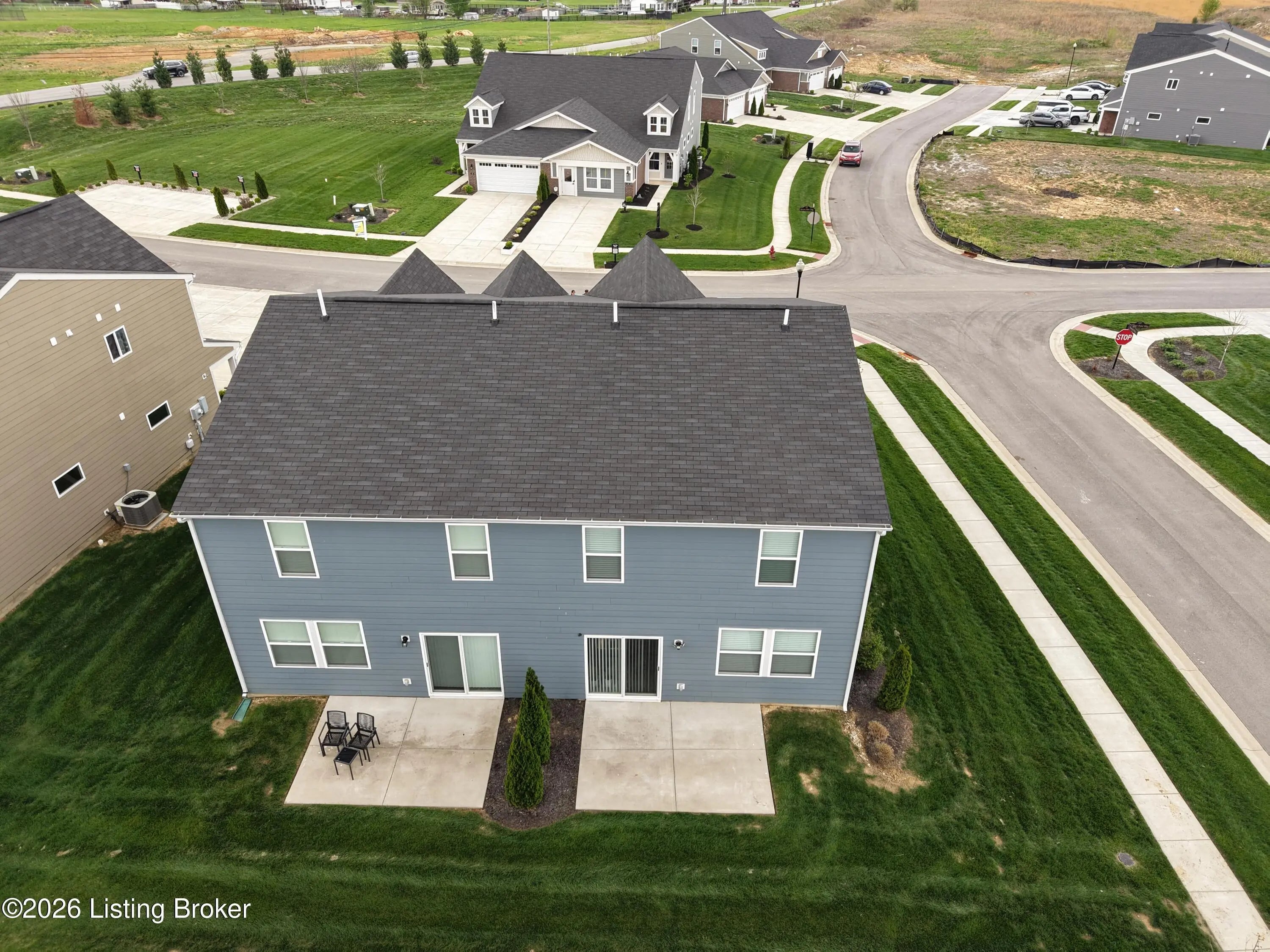 Trendy paired patio home by Fischer Homes in the beautiful new community of Harvest Point featuring an open concept design with 9ft 1st floor ceiling and an island kitchen with stainless steel appliances, gleaming granite countertops, pantry and walk-out morning room all open to the huge family room. Upstairs you'll find the large homeowners retreat with an on-suite that includes a double bowl vanity, walk-in shower and walk-in closet. There are 2 additional bedrooms, a centrally located hall bathroom, spacious loft and 2nd floor laundry room. 2 bay garage. This move-in-ready home also comes with a sprinkler system already installed and ready for the new owner to activate it. HOA fee covers: building exterior, roof, lawn care and snow removal from street and driveway.