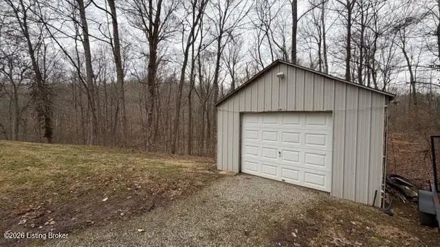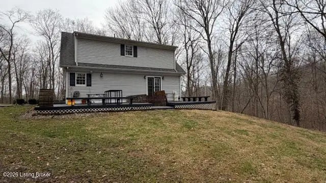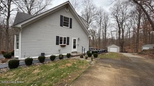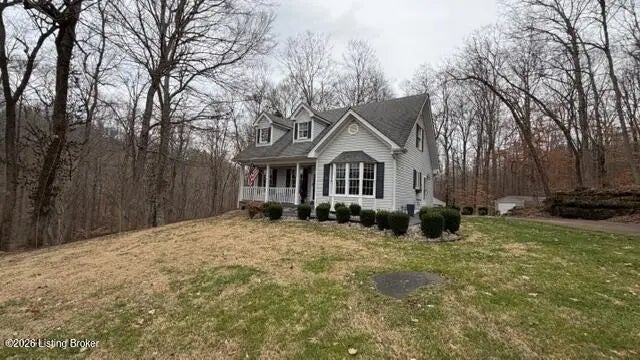 Looking for wooded acreage near all the amenities of historic Bardstown? Let's go take a look at this wonderful property at 3456 Bennett's Lane. Lovely 3BR 2.5 Bath vinyl Cape Cod with finished walkup basement & 2 one car detached garages situated on 7.99 wooded acres with nice creek & road frontage on both Bennett's Lane & Boston Rd. Home a spacious Living Room with lovely laminate flooring, Tiled Kitchen/Dining areas that include granite countertops, plenty of cabinetry & convenient breakfast bar. First floor primary suite offers laminate flooring, tiled primary bath with granite countertops. Desirable first floor tiled laundry room with ½ Bath. Two additional bedrooms with large closets & full tiled bath are housed upstairs. Venture downstairs to enjoy the Den as well as Office or could be used as a 4th Bedroom. Basement also houses a fully enclosed storm shelter in the concrete in the basement with an exit door on the top side. Outdoor features include a nice covered front porch perfect to enjoy your morning coffee as well as a large rear deck with scenic views of the wooded acreage and two one-car garages. Beautiful views in every direction & plenty of wildlife to enjoy. The feel of the country yet near all the amenities of historic Bardstown. The perfect place to call home. Let's go take a look today!