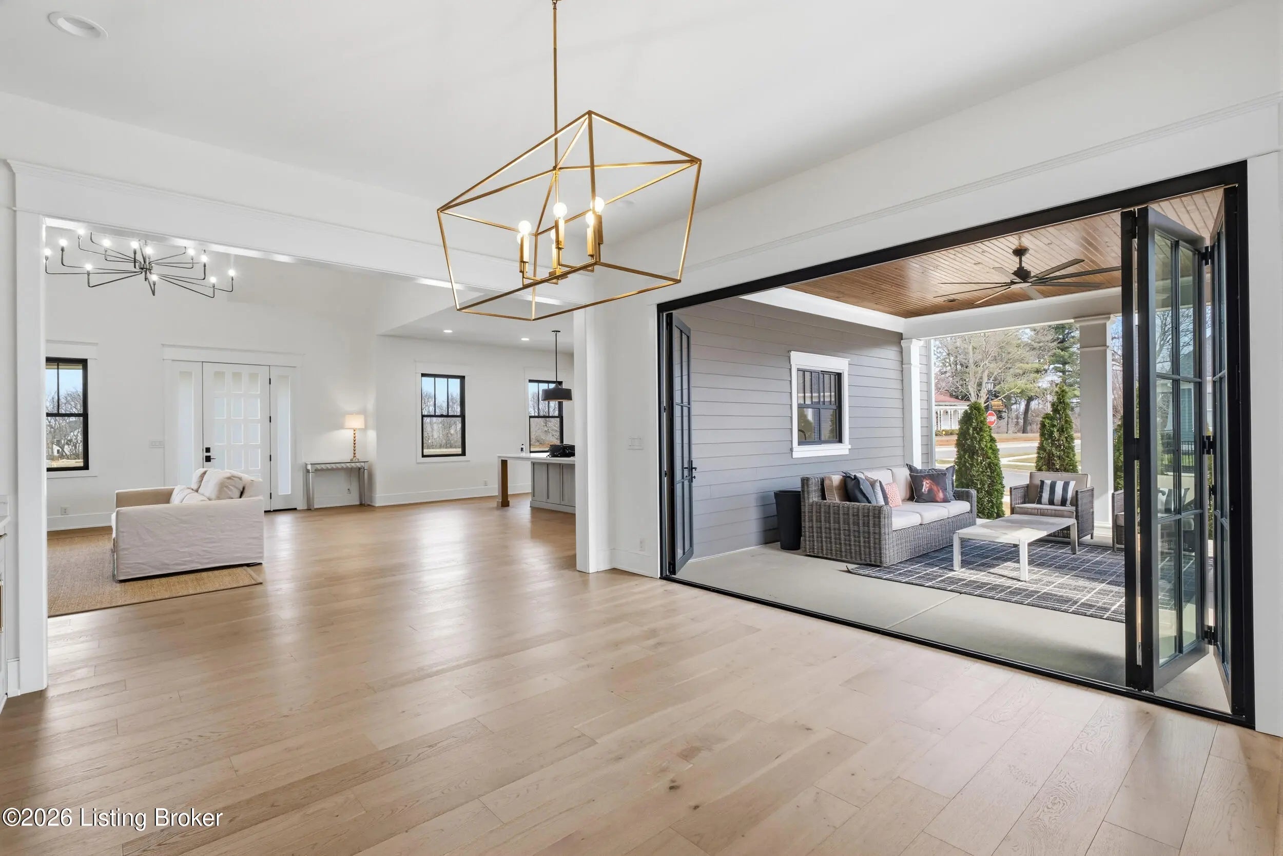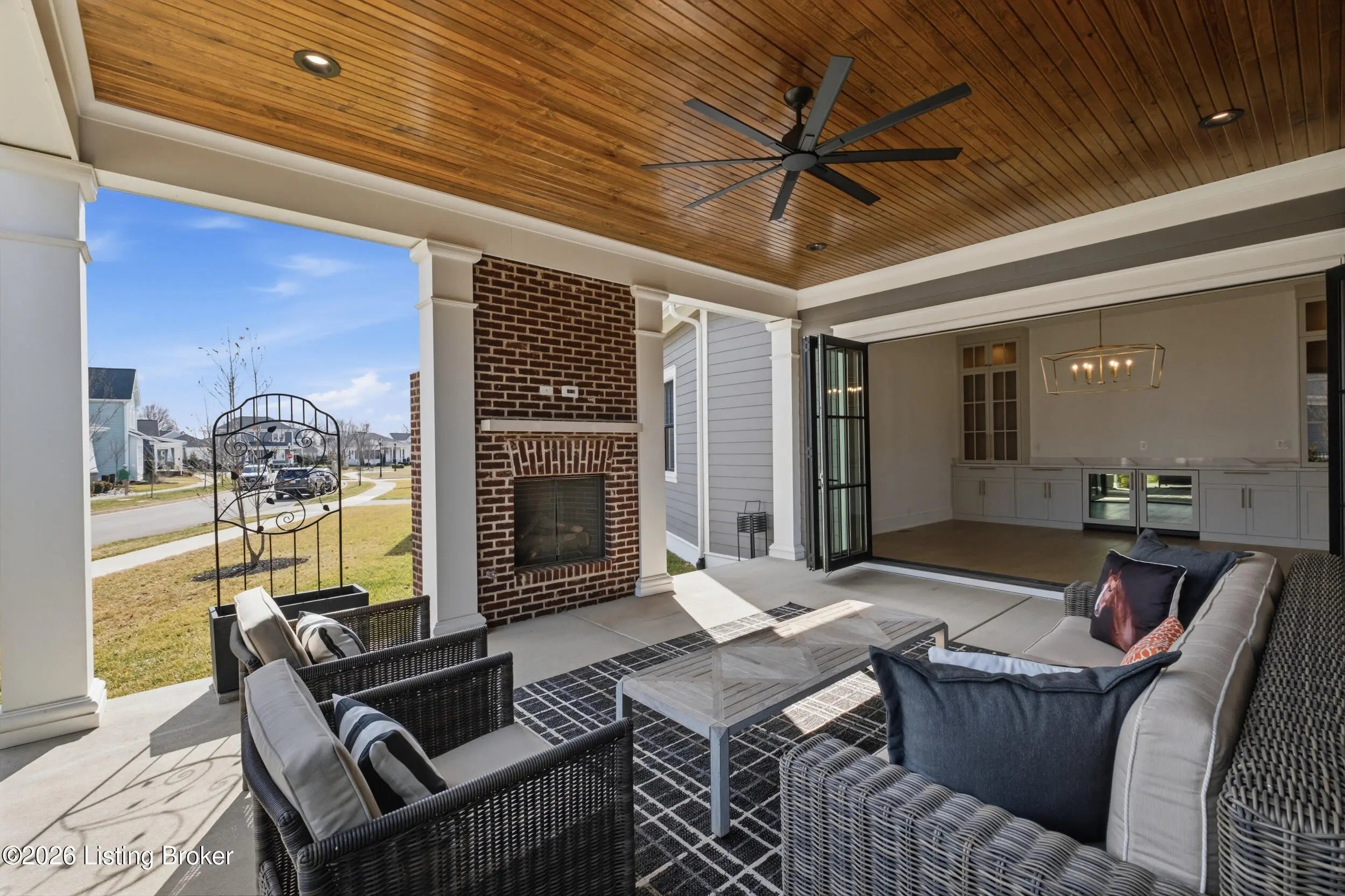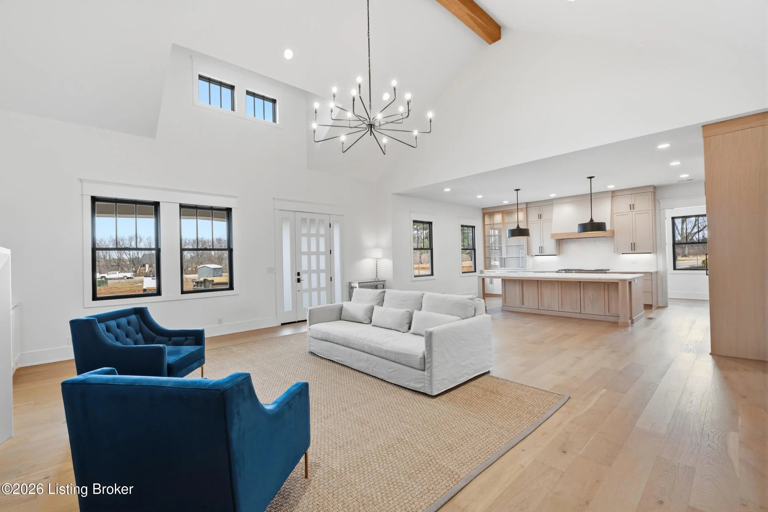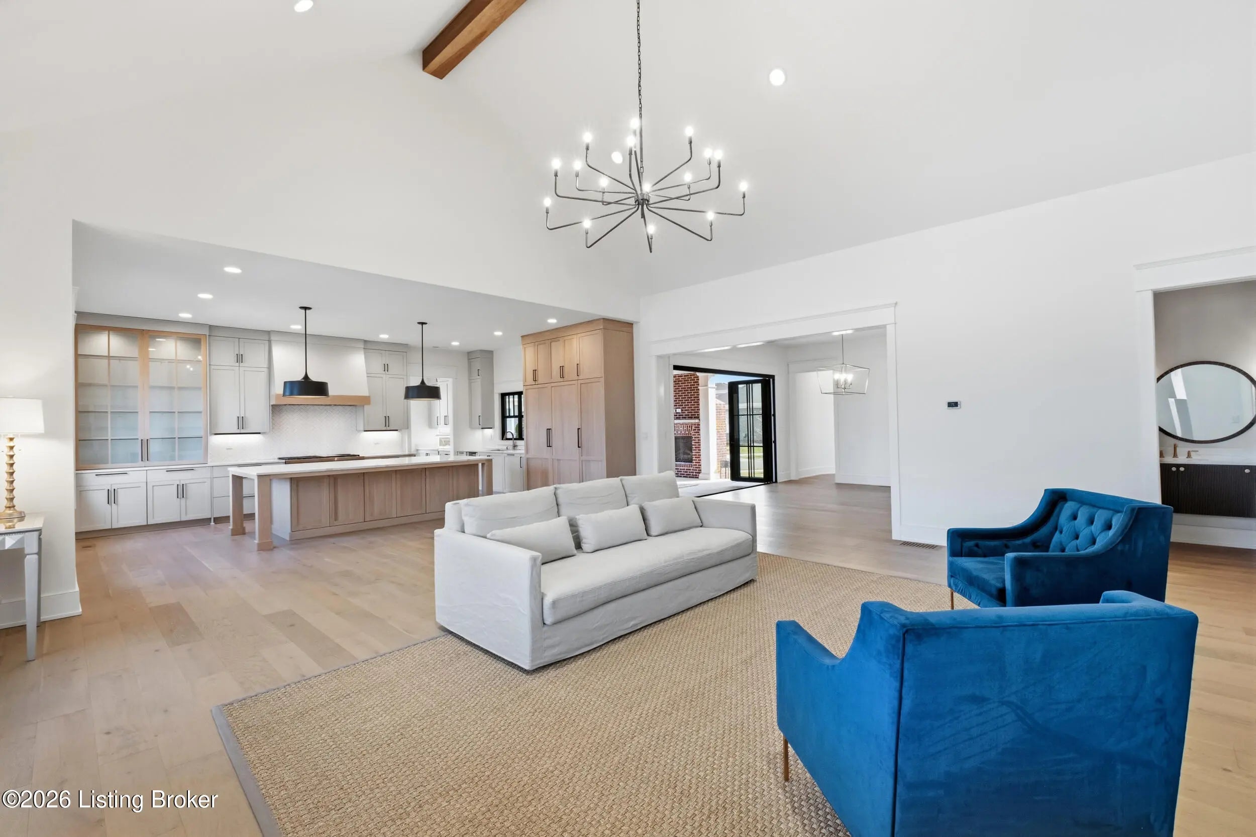 This stunning custom-built, single-story residence offers an elevated standard of luxury living with 4 generously sized bedrooms, 3 full bathrooms, and 2 half baths. Gracefully positioned on a prominent corner lot in the prestigious Oldham County section of Norton Commons, this exceptional home is a true showpiece. From the welcoming front porch to the refined architectural details, every element reflects thoughtful design and bespoke craftsmanship. Inside, soaring vaulted ceilings and abundant natural light create an elegant, airy ambiance throughout the expansive open-concept living spaces - perfectly suited for both refined entertaining and everyday luxury. The gourmet kitchen is outfitted with high-end, chef-caliber appliances and anchored by a scullery, offering both elevated function and timeless sophistication. The gracious dining area flows seamlessly to a charming covered side porch, ideal for alfresco dining and relaxed gatherings. The primary suite serves as a serene private retreat, featuring a spa-inspired bath with soaking tub, separate walk-in shower, and curated finishes that evoke a luxury resort experience. Everyday living is elevated by the thoughtful placement of the laundry room and mudroom, conveniently accessible from both the primary closet and dining area. The finished lower level with 10-foot ceilings offers exceptional flexibility, showcasing a refined recreation lounge with kitchenette, a versatile office or playroom, a half bath, and two additional bedrooms connected by a stylish Jack-and-Jill bath - perfect for hosting guests or accommodating multi-generational living. Completing this remarkable home is an oversized 3-car garage with generous storage and the added benefit of a state-of-the-art geothermal energy system for comfort, efficiency, and sustainability. A rare opportunity to own a masterfully crafted residence that seamlessly blends bespoke design, luxury finishes, and modern living in one of Louisville's most coveted communities.