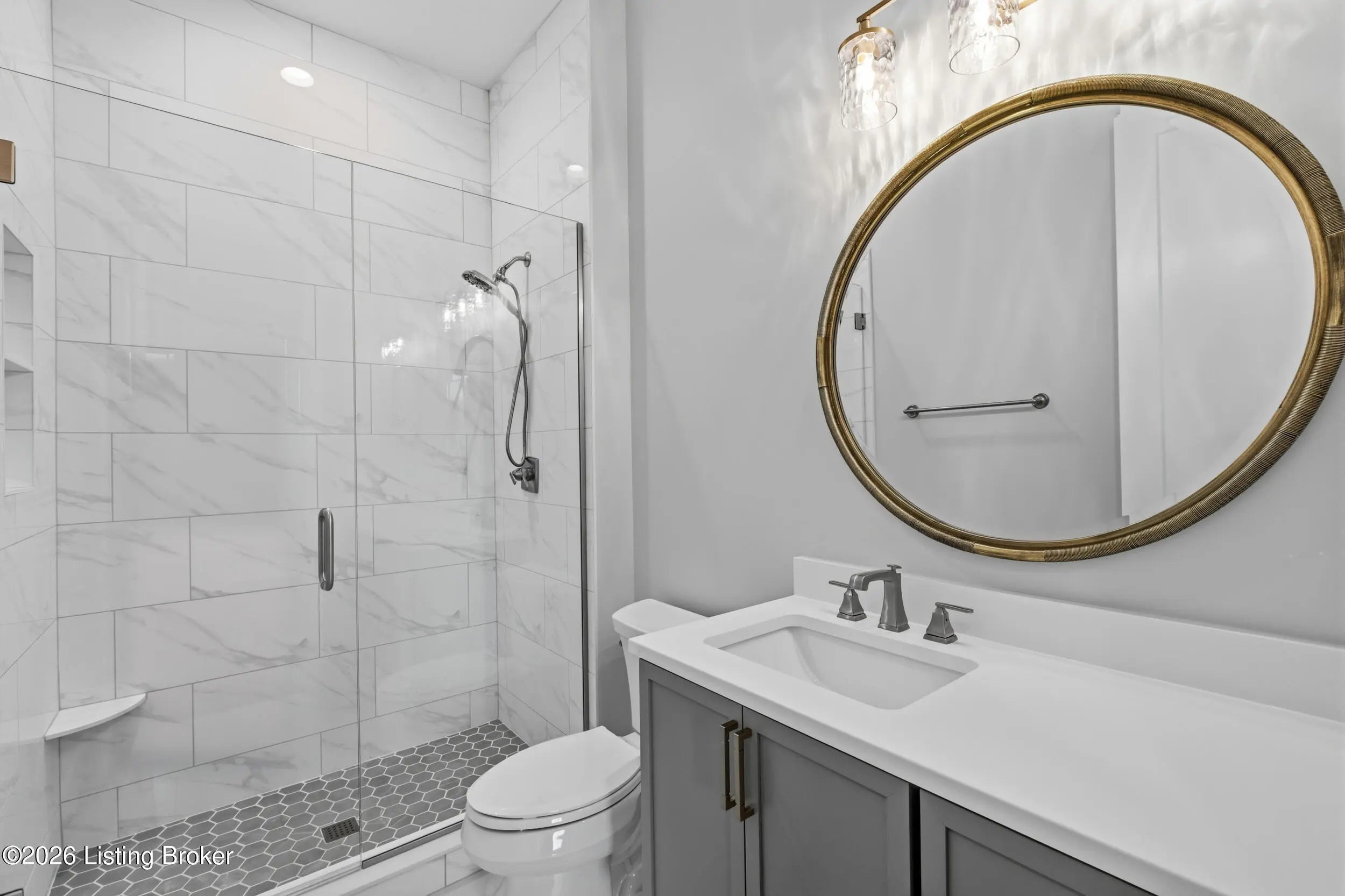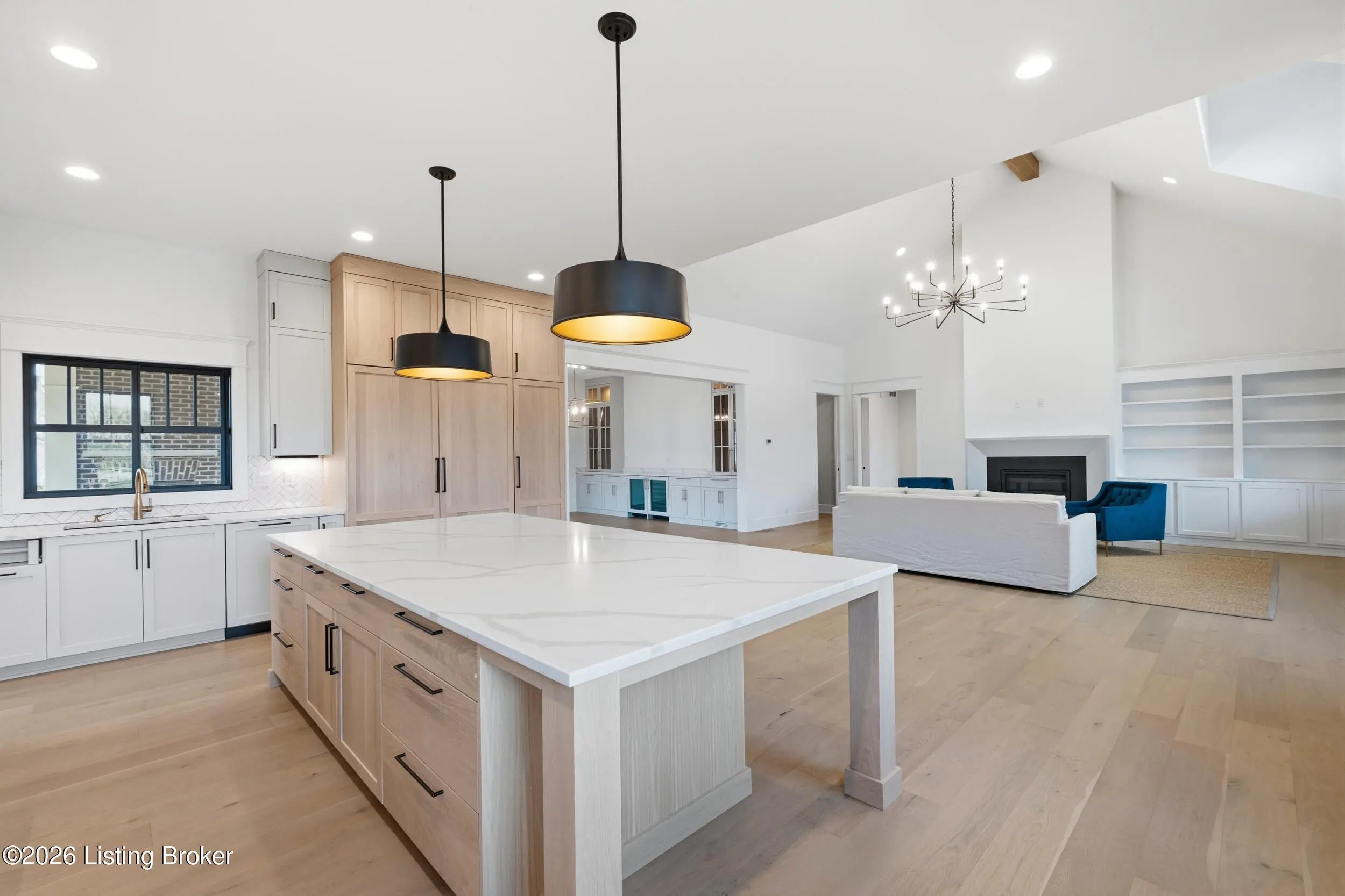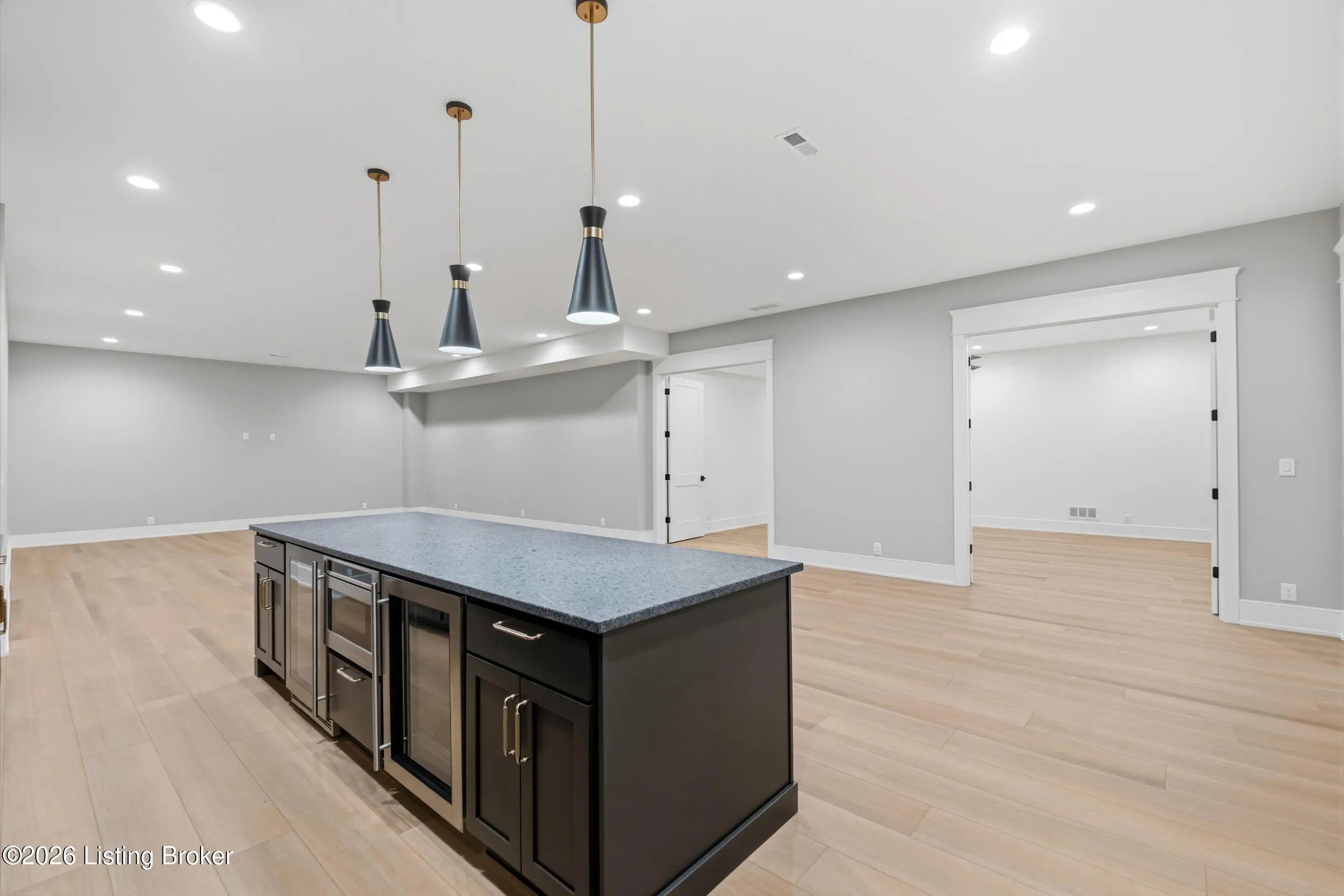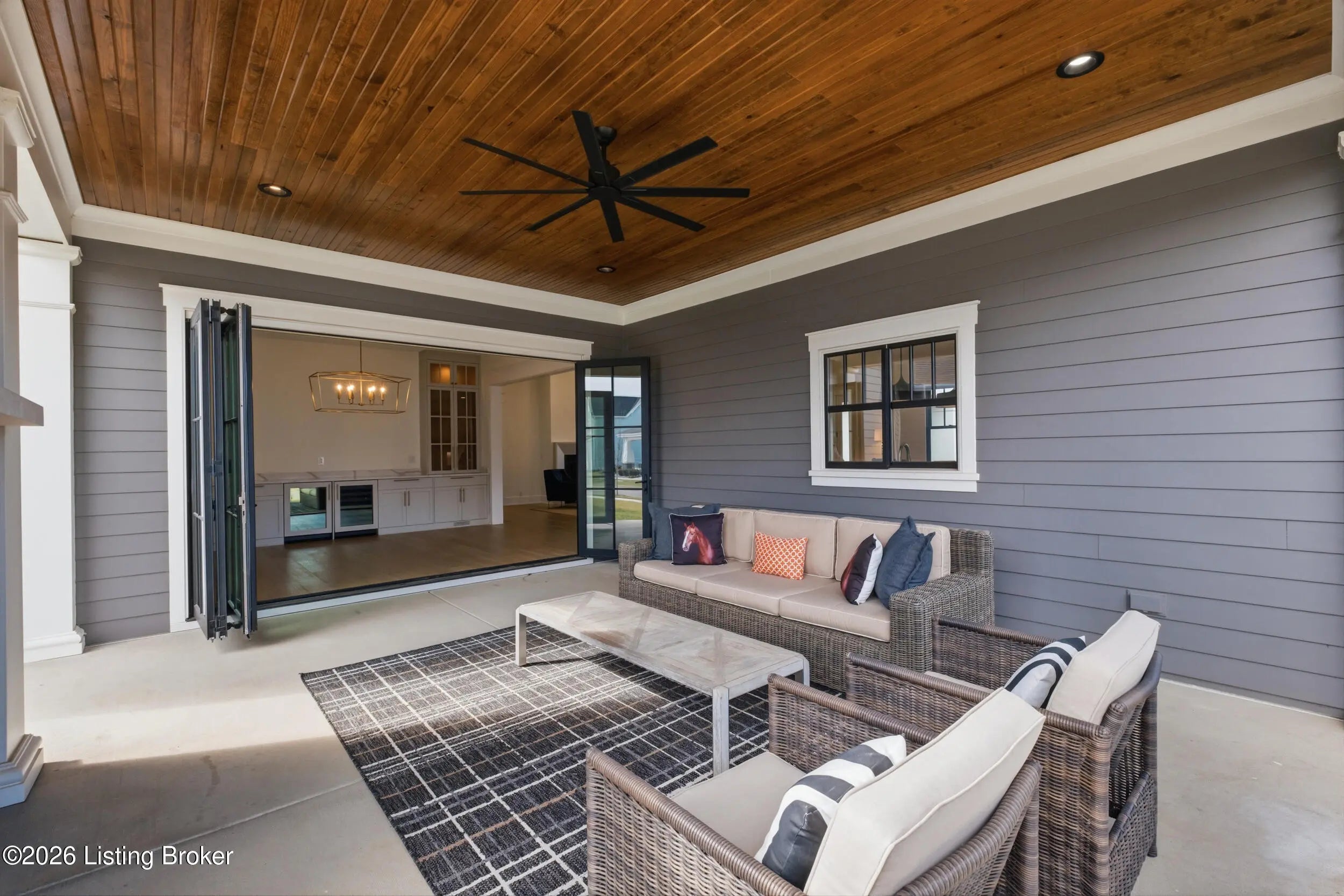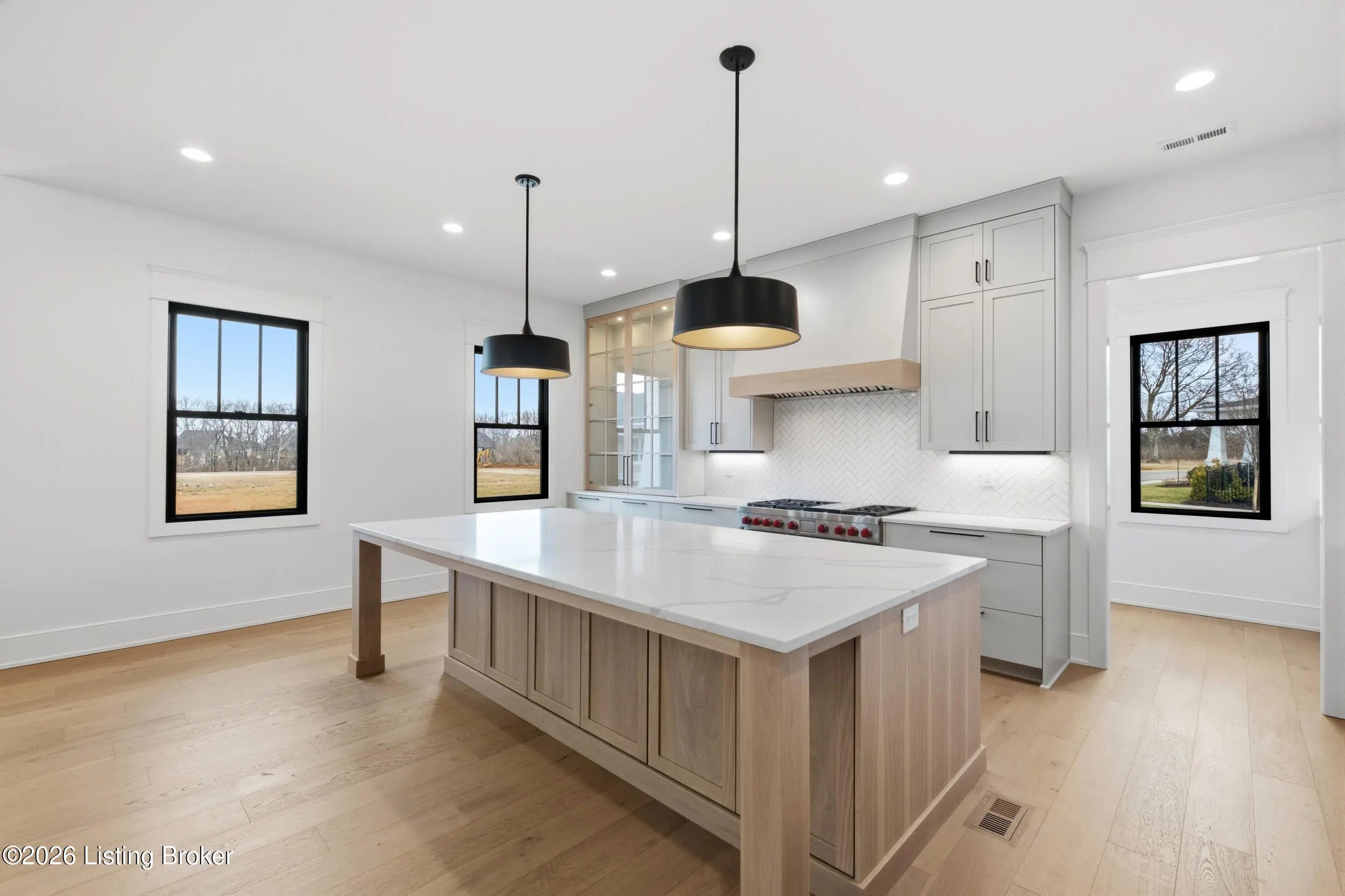 This stunning custom-built, single-story residence offers an elevated standard of luxury living with 4 generously sized bedrooms, 3 full bathrooms, and 2 half baths. Gracefully positioned on a prominent corner lot in the prestigious Oldham County section of Norton Commons, this exceptional home is a true showpiece. From the welcoming front porch to the refined architectural details, every element reflects thoughtful design and bespoke craftsmanship. Inside, soaring vaulted ceilings and abundant natural light create an elegant, airy ambiance throughout the expansive open-concept living spaces - perfectly suited for both refined entertaining and everyday luxury. The gourmet kitchen is outfitted with high-end, chef-caliber appliances and anchored by a scullery, offering both elevated function and timeless sophistication. The gracious dining area flows seamlessly to a charming covered side porch, ideal for alfresco dining and relaxed gatherings. The primary suite serves as a serene private retreat, featuring a spa-inspired bath with soaking tub, separate walk-in shower, and curated finishes that evoke a luxury resort experience. Everyday living is elevated by the thoughtful placement of the laundry room and mudroom, conveniently accessible from both the primary closet and dining area. The finished lower level with 10-foot ceilings offers exceptional flexibility, showcasing a refined recreation lounge with kitchenette, a versatile office or playroom, a half bath, and two additional bedrooms connected by a stylish Jack-and-Jill bath - perfect for hosting guests or accommodating multi-generational living. Completing this remarkable home is an oversized 3-car garage with generous storage and the added benefit of a state-of-the-art geothermal energy system for comfort, efficiency, and sustainability. A rare opportunity to own a masterfully crafted residence that seamlessly blends bespoke design, luxury finishes, and modern living in one of Louisville's most coveted communities.