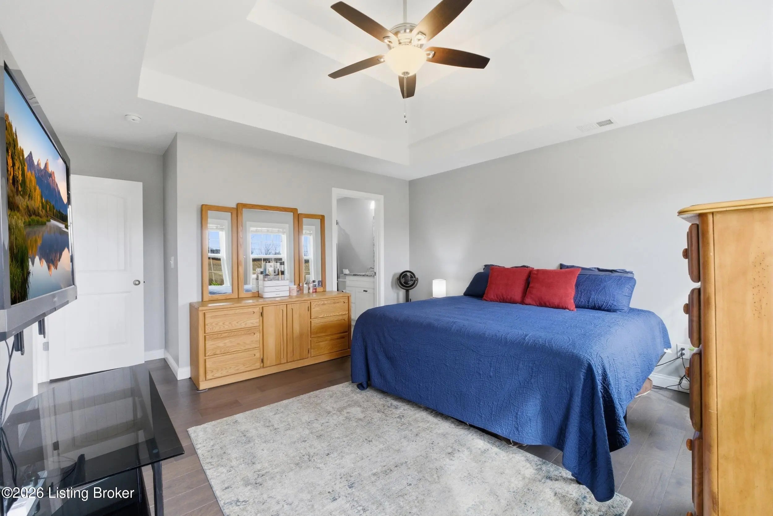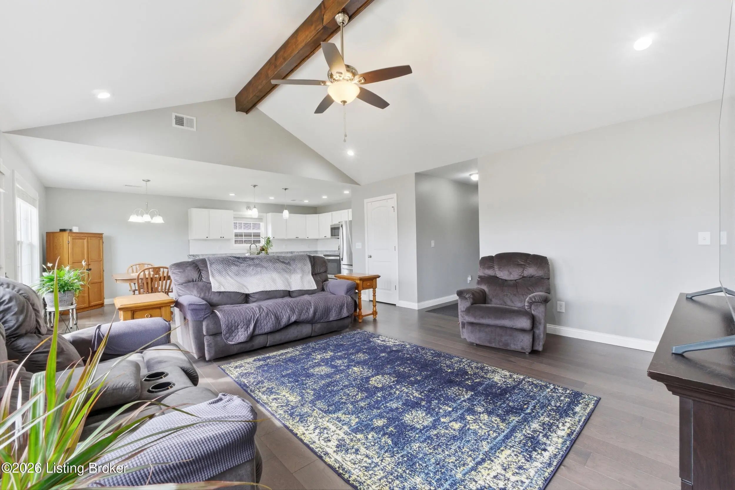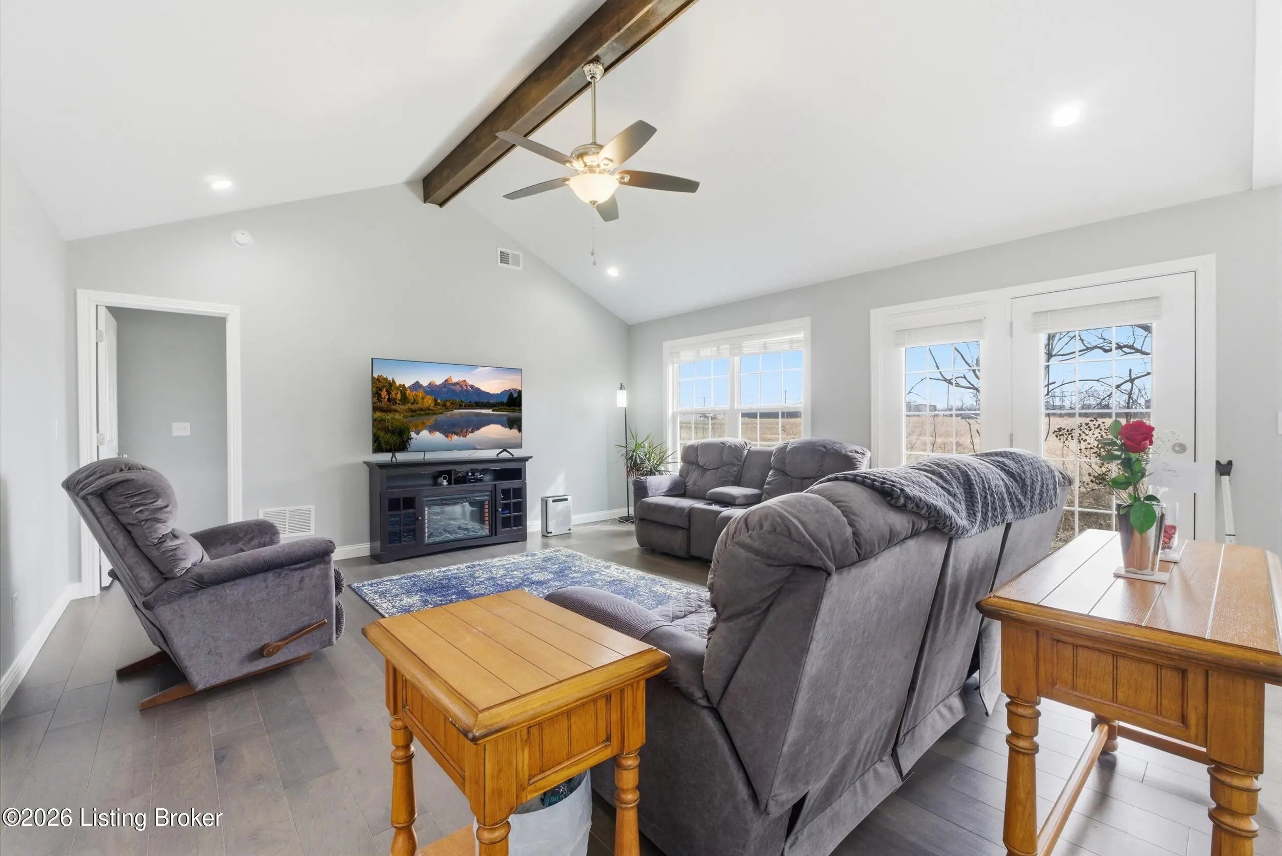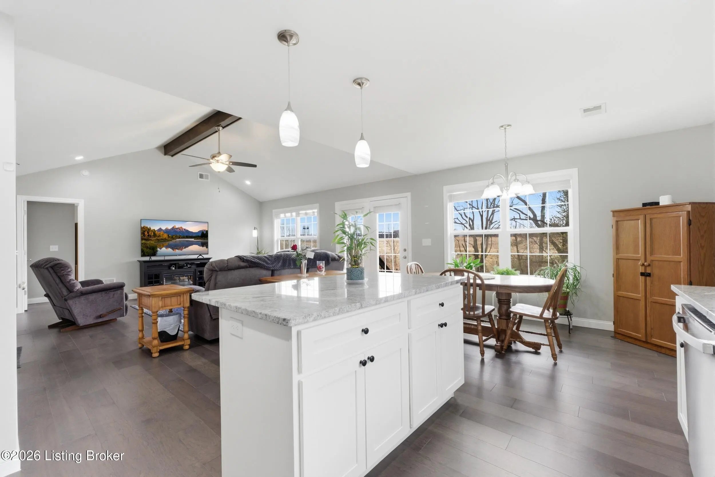 Impeccably maintained and with a picture-perfect lawn, this stylish ranch in Oak Ridge is truly a home run! Just three years old and still feeling brand new, this home features gorgeous plank flooring throughout, stunning stone countertops, and sleek stainless steel kitchen appliances. Natural light pours into the open-concept living space through two sets of double windows and patio doors, creating a bright and welcoming atmosphere. Thoughtfully designed vaulted and tray ceilings enhance the sense of space while adding warmth and architectural charm. Step outside to a relaxing rear patio that's perfect for morning coffee or evening wind downs. A spacious laundry room and a two-car garage with built-in shelving provide everyday convenience and ample storage. This beautifully maintained home offers style, comfort, and functionality in one exceptional package. Schedule your private showing today!