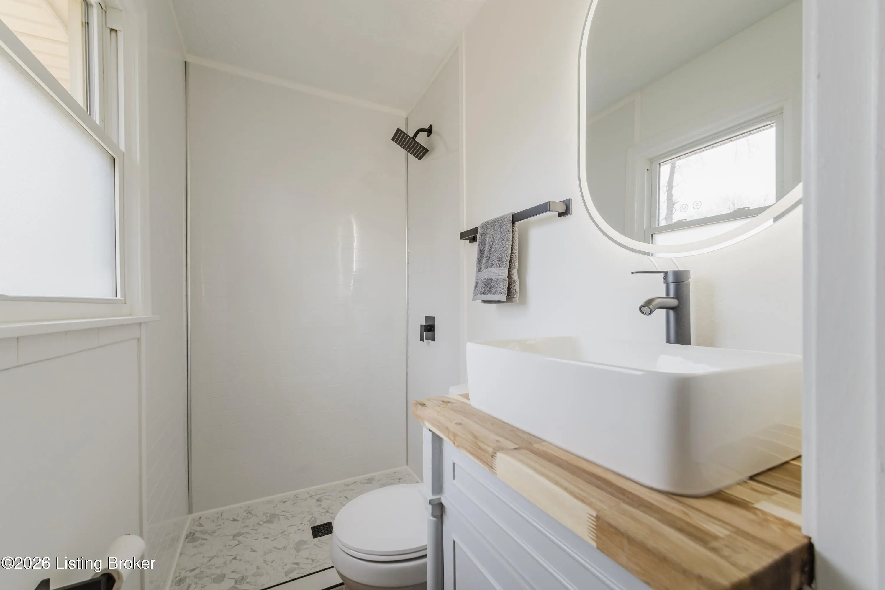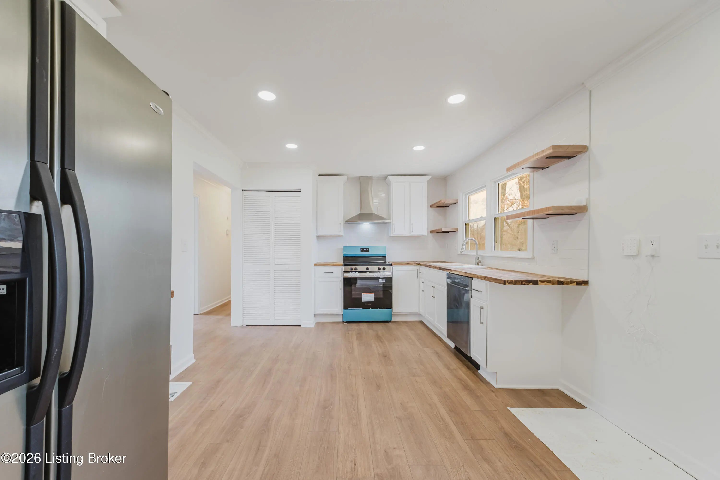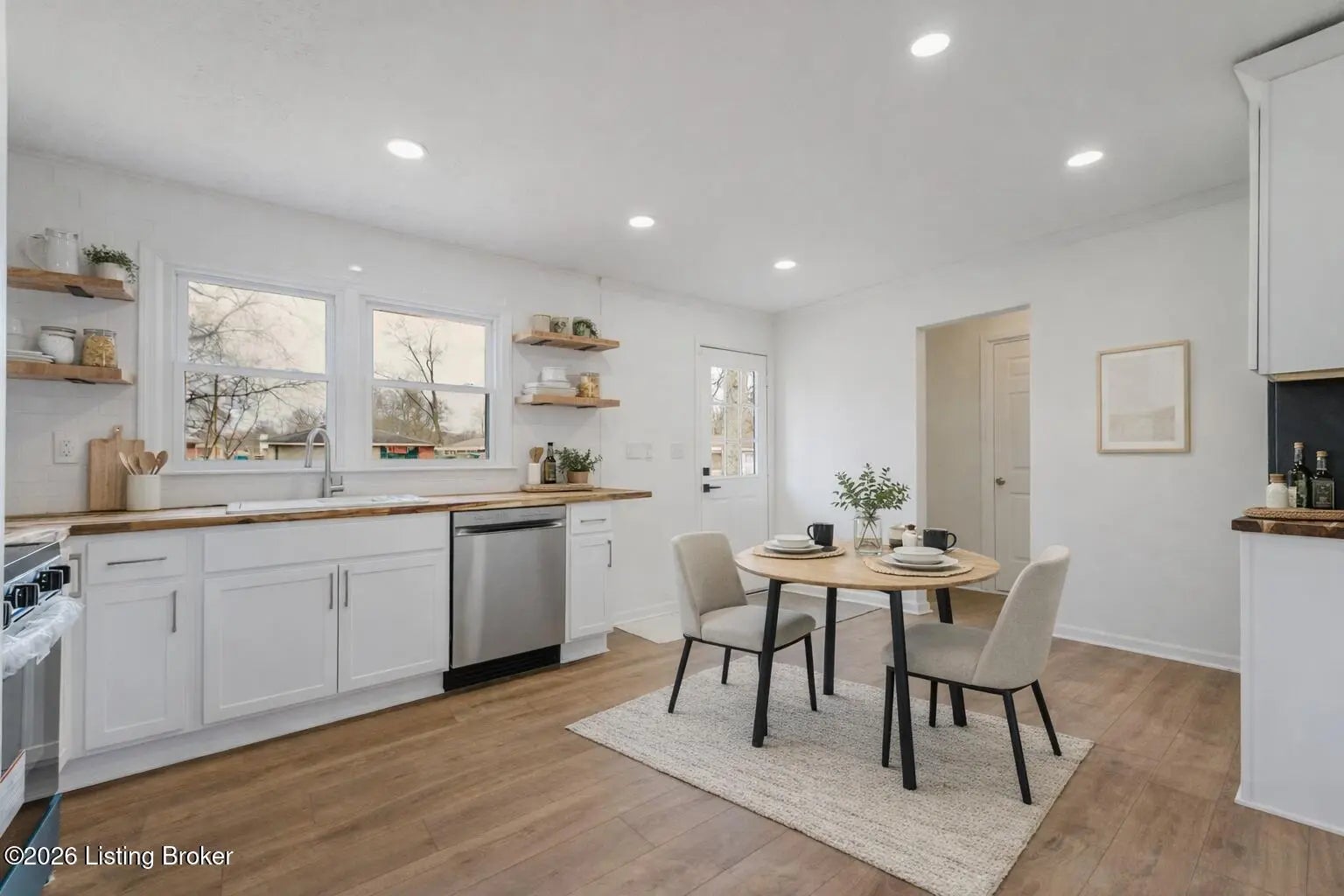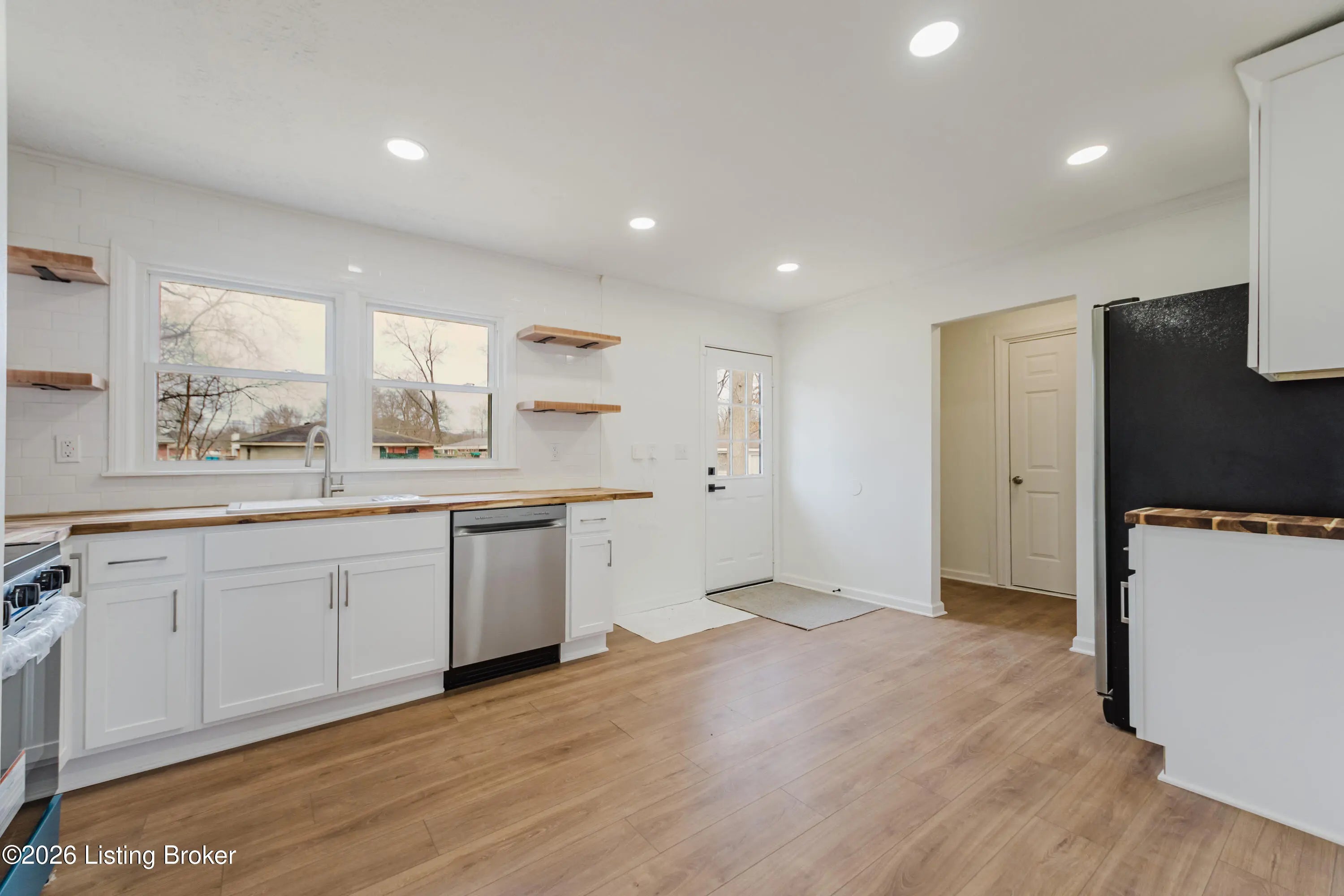 Newly renovated and move-in ready! This beautifully updated 3 bedroom, 2 bath ranch offers the perfect blend of modern style and everyday comfort. With extensive upgrades including new flooring, fresh paint, updated fixtures, a completely refreshed kitchen and bathrooms, plus a new AC and furnace, you can enjoy peace of mind and stylish living from day one. The home's freshly painted brick exterior and eye-catching wood accents around the front door create inviting curb appeal. Step inside to discover new flooring that flows seamlessly throughout the main living areas and plush new carpet in the bedrooms for added comfort. The kitchen is a standout feature, showcasing butcher block countertops, attractive open shelving, and stainless steel appliances that deliver a clean, modern aesthetic. Just off the kitchen, a door leads to the brand-new back deck overlooking the fenced backyard - perfect for relaxing evenings, outdoor dining, or entertaining guests. The primary bedroom includes a private en suite bath with a walk-in shower and modern vanity. A second full bathroom with a convenient shower/tub combo serves guests and additional bedrooms with ease. An attached garage provides secure parking and extra storage, while the driveway offers additional off-street parking for guests. Ideally located with easy access to the Gene Snyder for a quick commute and just minutes from Iroquois Park, Colonial Gardens, and a variety of dining and entertainment options, this home truly has it all. Don't miss your opportunity - schedule your showing today!