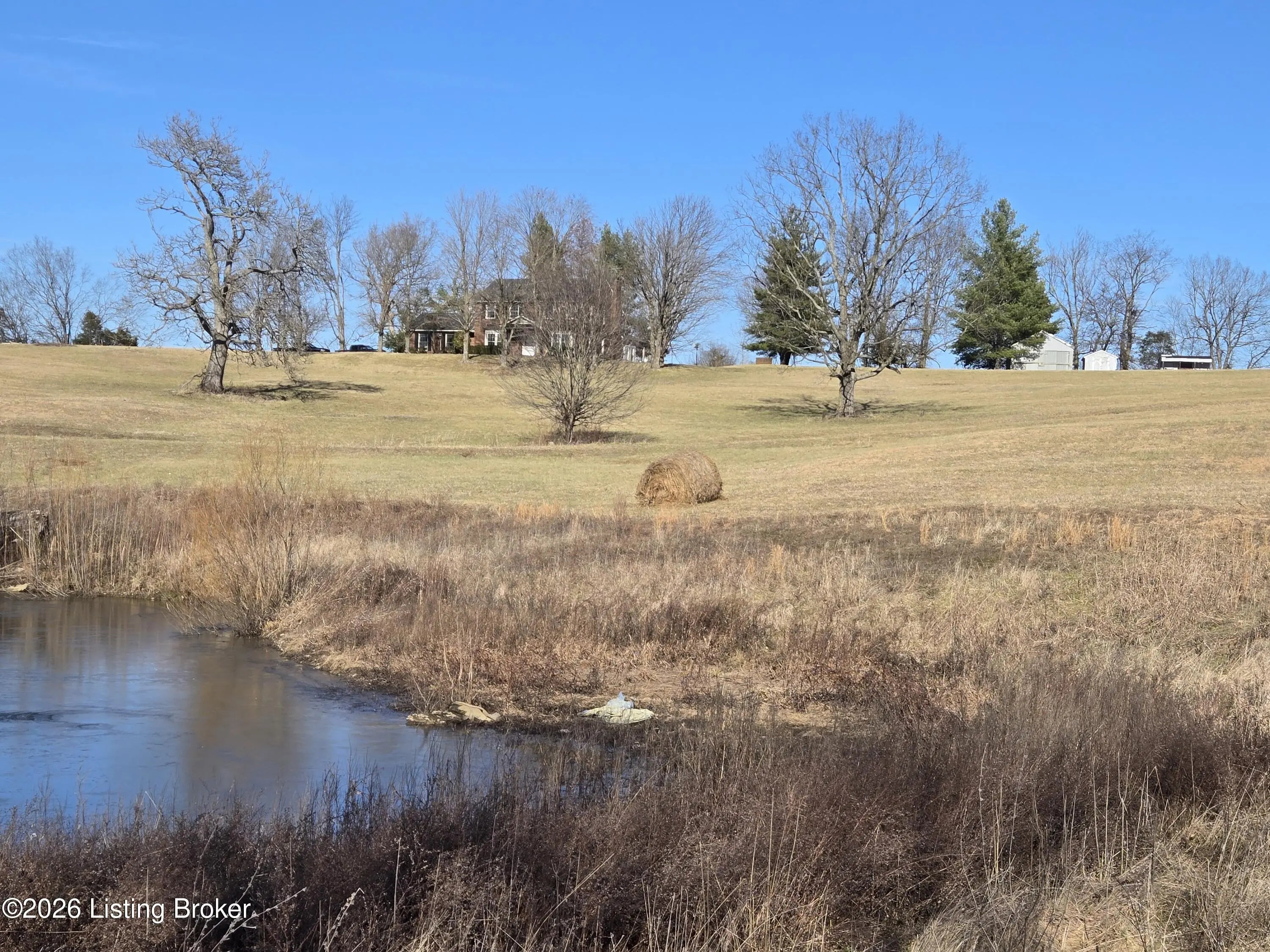Beautifully updated home sitting on 11.8 rolling acres with pond, barn, outbuildings and hay shed---all you need to add is fencing and horses! The home has been remodeled and offers new bathrooms, new hardwood floors, new lighting fixtures and fresh paint throughout! The foyer has an impressive curved stairway to greet guests plus a very spacious living room and dining room both filled with loads of natural light. The family room with gas fireplace is open to the kitchen/breakfast area providing a great gathering space. The kitchen offers granite countertops, beautiful cabinetry plus an adjacent laundry/mud room providing additional pantry storage. Off the family room is a wonderful sunroom with wood burning stove plus a covered patio space out back. Main level has a powder room as well. On the second level is a spacious hall area with four bedrooms in total. The primary suite has a very large bedroom space plus a new primary bath with dual sinks, a large shower plus a very good amount of closet space. There are three additional bedrooms, all with new hardwood flooring--as well as a hall bath with dual sinks as well. There is an attached two car garage and the setting is gorgeous and the land beautiful. 11.8 acres with a pond plus a barn approx. 20.5 x 24, a hay shed 16 x 24 plus two additional sheds.