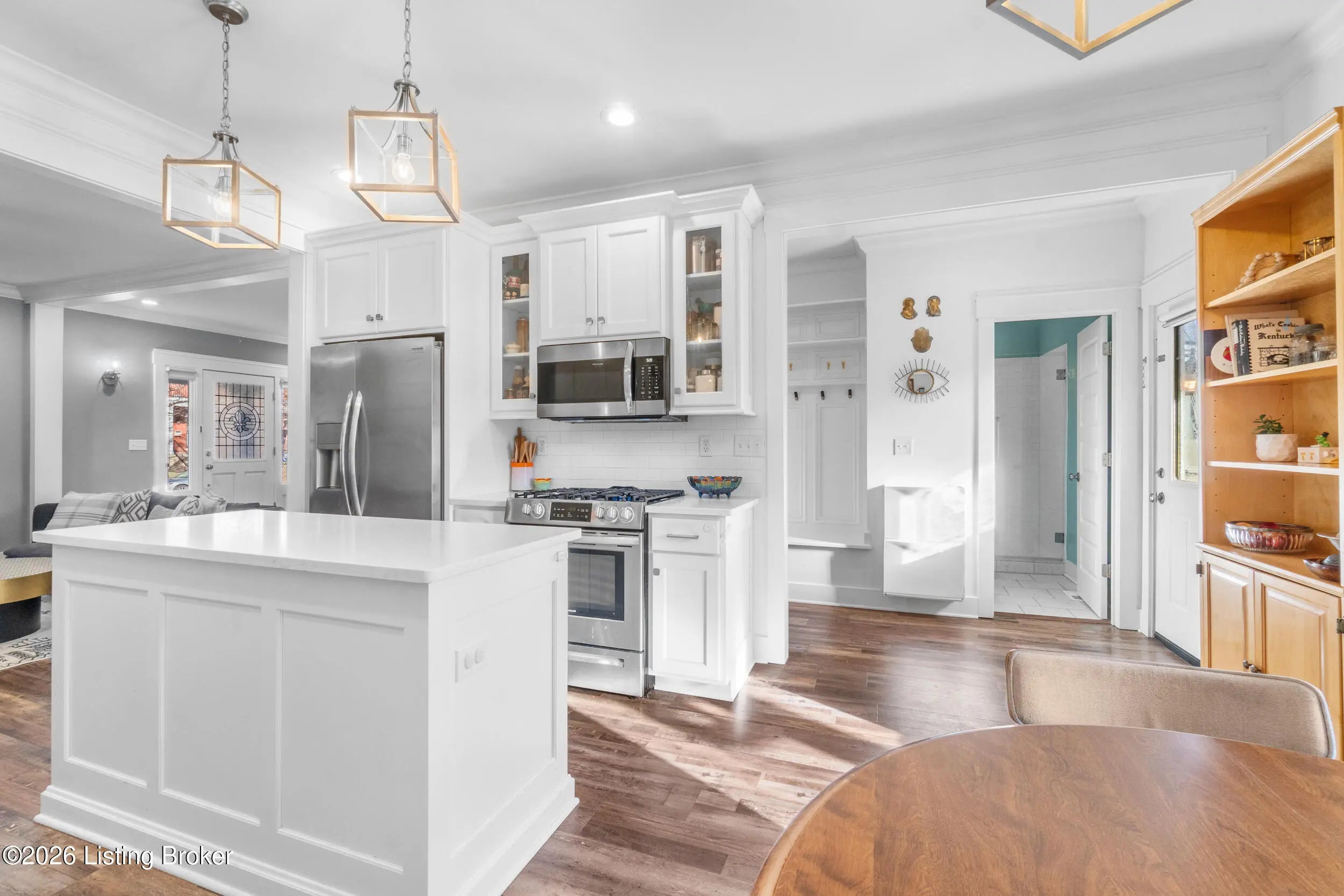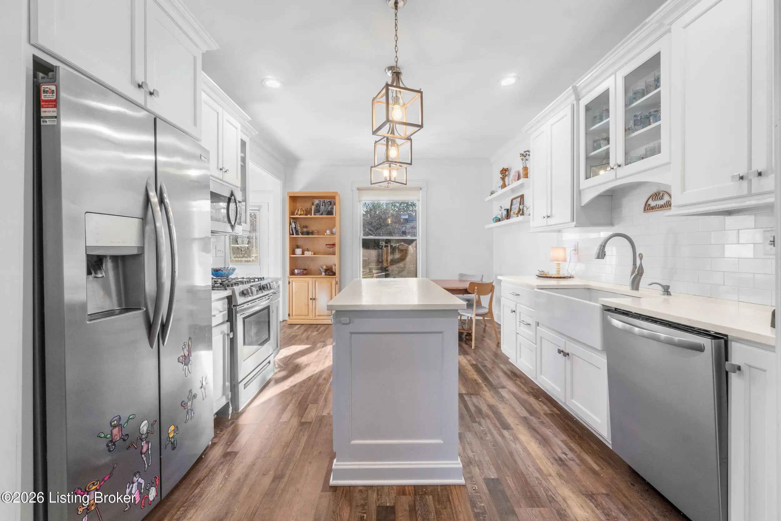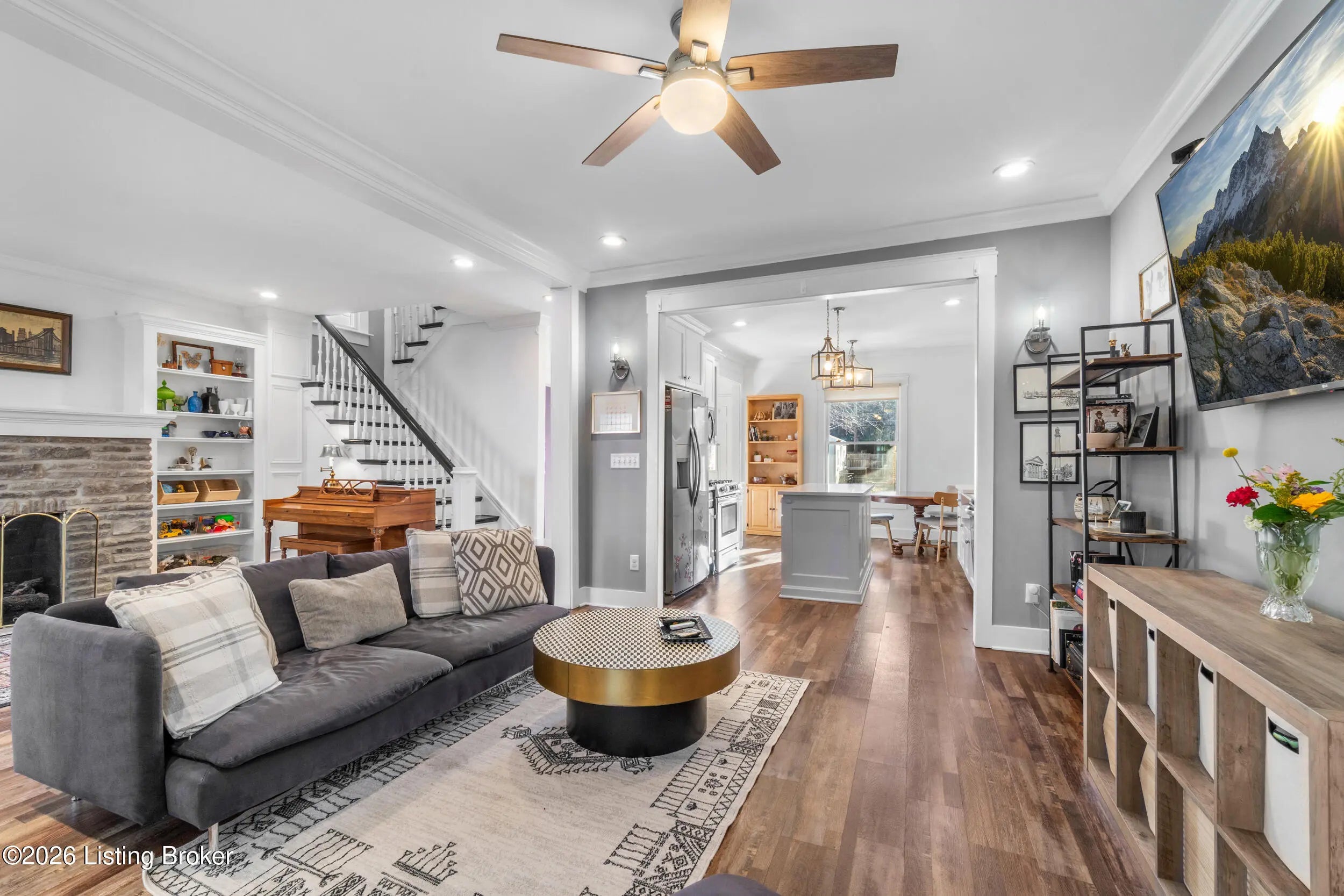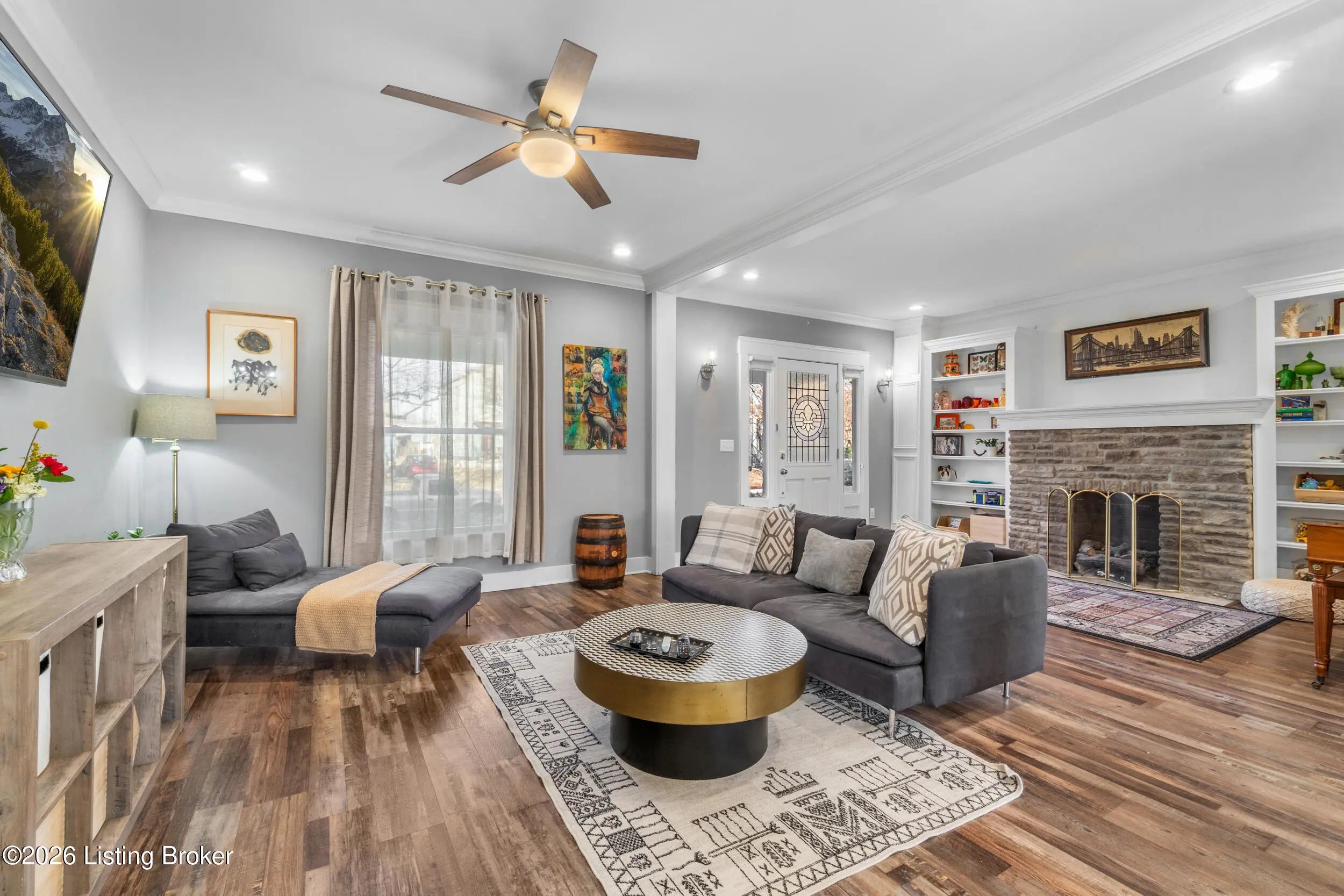 Welcome to this beautiful, charming home where timeless character meets thoughtful modern updates and everyday comfort. From the moment you step inside, you'll notice the warmth and craftsmanship throughout detailed millwork, crown molding, and inviting living spaces designed to feel both elevated and comfortable. The living room is anchored by a gas fireplace with custom built-in bookcases, creating the perfect setting for cozy winter nights or relaxed evenings with family and friends. The kitchen blends style and function with Amish-built cabinetry, quartz countertops, subway tile backsplash, and stainless steel appliances. Whether you're preparing a quiet dinner at home or hosting a full house for the holidays, this space delivers. Upstairs offers three spacious bedrooms — each with two closets — including two front bedrooms that mirror one another and feature charming built-in window benches. Two full bathrooms provide flexibility, with porcelain tile finishes, marble-top vanities, a freestanding soaking tub upstairs, and a seated shower on the main level. A finished 275 sq. ft. bonus room adds even more versatility for a home office, playroom, guest suite, or creative space. Step outside and you'll find an entertainer's backyard. The covered patio and wood-burning fireplace create a true outdoor living area perfect for fall evenings around the fire, summer gatherings, and making memories year-round. The fenced yard offers privacy, and nine off-street parking spaces provide rare and valuable convenience. Enjoy added confidence knowing the roof, HVAC system, plumbing, electrical, water heater, and most windows are all newer less than ten years old — providing efficiency, reliability, and peace of mind. Located just a few blocks from the University of Louisville and Saint James Court this home offers comfort, convenience, and opportunity. Schedule your showing today!