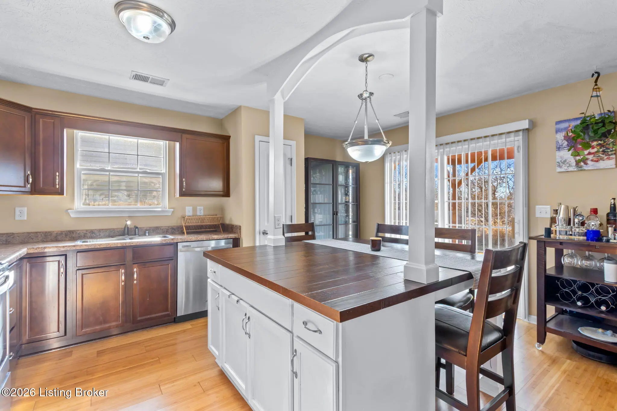 Welcome to this exceptionally maintained one-owner home offering quality finishes, thoughtful upgrades, and a truly move-in ready interior. From the moment you step inside, you'll appreciate the warmth of the bamboo flooring that flows seamlessly throughout the home, complemented by elegant arched doorways that add architectural character and charm. The tiled bathrooms provide a clean, polished look, while the spacious eat-in kitchen is designed for both everyday living and entertaining. Featuring a beautiful island accented with decorative columns and equipped with Whirlpool appliances,this kitchen serves as the heart of the home. Bedrooms are generously sized with large closets, offering ample storage. The interior presents a fresh, crisp aesthetic, making it easy for the next owner to move right in and personalize the space. Located just moments from Crume Haven Winery, this home is ideal for those who enjoy local events and relaxed evenings out. Conveniently situated near highly regarded schools, dining, shopping, and everyday amenities, the location provides both comfort and accessibility.Outdoor living is equally inviting, with a patio featuring a pergola and fire pit—perfect for entertaining guests or enjoying quiet evenings at home. This property offers a rare opportunity to own a meticulously cared-for home in a desirable location. Schedule your private showing today!
