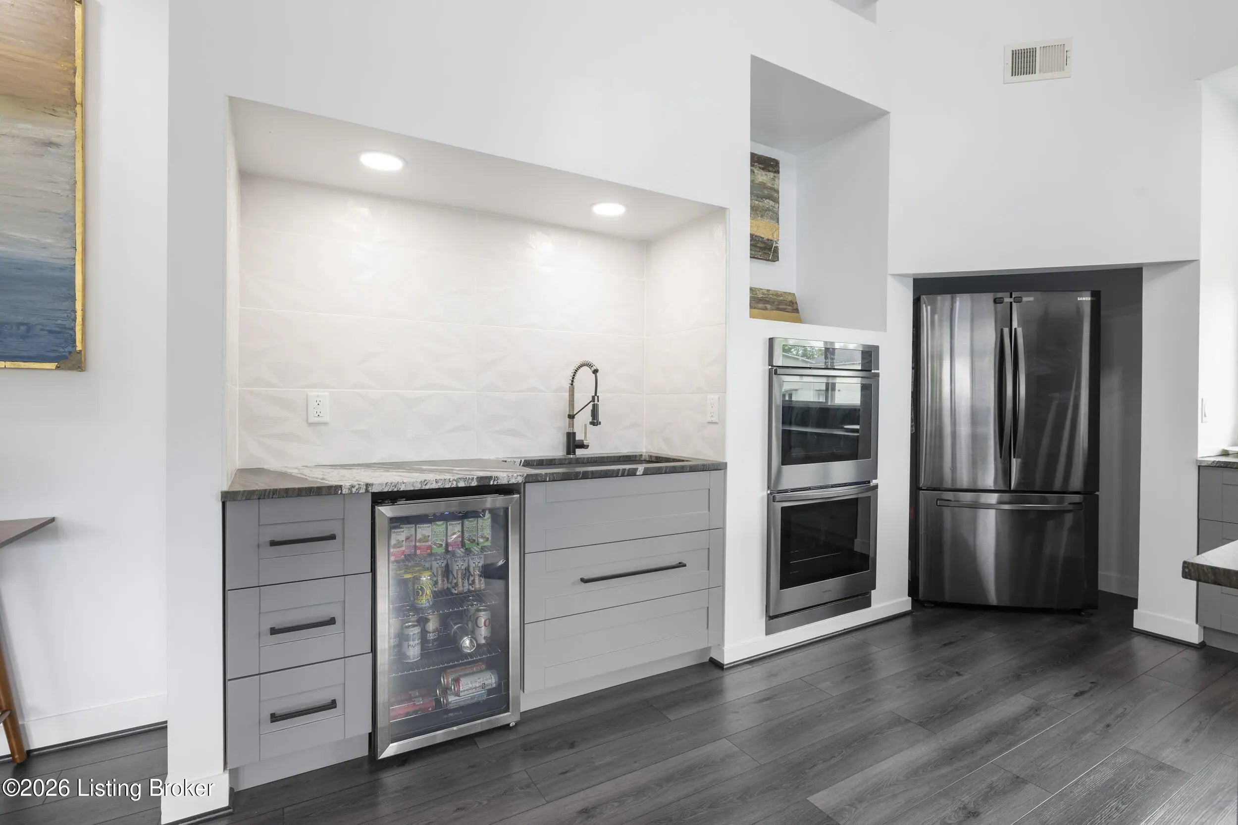 Motivated Sellers! Gorgeous contemporary newer construction located in the Riviera Subdivision next to the Ohio River. A boater & car hobbyist's dream!!! Extra large garage can hold a 30 foot boat while also having a personal car lift inside & space for up to 6 cars. Mid level storage rooms above garage. Step inside your 1 owner, custom built home located right across from the Ohio River four bedrooms & three full baths. With modern features such as an open layout, 18 foot ceilings in the kitchen & great room, a Sputnik-style chandelier, a remote 60" ceiling fan, large open walls to display artwork, this is truly a unique home. Step inside your gourmet kitchen featuring granite countertops, a double oven, newer matching appliances & a large & functional walk in pantry. Also, a mini beverage cooler and a coffee station or wet bar area with a second sink. Perfect prep area for cooking. The spacious primary bedroom features an en-suite bathroom with free standing tub & a walk-in closet. Special additional features of this home are a Pex manifold system which allows water shutoff to individual points in the home & house generator plug & switch. A whole house generator plug and switch for additional security if ever needed. 904 W. Riverside Drive is an ideal location for boaters with close proximity to Louisville Boat Club, Captain's Quarters, Levee on the River, Louisville Yacht Club and community dock access. Call today for your private showing.