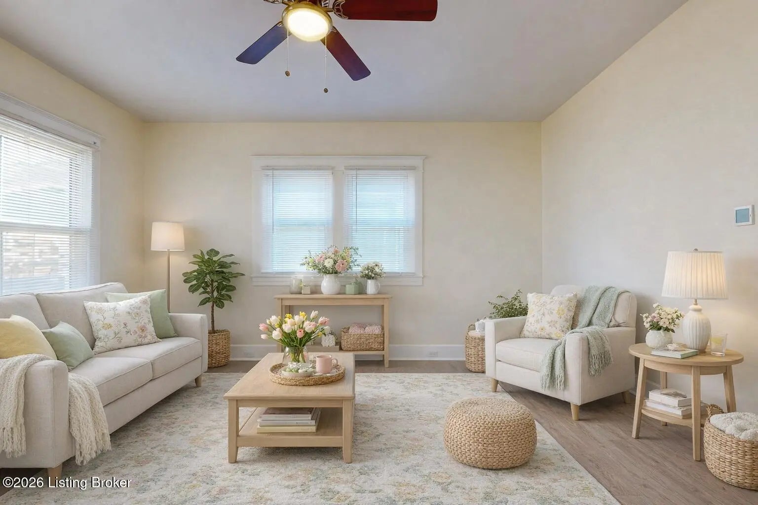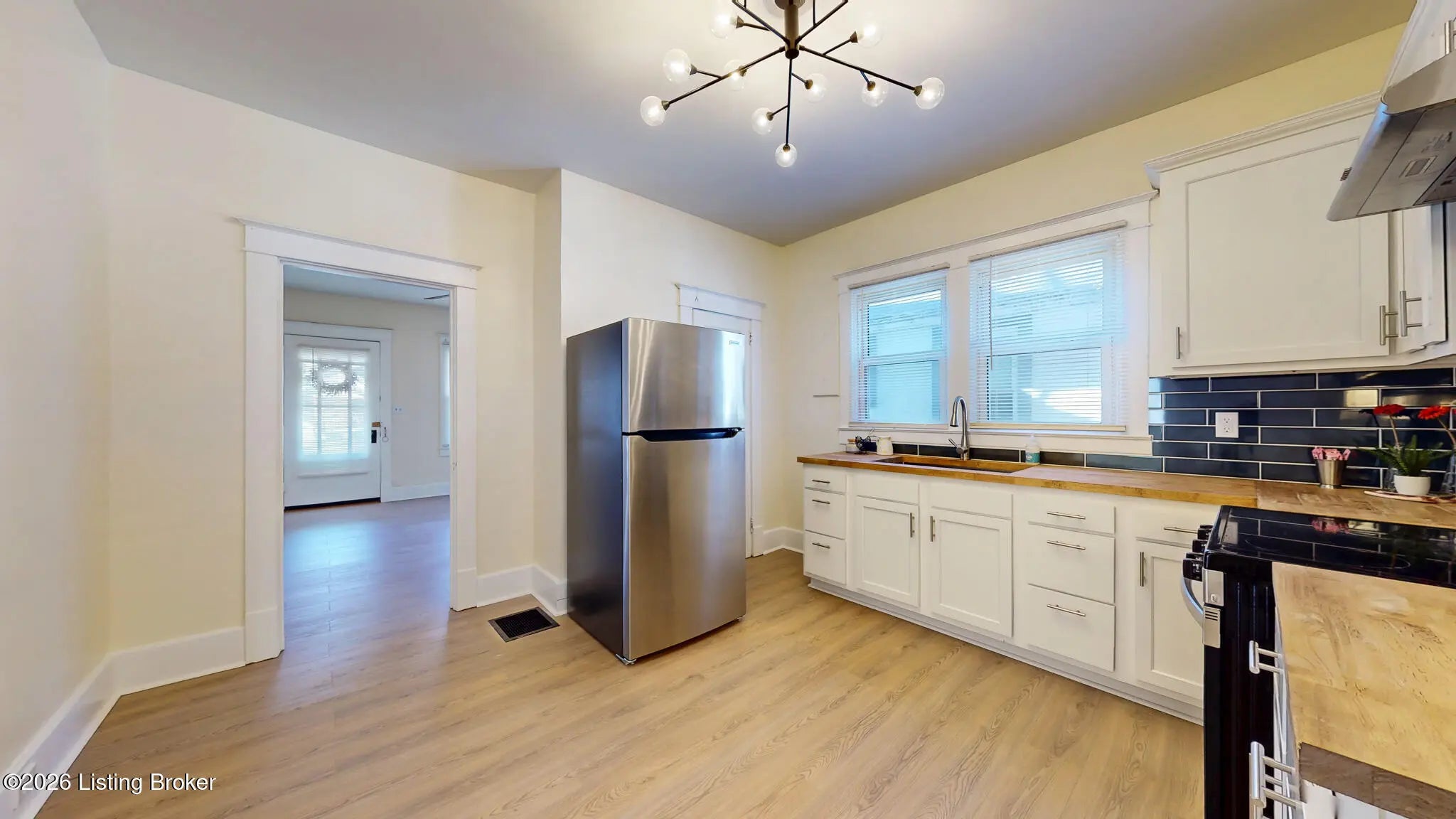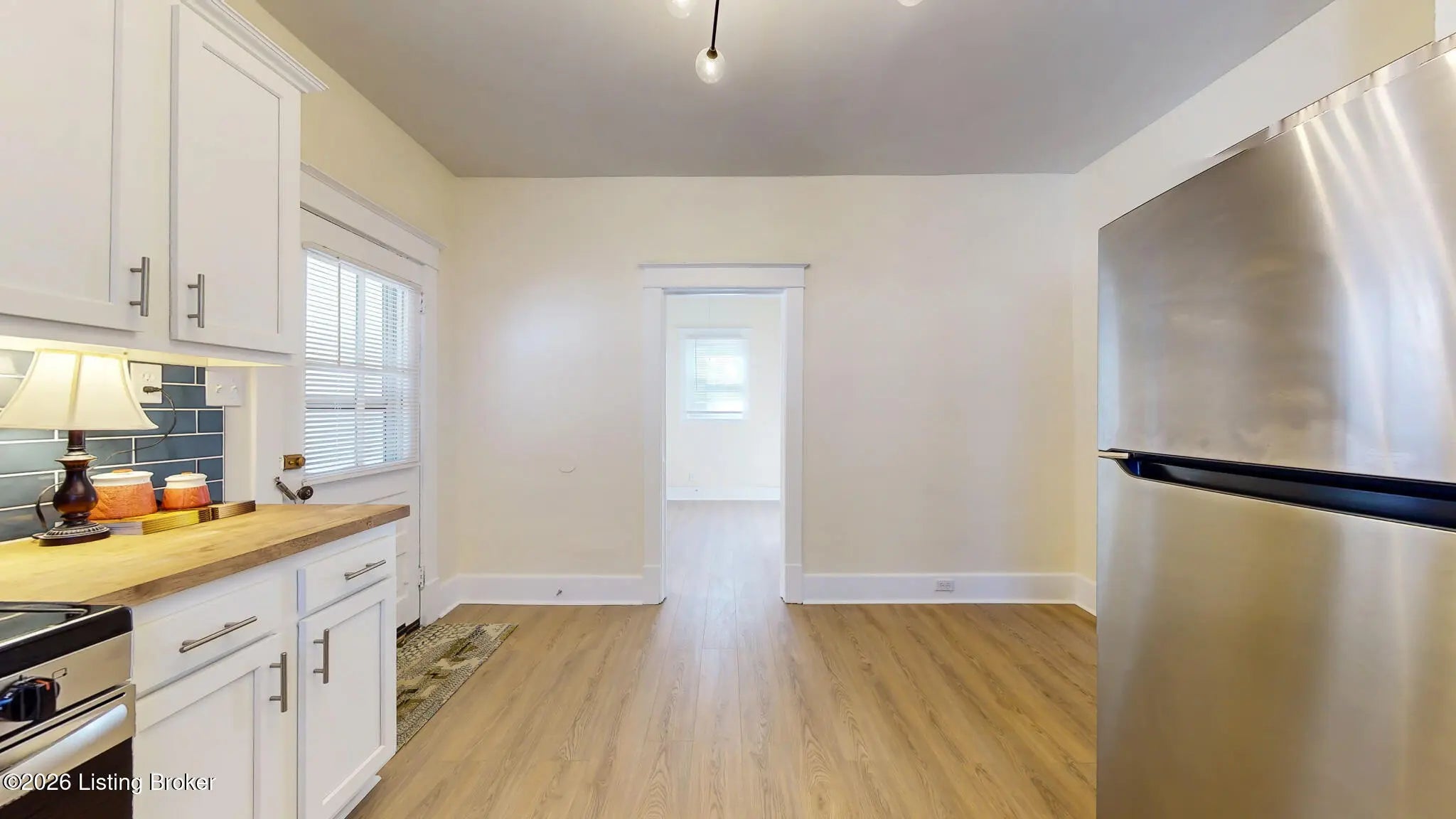 This recently updated home features a new roof, replacement windows, water heater 2024, all new laminate flooring throughout, and so much more. Entering from the expansive front porch the living room offers fresh neutral paint, updated lighting and flows seamlessly into the eat-in-kitchen. The kitchen features new white shaker-style cabinetry, butcherblock countertops, a pantry and new stainless steel appliances. There are two nice-sized bedrooms separated by a large laundry/mud room and a newly renovated bathroom with new vanity, lighting and fixtures. Off the kitchen there is a covered back porch overlooking the large fully fenced back yard complete with an oversized 1.5 car garage. The sellers are offering a one year HSA home warranty. Schedule your private showing today.
