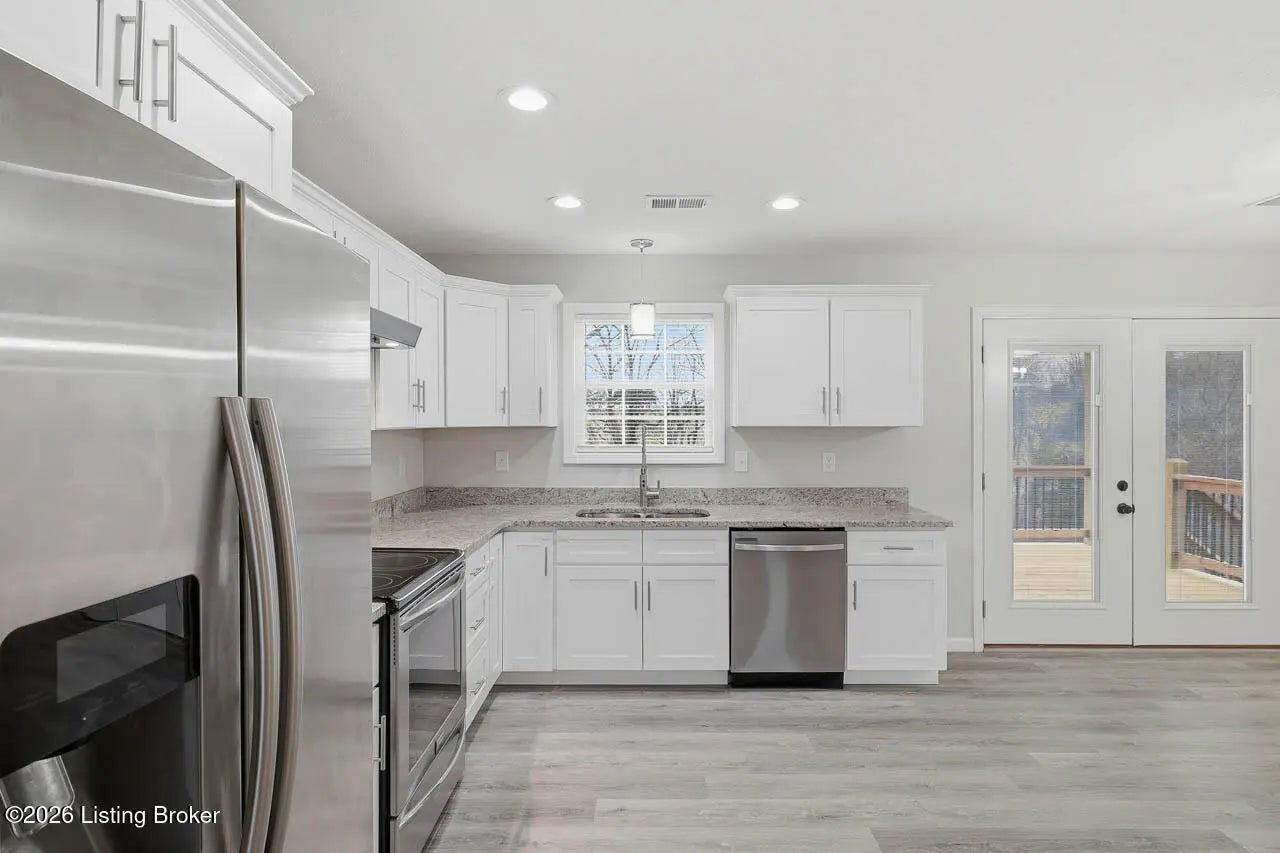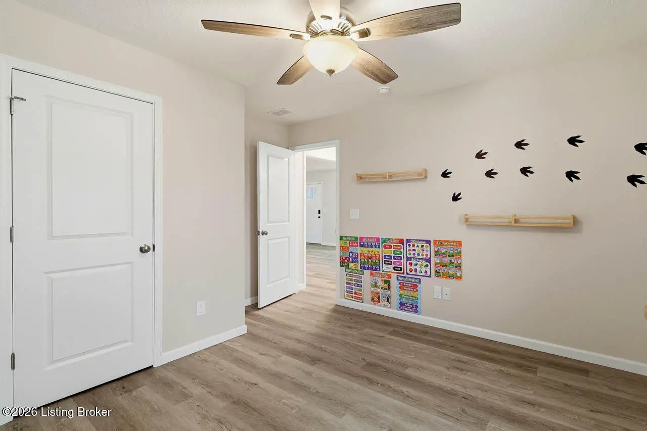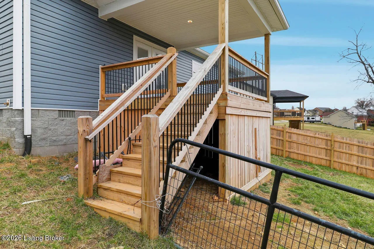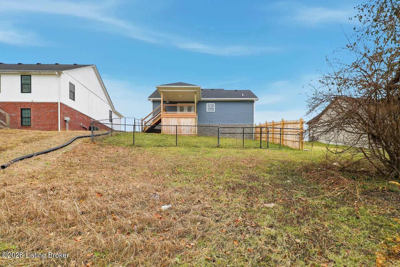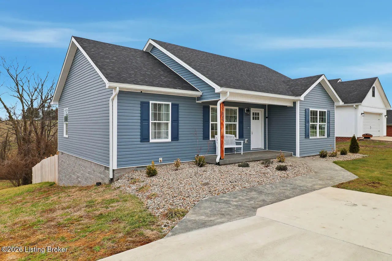 Welcome home to this beautifully maintained 2-year-old ranch in the desirable Early Times subdivision! This home offers 3 bedrooms and 2 full bathrooms in a functional split-bedroom floor plan for added privacy. Fresh landscaping and a covered front porch create inviting curb appeal. Inside features light vinyl plank flooring and neutral paint for a bright, airy feel. The family room with a double tray ceiling opens to the eat-in kitchen with white cabinetry, granite countertops, stainless steel appliances, and a separate laundry room. The spacious primary suite includes a vaulted ceiling, private bath with tile flooring, and a walk-in closet. Two additional well sized bedrooms share a full bath on the opposite side of the home. Enjoy the covered deck overlooking the fenced backyard and a peaceful, tree-lined creek. Move-in ready and full of charm! Call today to make your appointment!