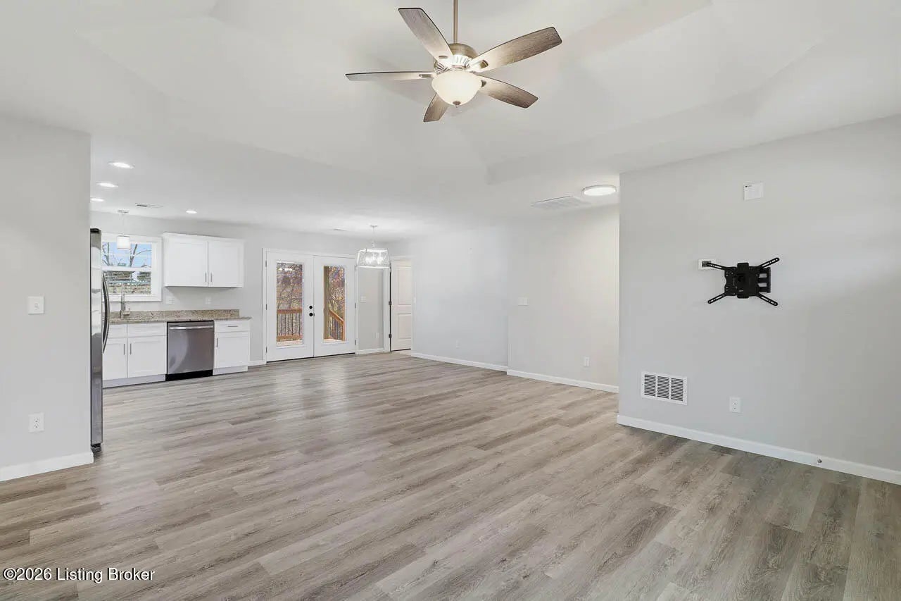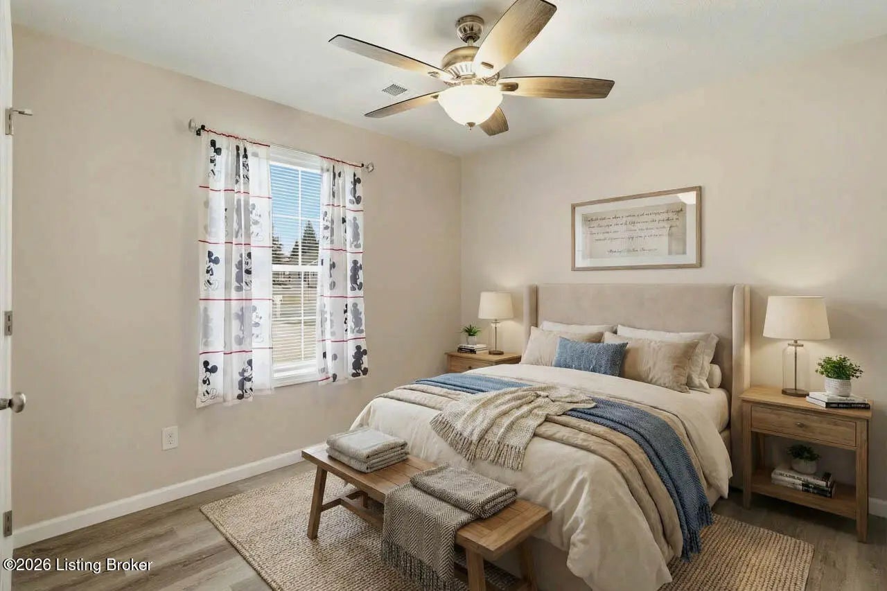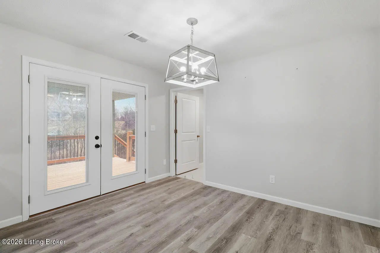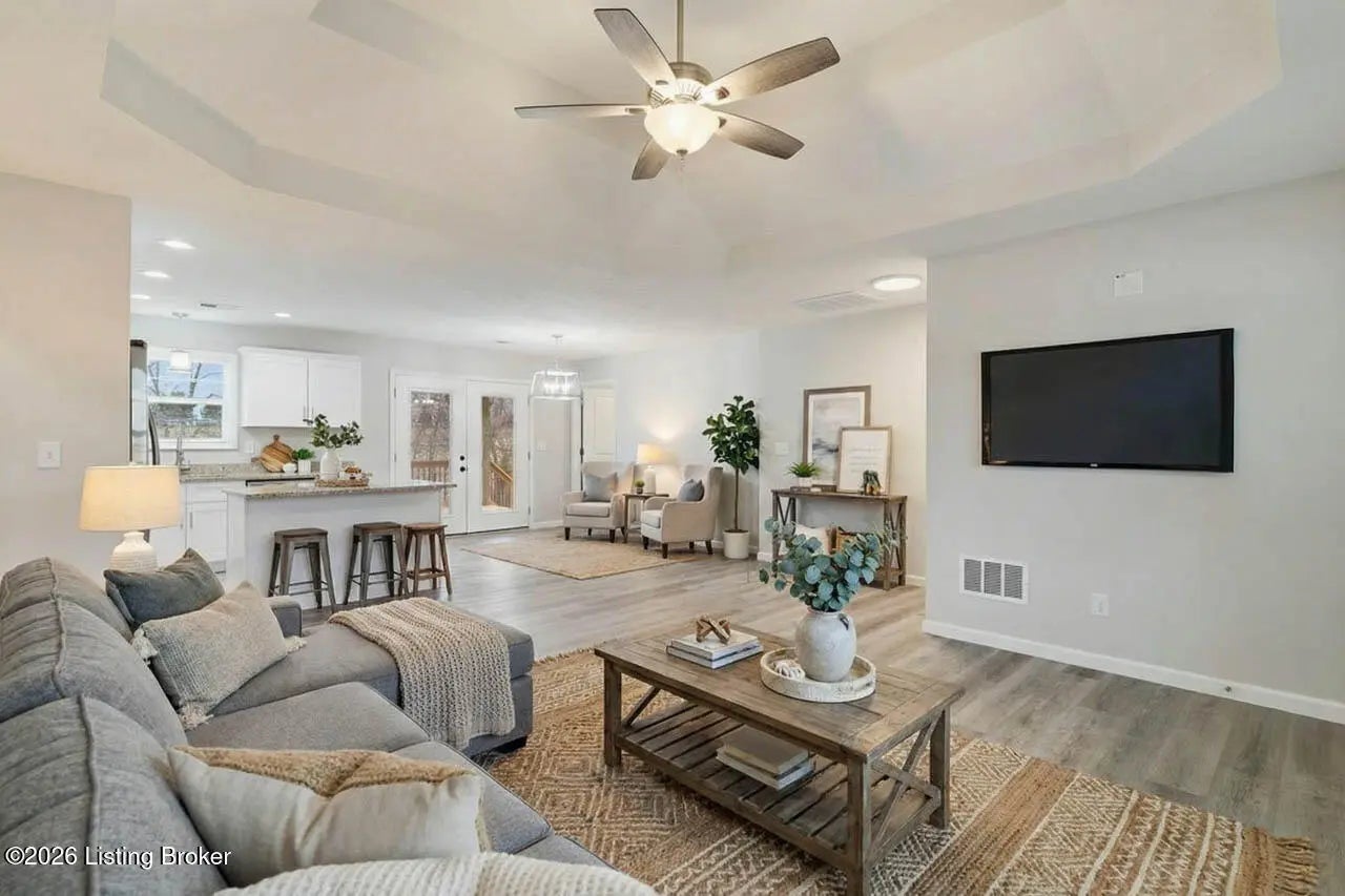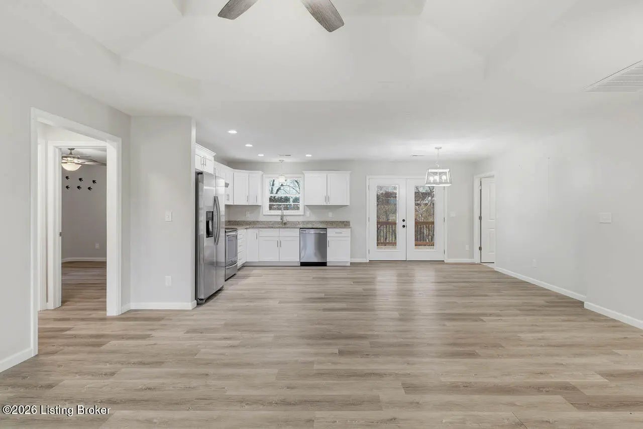 Welcome home to this beautifully maintained 2-year-old ranch in the desirable Early Times subdivision! This home offers 3 bedrooms and 2 full bathrooms in a functional split-bedroom floor plan for added privacy. Fresh landscaping and a covered front porch create inviting curb appeal. Inside features light vinyl plank flooring and neutral paint for a bright, airy feel. The family room with a double tray ceiling opens to the eat-in kitchen with white cabinetry, granite countertops, stainless steel appliances, and a separate laundry room. The spacious primary suite includes a vaulted ceiling, private bath with tile flooring, and a walk-in closet. Two additional well sized bedrooms share a full bath on the opposite side of the home. Enjoy the covered deck overlooking the fenced backyard and a peaceful, tree-lined creek. Move-in ready and full of charm! Call today to make your appointment!