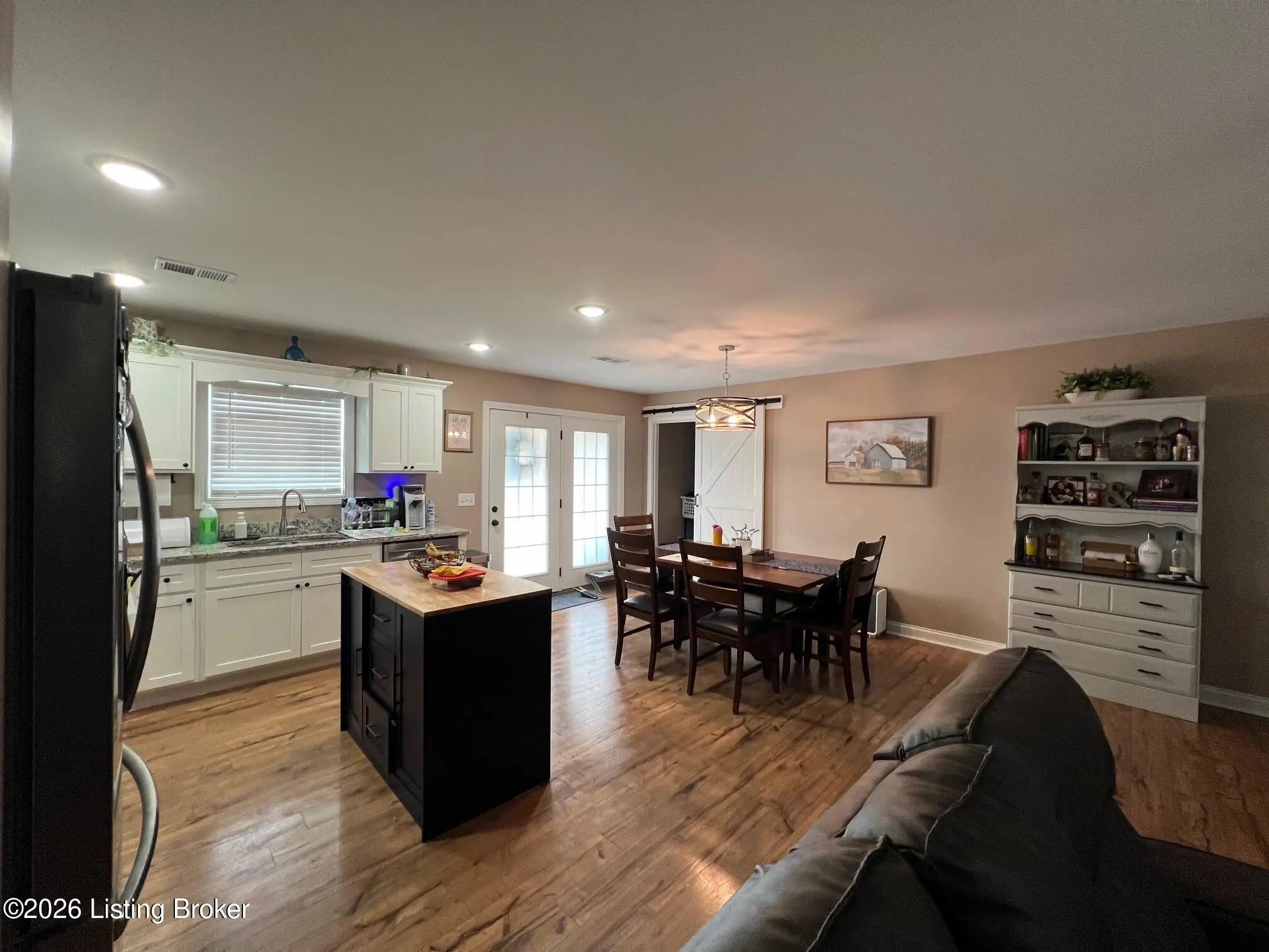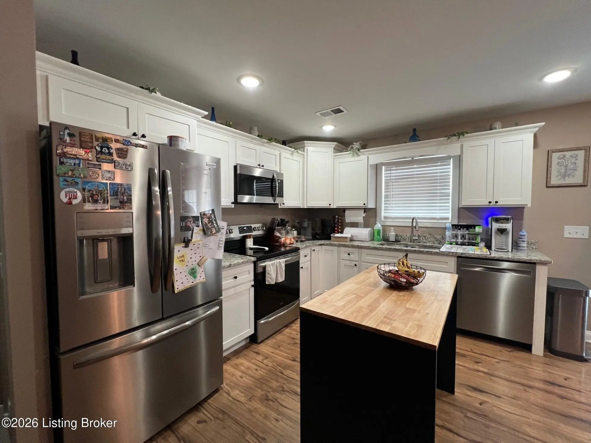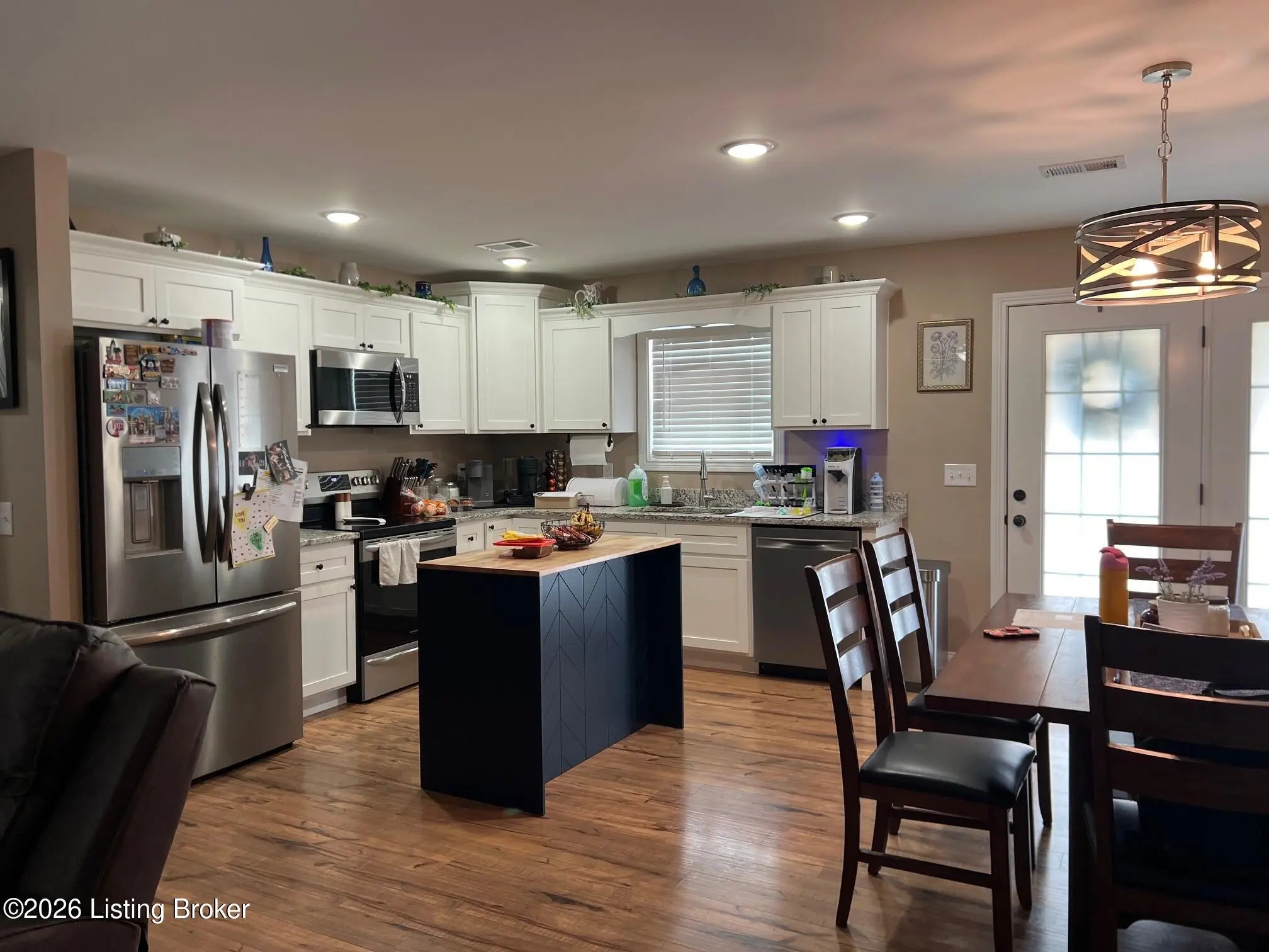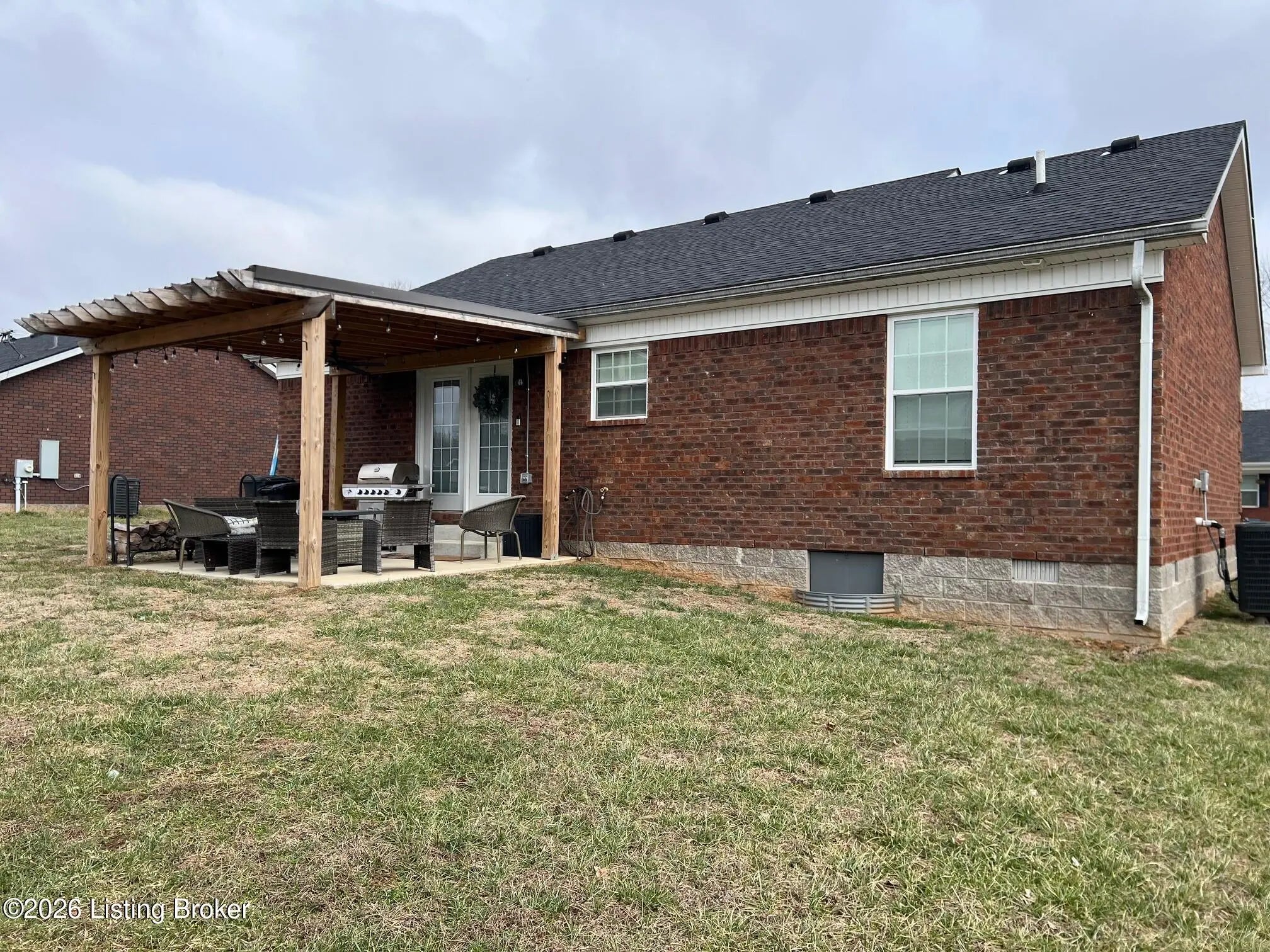 Attractive brick home with stone accents featuring a welcoming covered front porch and a covered back patio—perfect for relaxing or entertaining. This three-bedroom, two-bath home offers an open floor plan with a spacious living area that flows seamlessly into the kitchen and dining area. The kitchen features granite countertops, ample workspace for everyday living, and a full line of stainless steel appliances that are included with the home. The primary suite includes a private bath with a dual bowl vanity and a generous walk-in closet. Additional highlights include cabinets in the laundry room for extra storage and an outbuilding that provides extra space for tools, hobbies, or storage.