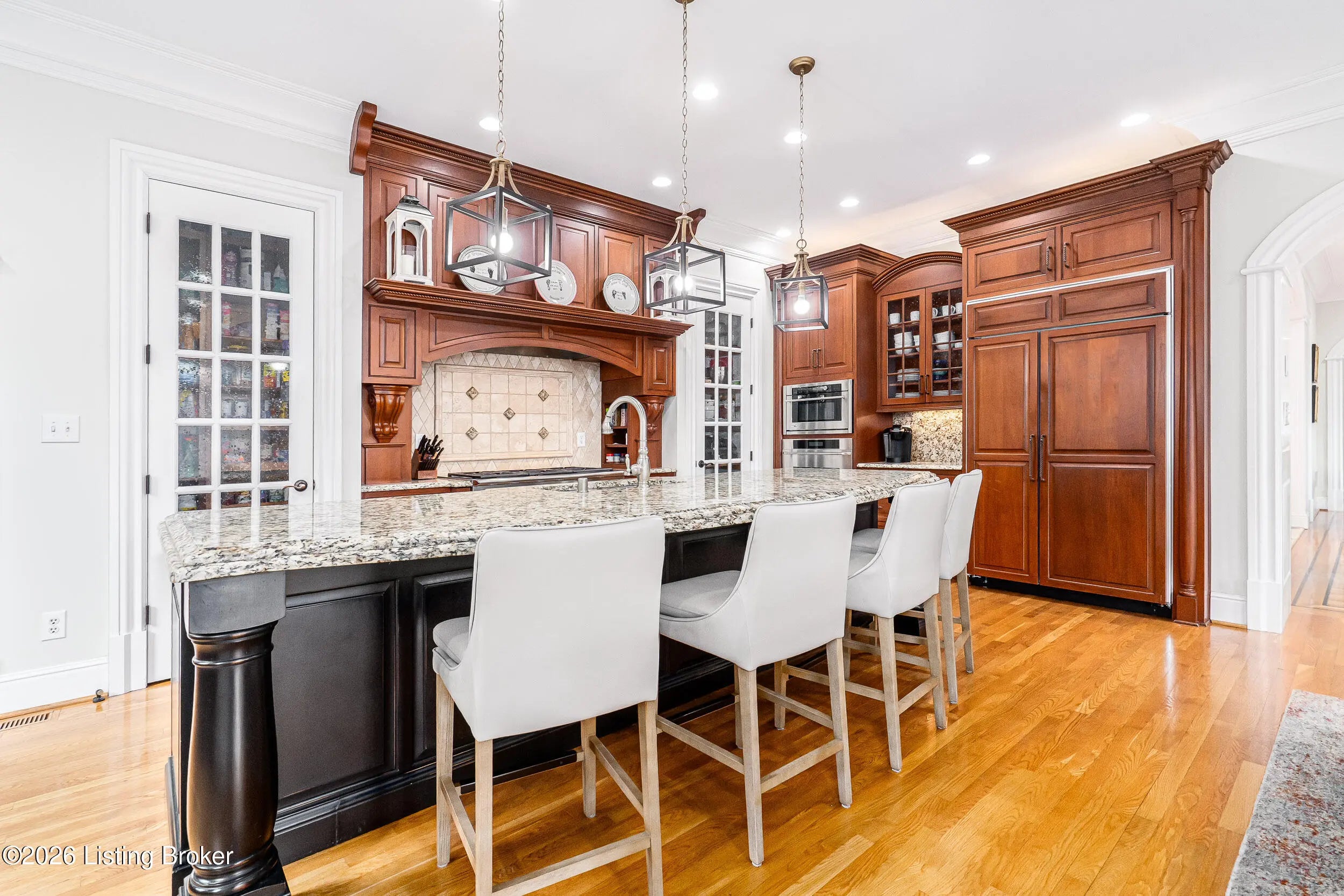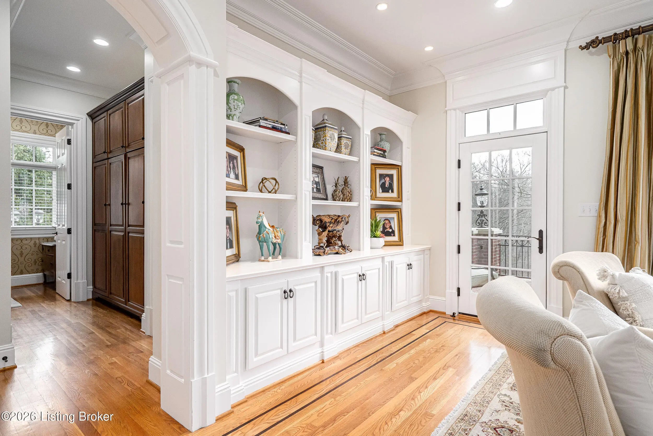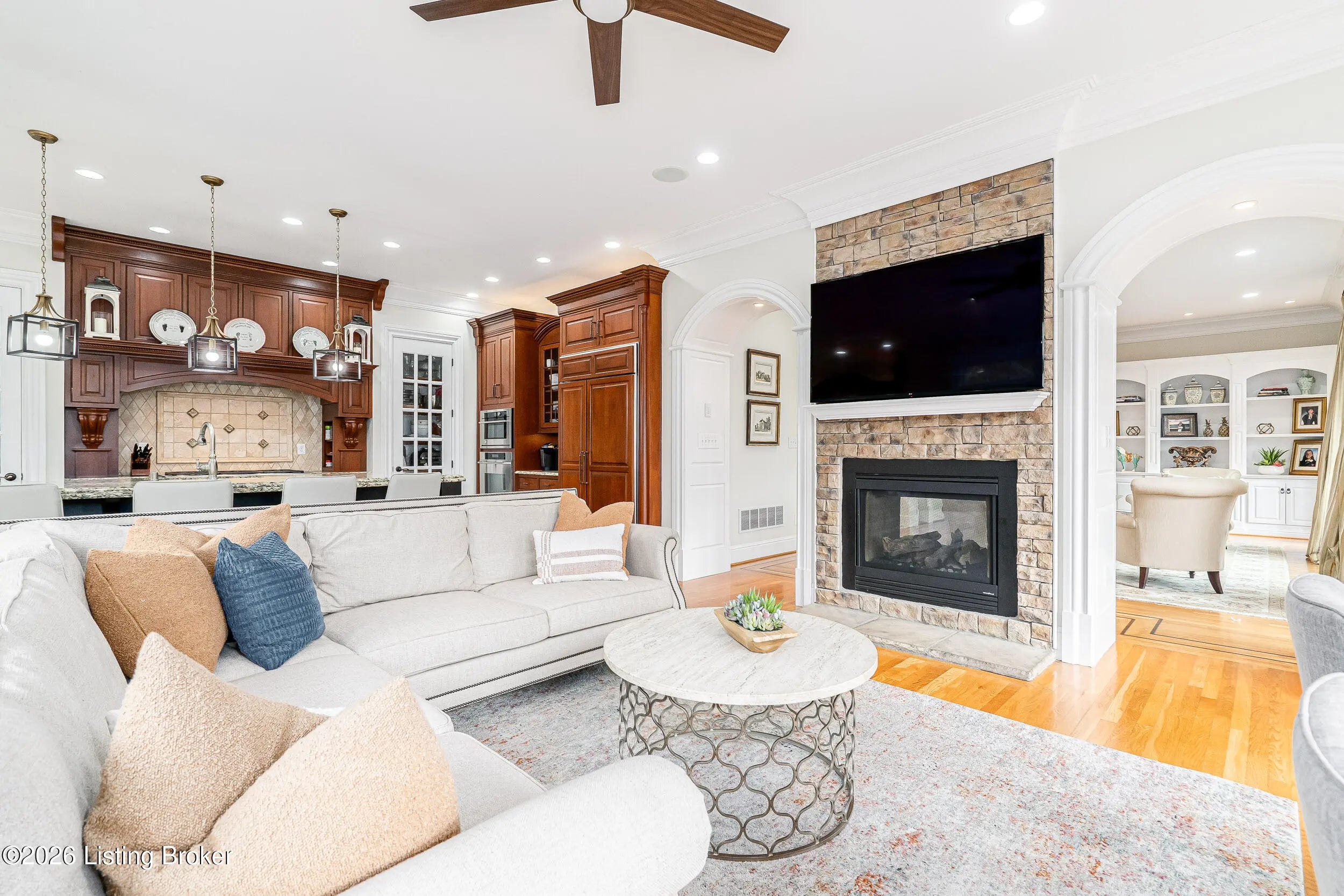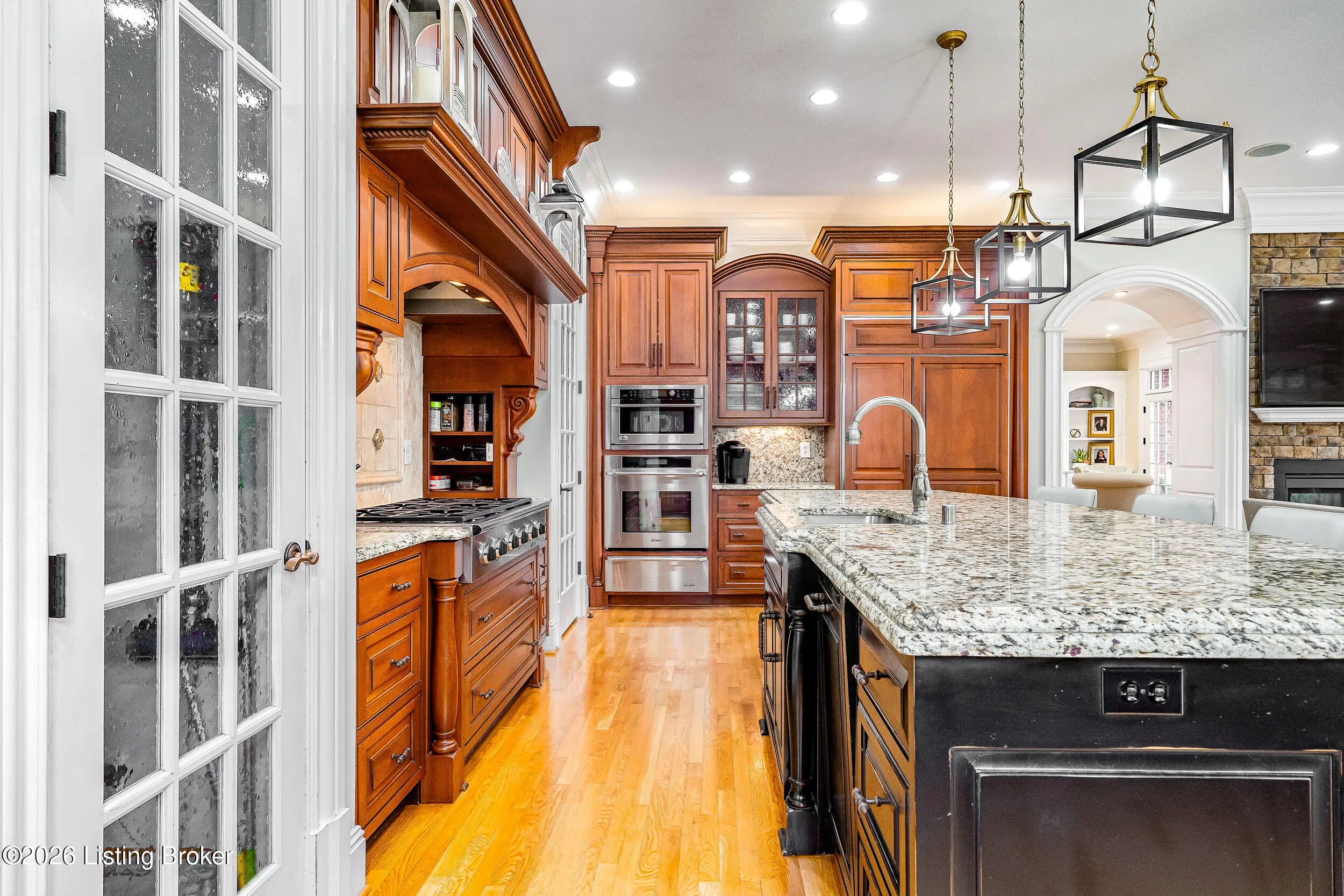 Custom-built in 2006 and ideally situated on over 1.7 acres in prestigious Indian Hills, this five-bedroom home offers quality construction, thoughtful design, and modern efficiency. Each bedroom features its own en-suite bathroom, along with multiple living spaces designed for comfort and entertaining. The home includes geothermal heating and cooling, a new roof installed in 2016, and an elevator servicing all three floors. The welcoming foyer introduces arched entryways, detailed millwork, hardwood flooring, and vaulted ceilings that continue across the main level. The great room features built-in bookcases, a gas fireplace, and expansive rear views from the balcony that spans the back of the residence. The gourmet kitchen offers an oversized island, custom cabinetry, high-end appliances, and a butler's pantry, with an adjacent formal dining room. A tucked-away office space with access to the rear patio has potential for a first-floor bedroom. Upstairs, three generous en-suites include a well-appointed primary bedroom with a sitting area, private balcony access, dual oversized closets, and a spacious bath with soaking tub and separate shower. The lower level expands the home's versatility with a large living area, full kitchen, theater room, hidden wine cellar, and additional bedroom suite. A three-car garage completes this exceptional Indian Hills property.
