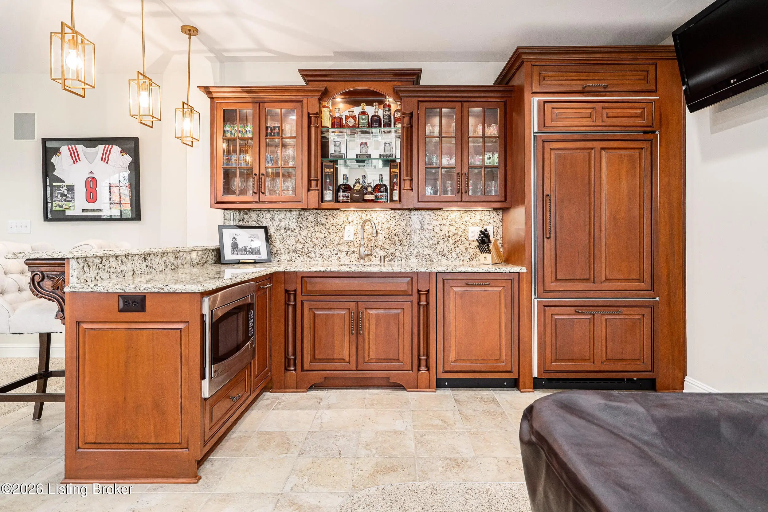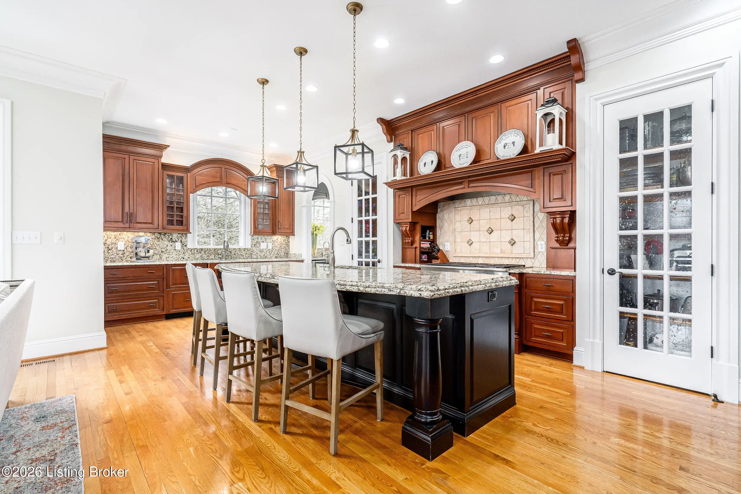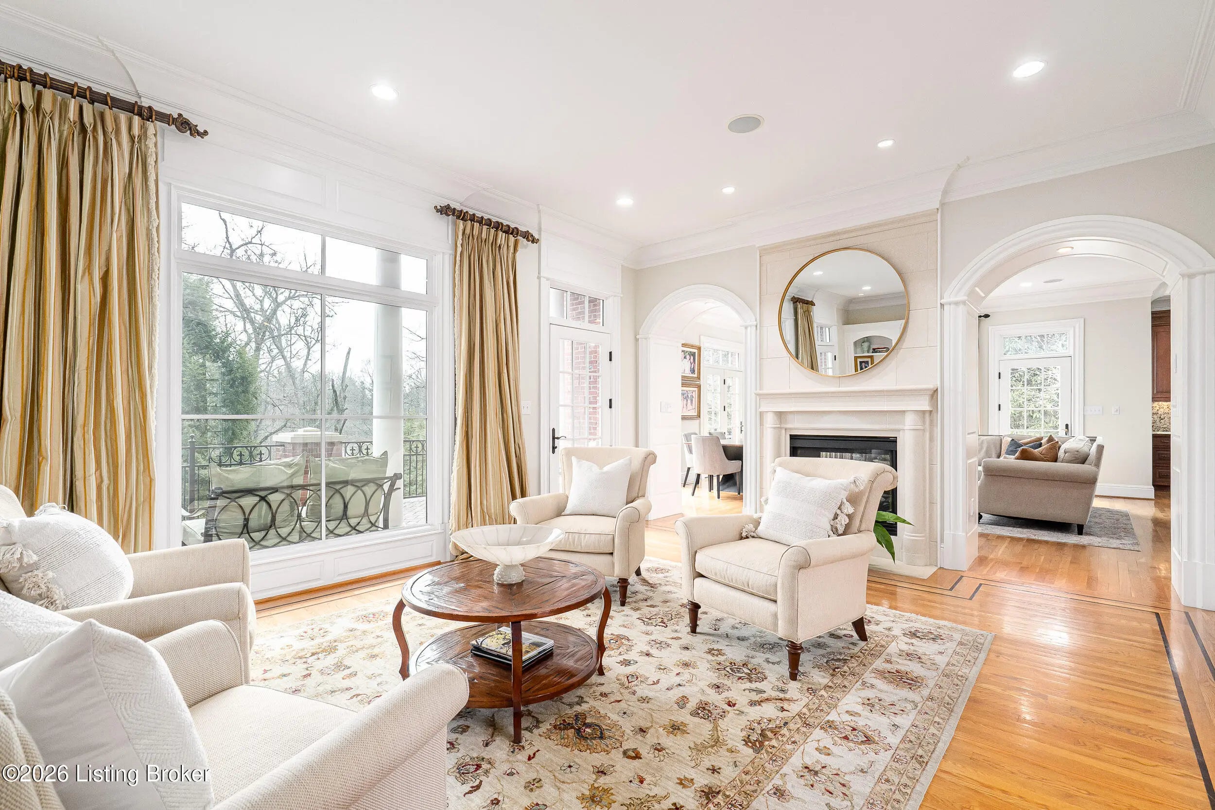 Custom-built in 2006 and ideally situated on over 1.7 acres in prestigious Indian Hills, this five-bedroom home offers quality construction, thoughtful design, and modern efficiency. Each bedroom features its own en-suite bathroom, along with multiple living spaces designed for comfort and entertaining. The home includes geothermal heating and cooling, a new roof installed in 2016, and an elevator servicing all three floors. The welcoming foyer introduces arched entryways, detailed millwork, hardwood flooring, and vaulted ceilings that continue across the main level. The great room features built-in bookcases, a gas fireplace, and expansive rear views from the balcony that spans the back of the residence. The gourmet kitchen offers an oversized island, custom cabinetry, high-end appliances, and a butler's pantry, with an adjacent formal dining room. A tucked-away office space with access to the rear patio has potential for a first-floor bedroom. Upstairs, three generous en-suites include a well-appointed primary bedroom with a sitting area, private balcony access, dual oversized closets, and a spacious bath with soaking tub and separate shower. The lower level expands the home's versatility with a large living area, full kitchen, theater room, hidden wine cellar, and additional bedroom suite. A three-car garage completes this exceptional Indian Hills property.