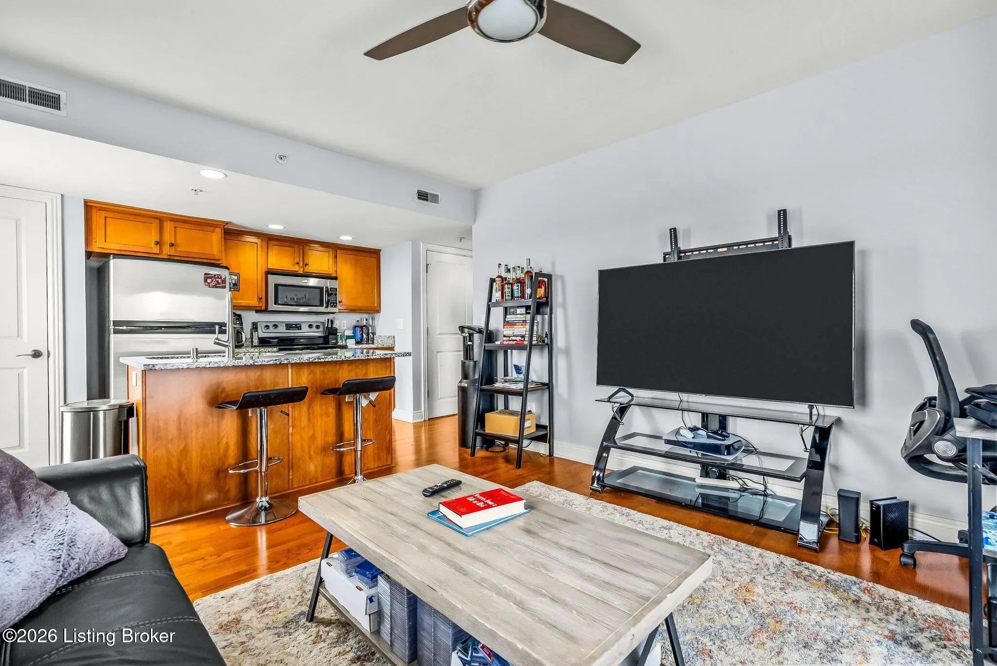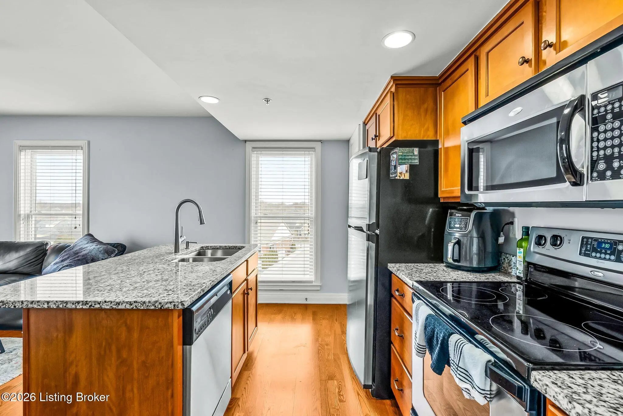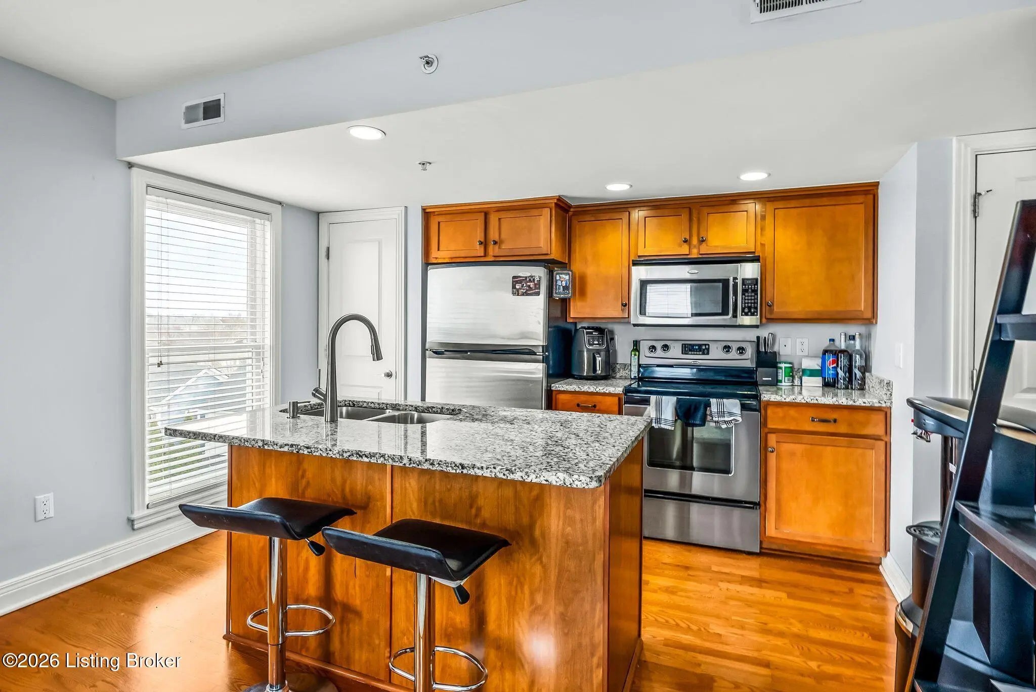 Desirable Norton Commons Condo Offering Low-Maintenance Living! Welcome to this beautifully updated 1-bedroom, 1-bathroom condo offering 655 square feet of thoughtfully designed living space in the heart of Norton Commons' South Village. Located within a secure, well-maintained building, this home combines comfort, convenience, and access to one of Louisville's most vibrant communities. Inside, the open-concept layout features warm hardwood flooring, abundant natural light, and a functional kitchen with granite countertops, stainless steel appliances, and bar seating—perfect for everyday living or entertaining. The spacious bedroom provides a peaceful retreat, complemented by a full bathroom with quality finishes and ample storage. An in-unit washer and dryer add everyday convenience. Residents enjoy secure keypad entry, elevator access, security cameras, and well-kept common areas throughout the building. Outdoor patio seating provides a welcoming space to relax, while the assigned covered parking space located just outside the rear entrance offers easy access. Ideally situated, this condo offers convenient proximity to Norton Commons' restaurants, shops, parks, community pools, and amphitheater—providing access to a variety of dining, recreation, and entertainment options. A wonderful opportunity to enjoy comfortable living in a well-maintained community.