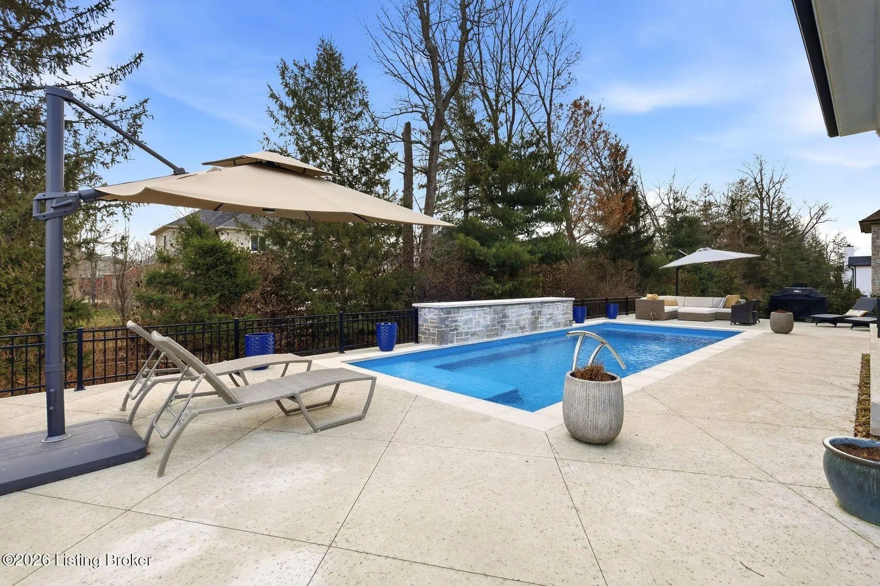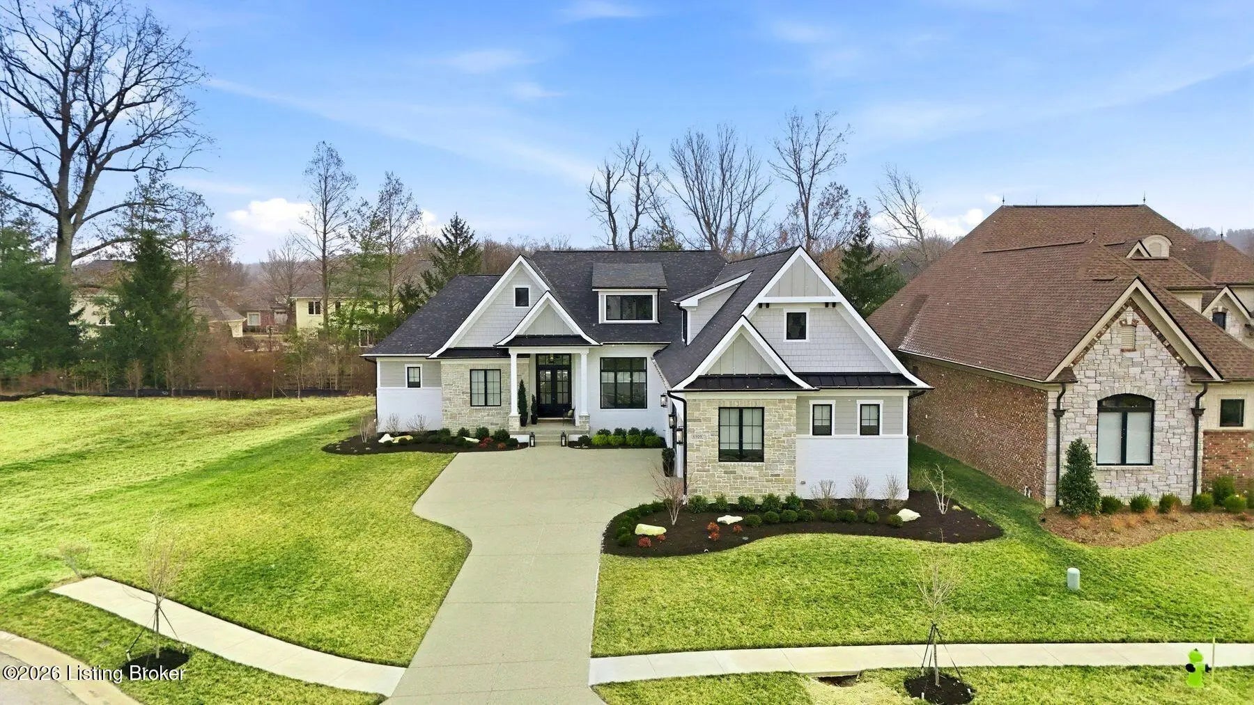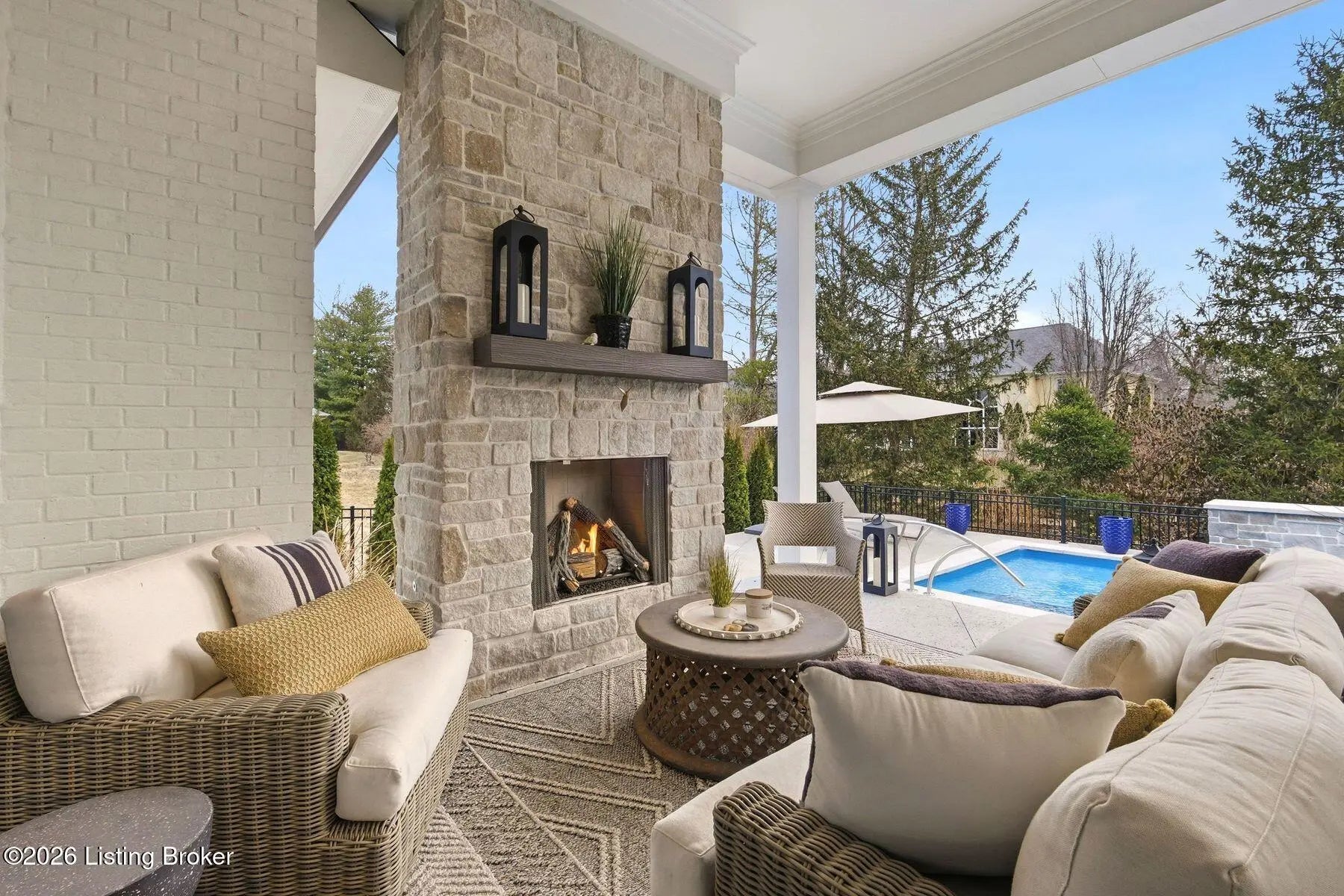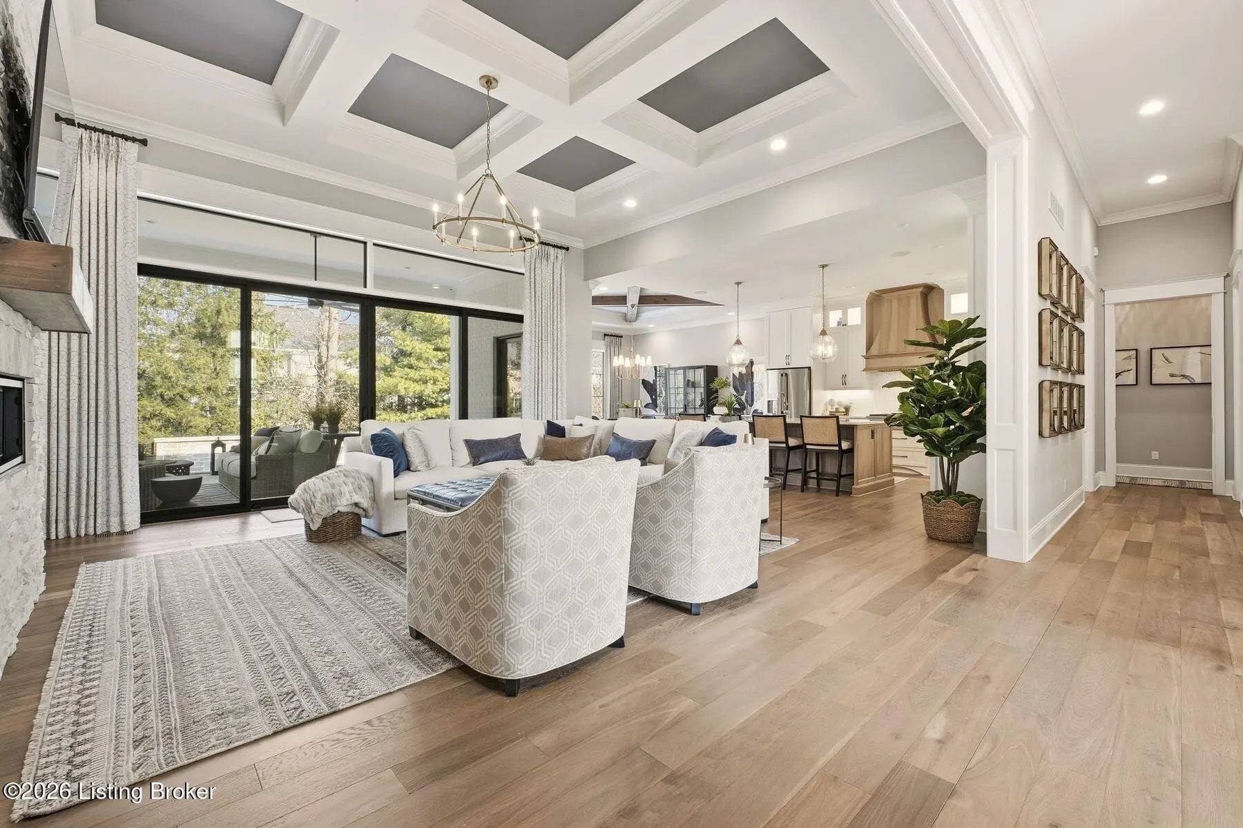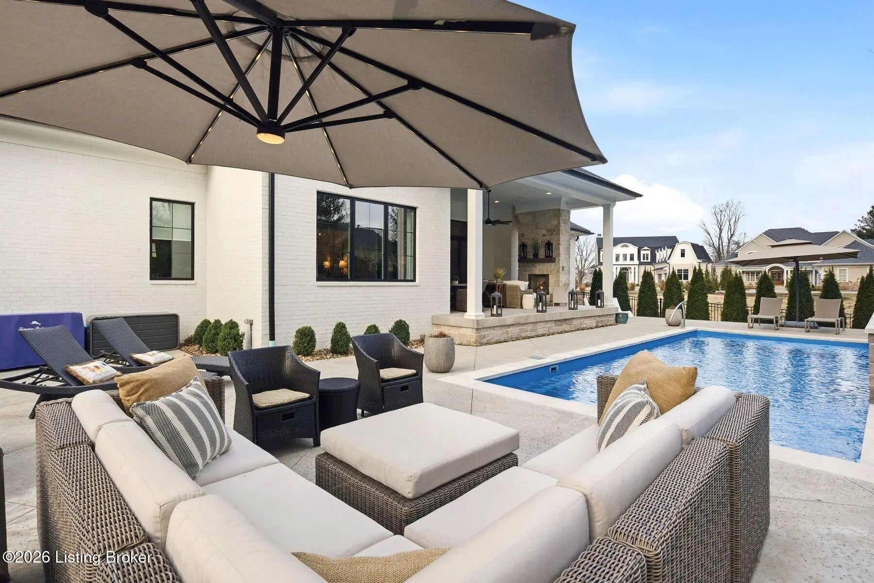 Experience refined luxury and effortless comfort in this exceptionally high-end custom ranch, where impeccable craftsmanship and designer details define every space. From the moment you enter, you're greeted by an expansive open-concept floor plan adorned with decorative wood ceilings, custom millwork, and stunning designer light fixtures that elevate each room with warmth and sophistication. A beautifully designed main-floor office adds both function and flair, perfect for working from home or serving as a refined flex room. The gourmet kitchen is a true showpiece, featuring custom cabinetry, premium Cambria countertops, and top-tier finishes that seamlessly blend beauty and functionality—ideal for both everyday living and elegant entertaining. The lavish primary suite is a private retreat, offering a spa-inspired en suite bath complete with dual vanities, double sinks, a deep soaking tub, an oversized walk-in shower, and a custom-designed walk-in closet tailored for luxury organization. Two additional spacious bedrooms each feature their own beautifully appointed en suite baths, ensuring comfort and privacy for family and guests alike. The main level is complete with a gorgeous powder bath and a conveniently located first-floor laundry, adding both style and everyday ease to this beautifully designed home. Step outside to your own resort-style oasis—an exquisite pool setting designed for relaxation and entertaining, surrounded by serene views and thoughtfully designed outdoor living space complete with outdoor fireplace. The fully finished lower level expands the home's exceptional lifestyle offerings. Enjoy a spacious family room, wet bar, dedicated game area, state-of-the-art golf simulator room, additional bedroom, full bath, and a private exercise room—creating the ultimate destination for recreation and wellness without ever leaving home. Every detail of this remarkable residence reflects uncompromising quality, sophisticated design, and timeless elegance. This is more than a home—it's a statement of luxury living at its finest.