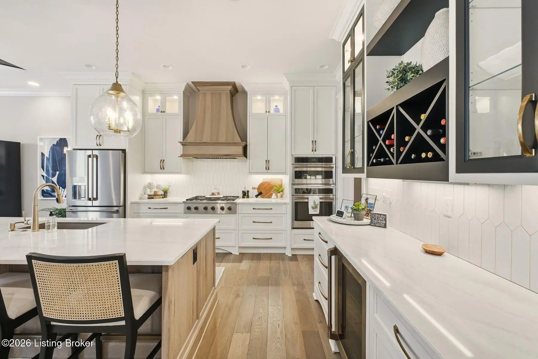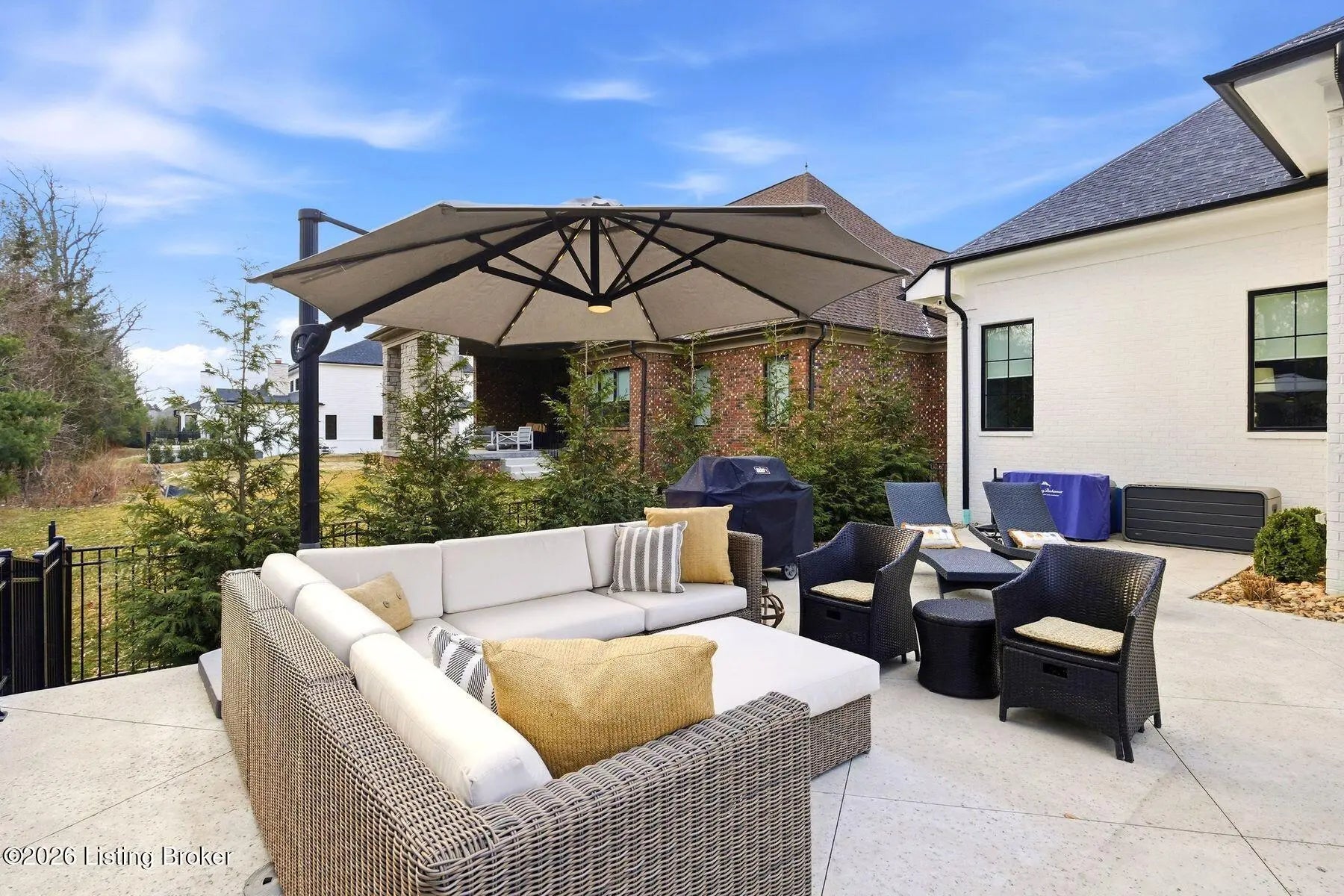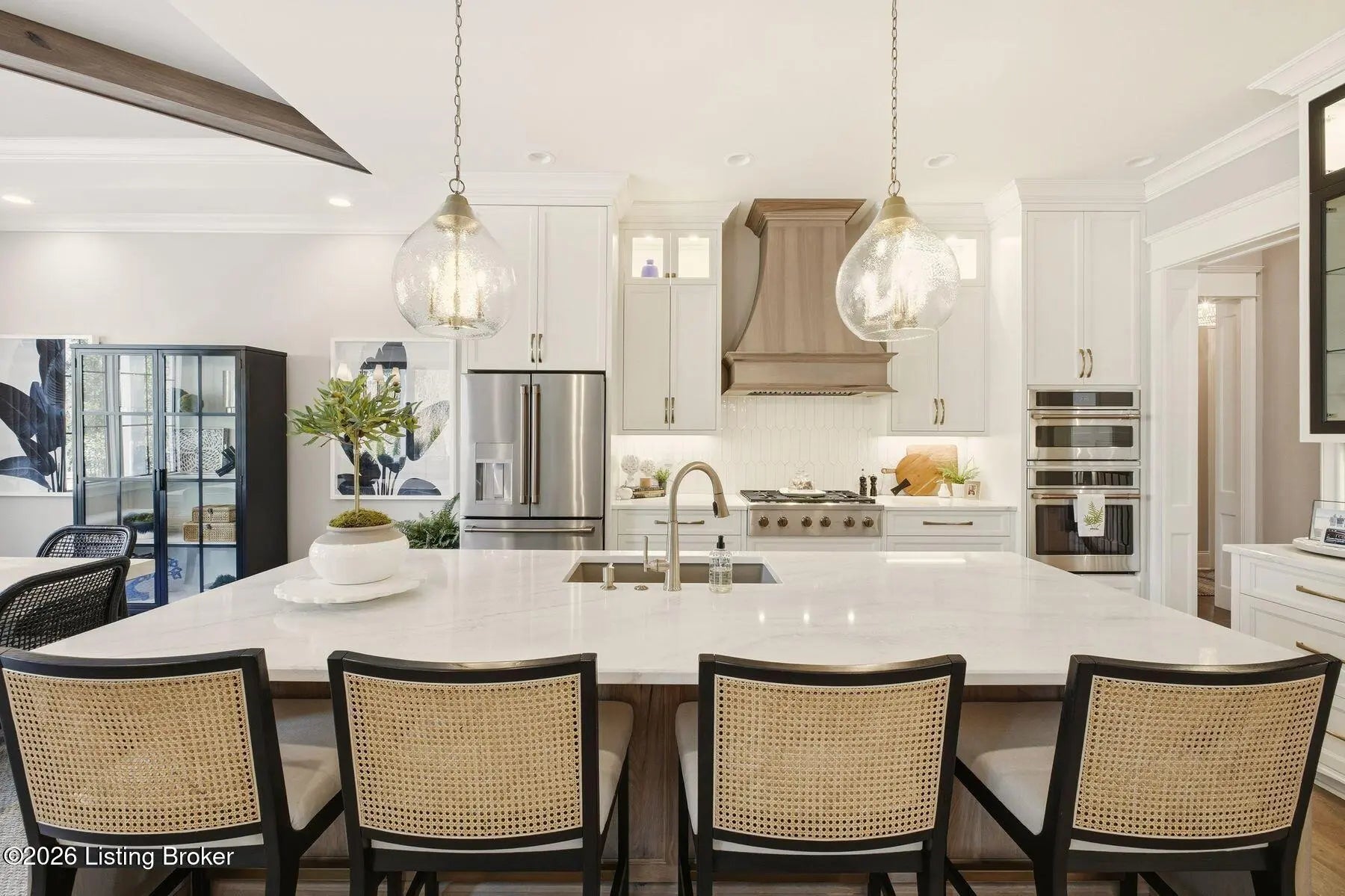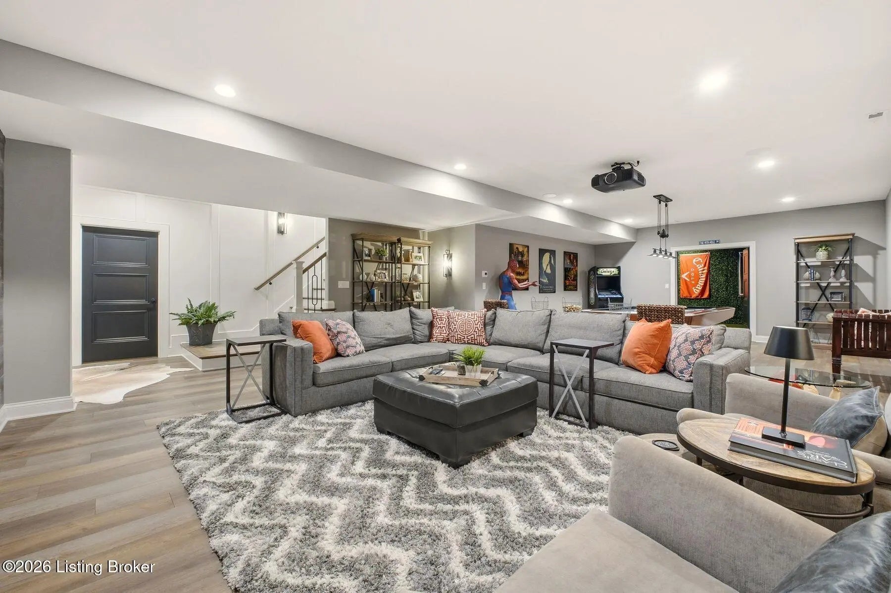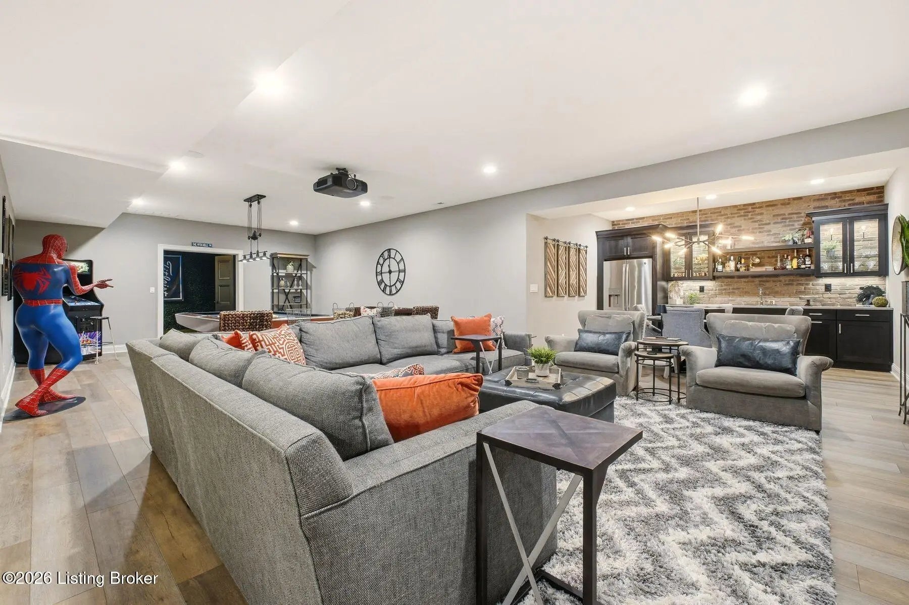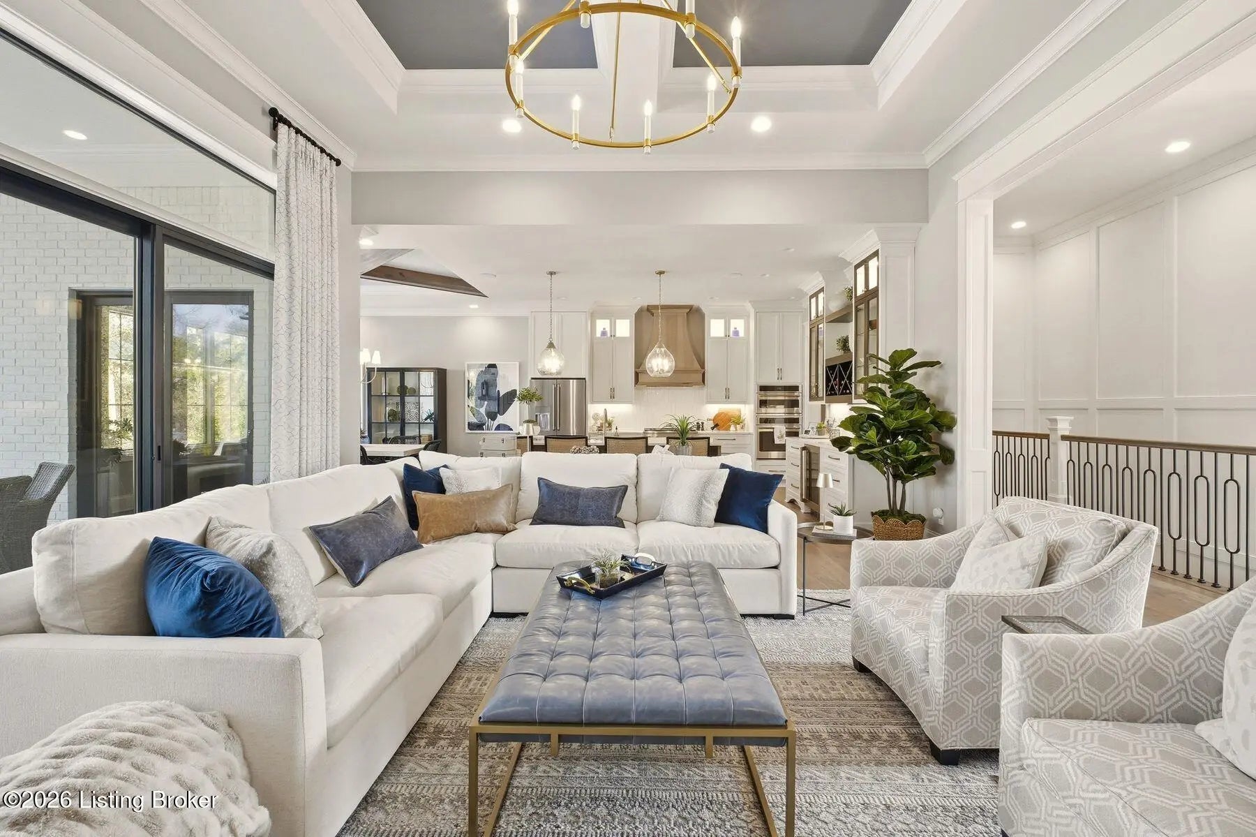 Experience refined luxury and effortless comfort in this exceptionally high-end custom ranch, where impeccable craftsmanship and designer details define every space. From the moment you enter, you're greeted by an expansive open-concept floor plan adorned with decorative wood ceilings, custom millwork, and stunning designer light fixtures that elevate each room with warmth and sophistication. A beautifully designed main-floor office adds both function and flair, perfect for working from home or serving as a refined flex room. The gourmet kitchen is a true showpiece, featuring custom cabinetry, premium Cambria countertops, and top-tier finishes that seamlessly blend beauty and functionality—ideal for both everyday living and elegant entertaining. The lavish primary suite is a private retreat, offering a spa-inspired en suite bath complete with dual vanities, double sinks, a deep soaking tub, an oversized walk-in shower, and a custom-designed walk-in closet tailored for luxury organization. Two additional spacious bedrooms each feature their own beautifully appointed en suite baths, ensuring comfort and privacy for family and guests alike. The main level is complete with a gorgeous powder bath and a conveniently located first-floor laundry, adding both style and everyday ease to this beautifully designed home. Step outside to your own resort-style oasis—an exquisite pool setting designed for relaxation and entertaining, surrounded by serene views and thoughtfully designed outdoor living space complete with outdoor fireplace. The fully finished lower level expands the home's exceptional lifestyle offerings. Enjoy a spacious family room, wet bar, dedicated game area, state-of-the-art golf simulator room, additional bedroom, full bath, and a private exercise room—creating the ultimate destination for recreation and wellness without ever leaving home. Every detail of this remarkable residence reflects uncompromising quality, sophisticated design, and timeless elegance. This is more than a home—it's a statement of luxury living at its finest.