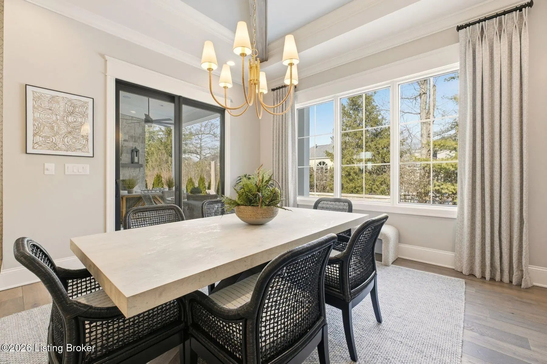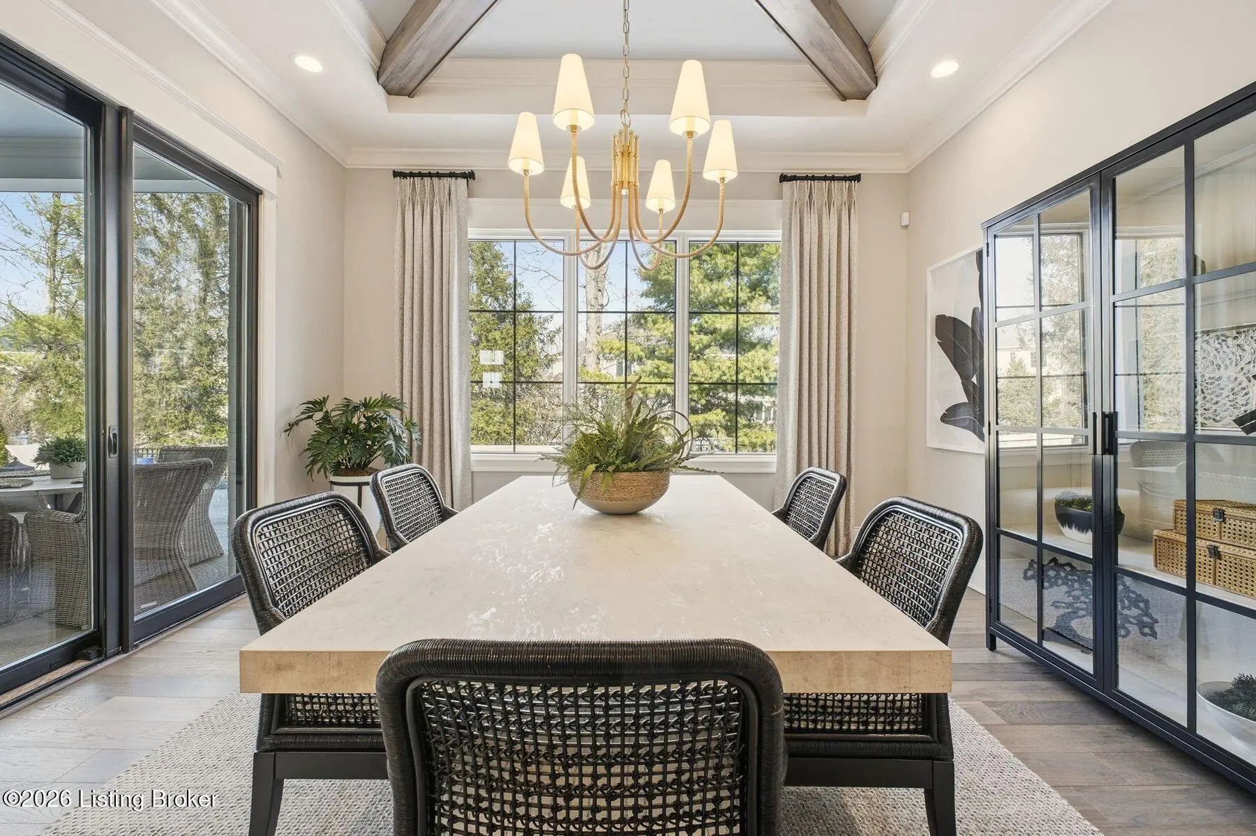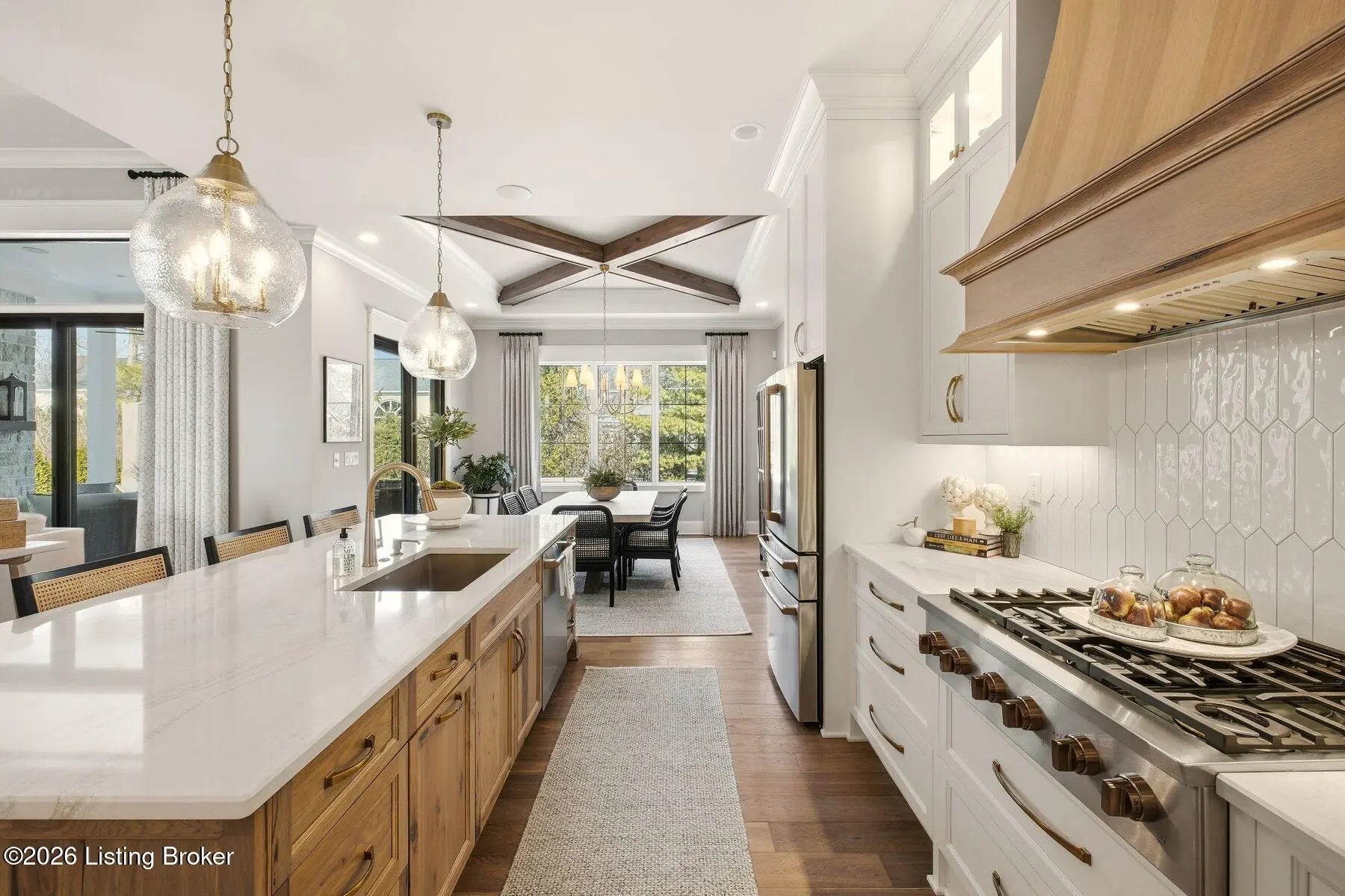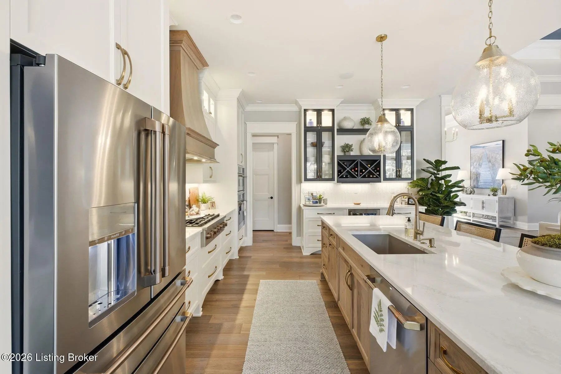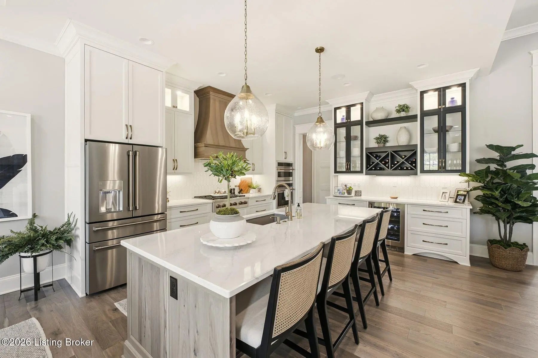 Experience refined luxury and effortless comfort in this exceptionally high-end custom ranch, where impeccable craftsmanship and designer details define every space. From the moment you enter, you're greeted by an expansive open-concept floor plan adorned with decorative wood ceilings, custom millwork, and stunning designer light fixtures that elevate each room with warmth and sophistication. A beautifully designed main-floor office adds both function and flair, perfect for working from home or serving as a refined flex room. The gourmet kitchen is a true showpiece, featuring custom cabinetry, premium Cambria countertops, and top-tier finishes that seamlessly blend beauty and functionality—ideal for both everyday living and elegant entertaining. The lavish primary suite is a private retreat, offering a spa-inspired en suite bath complete with dual vanities, double sinks, a deep soaking tub, an oversized walk-in shower, and a custom-designed walk-in closet tailored for luxury organization. Two additional spacious bedrooms each feature their own beautifully appointed en suite baths, ensuring comfort and privacy for family and guests alike. The main level is complete with a gorgeous powder bath and a conveniently located first-floor laundry, adding both style and everyday ease to this beautifully designed home. Step outside to your own resort-style oasis—an exquisite pool setting designed for relaxation and entertaining, surrounded by serene views and thoughtfully designed outdoor living space complete with outdoor fireplace. The fully finished lower level expands the home's exceptional lifestyle offerings. Enjoy a spacious family room, wet bar, dedicated game area, state-of-the-art golf simulator room, additional bedroom, full bath, and a private exercise room—creating the ultimate destination for recreation and wellness without ever leaving home. Every detail of this remarkable residence reflects uncompromising quality, sophisticated design, and timeless elegance. This is more than a home—it's a statement of luxury living at its finest.