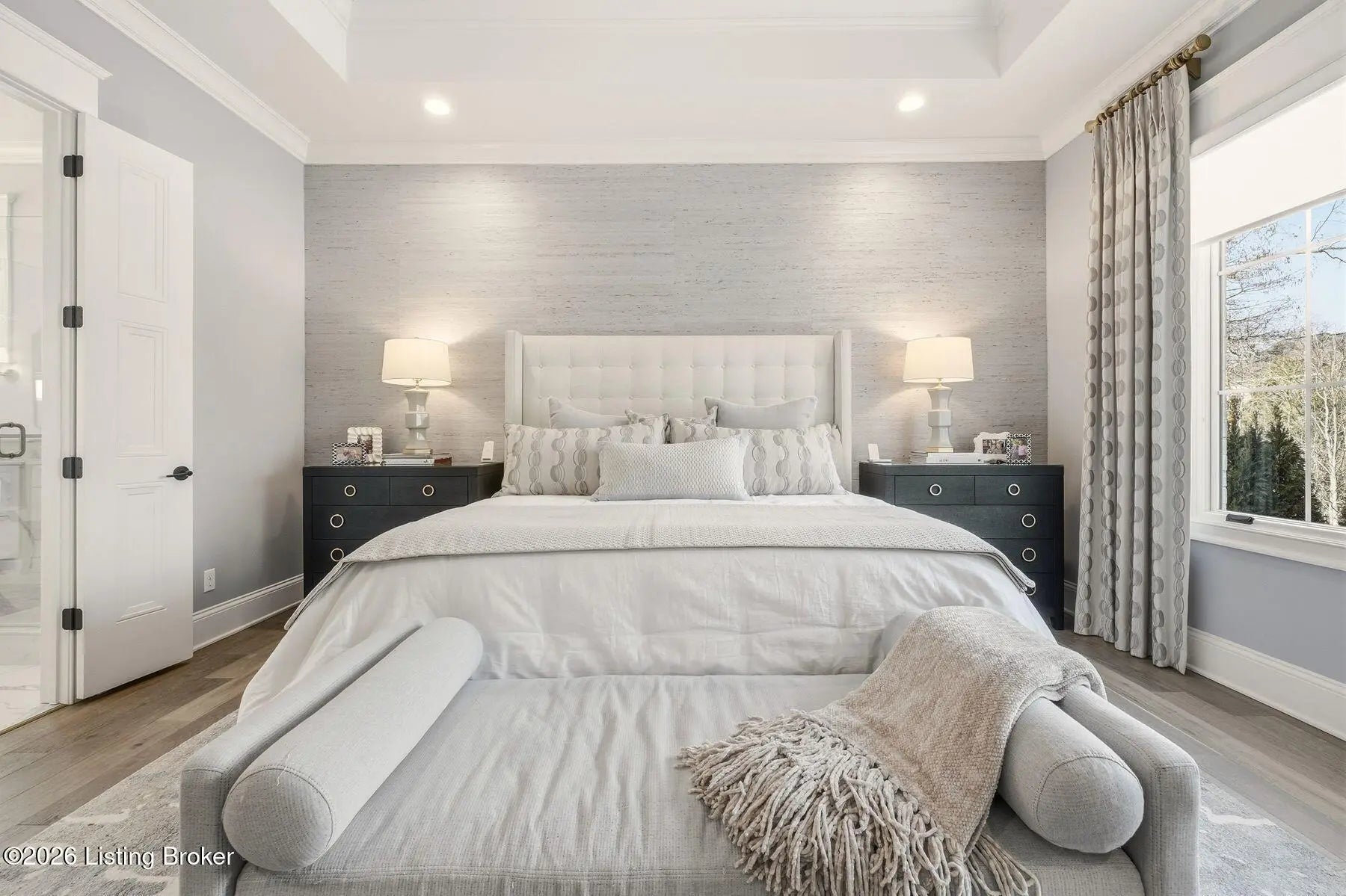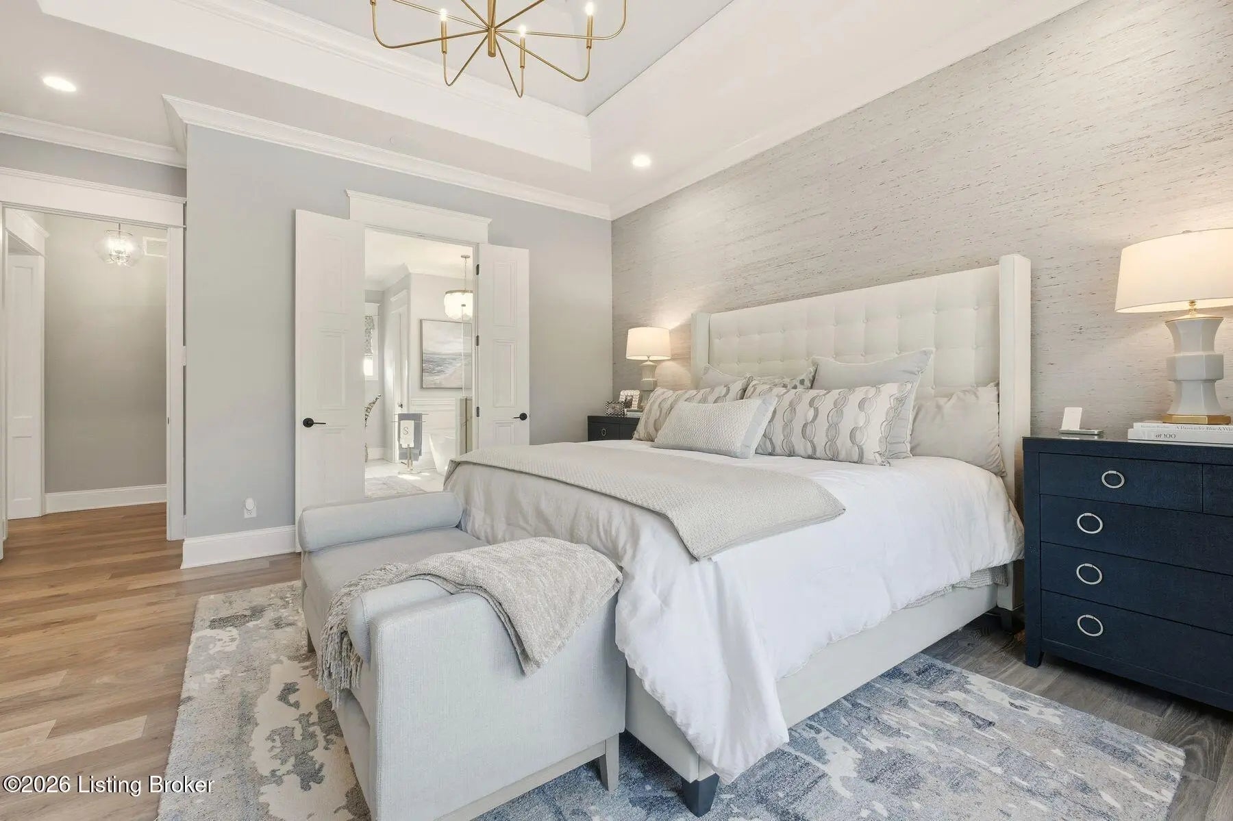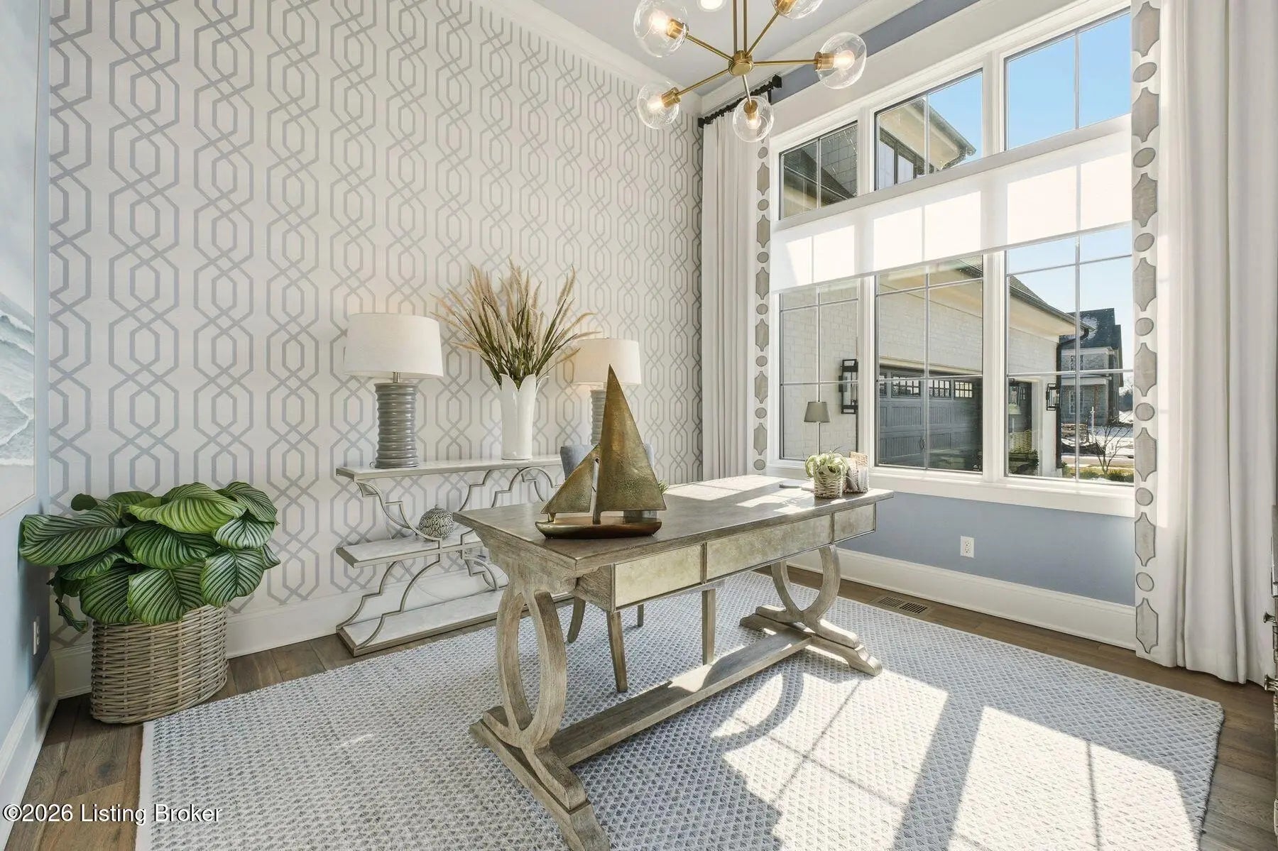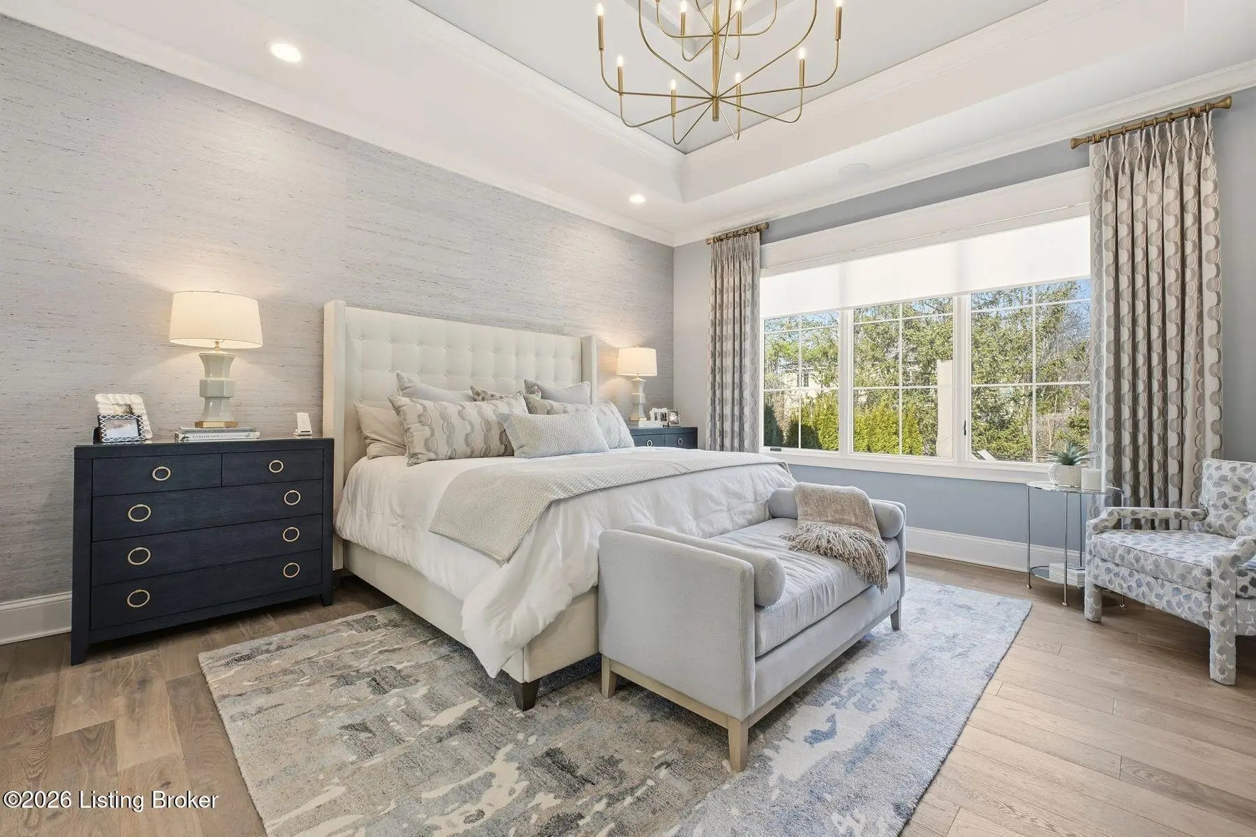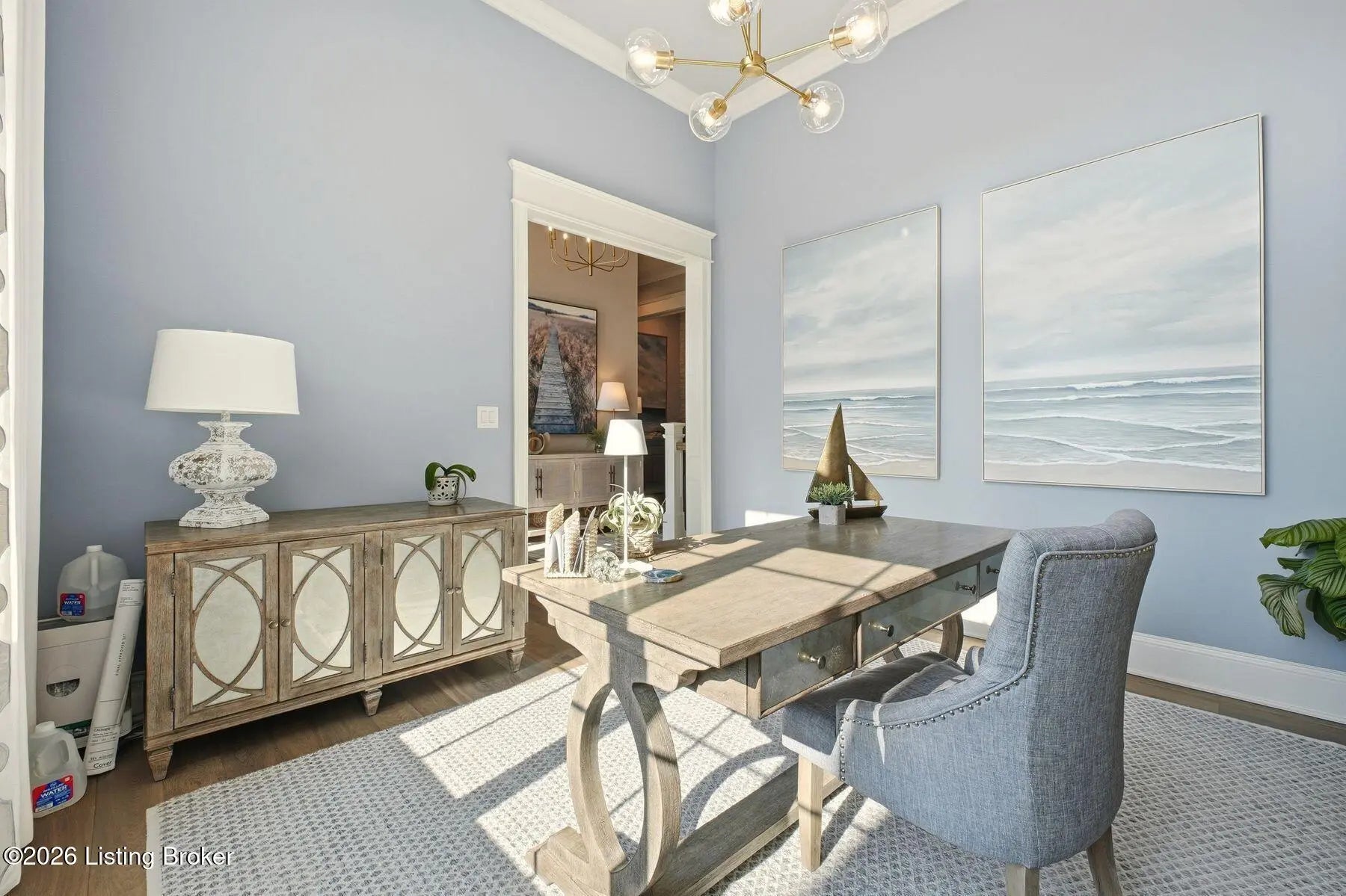 Experience refined luxury and effortless comfort in this exceptionally high-end custom ranch, where impeccable craftsmanship and designer details define every space. From the moment you enter, you're greeted by an expansive open-concept floor plan adorned with decorative wood ceilings, custom millwork, and stunning designer light fixtures that elevate each room with warmth and sophistication. A beautifully designed main-floor office adds both function and flair, perfect for working from home or serving as a refined flex room. The gourmet kitchen is a true showpiece, featuring custom cabinetry, premium Cambria countertops, and top-tier finishes that seamlessly blend beauty and functionality—ideal for both everyday living and elegant entertaining. The lavish primary suite is a private retreat, offering a spa-inspired en suite bath complete with dual vanities, double sinks, a deep soaking tub, an oversized walk-in shower, and a custom-designed walk-in closet tailored for luxury organization. Two additional spacious bedrooms each feature their own beautifully appointed en suite baths, ensuring comfort and privacy for family and guests alike. The main level is complete with a gorgeous powder bath and a conveniently located first-floor laundry, adding both style and everyday ease to this beautifully designed home. Step outside to your own resort-style oasis—an exquisite pool setting designed for relaxation and entertaining, surrounded by serene views and thoughtfully designed outdoor living space complete with outdoor fireplace. The fully finished lower level expands the home's exceptional lifestyle offerings. Enjoy a spacious family room, wet bar, dedicated game area, state-of-the-art golf simulator room, additional bedroom, full bath, and a private exercise room—creating the ultimate destination for recreation and wellness without ever leaving home. Every detail of this remarkable residence reflects uncompromising quality, sophisticated design, and timeless elegance. This is more than a home—it's a statement of luxury living at its finest.