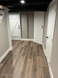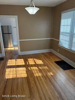 This is a duplex in St. Matthews. Private Residence with shared 2 car detached garage. 2 Bedrooms upstairs, one larger and one smaller. Updated appliances, hardwood floors throughout, and brand new renovated basement with walk out to drive
