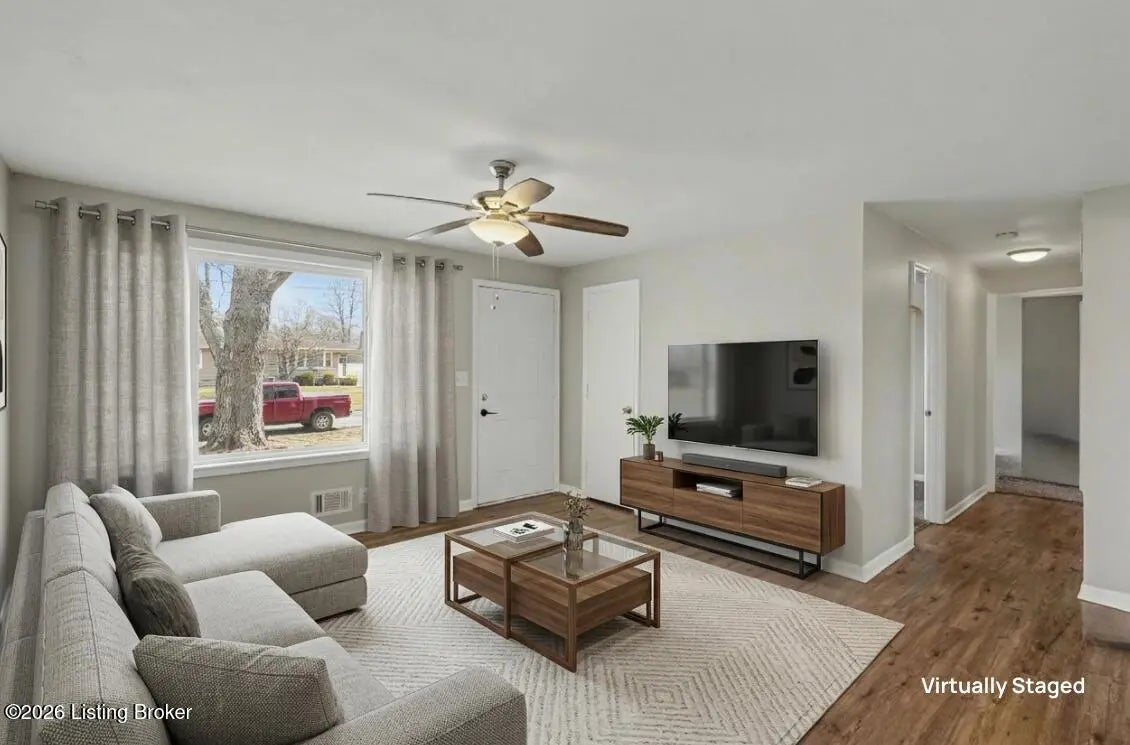 Welcome to this beautifully updated 3-bedroom ranch in Louisville's Pleasure Ridge Park community. This move-in ready home offers updated flooring, fresh neutral paint, and abundant natural light from the oversized front window. The kitchen features white cabinetry, updated countertops, modern lighting, and a functional layout with great prep space that flows into the main living area. The full bathroom has been tastefully updated with stylish tilework and contemporary fixtures. All three bedrooms provide comfortable space with neutral finishes and good natural light. Step outside to a large, flat backyard with mature trees, offering shade and space to enjoy the outdoors. An extended driveway provides convenient off-street parking. Located with easy access to Dixie Highway, the Watterson Expressway, shopping, and dining, this updated Louisville home combines comfort, functionality, and value. Don't hesitate to schedule your private showing today!