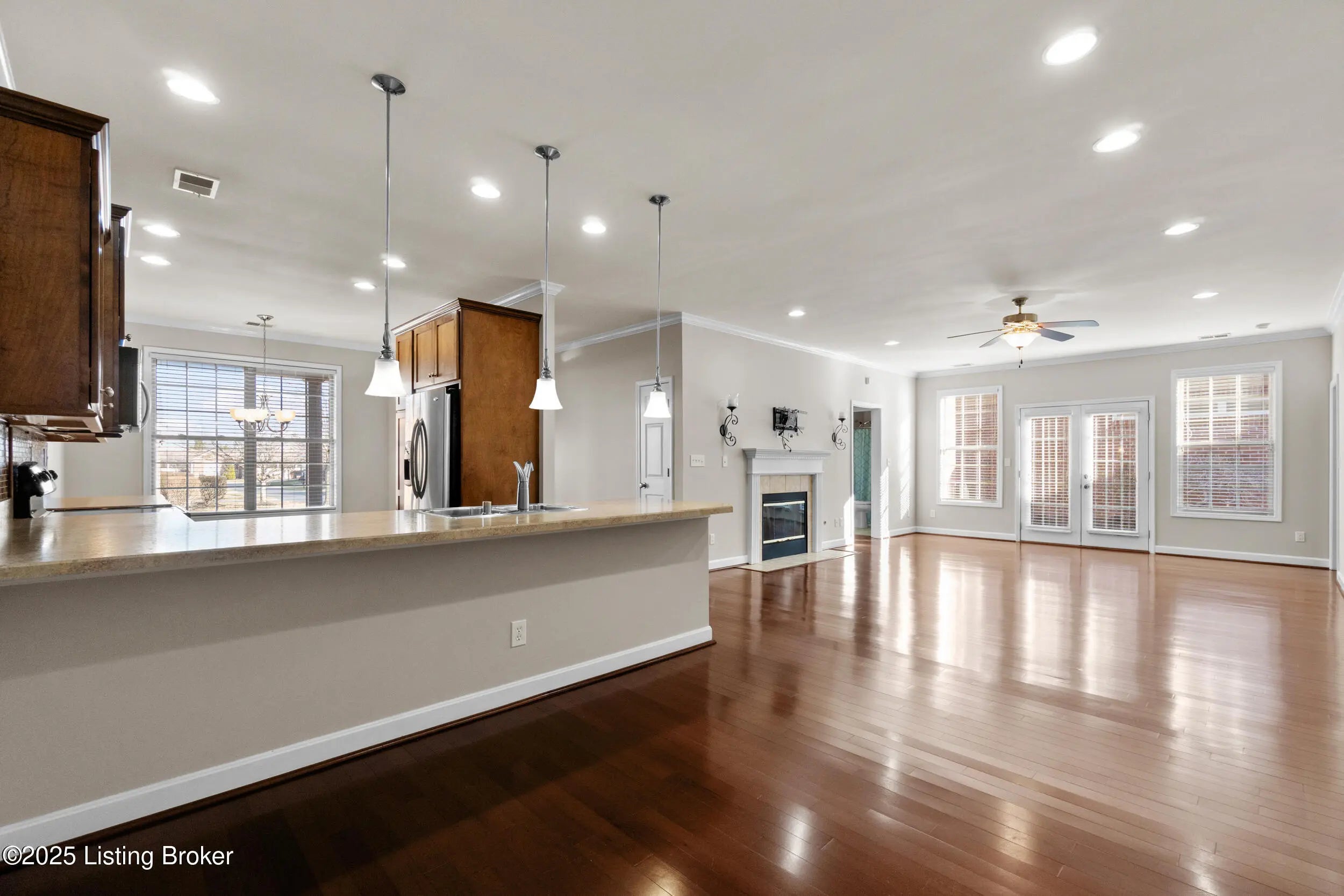 Carrington Greene is a lovely, private condo community perfectly located just off Taylorsville Rd. The next owner will enjoy maintenance free living all on one level! Spacious rooms, an open floorplan, neutral decor, and fresh paint throughout immediately catch your attention. Along with 2 bedrooms, you'll appreciate a third bonus room as well as a designated office just off the primary bedroom. Double doors take you outside the office onto your very own, private patio. A luxurious en-suite bathroom, walk-in closet, gas fireplace, and beautiful hardwood flooring are a few other captivating features you'll immediately love. Need extra storage? This home has attic access in the garage, a finished space with lights. Don't miss an opportunity to make this your next home! Agents SEE NOTES.