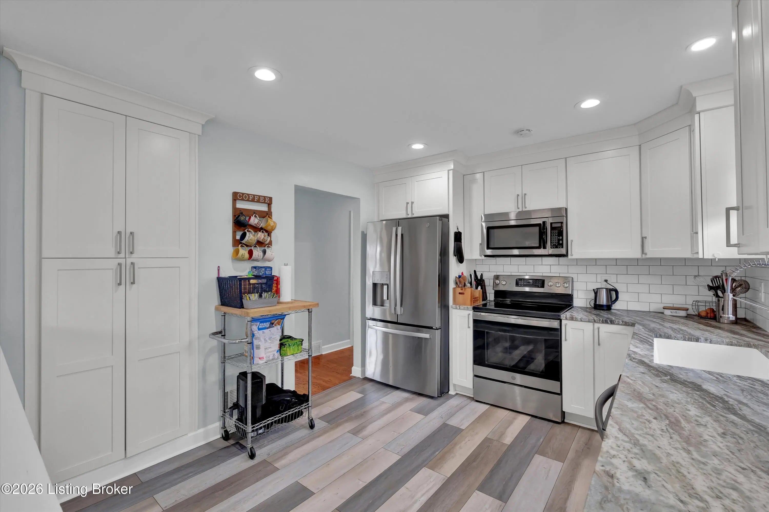 Welcome to Friendly Hills, where this charming 4 bedroom, 3 full bath Bedford stone ranch offers space, flexibility and thoughtful updates in the heart of Highview. The main level showcases lovely hardwood floors, a stone fireplace and a beautifully remodeled kitchen with new cabinets, flooring, leathered granite counter tops, and stainless steel appliances. Down the hall, you'll find two versatile bedrooms currently used as an office and playroom, along with a full bath featuring a tub/shower combination. The primary bedroom, tucked privately at the end of the hallway, includes its own cozy en-suite bath. A true highlight of the home, the finished walkout basement, features new flooring, a second stone fireplace, a stylishly updated full bathroom and built-in bookcase. This flexible space is currently being used as an alternative primary bedroom, but could easily serve as a comfy recreation or media room. The spacious open closet and laundry area plus a large 4 th bedroom and storage area complete the home. Step outside to enjoy a fully fenced backyard, a refreshed deck for outdoor gatherings and a new shed for added convenience. Major updates, including a new roof and newer heat pump, provide peace of mind for years to come. With multiple living areas, and flexible spaces both inside and out, this Bedford beauty is ready to welcome its new owners - schedule your private showing today!
