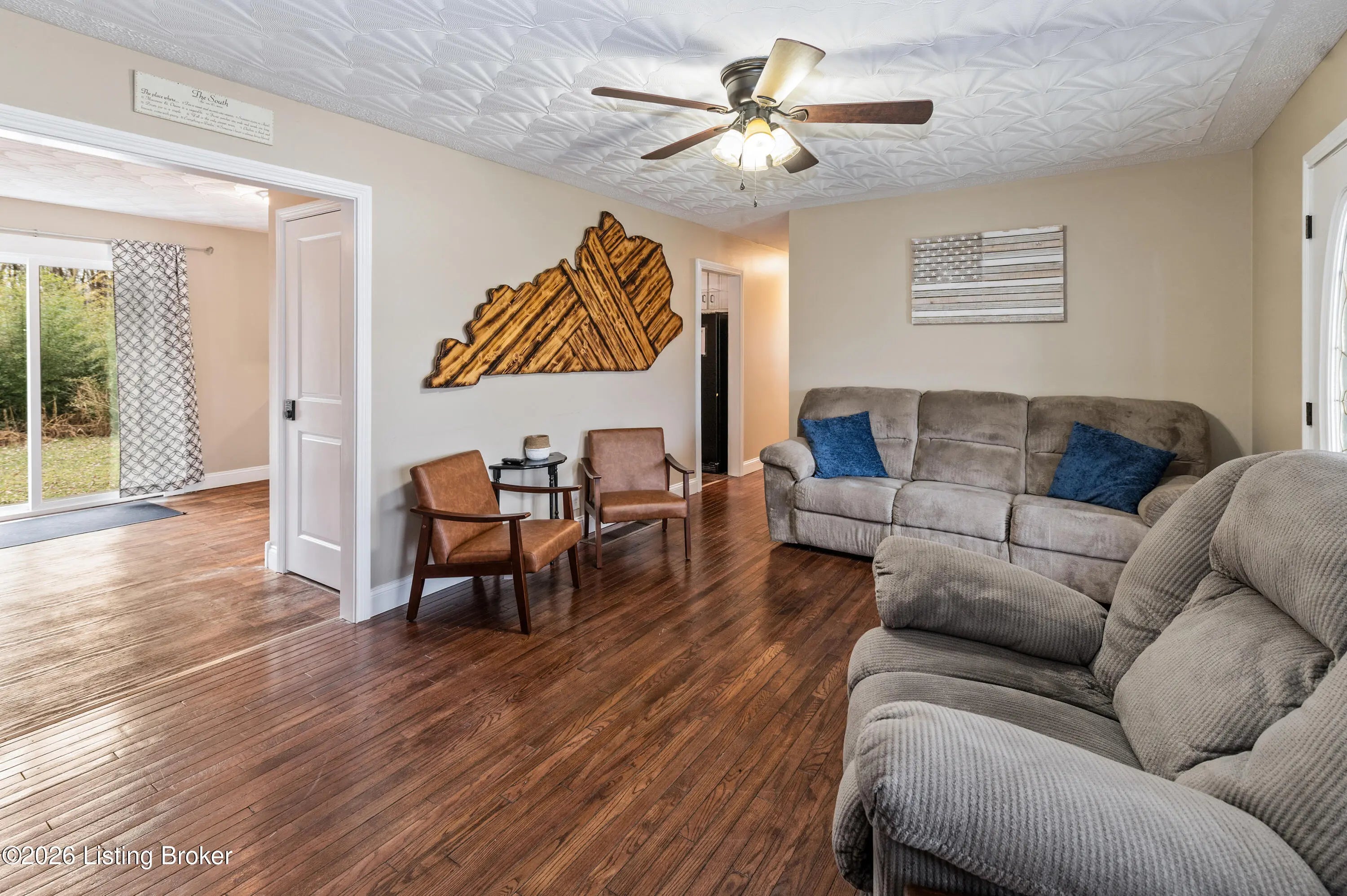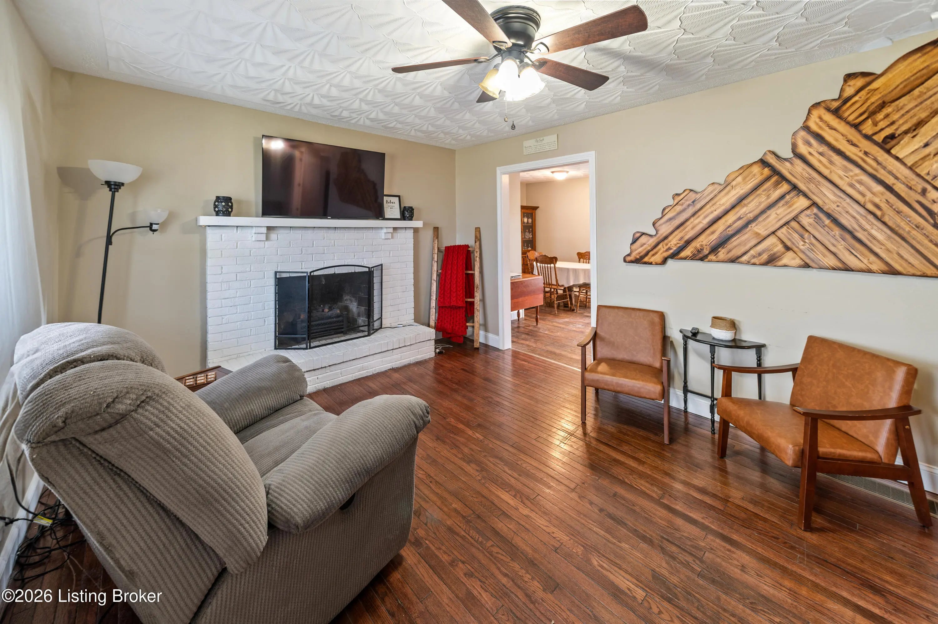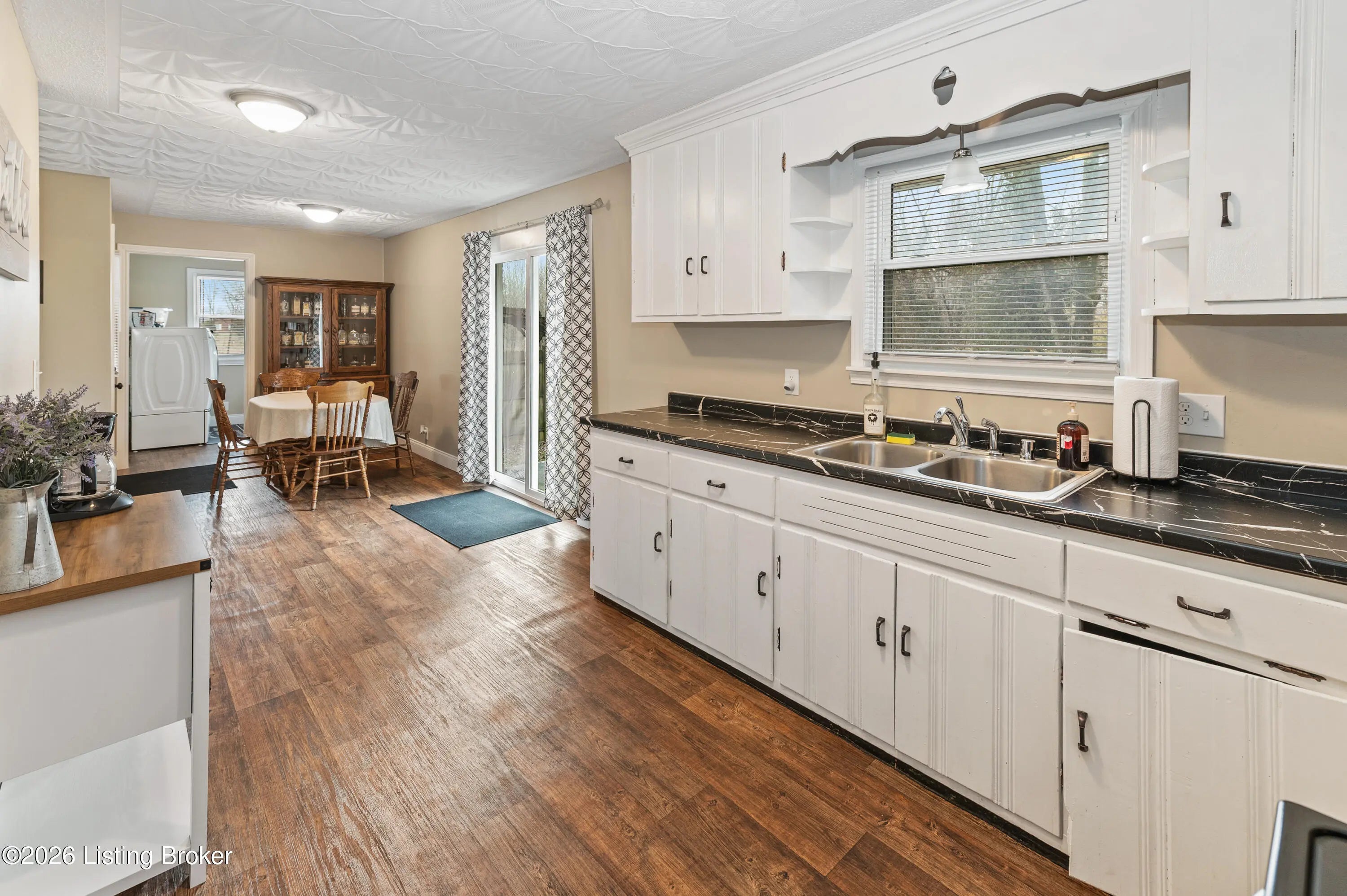 Over one acre with commercial zoning, this well-maintained 3 bedroom, 2 bath ranch offers flexibility for residential or business use. The living room with fireplace flows into the dining area and kitchen, creating a comfortable layout. The laundry room is conveniently off the kitchen. Sliding glass doors lead to the rear patio, and a large carport accessible from the kitchen can also serve as a covered patio. Some original hardwood floors remain, adding character to the home. The primary suite features a private bath, with two additional bedrooms and a second full bath on the main level. A walk-up, unfinished basement offers storage or room for future expansion. Recently used as an Airbnb, this property presents an opportunity for continued short-term rental or owner occupancy.