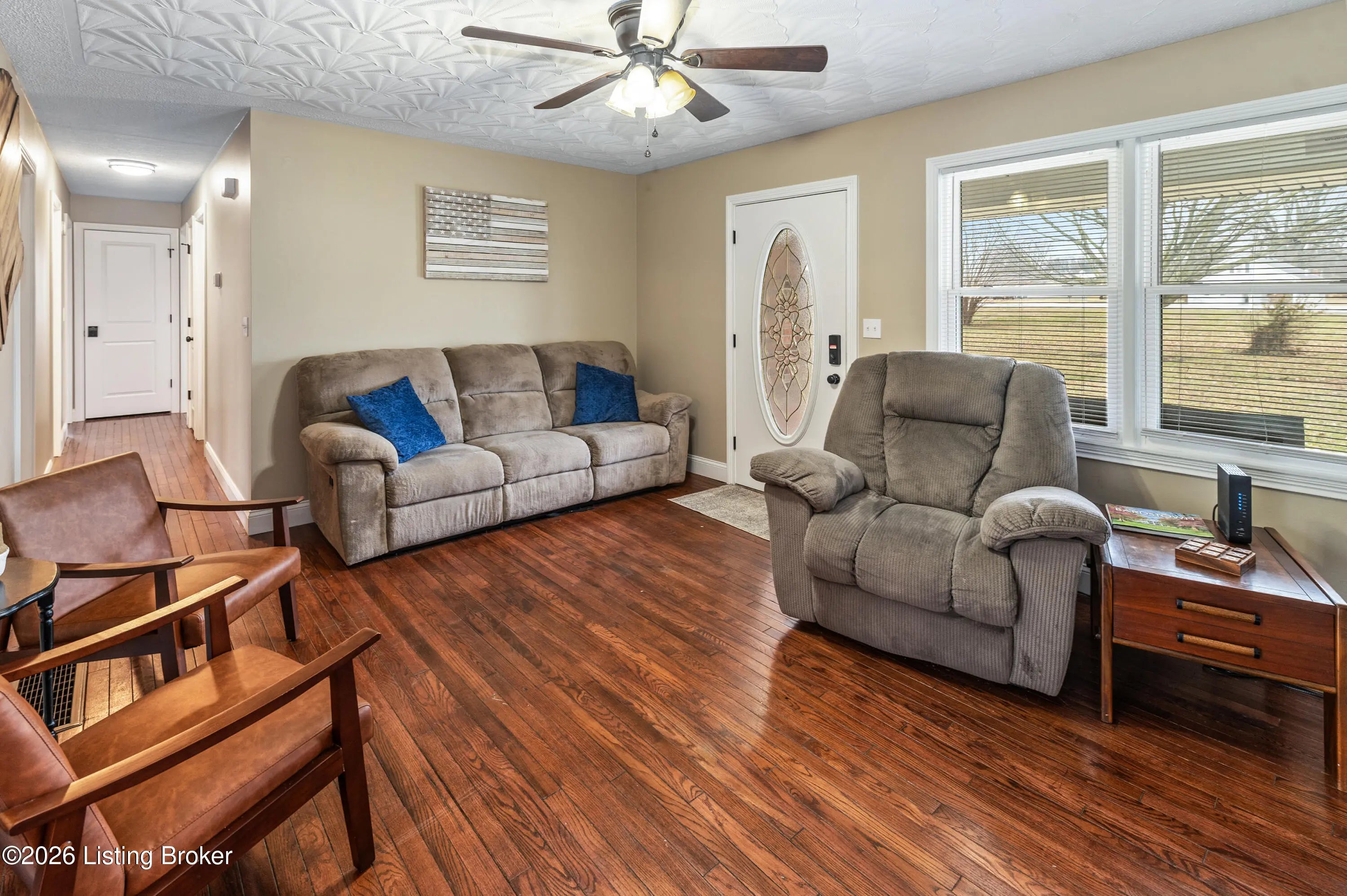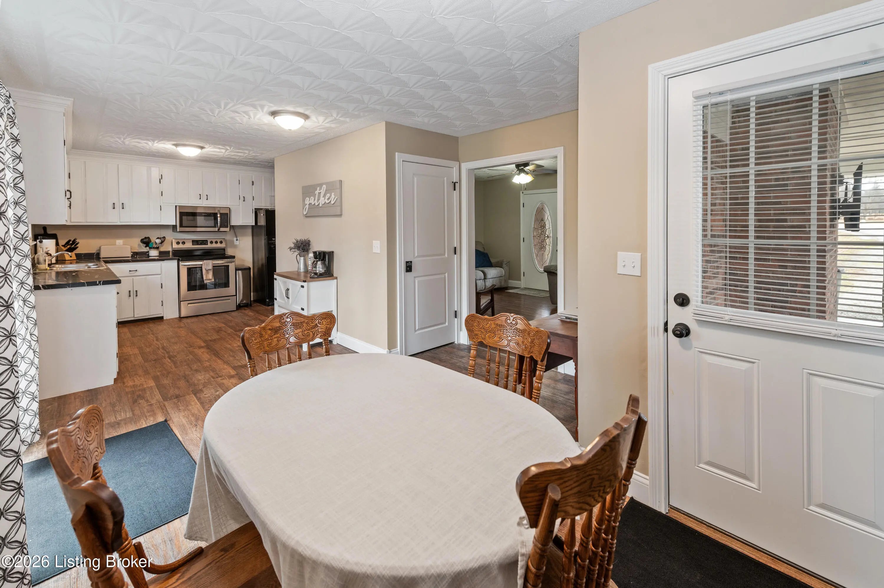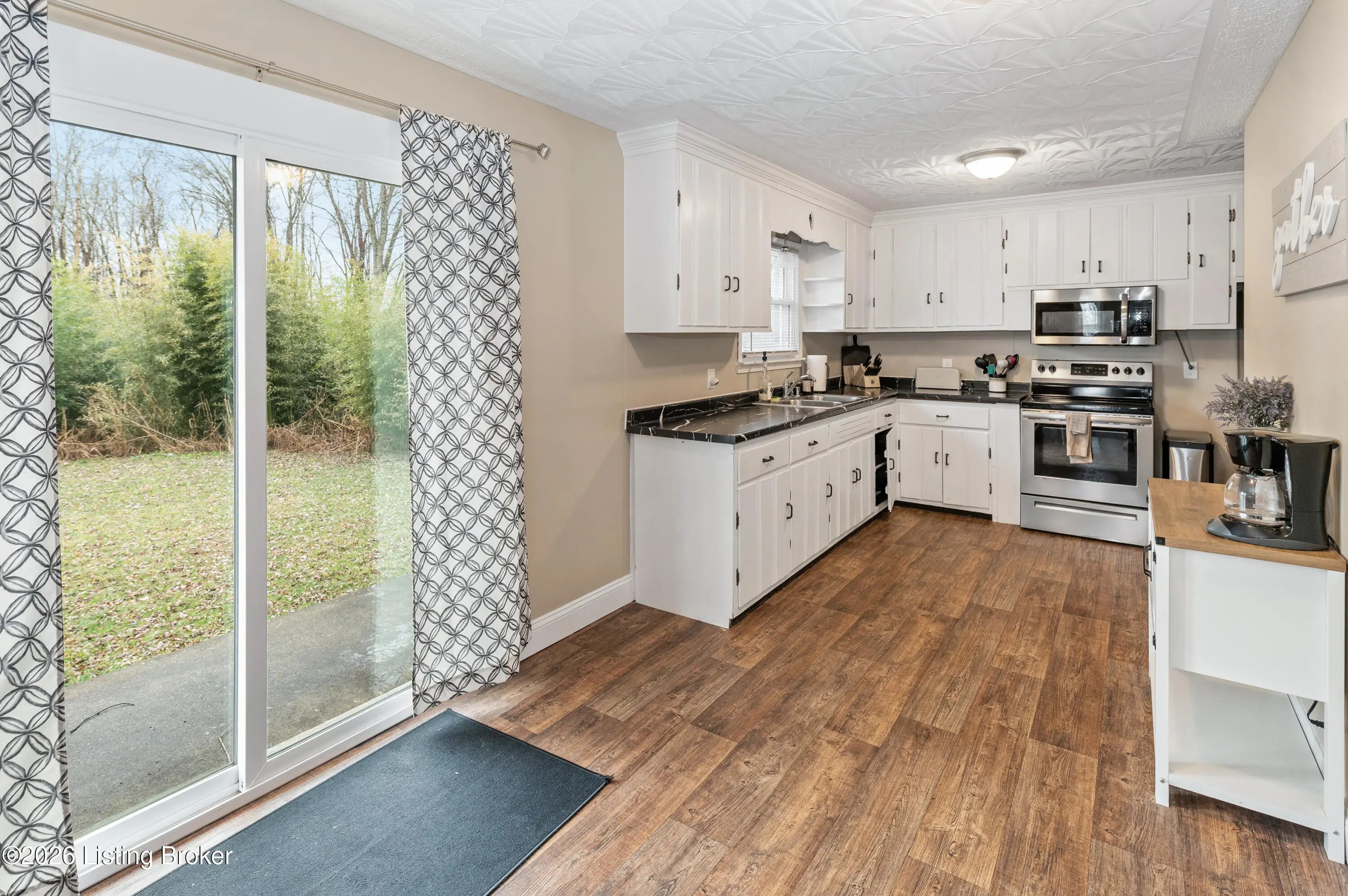 Over one acre with commercial zoning, this well-maintained 3 bedroom, 2 bath ranch offers flexibility for residential or business use. The living room with fireplace flows into the dining area and kitchen, creating a comfortable layout. The laundry room is conveniently off the kitchen. Sliding glass doors lead to the rear patio, and a large carport accessible from the kitchen can also serve as a covered patio. Some original hardwood floors remain, adding character to the home. The primary suite features a private bath, with two additional bedrooms and a second full bath on the main level. A walk-up, unfinished basement offers storage or room for future expansion. Recently used as an Airbnb, this property presents an opportunity for continued short-term rental or owner occupancy.