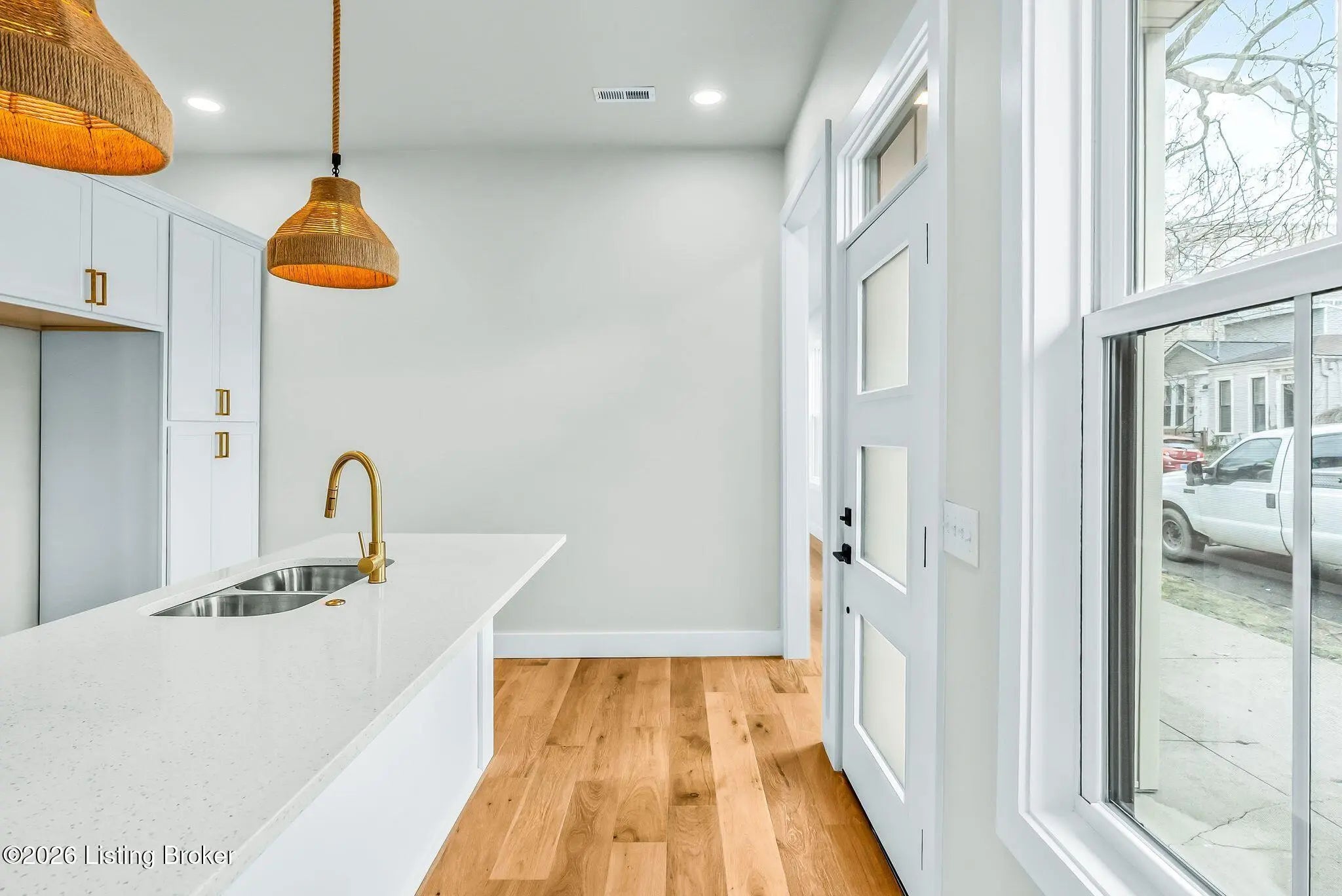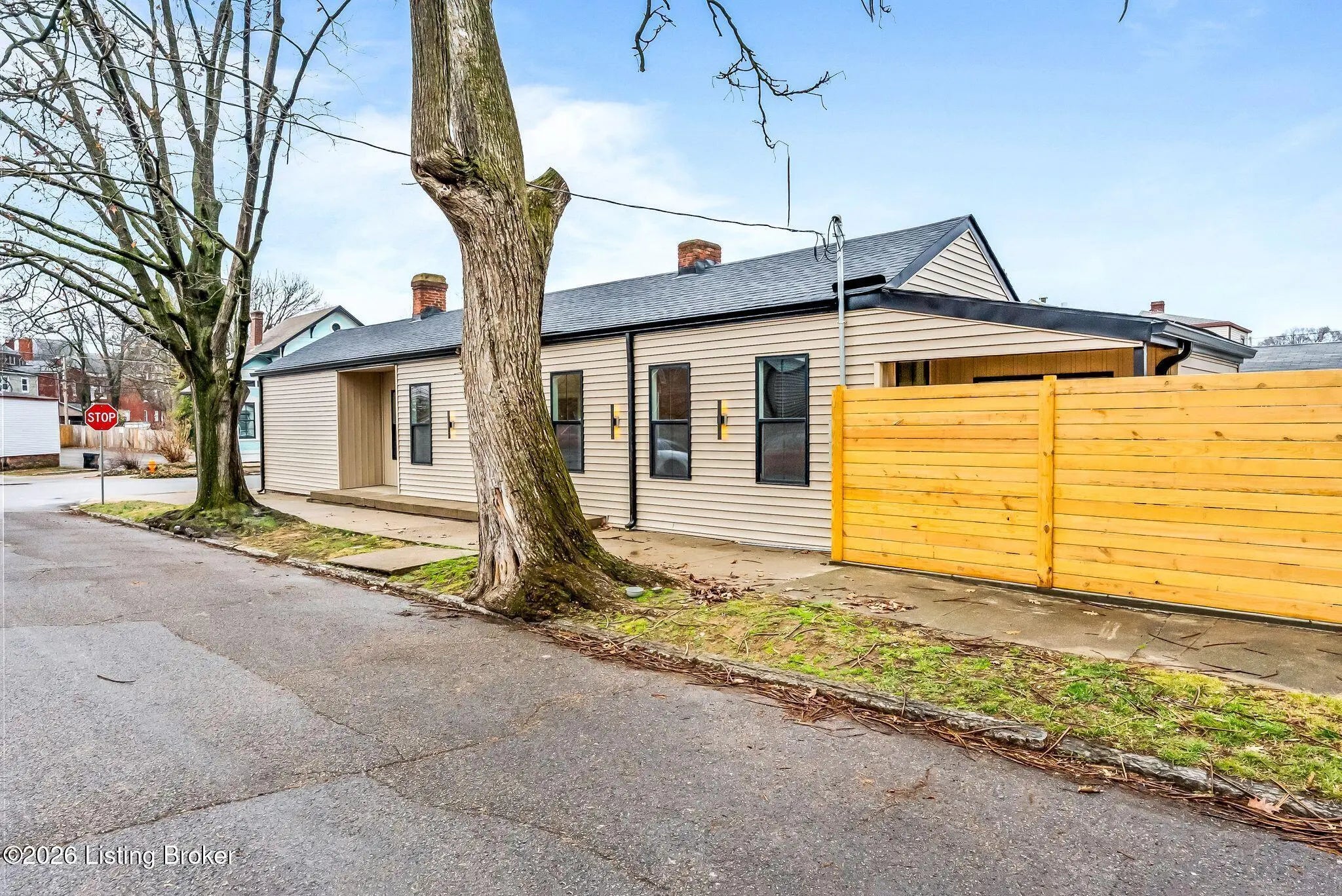 Like-New Construction in the heart of the Original Highlands! This striking 2 Bed, 2 Full Bath home recently underwent a comprehensive, top-to-bottom renovation that seamlessly fuses modern systems with a meticulously curated, design-forward aesthetic. Positioned on a Corner Lot w/ Off-Street Parking, you'll have the very best of Bardstown Rd and Baxter Ave at your fingertips: artisan coffee shops, award-winning restaurants, eclectic local boutiques, farmers markets, Cherokee Park, NuLu, and Downtown all sit just minutes away. Every major system stands fully updated for ultimate peace of mind: New Roof, New Gutters + Siding, New Craftsman-Style Windows, New HVAC + Insulation, New Plumbing and Water Heater, New Electric throughout, plus all New Doors + Fixtures...what remains is the character. Inside, you will love the Hardwood Flooring that radiates warmth across a thoughtfully reimagined floor plan. The Living Room commands attention with dramatic Floor-to-Ceiling Windows, Recessed Lighting, and an original brick hearth that grounds the space in authentic Highlands character. The Eat-in Kitchen features Contemporary Cabinetry, Quartz Countertops, Stainless Steel Appliances, Vent Hood, and a statement peninsula crafted for casual dining, elevated entertaining, or gathering before a night out on Bardstown Rd. Tucked away privately at the end of the hallway, the Owner's Suite delivers a true retreat experience with a spa-inspired bath that blends natural wood-tones with a magazine-caliber shower. In addition, a rare Walk-in Closet includes Laundry Hookups for added convenience. The 2nd Bedroom offers generous proportions and dual closets, while the Hallway Bath mirrors the home's elevated aesthetic with a Dual Sink Vanity, crisp architectural detailing, and tile selections that feel custom rather than builder-grade. Corner Lot positioning welcomes exceptional natural light, framed by mature trees that enhance the streetscape and underscore the premier setting. Rear alley access provides Off-Street Parking behind a privacy fence, while the backyard delivers a private patio space with minimal upkeep. Distinctive finishing touches such as original corbels above the front door, sleek black exterior trim, curated sconce lighting, and a bold 3-Panel Glass Doors introduce a confident, modern edge without compromising classic charm. Rich textures and intentional material selections create a refined, bespoke finish rarely found at this price point. This is not just a renovation—it is a fully realized design statement for those ready to immerse themselves in the Highlands lifestyle.