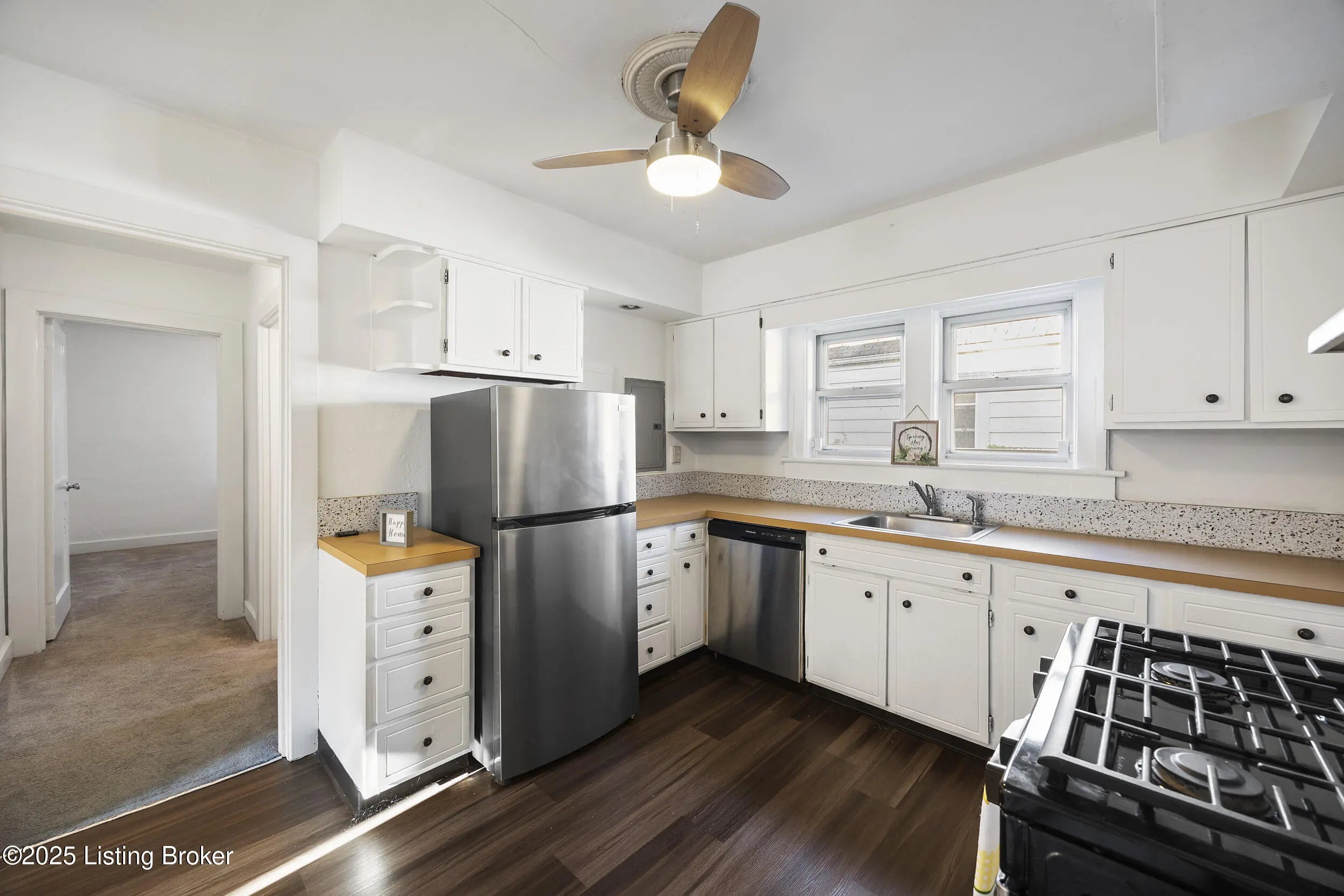 Lowest Interest rates in four years! This home may qualify for the NO DOWN PAYMENT, FIXED RATE DreamHome loan. Welcome to 1125 W Whitney. Home is waiting on its new owner. Brand new AC Unit! Very nice curb appeal! This 2 bedroom/1 bath would make a great starter home or new addition to your rental portfolio. Kitchen and bath have both been updated. Walk into home from front covered porch to carpeted living room. Nice architectural arched detail welcomes you to dining area with lighted built-in hutch and adjacent to the kitchen with newer appliances including dishwasher, pantry and additional peninsula with added storage! Hallway off of kitchen leads to full bath and bedroom. There is a nice utility room at bottom of stairs with washer/dryer hookups. New air conditioning unit installed August 19, 2025. Ceiling fans in lower level keep utility expense reasonable. Going up stairs to massive second bedroom with built in storage and closets. There is a booster window AC unit that will stay with the property. Walk out the back door into a fully fenced rear yard. Fence has mesh cover for added shade! Walk out charming brick path to delightful screened in porch attached to newer 1-1/2 car cement block garage with workbench and electronic door opener. Driveway is shared and new agreement will be updated with deed transfer. Property being sold in as is condition. Don't miss this great opportunity. Conveniently off Taylor Blvd. with quick access to shopping, restaurants, bars, Iroquois Park, and the Watterson Expressway. Call today! Seller has right to execute 1031 exchange on this transaction at no expense to the buyer. PLEASE NOTE PROPERTY NEXT DOOR IS ALSO FOR SALE MLS #1710187. For investors they are vacant and ready to rent. Or consider this: Rare Compound Living Opportunity - Two Homes, One Driveway, Endless Possibilities! These two charming homes sit side by side and share a driveway, offering a unique setup with flexibility for a variety of living arrangements from shared ownership to dual rental income. Whether you'd like to occupy one home and lease the other, or simply enjoy the convenience of nearby yet independent living spaces, this property provides both privacy and connection in one smart investment.