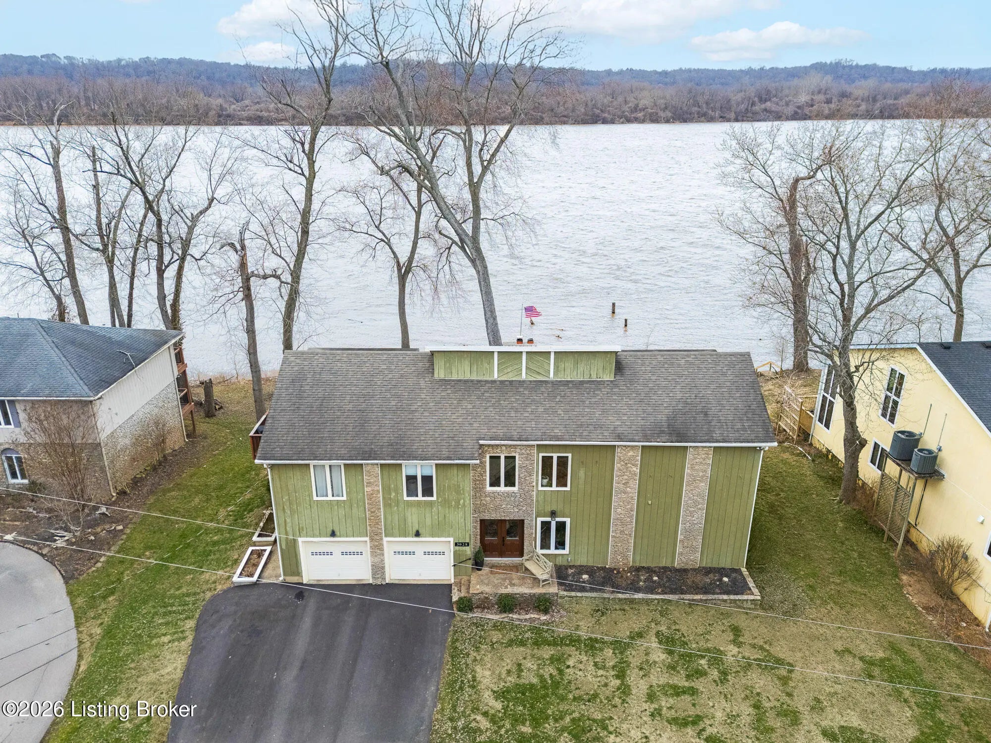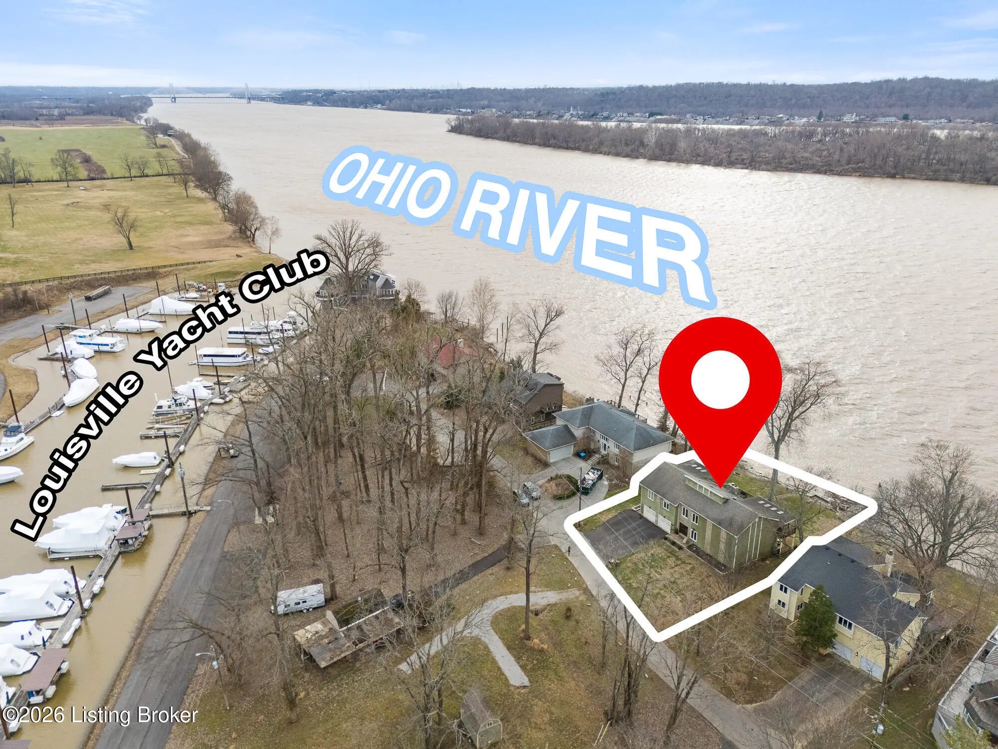 An exceptional opportunity to own premier Ohio River frontage in highly desirable Belknap Beach Estates. Offering approximately 3,400 square feet of finished living space, this thoughtfully refreshed home delivers the ultimate Prospect waterfront lifestyle, complete with multiple docks providing direct access for boating and recreational enjoyment. Designed to capture natural light and river views, the main kitchen is located on the second floor and features beautifully preserved original cabinetry and hardware — timeless, high-quality craftsmanship complemented by updated lighting and fresh finishes. The layout flows seamlessly into inviting living and entertaining spaces. A kitchenette addition on the first floor creates outstanding flexibility. With one bedroom on the main level and two additional bedrooms upstairs, the floor plan is ideal for multipurpose living, private guest quarters, or work-from-home needs — all while maintaining privacy and separation of space. The primary bath has been tastefully refreshed, offering a comfortable retreat with opportunity for future personalization. Riverfront properties with multiple docks in this established Prospect enclave are increasingly rare. This is a unique opportunity to enjoy space, versatility, and direct waterfront access — all just minutes from the amenities of Prospect.