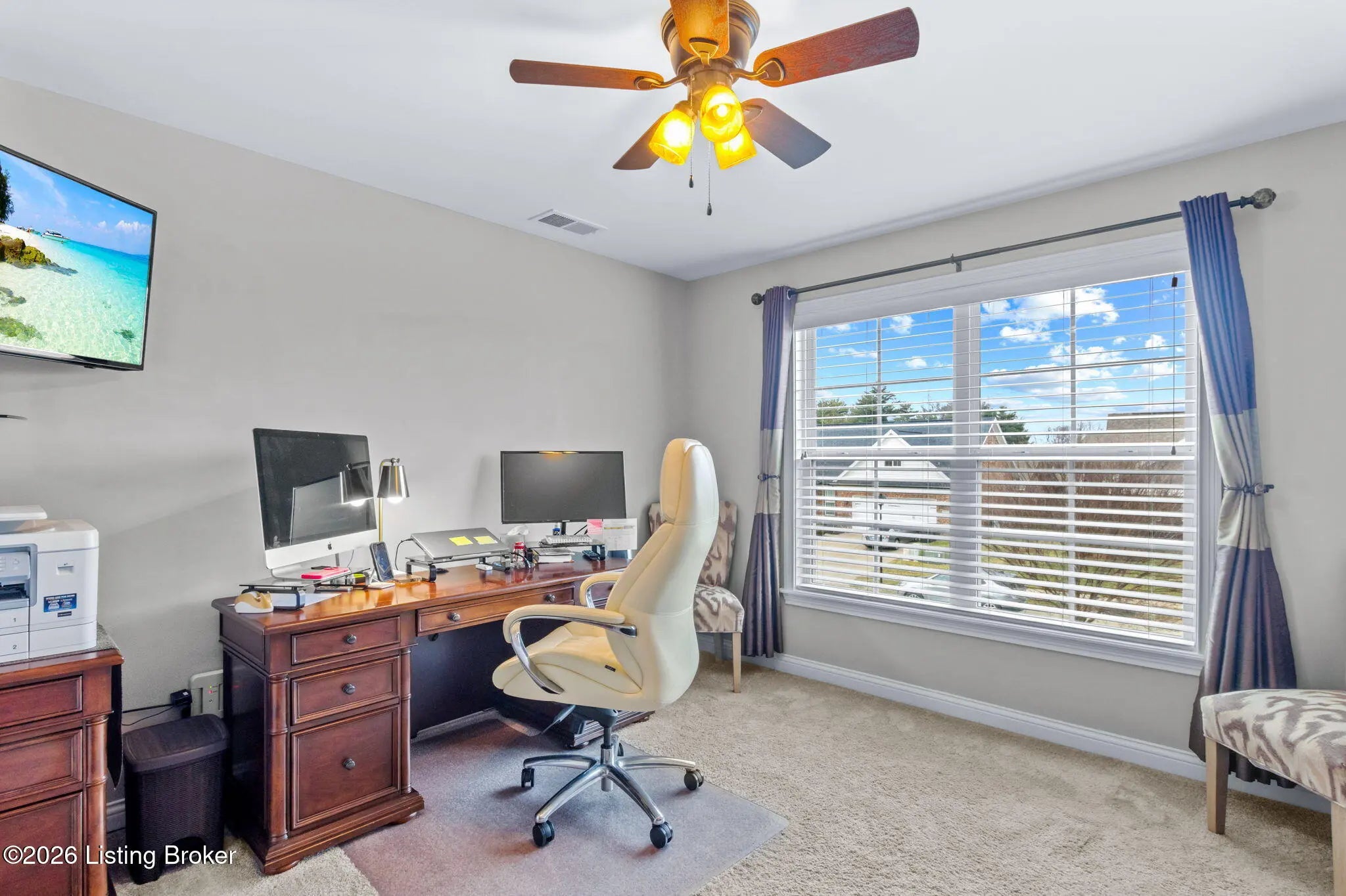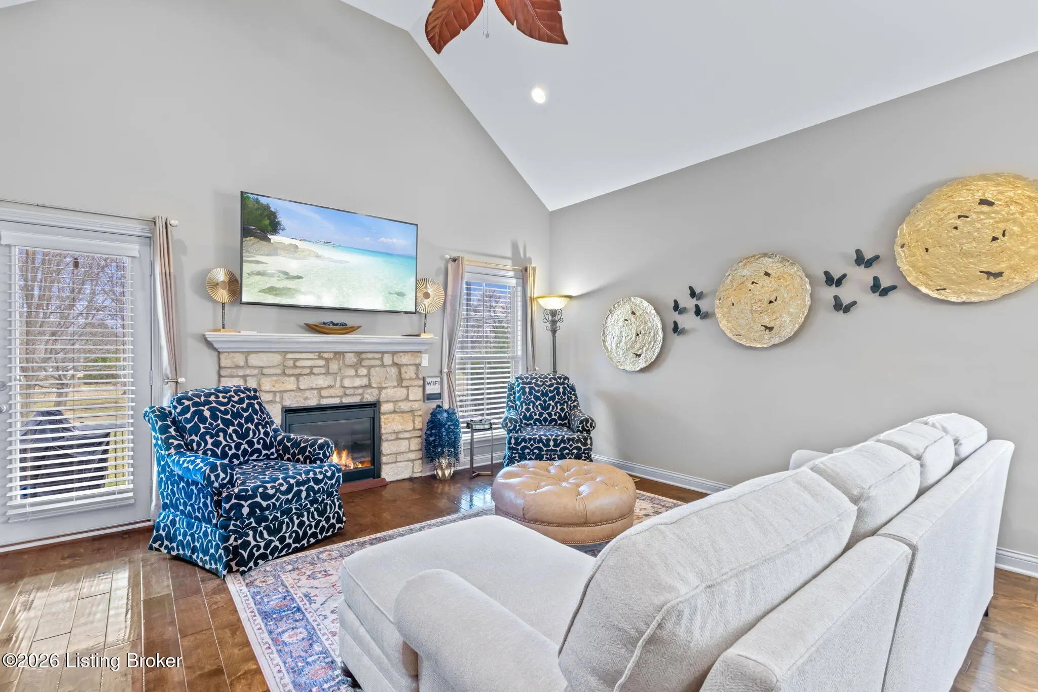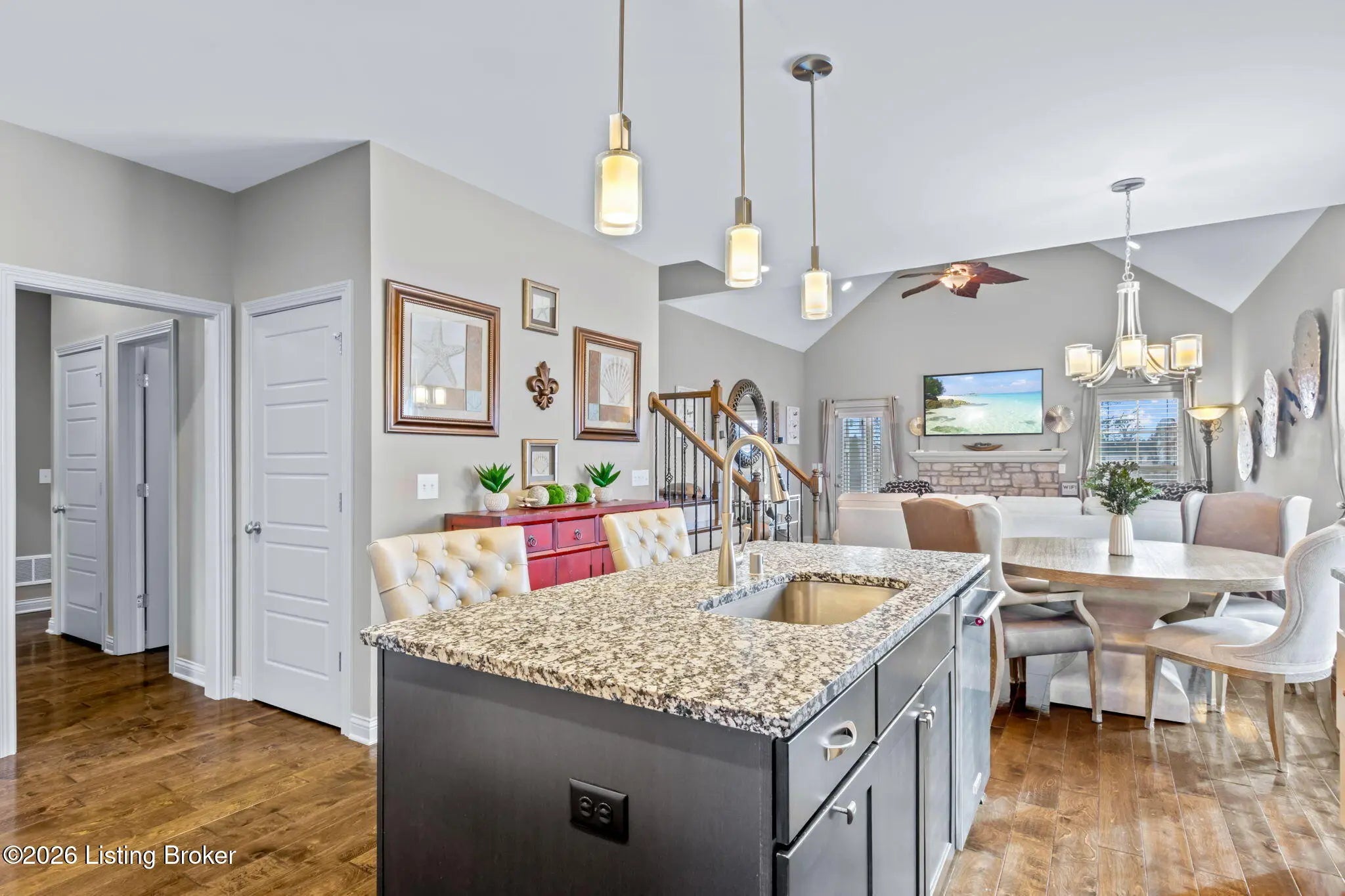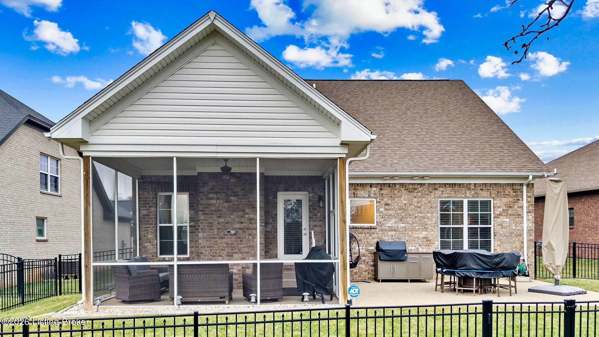 Beautiful brick home in Stony Farms in Jeffersontown (J-Town) built by Bentley Homes, a builder now known for their work in Norton Commons. This Energy Smart home offers over 2,500 sq ft above ground with spacious rooms and thoughtful upgrades throughout. Features include hardwood floors through most of the main level, stone gas fireplace, gas stove, pantry with convenient "Costco door" to the garage, and drop zone entry. Enjoy a large screened-in covered porch plus patio overlooking a black aluminum fenced yard. The primary suite offers a soaking tub, tiled shower with seat, double vanity with granite, and taller counters. Additional highlights include sealed insulated crawlspace, irrigation in front yard, landscape curbing, abundant storage and a sealed crawlspace!