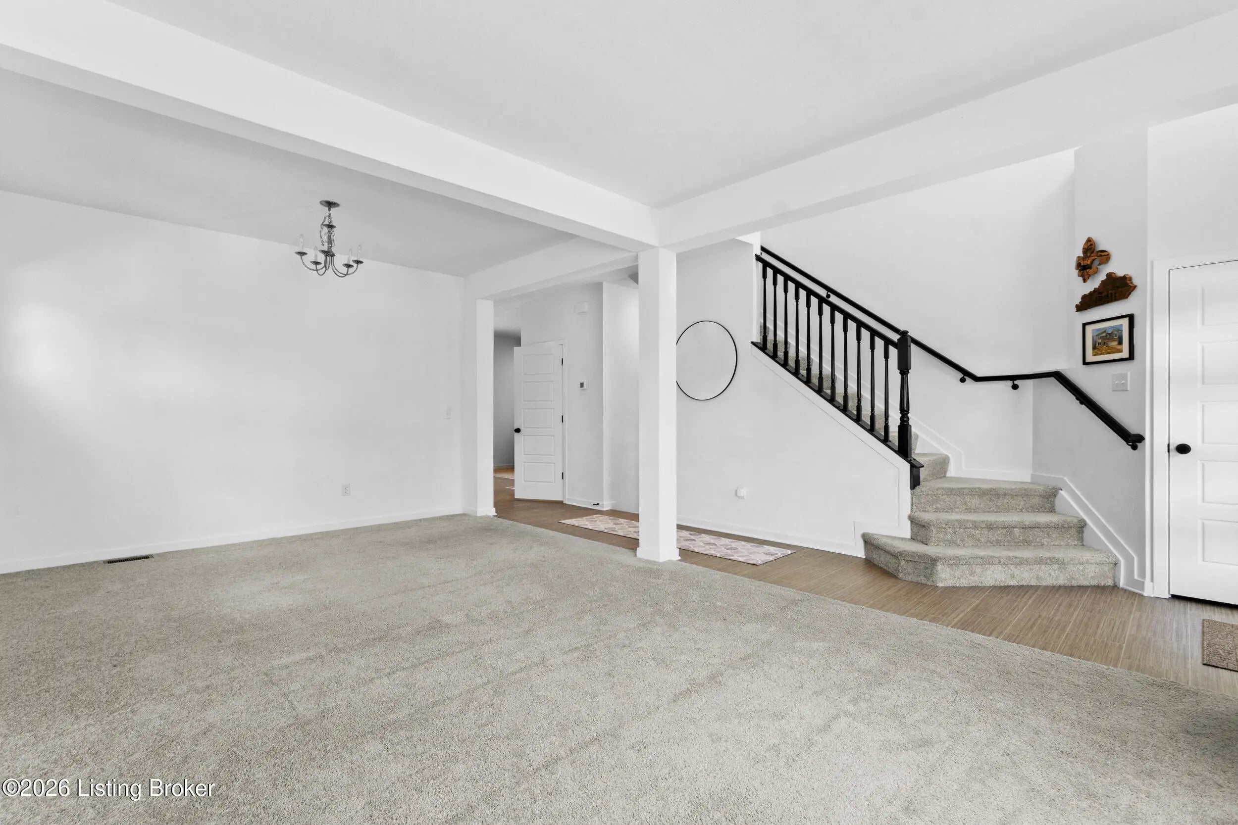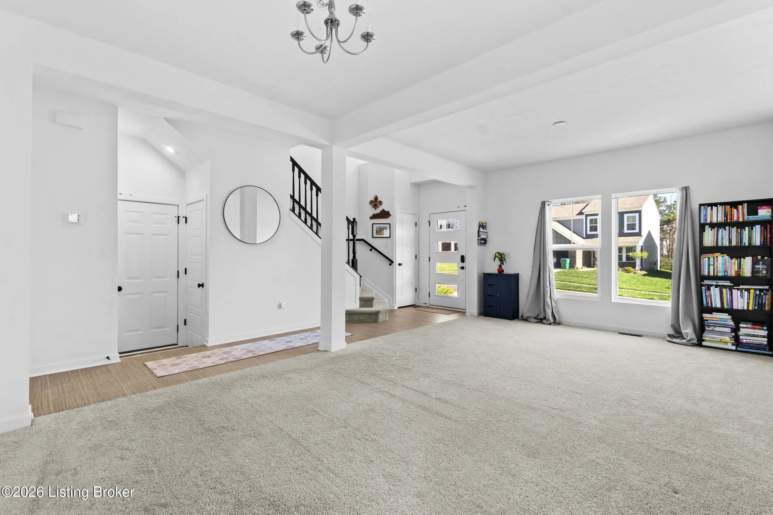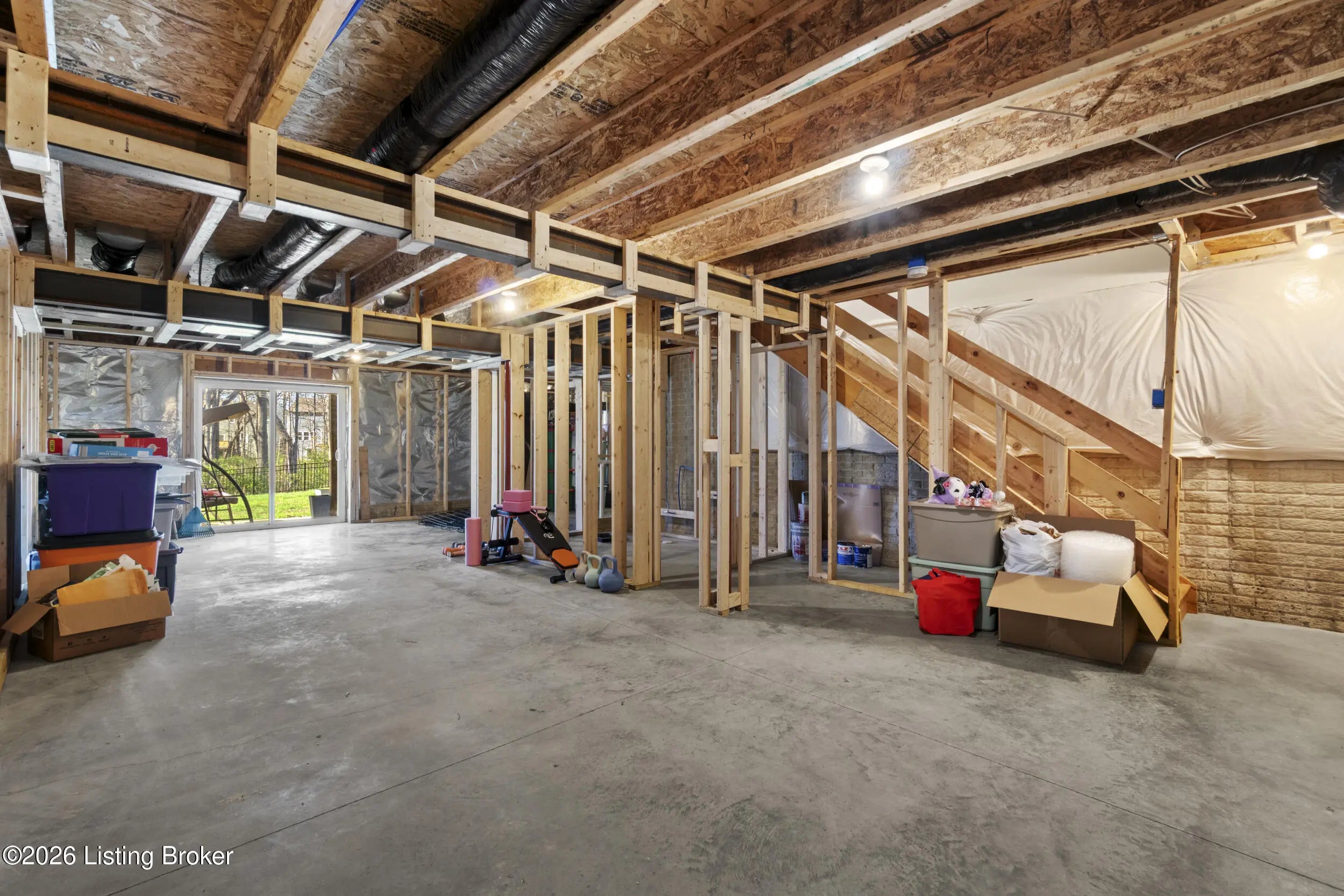 Welcome to Bridle Run - an exceptional opportunity tucked off scenic Flat Rock Rd in Louisville's highly sought-after east end. This nearly new, just four-year-old home offers the perfect blend of modern construction and move-in-ready convenience. Boasting 4 spacious bedrooms and 2.5 baths, this home is designed with flexibility in mind. Upon entering the home you will find a spacious living room and dining area. The main level also features a desirable open-concept layout where the kitchen and breakfast area flow seamlessly into the family room. Upstairs, a generous loft creates the perfect secondary living space - ideal for a media area, play room or office - which connects the additional bedrooms and a conveniently located upstairs laundry room. The expansive unfinished walkout basement is a true standout. With framing already completed, it offers incredible potential for customization—whether you envision a home gym, theater, additional living space, or simply abundant storage. Also worth noting is the large, flat and newly fenced in yard that backs up to the tree line and retaining pond, which makes this one of the nicer lots in the neighborhood. This lovely home combines modern style, space, and location into one irresistible package! Don't miss your chance to make it yours!!