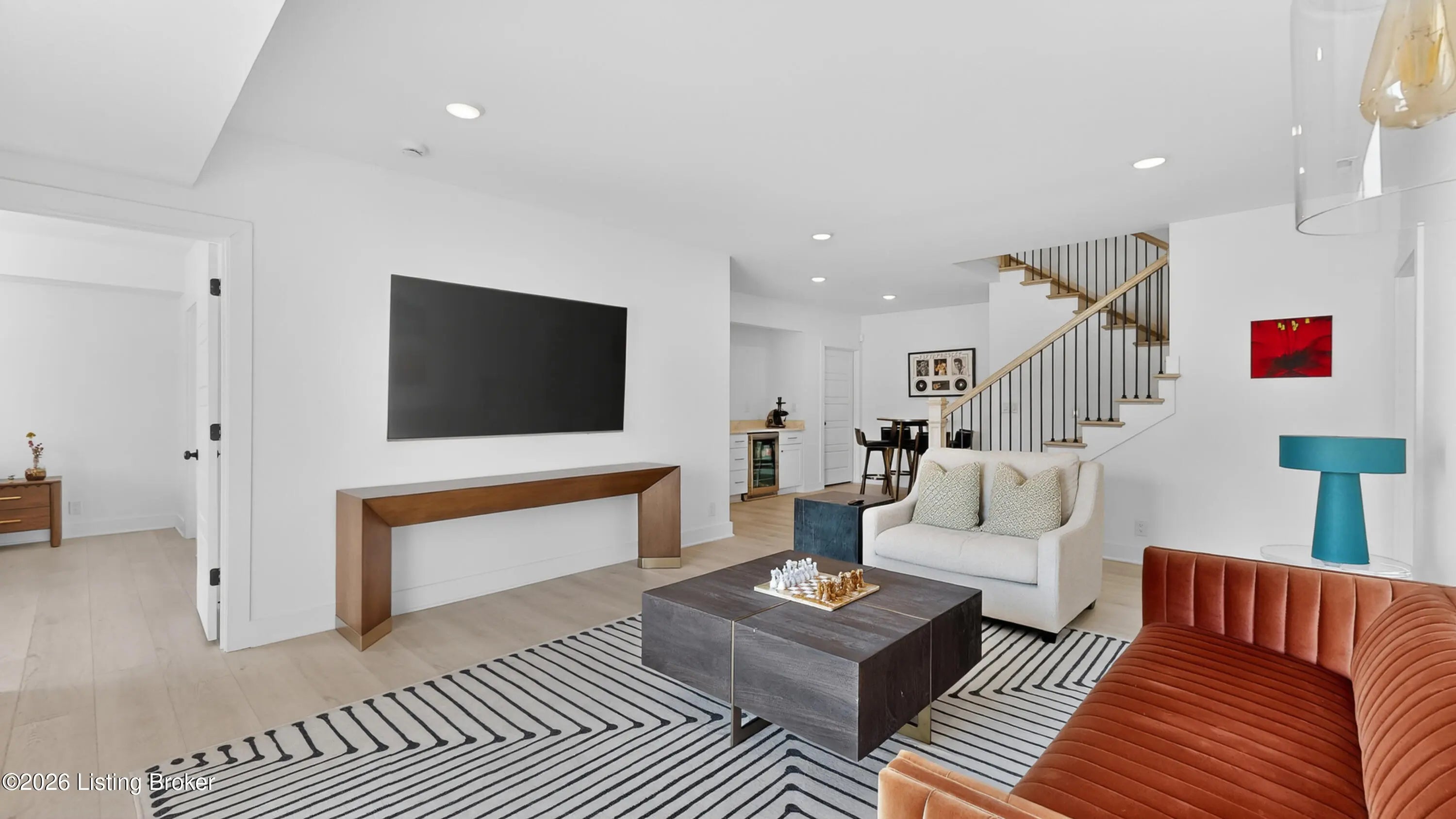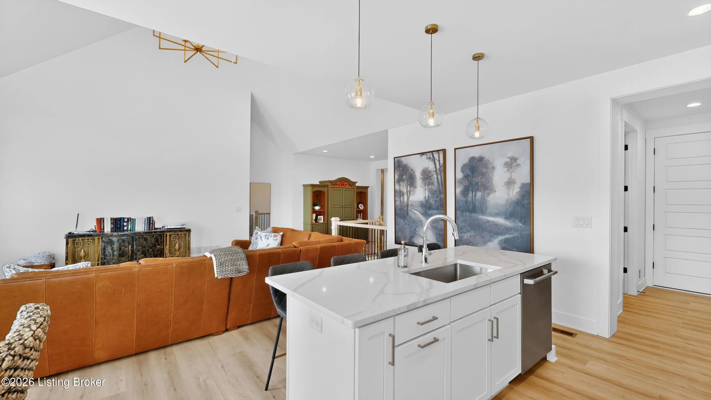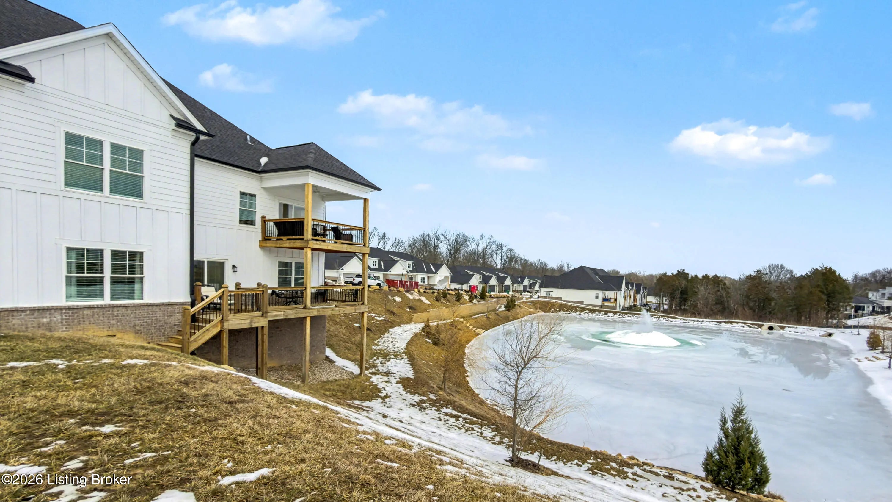 Skip the 6-8 month build waiting time and move right into this upscale patio home in the Reserve at English Station less than three years old and beautifully upgraded throughout. Located in Middletown, this maintenance free community offers effortless living in an elegant setting. A spacious foyer welcomes you inside with a first floor bedroom and bath immediately to the right-perfect for guests or a home office. The foyer opens into a bright, open great room featuring a cozy fireplace and seamless flow into the kitchen and dining area. The kitchen is well-appointed with quartz countertops, GE Cafe appliances, a generous island with seating and upgraded lighting that elevates the entire space. Just off the kitchen, you'll find a convenient laundry room and access to the garage. More... The adjacent dining area opens to a covered deck overlooking a peaceful pond with a fountain, an ideal spot to relax or entertain. The first floor primary suite offers comfort and privacy with a spacious bedroom, a bath featuring separate vanities, a roomy standalone shower and a walk-in closet. The finished walkout basement expands the living space with a wide staircase, a nice family room with access to a second deck, two additional bedrooms and a third full bath. A custom dry bar added after purchase features a quartz countertop, a wine cooler and an ice maker making it perfect for entertaining. Upscale patio home living, thoughtful upgrades, and a prime Middletown location make this home a rare opportunity in The Reserve at English Station.