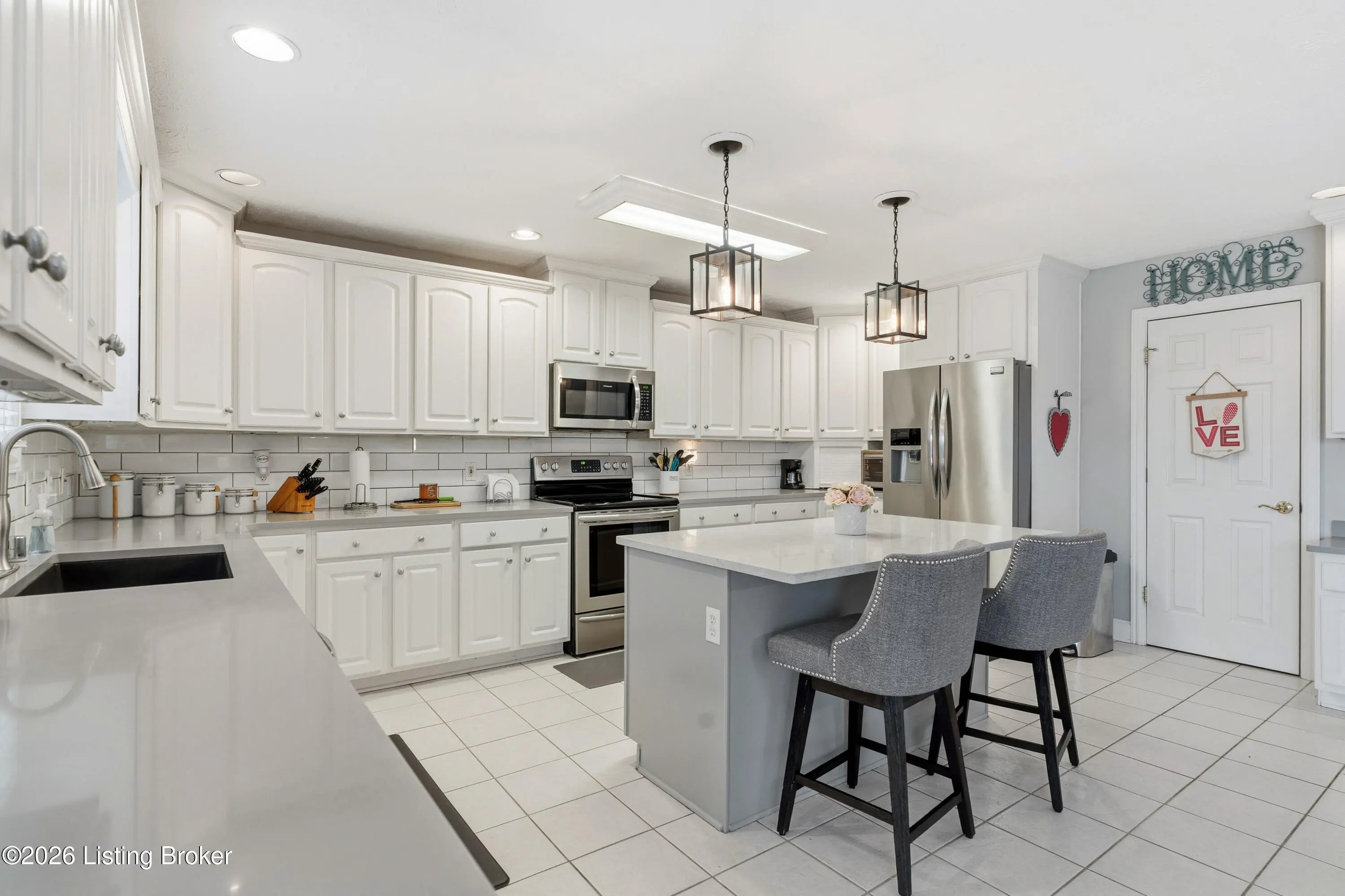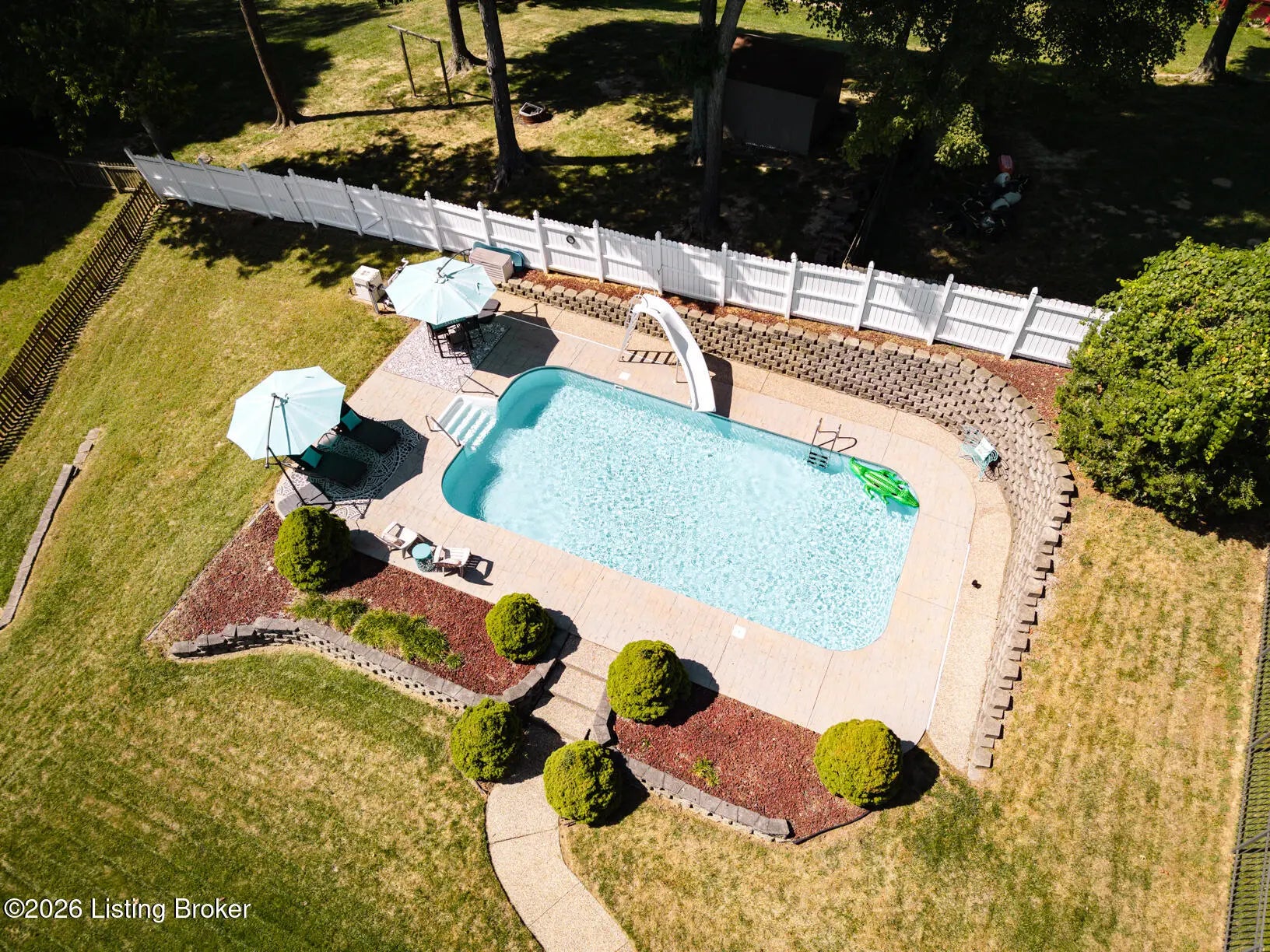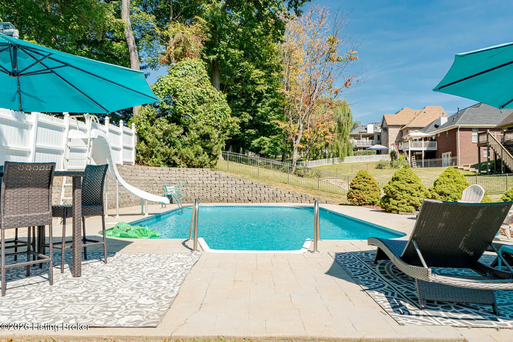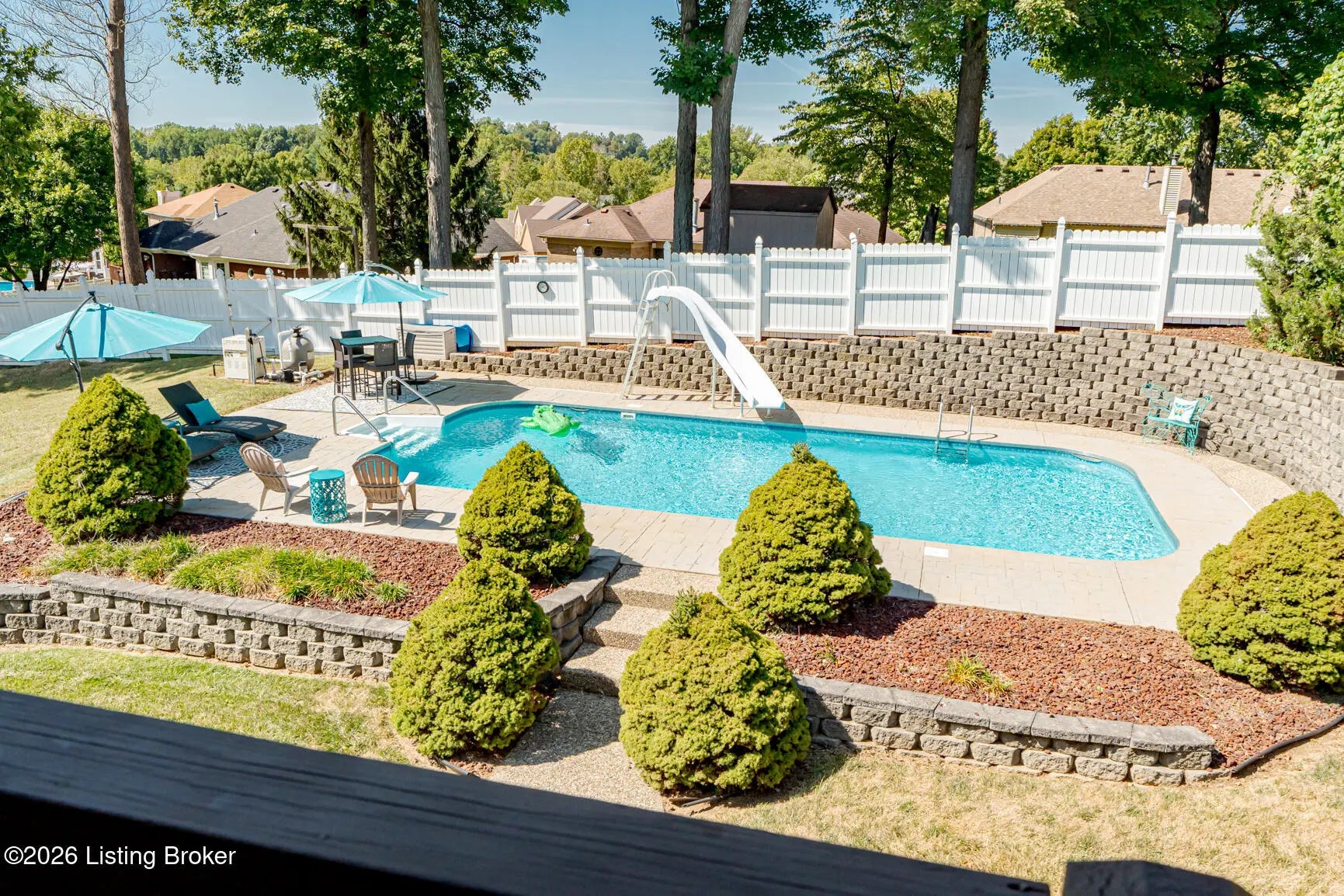 Welcome to this spacious and beautifully maintained two-story home located on a quiet cul-de-sac in the desirable StoneRidge Landing. As you enter from the spacious covered front porch, you're greeted by a grand two-story foyer that leads into a large living room with cozy fireplace that opens to a very spacious eat-in kitchen, complete with quartz countertops, a stylish tiled backsplash, tons of cabinetry, center island, and an oversized pantry. Convenience is key with a spacious laundry room and half bath just off the kitchen. Upstairs, you'll find three generous bedrooms, including a private primary suite with updated primary bath and an impressive 14-by-24 walk-in closet. There are two other Spacious bedrooms and full bath that even has a laundry chute. The finished walk-out basement features 10-foot ceilings, family room with cozy fireplace, full bath, and utility room with built in shelves. One could easily add a wall and door in finished area of basement for a 4th bedroom. Outside, is the dream oasis, perfect for entertaining and relaxing with friends and family featuring a heated 18-by-36 swimming pool with a sliding board, stamped cobblestone decking and fully fenced yard. There's also a deck with a covered area and a gas grill line and rear patio from walkout with sidewalk from front of home to pool. Some other features include, Gutter Guard, 220 outlet lower patio, waterlines and drain set up in basement for a bar, irrigation system, oversized 26 x 26 garage with side man door and double wide driveway. Great location with easy access to Gene Snyder and I-65. This one owner home is in excellent condition and truly shows pride of ownership. Don't miss the opportunity to make it yours!