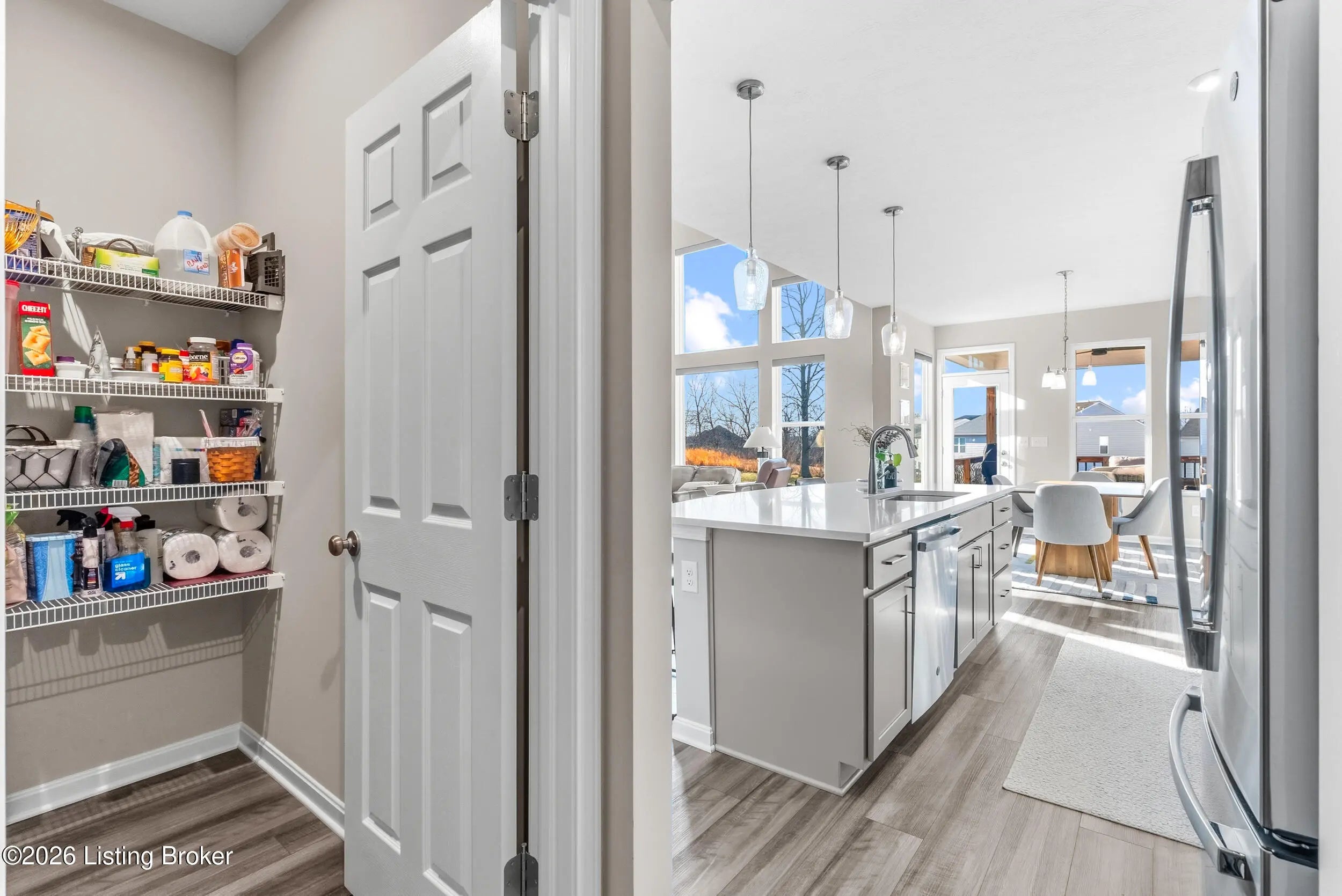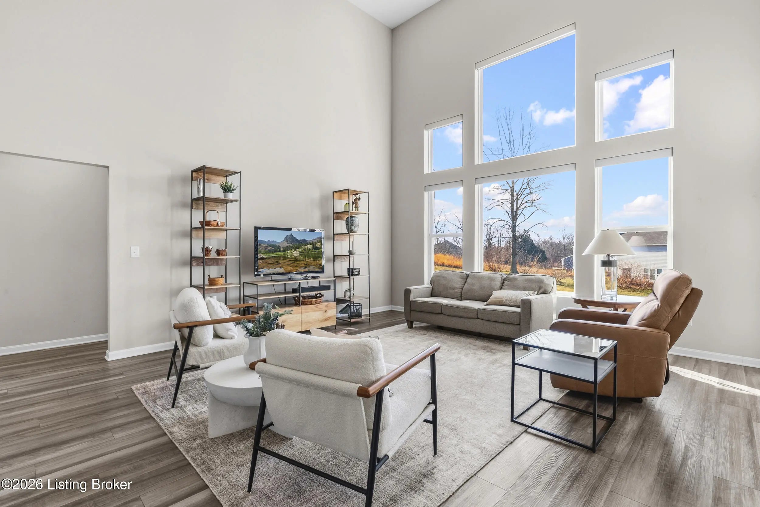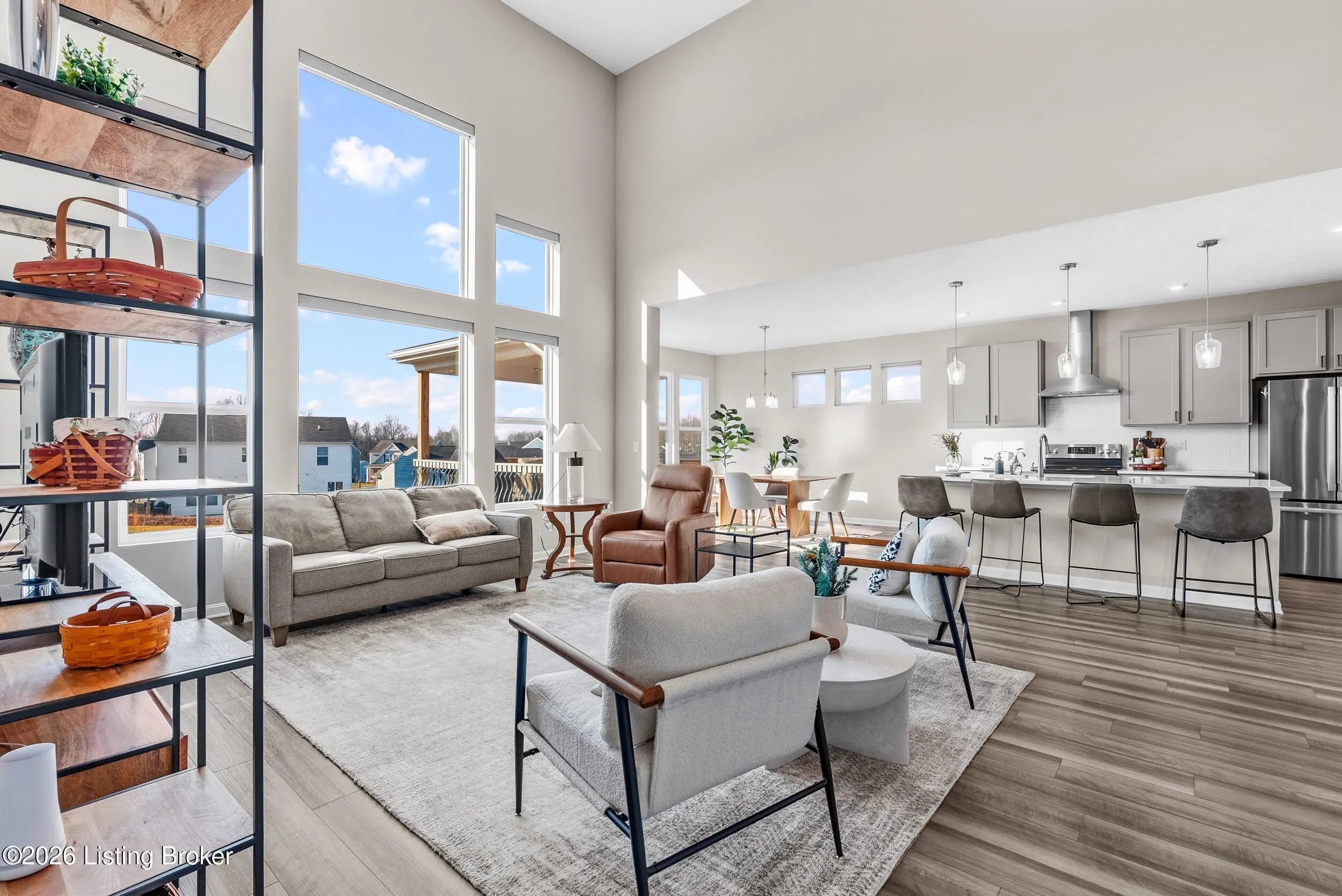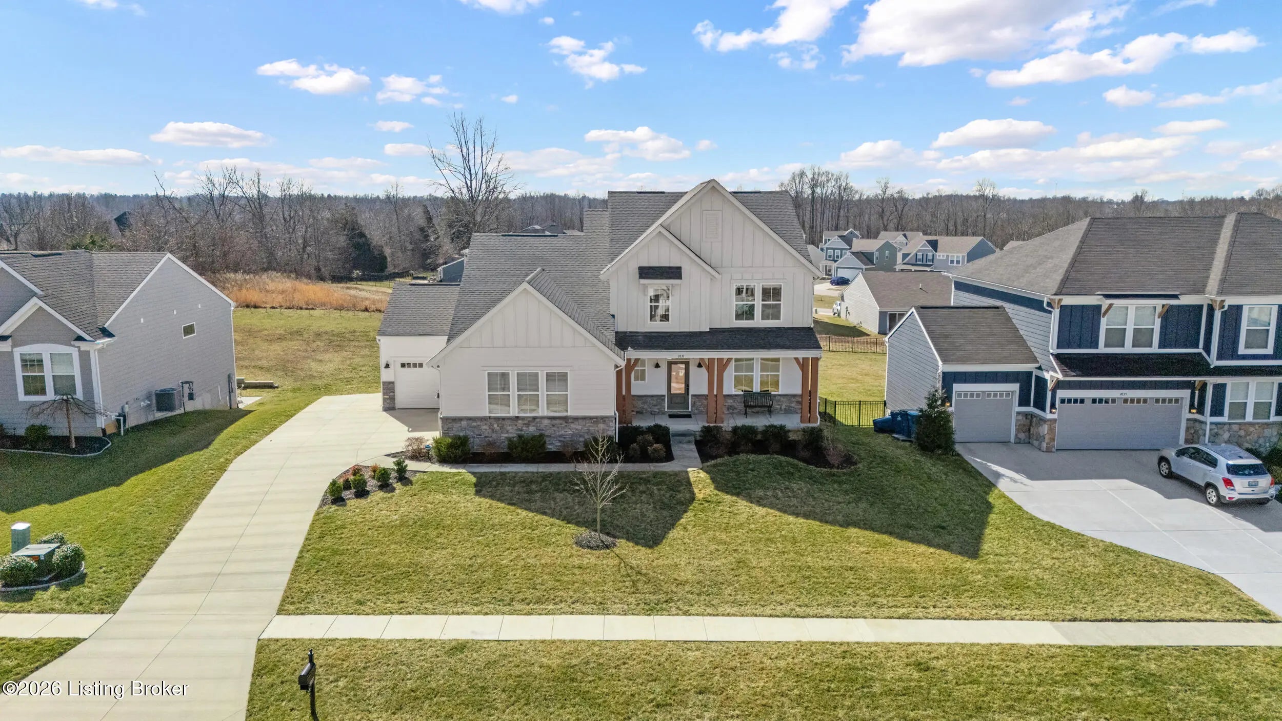 OPEN HOUSE CANCELLED DUE TO POWER OUTAGE. Welcome to this beautifully designed 5-bedroom, 4-bath home in the sought-after Heather Ridge community, ideally located just off the Buckner Exit of I-71—offering a quick commute to Louisville while enjoying the charm of Oldham County living. Situated on a spacious lot of over 1/3 acre, this home features inviting white farmhouse-style curb appeal and a covered front porch that welcomes you inside. The interior opens to a dramatic two-story living room filled with natural light, creating an impressive yet comfortable gathering space. The thoughtfully designed floor plan includes an expanded kitchen footprint (built with an additional 4 feet of space), providing generous room for cooking, entertaining, and everyday living. A butler's pantry and adjacent den add functionality and storage, while the covered deck off the kitchen with ceiling fan offers a relaxing outdoor space overlooking the backyard. Convenience continues with a first-floor primary suite and first-floor laundry, making daily living easy and accessible. The professionally finished walkout basement significantly expands the home's versatility, featuring two additional bedrooms and a full bathroom, ideal for guests, multigenerational living, or private work-from-home space. Additional highlights include: Three-car garage, including a third bay with 220V service for electric vehicle charging On-trend luxury vinyl flooring throughout the main level and basement Expanded bedroom footprint for added interior space Walkout basement providing direct access to the yard Located just minutes from the new Kroger Marketplace, the Oldham County YMCA, and the new Wawa, this home offers the perfect combination of space, thoughtful design, and convenient access to Louisville.