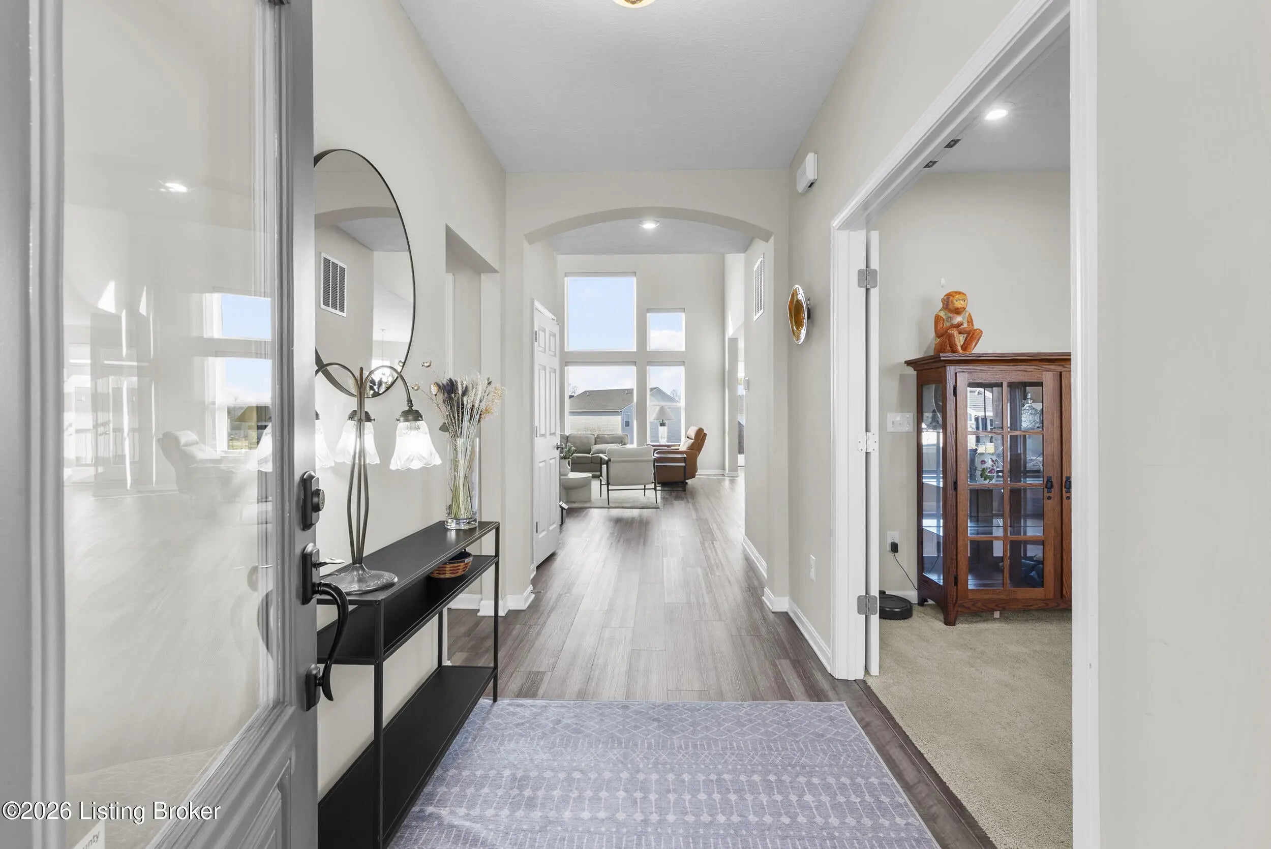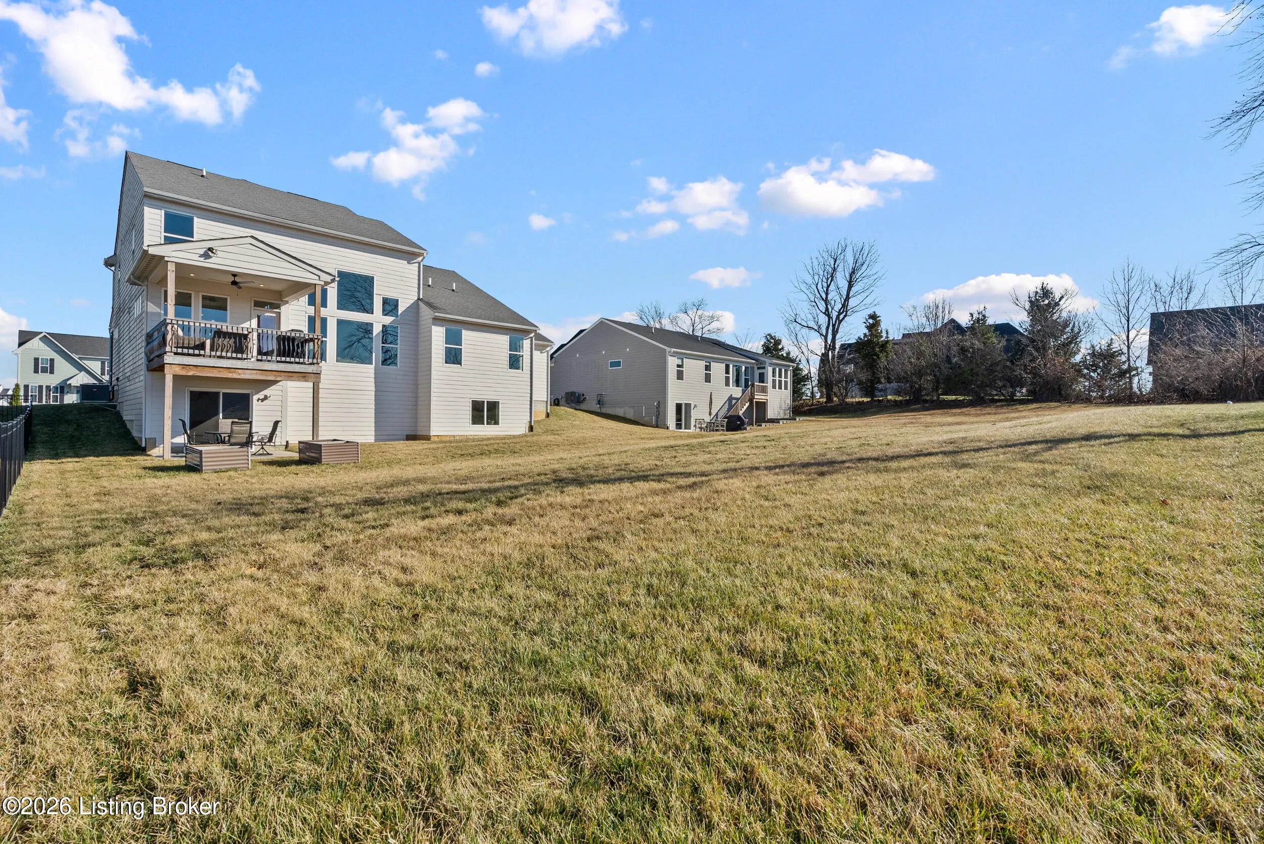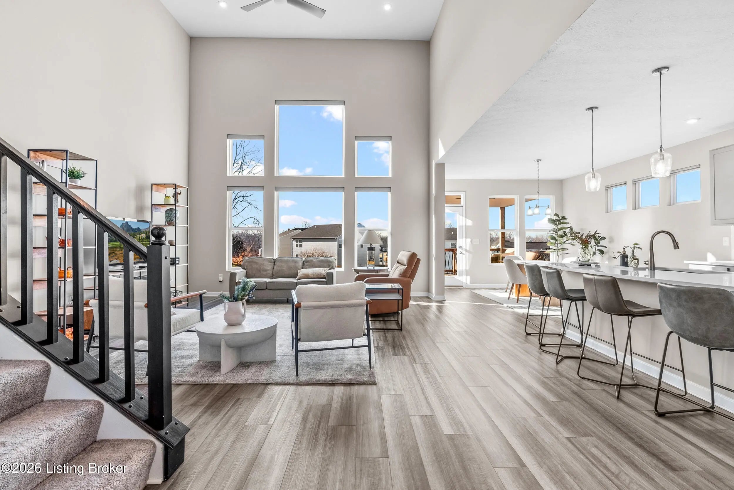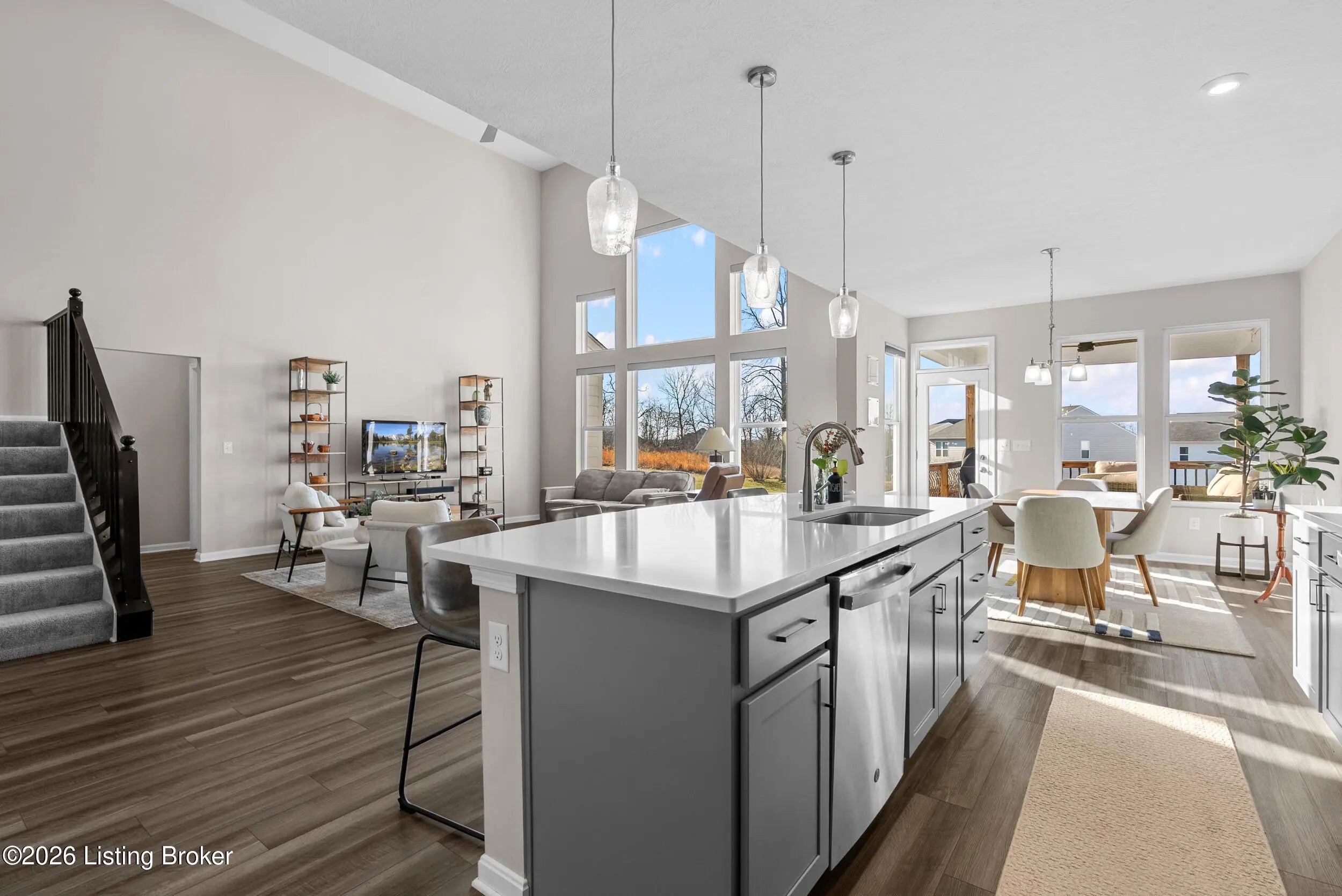 OPEN HOUSE CANCELLED DUE TO POWER OUTAGE. Welcome to this beautifully designed 5-bedroom, 4-bath home in the sought-after Heather Ridge community, ideally located just off the Buckner Exit of I-71—offering a quick commute to Louisville while enjoying the charm of Oldham County living. Situated on a spacious lot of over 1/3 acre, this home features inviting white farmhouse-style curb appeal and a covered front porch that welcomes you inside. The interior opens to a dramatic two-story living room filled with natural light, creating an impressive yet comfortable gathering space. The thoughtfully designed floor plan includes an expanded kitchen footprint (built with an additional 4 feet of space), providing generous room for cooking, entertaining, and everyday living. A butler's pantry and adjacent den add functionality and storage, while the covered deck off the kitchen with ceiling fan offers a relaxing outdoor space overlooking the backyard. Convenience continues with a first-floor primary suite and first-floor laundry, making daily living easy and accessible. The professionally finished walkout basement significantly expands the home's versatility, featuring two additional bedrooms and a full bathroom, ideal for guests, multigenerational living, or private work-from-home space. Additional highlights include: Three-car garage, including a third bay with 220V service for electric vehicle charging On-trend luxury vinyl flooring throughout the main level and basement Expanded bedroom footprint for added interior space Walkout basement providing direct access to the yard Located just minutes from the new Kroger Marketplace, the Oldham County YMCA, and the new Wawa, this home offers the perfect combination of space, thoughtful design, and convenient access to Louisville.