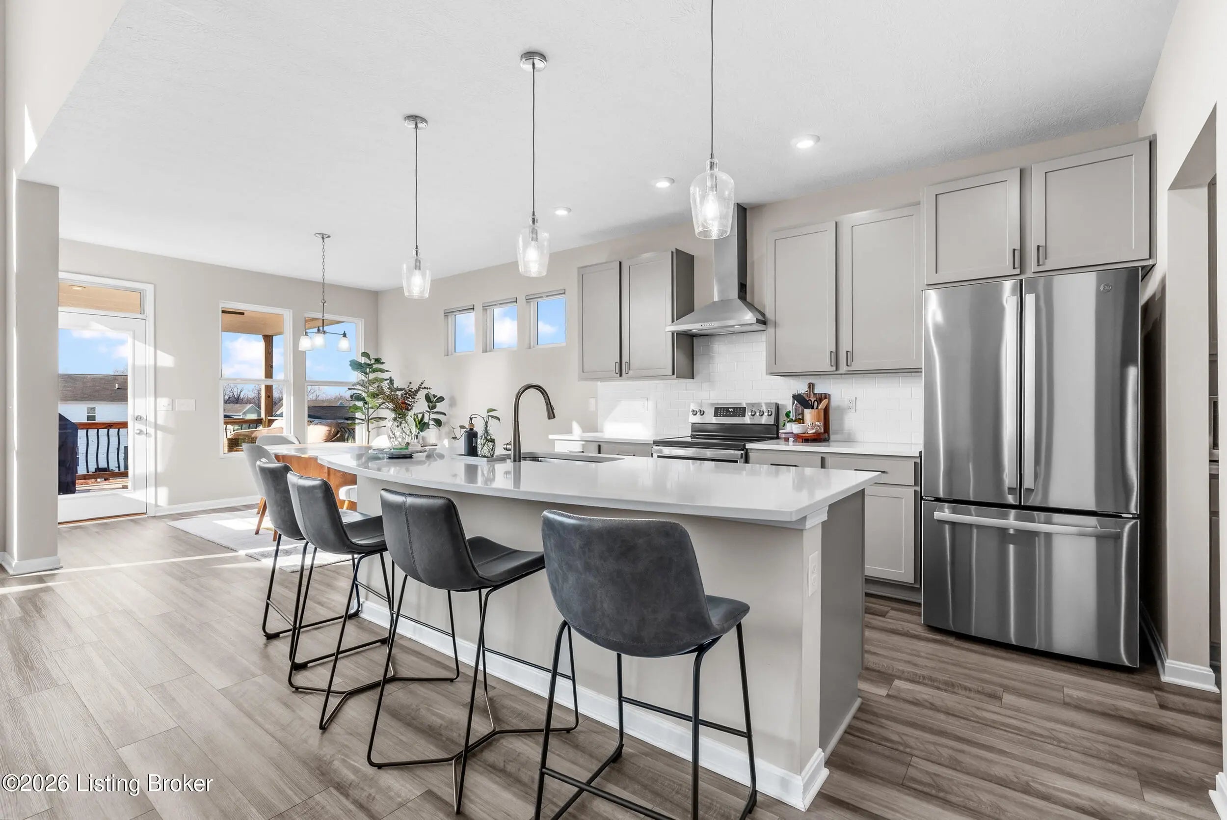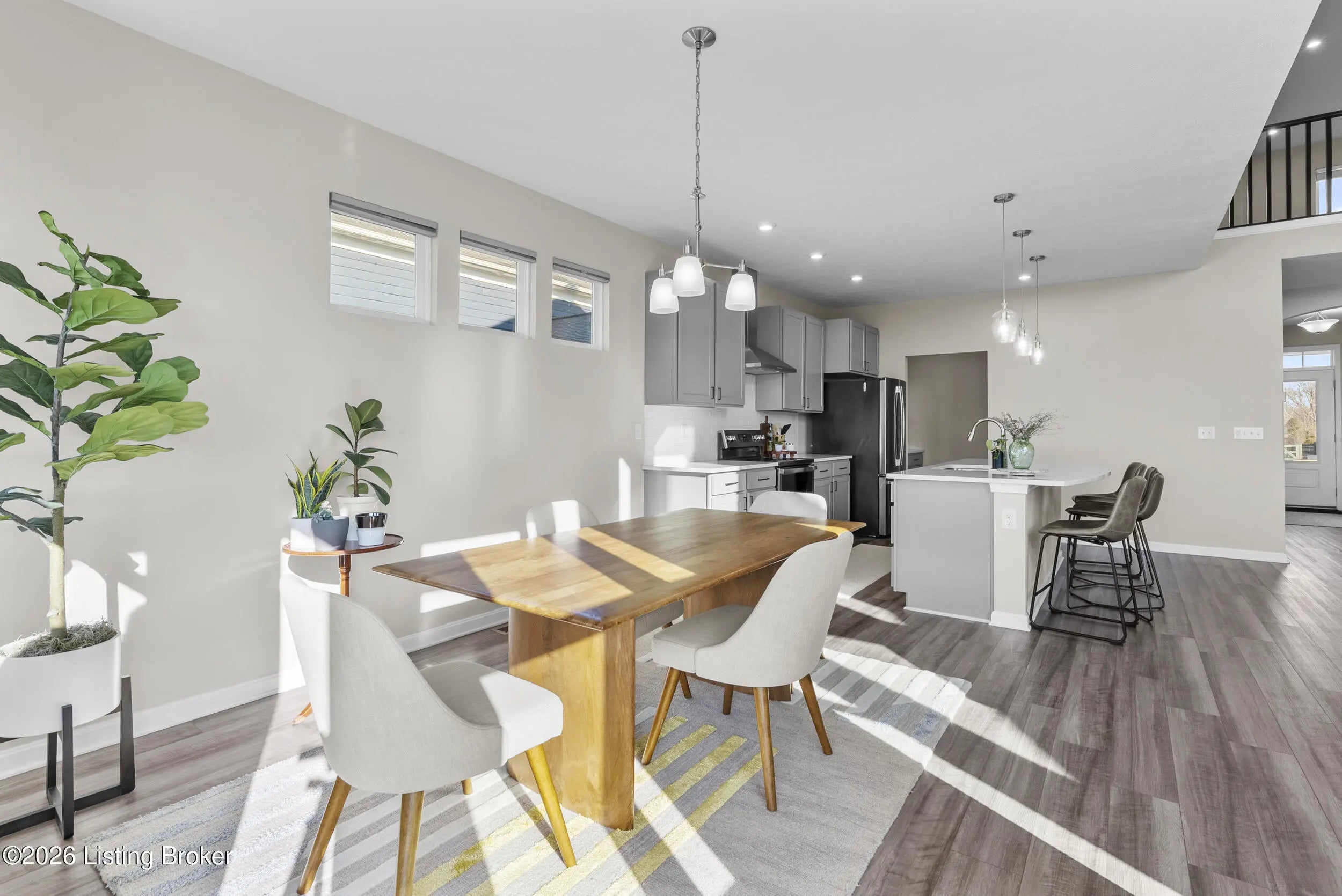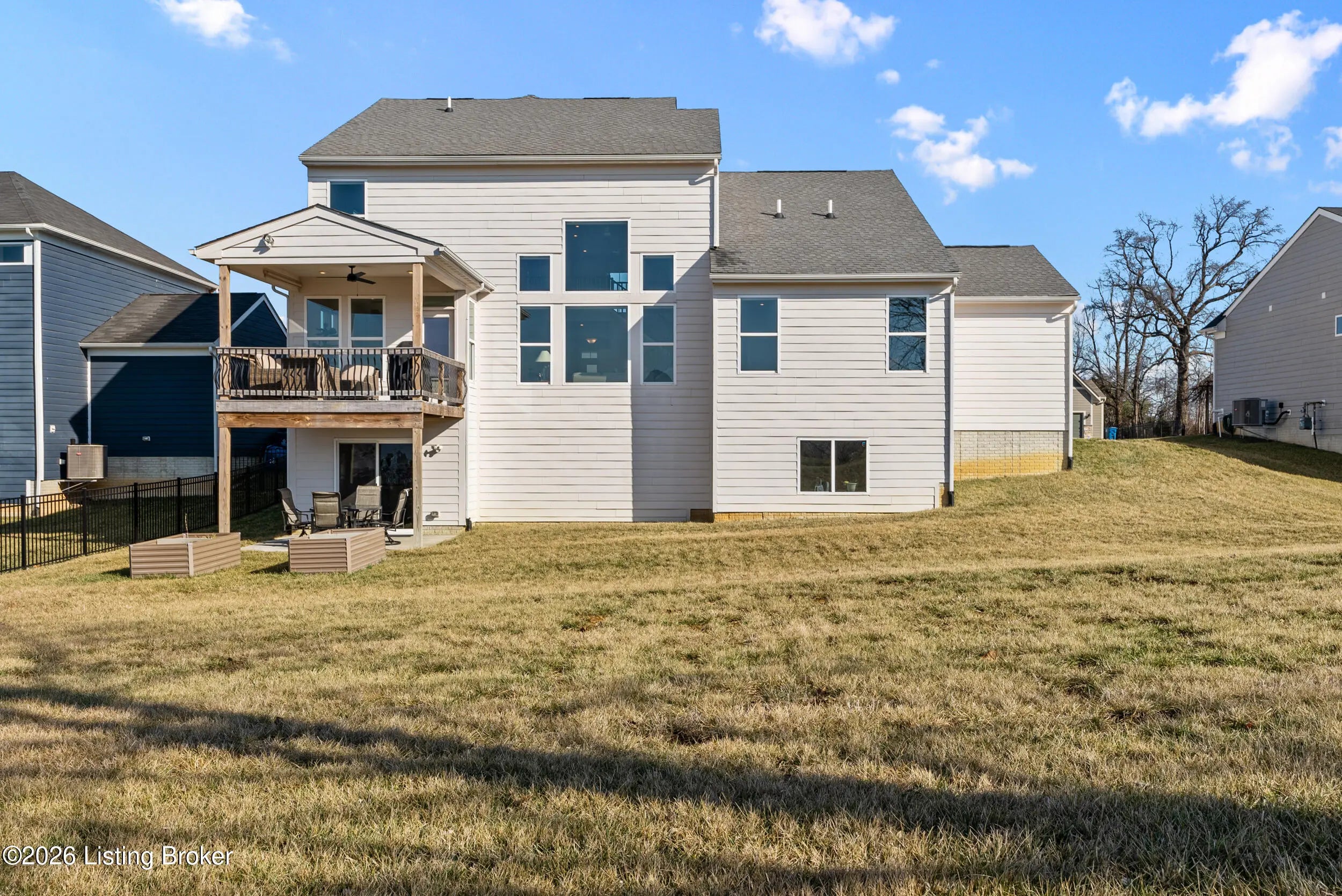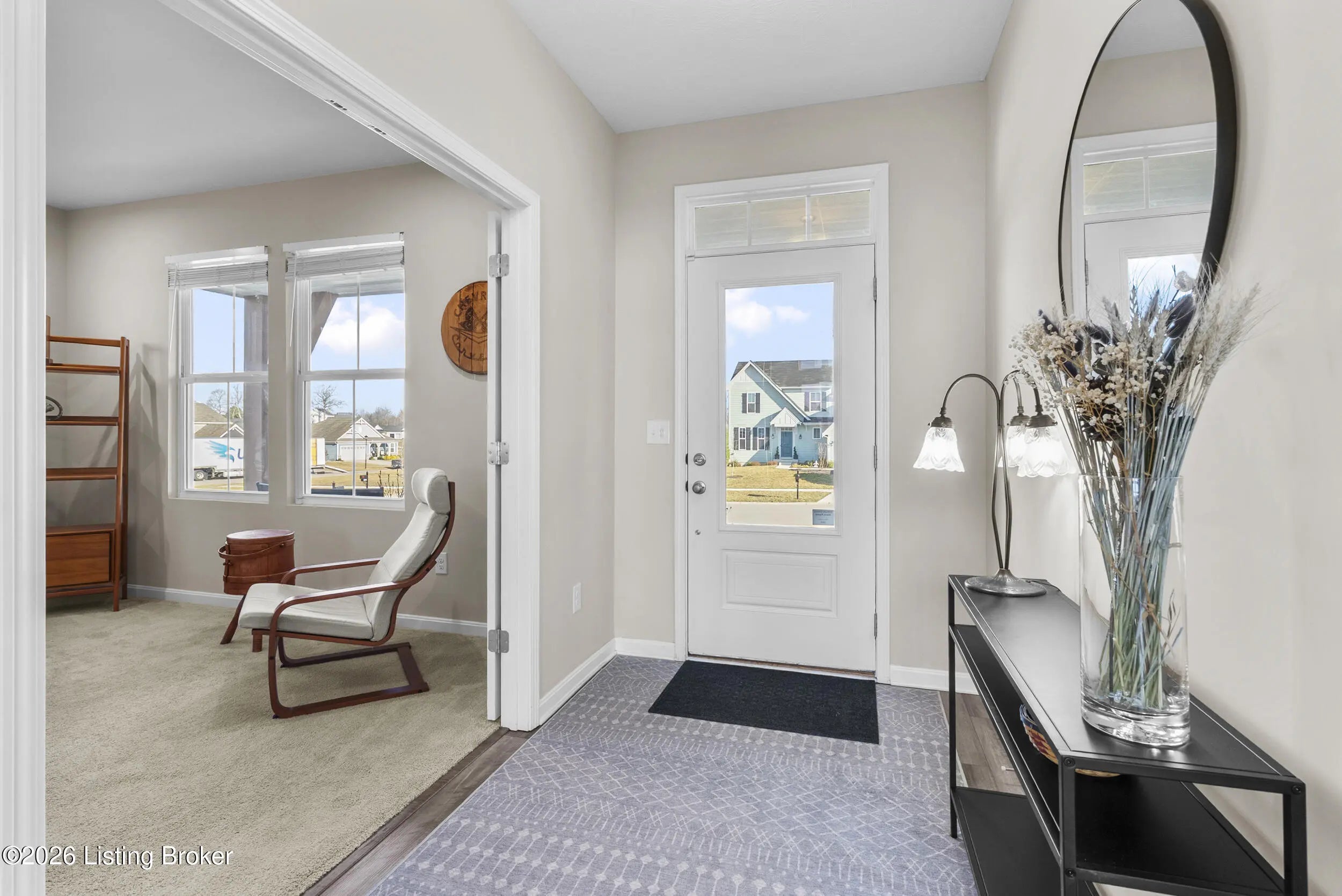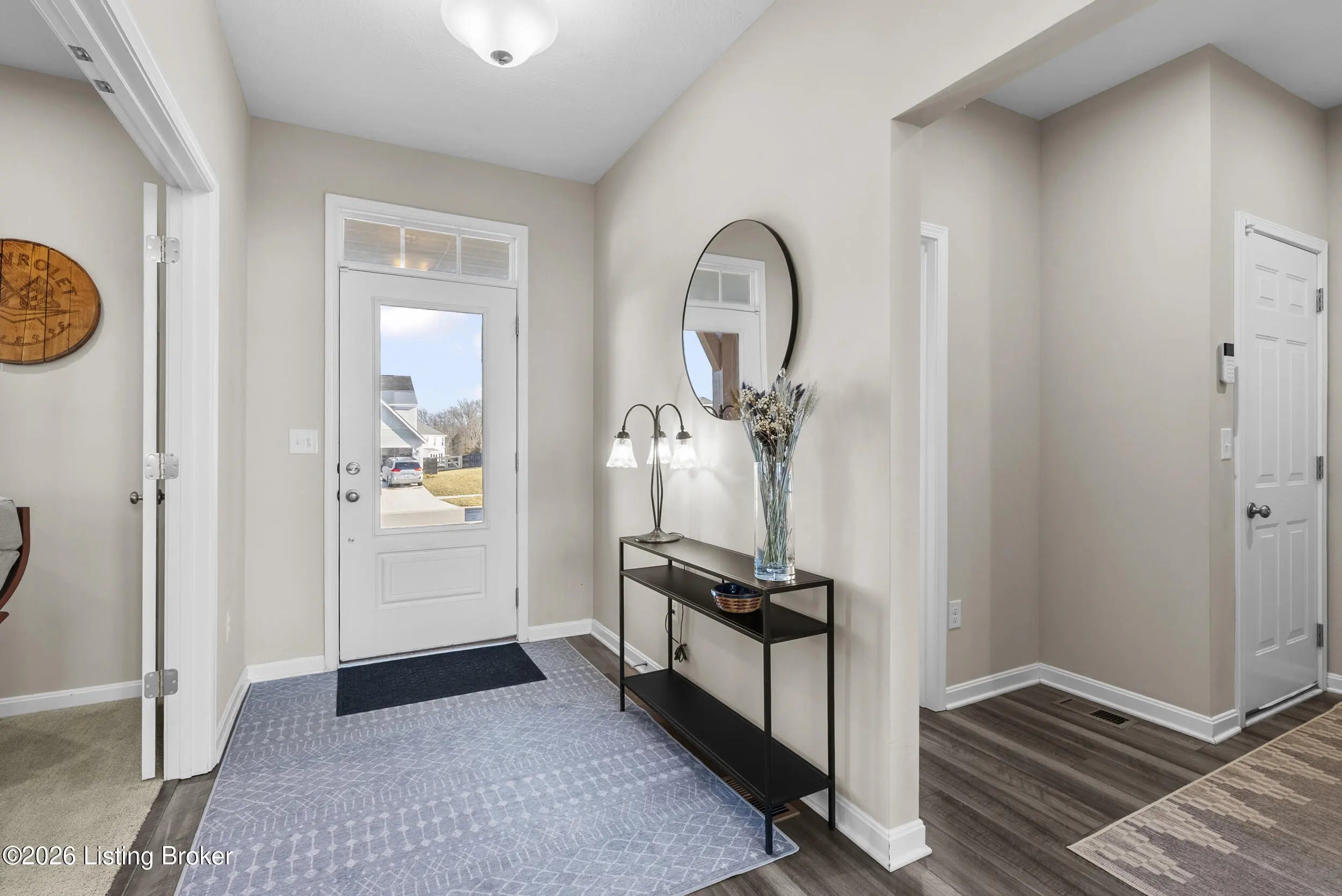 OPEN HOUSE CANCELLED DUE TO POWER OUTAGE. Welcome to this beautifully designed 5-bedroom, 4-bath home in the sought-after Heather Ridge community, ideally located just off the Buckner Exit of I-71—offering a quick commute to Louisville while enjoying the charm of Oldham County living. Situated on a spacious lot of over 1/3 acre, this home features inviting white farmhouse-style curb appeal and a covered front porch that welcomes you inside. The interior opens to a dramatic two-story living room filled with natural light, creating an impressive yet comfortable gathering space. The thoughtfully designed floor plan includes an expanded kitchen footprint (built with an additional 4 feet of space), providing generous room for cooking, entertaining, and everyday living. A butler's pantry and adjacent den add functionality and storage, while the covered deck off the kitchen with ceiling fan offers a relaxing outdoor space overlooking the backyard. Convenience continues with a first-floor primary suite and first-floor laundry, making daily living easy and accessible. The professionally finished walkout basement significantly expands the home's versatility, featuring two additional bedrooms and a full bathroom, ideal for guests, multigenerational living, or private work-from-home space. Additional highlights include: Three-car garage, including a third bay with 220V service for electric vehicle charging On-trend luxury vinyl flooring throughout the main level and basement Expanded bedroom footprint for added interior space Walkout basement providing direct access to the yard Located just minutes from the new Kroger Marketplace, the Oldham County YMCA, and the new Wawa, this home offers the perfect combination of space, thoughtful design, and convenient access to Louisville.
