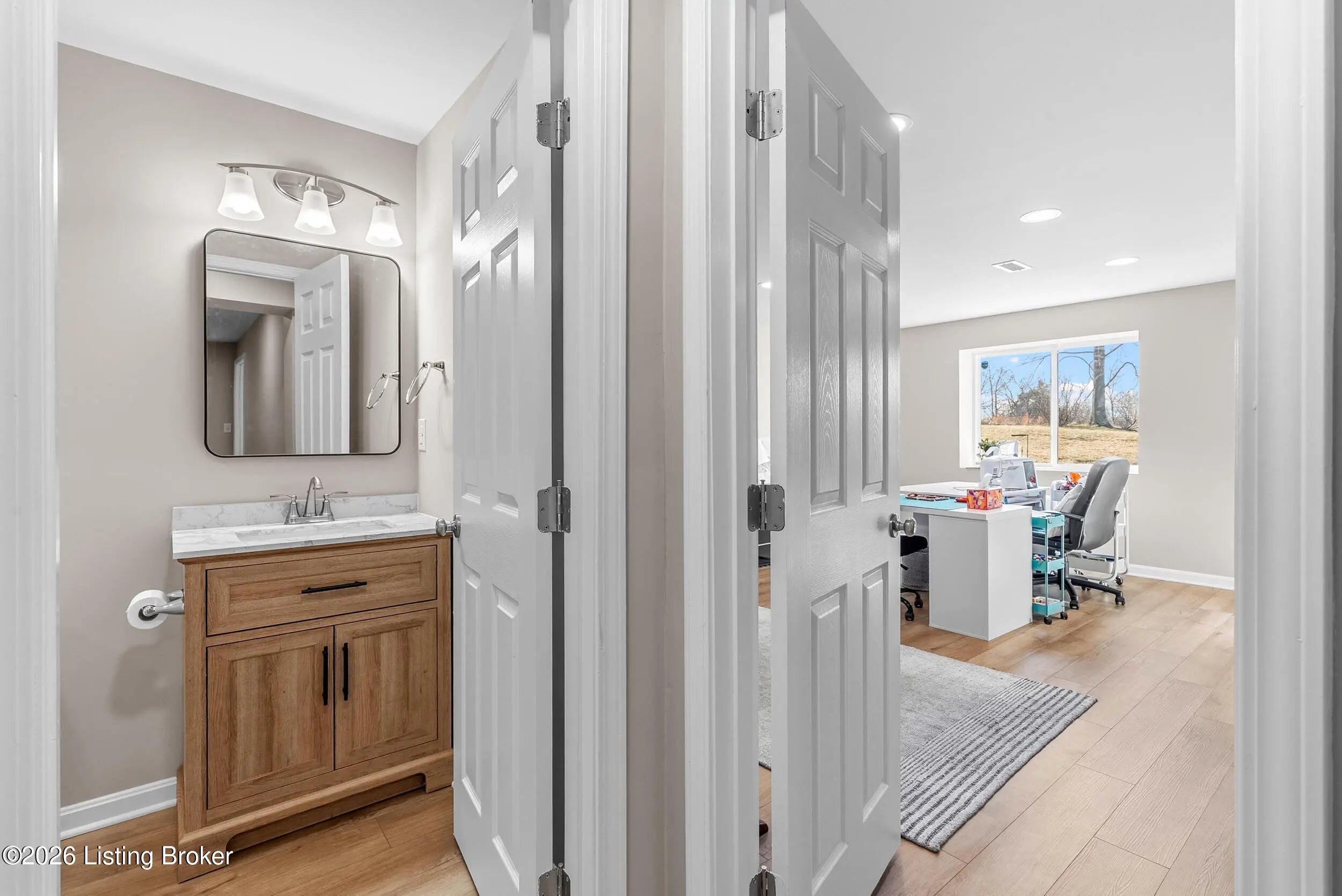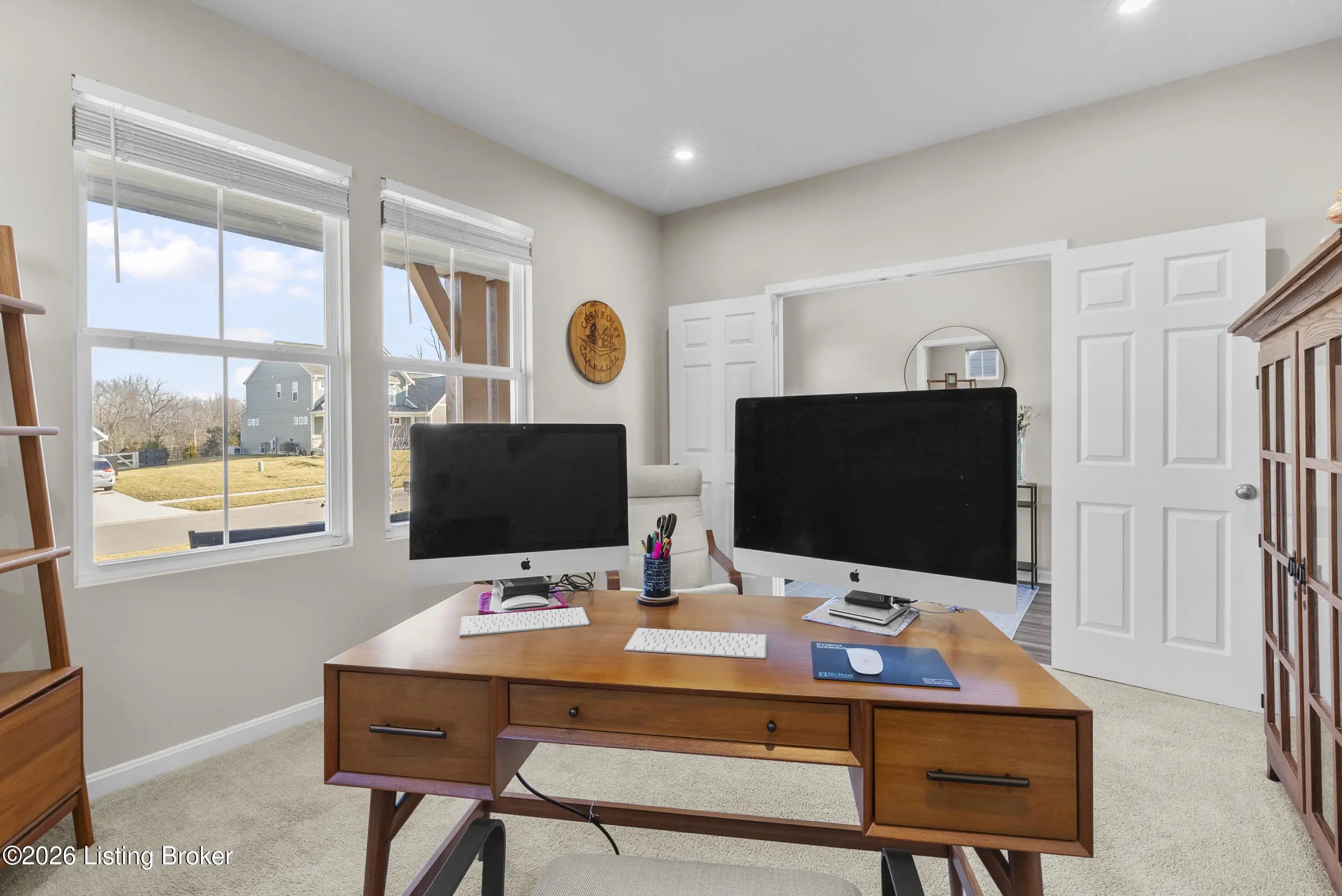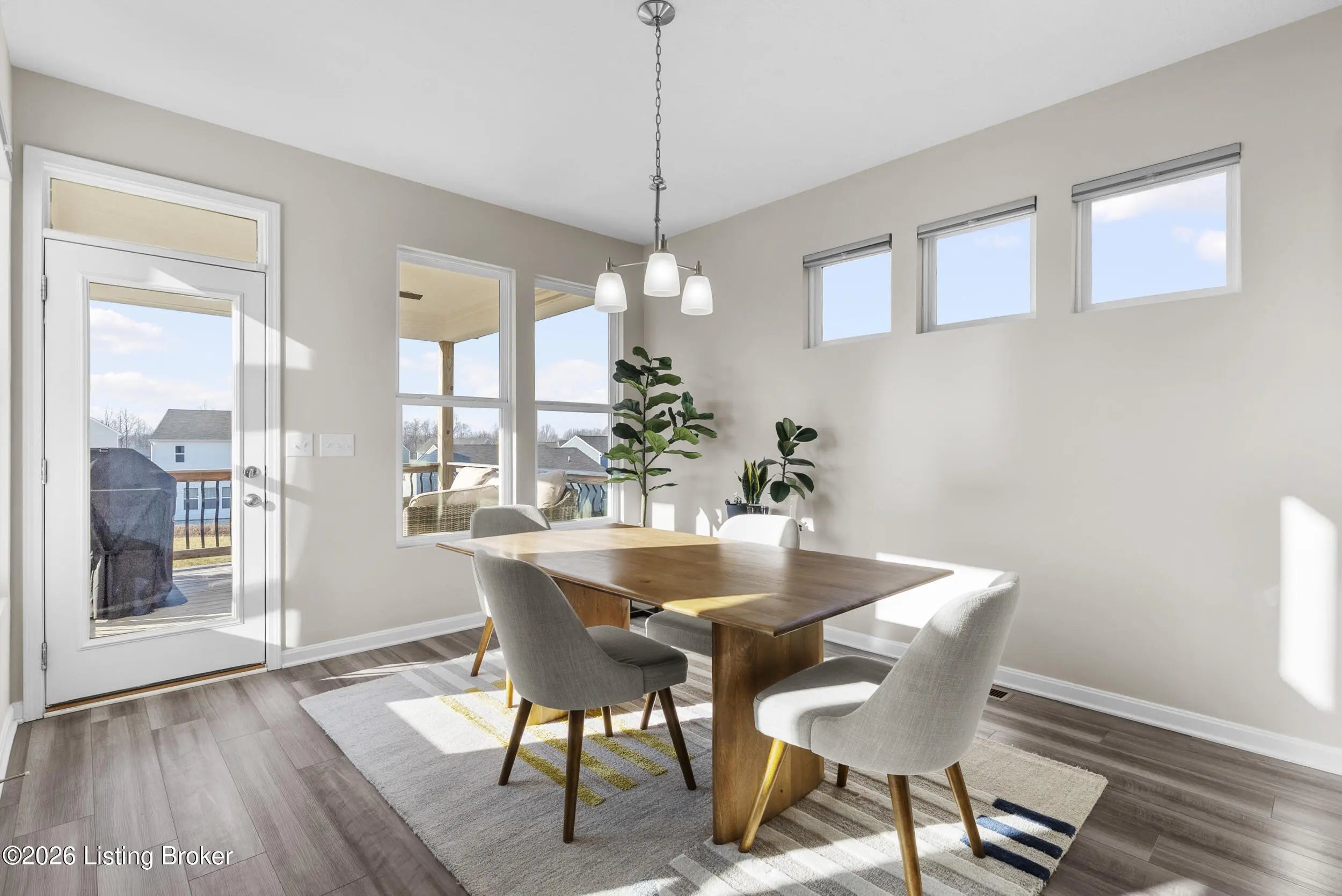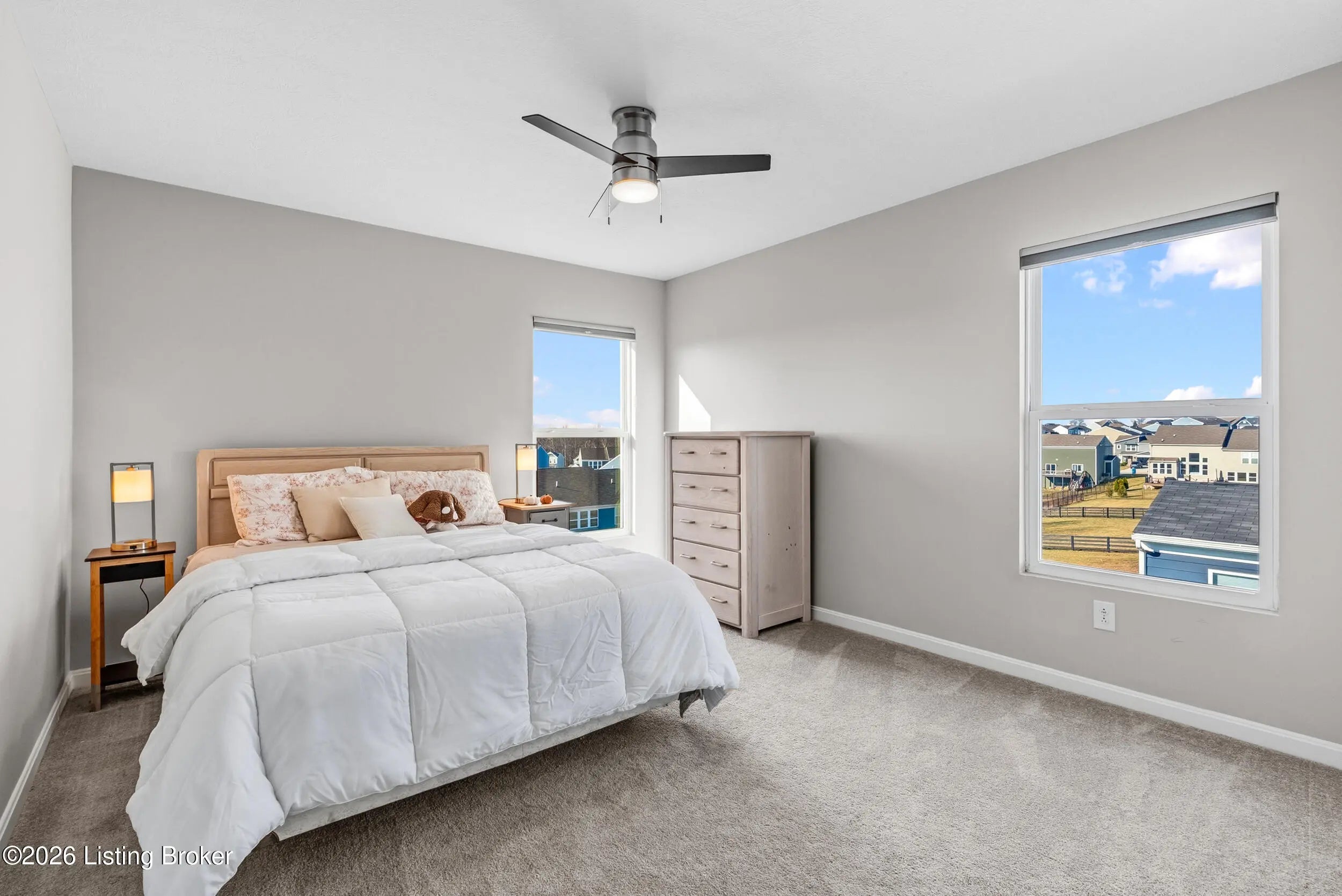 OPEN HOUSE CANCELLED DUE TO POWER OUTAGE. Welcome to this beautifully designed 5-bedroom, 4-bath home in the sought-after Heather Ridge community, ideally located just off the Buckner Exit of I-71—offering a quick commute to Louisville while enjoying the charm of Oldham County living. Situated on a spacious lot of over 1/3 acre, this home features inviting white farmhouse-style curb appeal and a covered front porch that welcomes you inside. The interior opens to a dramatic two-story living room filled with natural light, creating an impressive yet comfortable gathering space. The thoughtfully designed floor plan includes an expanded kitchen footprint (built with an additional 4 feet of space), providing generous room for cooking, entertaining, and everyday living. A butler's pantry and adjacent den add functionality and storage, while the covered deck off the kitchen with ceiling fan offers a relaxing outdoor space overlooking the backyard. Convenience continues with a first-floor primary suite and first-floor laundry, making daily living easy and accessible. The professionally finished walkout basement significantly expands the home's versatility, featuring two additional bedrooms and a full bathroom, ideal for guests, multigenerational living, or private work-from-home space. Additional highlights include: Three-car garage, including a third bay with 220V service for electric vehicle charging On-trend luxury vinyl flooring throughout the main level and basement Expanded bedroom footprint for added interior space Walkout basement providing direct access to the yard Located just minutes from the new Kroger Marketplace, the Oldham County YMCA, and the new Wawa, this home offers the perfect combination of space, thoughtful design, and convenient access to Louisville.