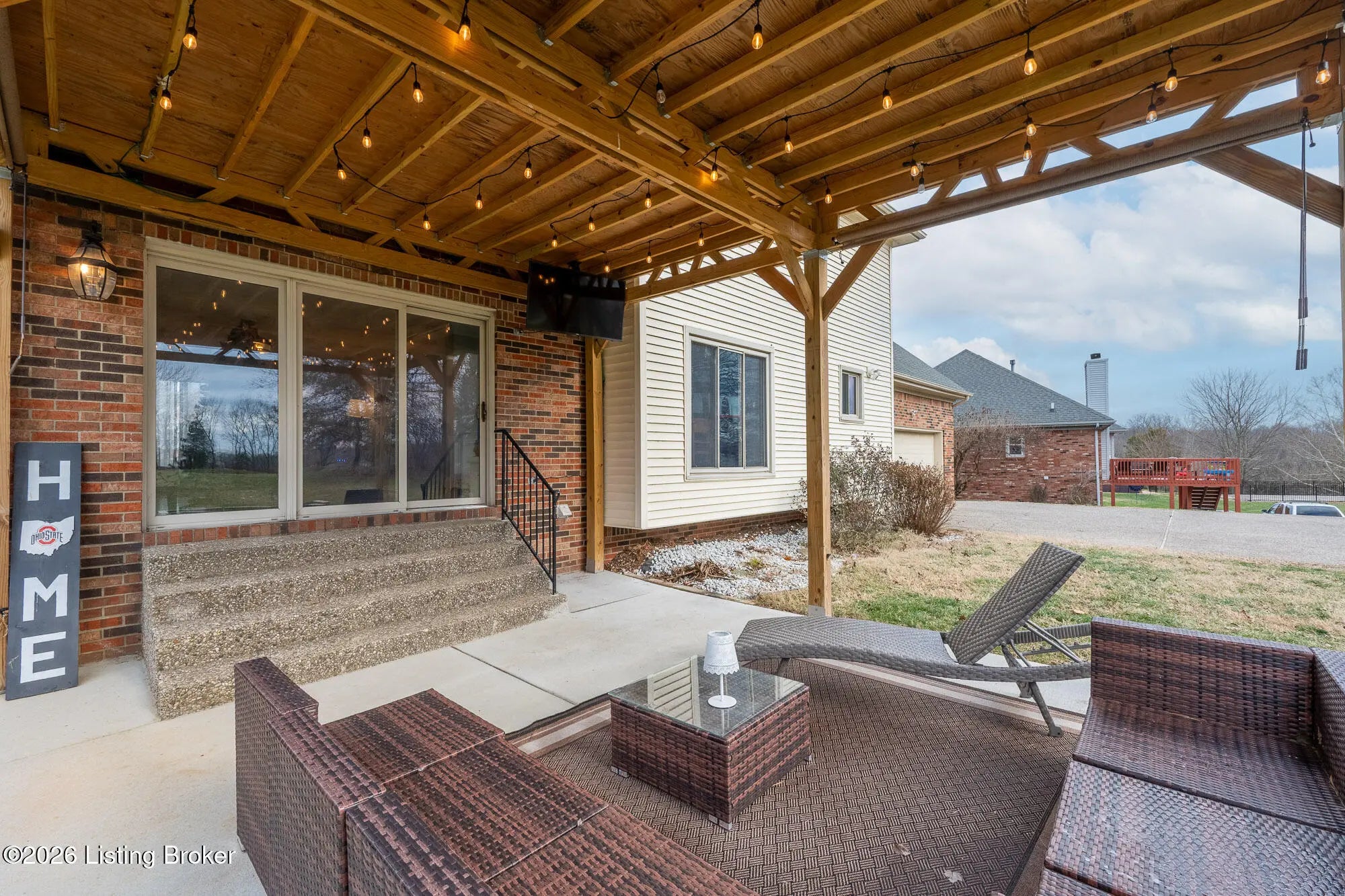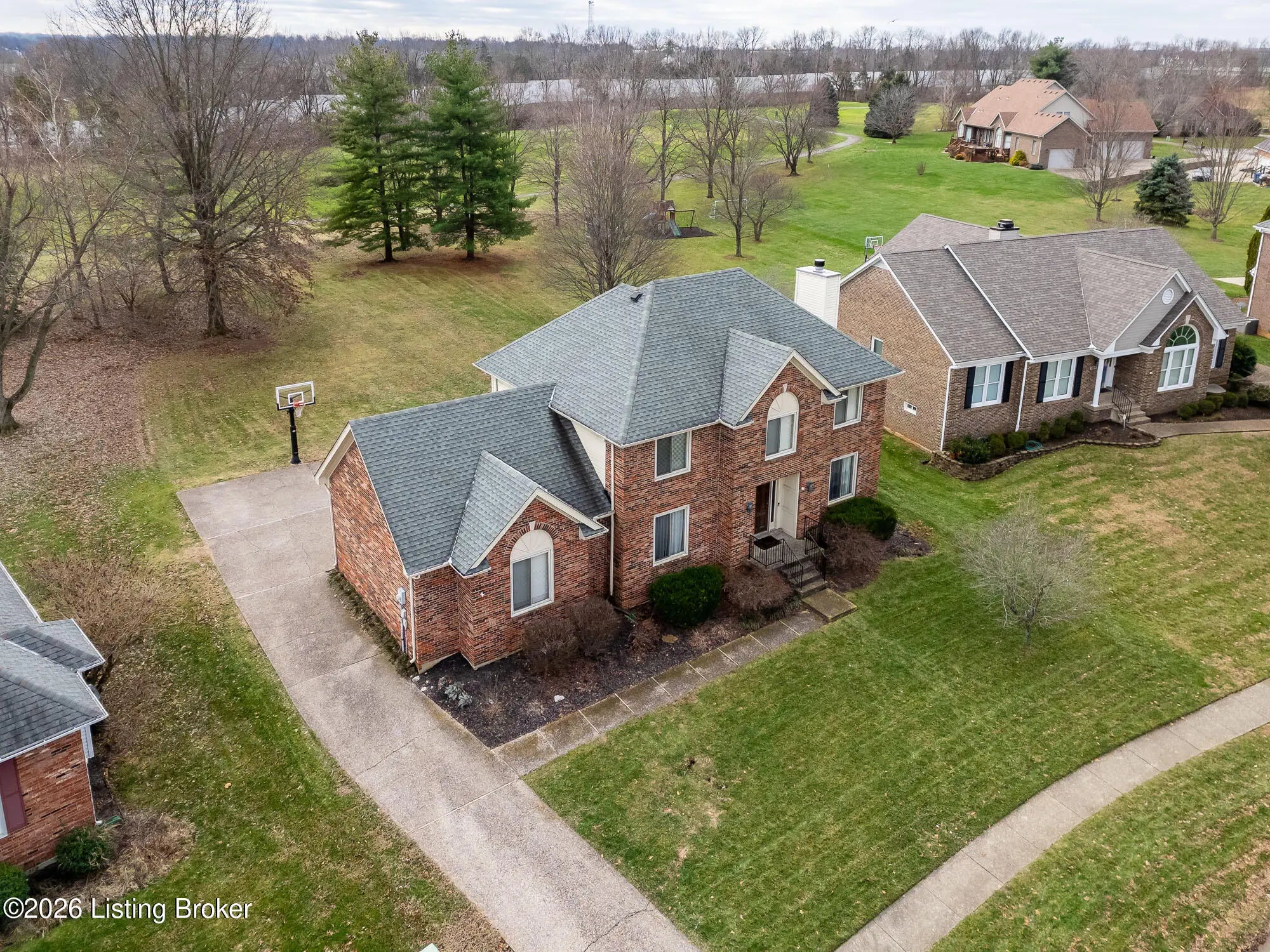 Discover a wonderful opportunity to own a two-story traditional home in sought after Glen Oaks, featuring a spacious rear lot that overlooks the13th hole of the golf course. Enter the foyer to the family room, complete with a fireplace, offering stunning views of the green space. Enjoy a large kitchen with abundant cabinetry and tile flooring, ideal for family meals and entertainment, along with a formal dining room, on the main level. Upstairs, the king-sized master bedroom boasts a hip-vaulted ceiling and is conveniently adjacent to the master bath and closet space. This level also features hardwood floors in the wide hallway and three additional spacious bedrooms, plus a full bath. The lower level provides a finished family room/flex space and unfinished area perfect for extra storage. The outdoors features a beautiful entertainment area with a wood pergola covered patio overlooking the lush green views of the expansive back yard. A rear entry 2 car garage and long driveway offers ample parking space. Glen Oaks amenities include a golf course, clubhouse, pool, tennis courts & playgrounds. Conveniently located near shopping, Norton Commons, and major access roads, this well-priced home is not to be missed!