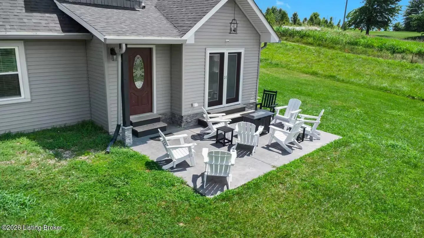 Active STR with frequent bookings. Call listing agent to schedule showings. Please inquire directly for profit and loss statements. Public Remarks: Discover a rare investment opportunity in the heart of bourbon country! This income-producing short-term rental is a cozy, spacious, and bright 3-bedroom, 2-bathroom home offering peaceful views and the perfect setting for guests to relax and unwind. Situated on 2.47 acres overlooking open fields and a tranquil pond, the property also features a backyard patio with a firepit, creating an ideal outdoor space for entertaining and memorable evenings. Inside, you'll find a desirable layout with a first-floor primary bedroom and full bath, complete with a walk-in closet, plus a main-level laundry room for added convenience. The main level offers a welcoming kitchen, dining area, and comfortable family room, perfect for both owner use and guest stays. Upstairs, you'll find two additional bedrooms and a full bathroom, providing plenty of space for guests or extended stays. Whether you're looking to expand your rental portfolio or own a getaway that can generate revenue, this property checks all the boxes. Furniture is negotiable and may be purchased separately through a bill of sale outside of the real estate contract.